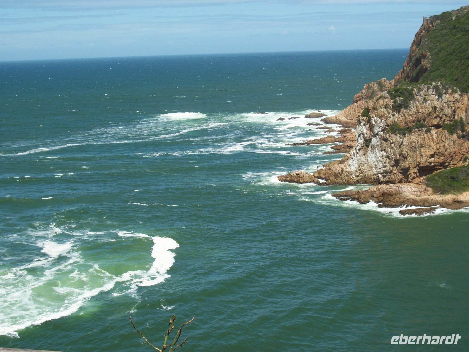 Dann lenkt Albert, unser Fahrer den Kleinbus auf die N2 und wir reisen entlang der Gartenroute, dem schönsten Stück südafrikanischer Küste. Dichte Wälder, üppiger Pflanzenreichtum und wunderschöne Ausblicke auf dem Weg zum Tsitsikamma-Nationalpark. Dort stoppen wir an der Mündung des Storm River wo wir die mächtigen Wellen bewundern. Nächster Stopp; Blue Crans Bridge. Mutige springen hier 216 Meter am Bungee-Seil in die tiefe Schlucht. Wir begnügen uns damit ihnen bei einer Tasse Kaffee und einem kleinen Imbiss zuzusehen - die sind verrückt!