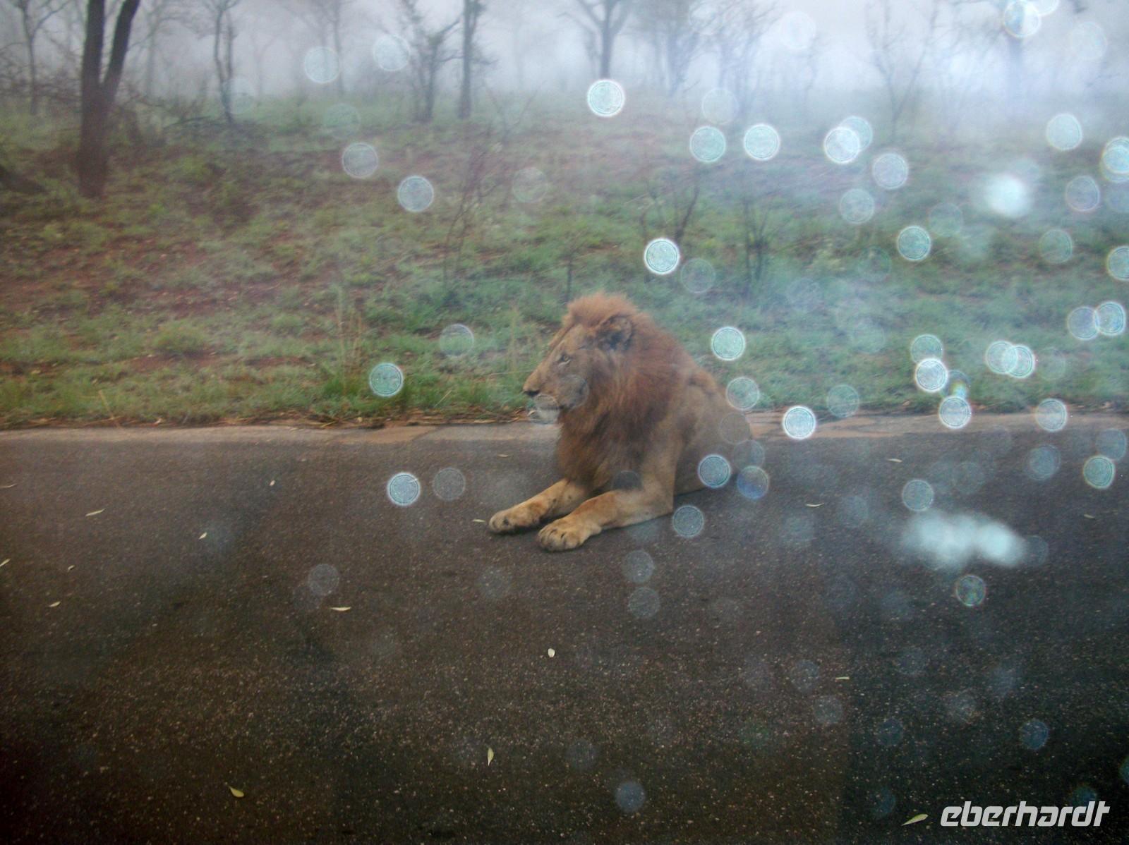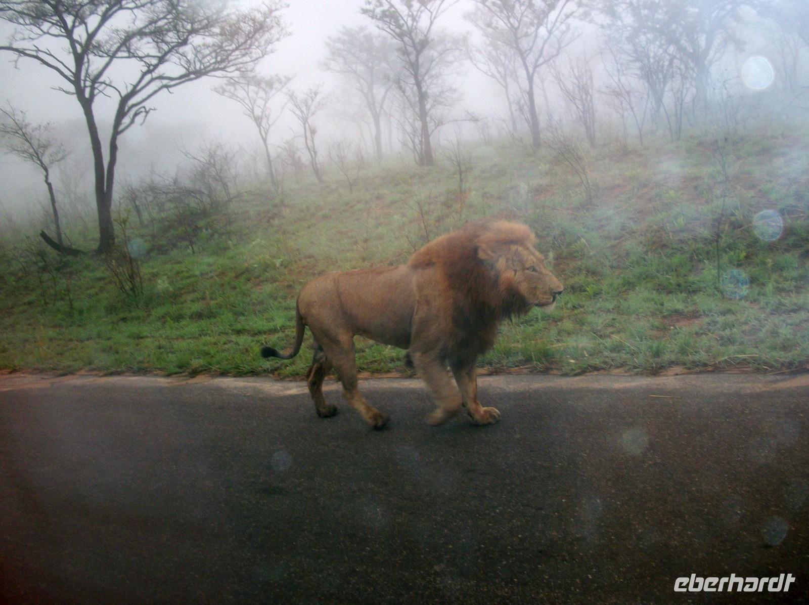 Schon nach wenigen Minuten geschieht etwas Unglaubliches: Zwei Löwen spazieren unmittelbar vor unserem Bus über die Strasse! Minutenlang können wir so den König der Tiere beobachten. Kann es einen besseren Einstieg geben?