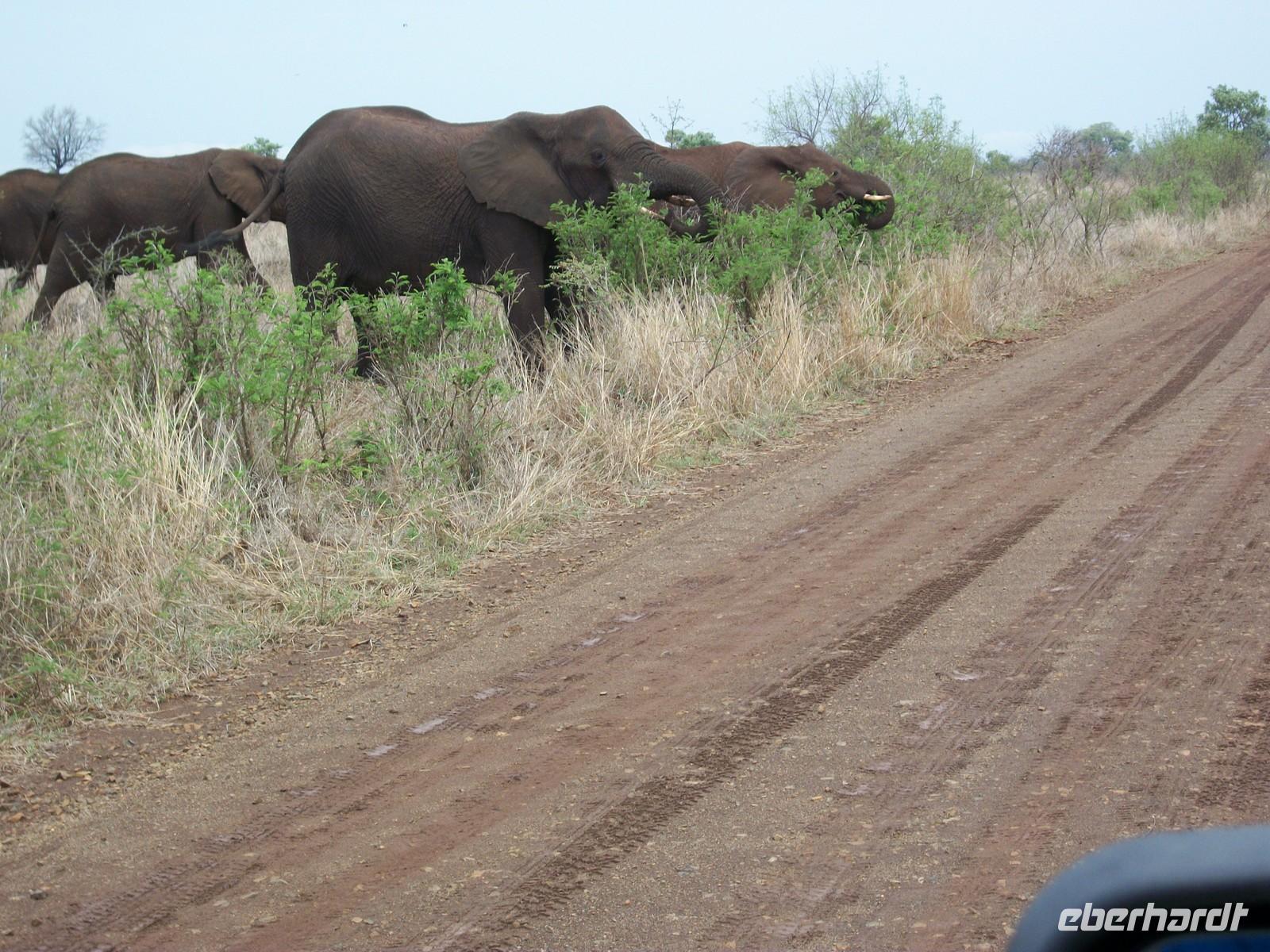 Im Skukuza Camp nehmen wir dann unser Frühstück ein. Gut gestärkt verlassen wir das Camp, welches uns in den nächsten Tagen als Quartier dienen wird, um weiterhin die Tierwelt zu erleben. Bald merken wir wie wichtig diese Camps für die Parkbesucher sind; während außerhalb derer das Verlassen der Fahrzeuge verboten ist, findet man hier Toiletten, kleine Shops und meist auch ein Restaurant.