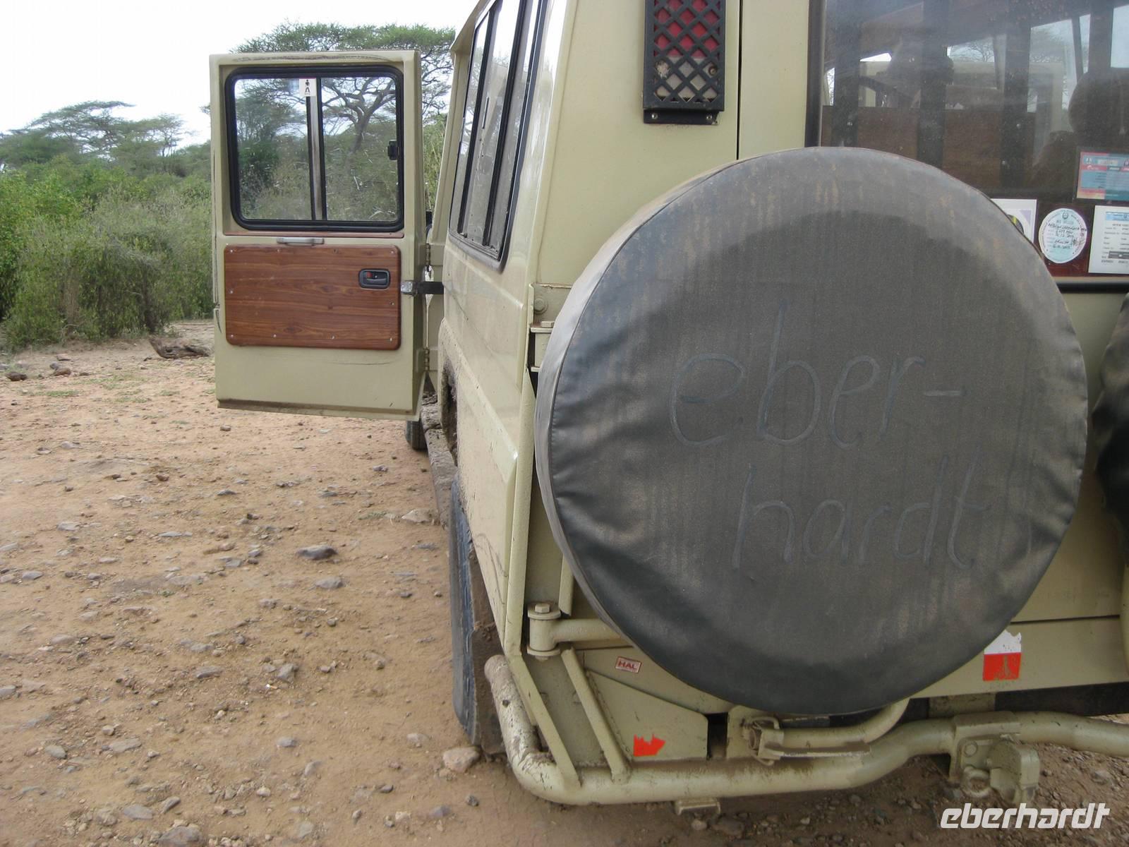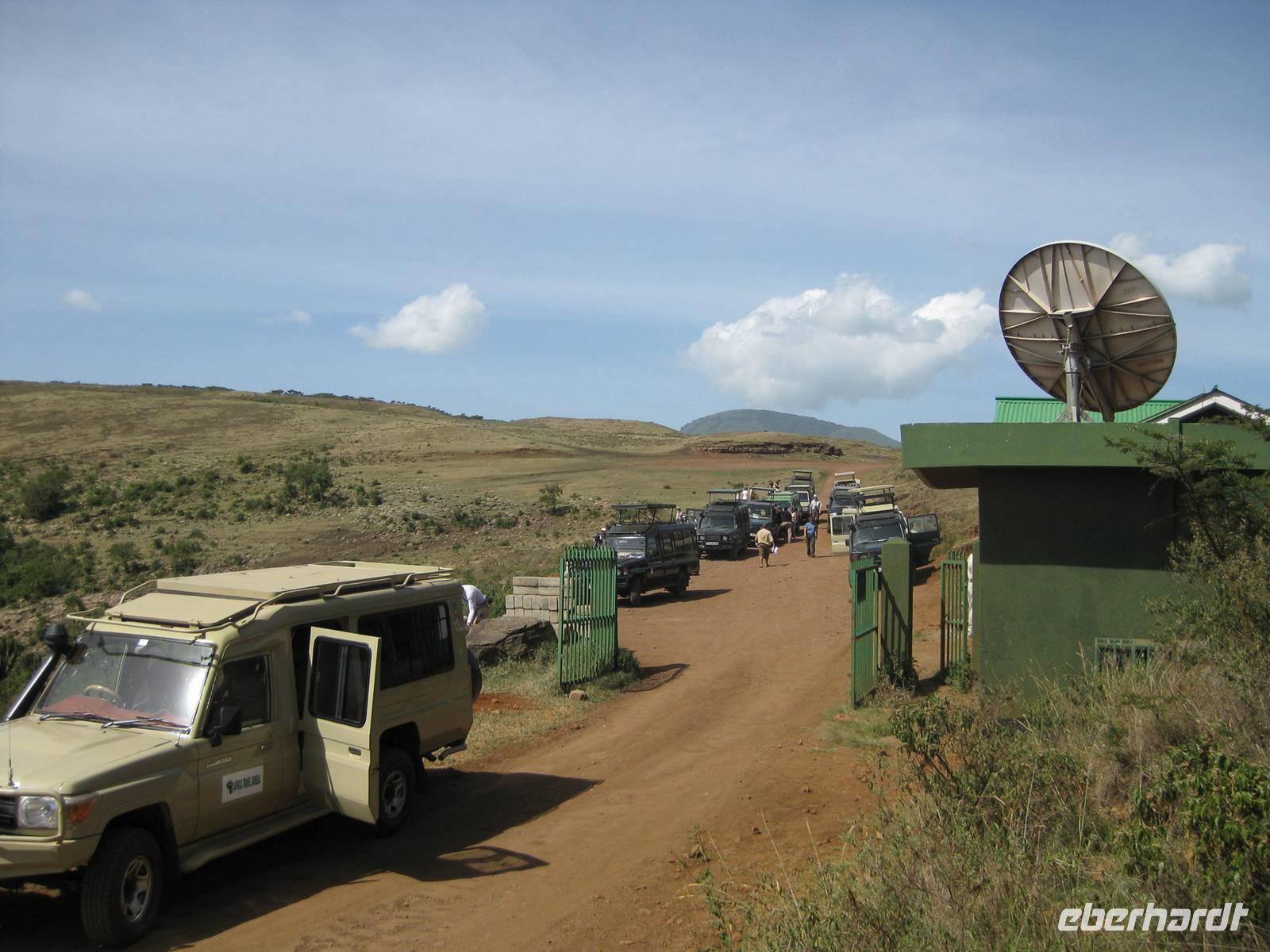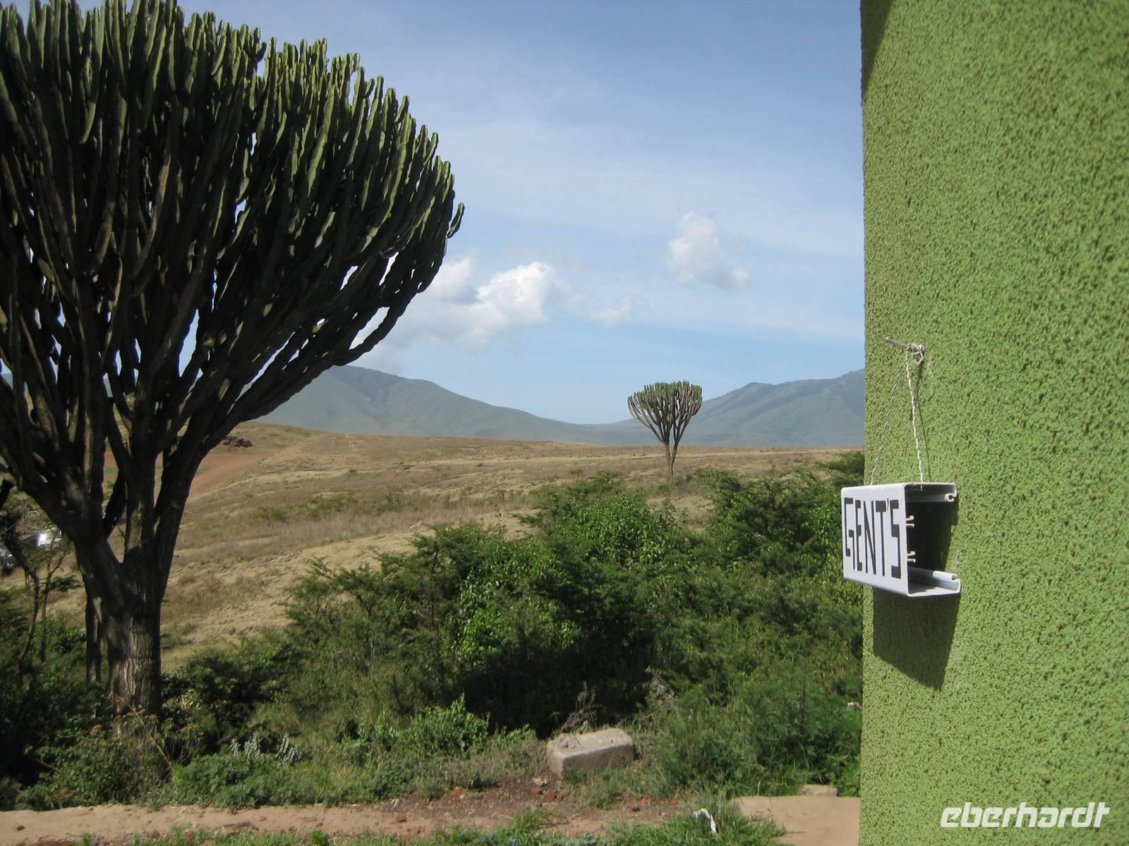 Heute geht es zur Wiege der Menschheit in die Oldupai Schlucht. Bevor wir das Kratergebiet verlassen gibt es noch einmal am Headquarter eine Toilettenpause,