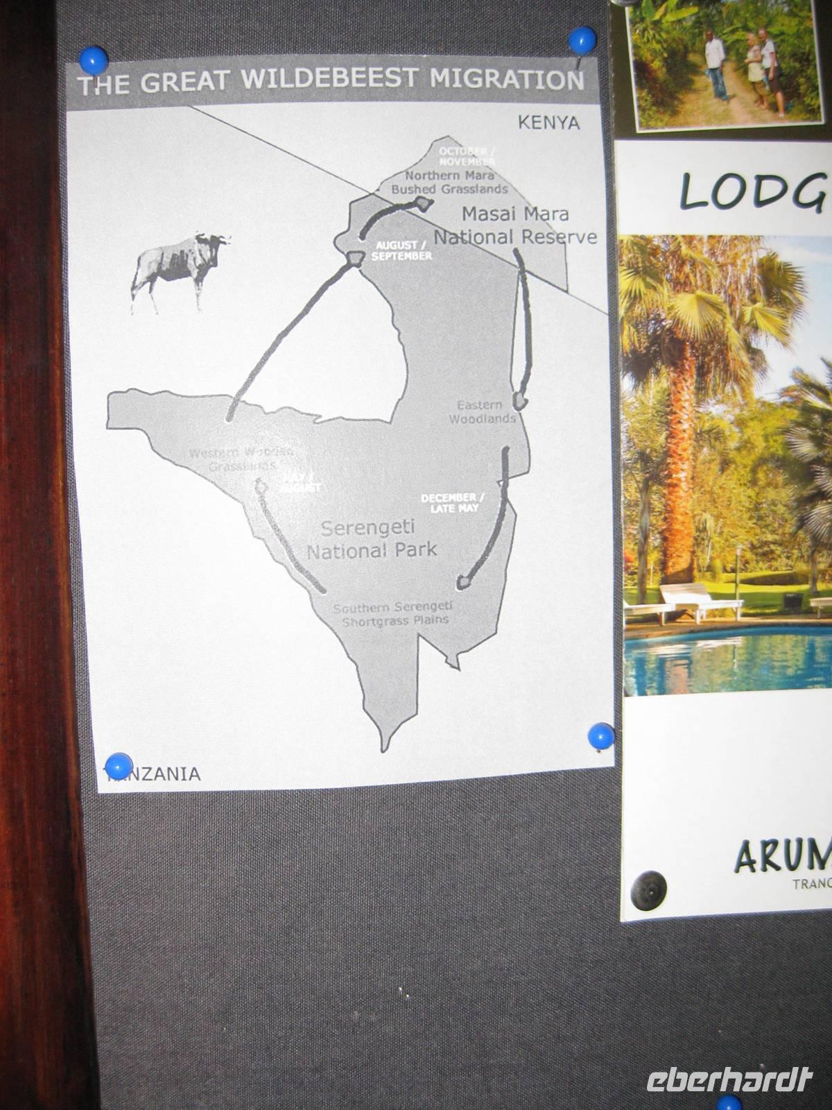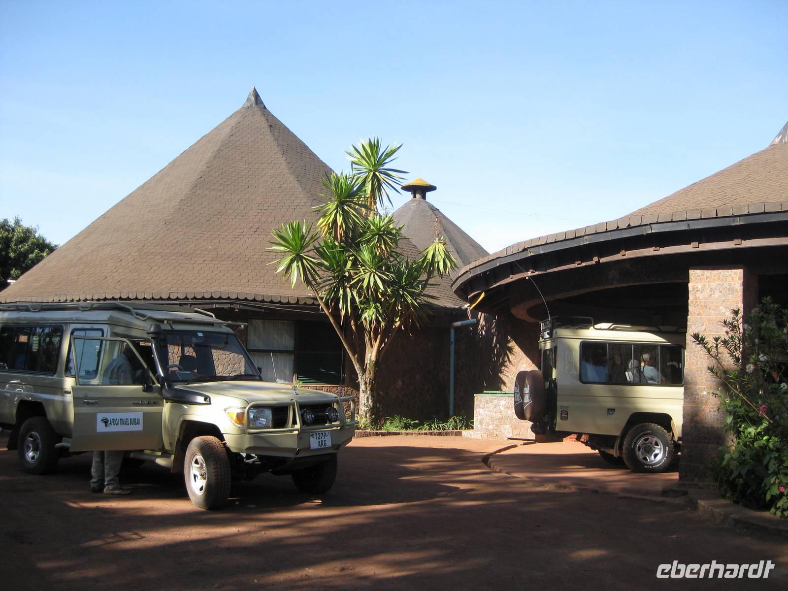 Auch wir anderen müssen auf Grund des langen Weges in die Serengeti bereits um 5.30 Uhr los. Einer unserer Männer bemerkt erst jetzt, dass er am Abend am Tisch seine Gürteltasche mit Pass, Impfausweis, Flugtickets Inland, Kreditkarten und Geld abgelegt hat. Die Tasche ist verschwunden und bleibt verschwunden. Das Lodge Management wird informiert, am Abend kommt dann die Polizei, es gibt Durchsuchungen in den Unterkünften bei den Angestellten, auch bei unseren Fahrern und Hans.