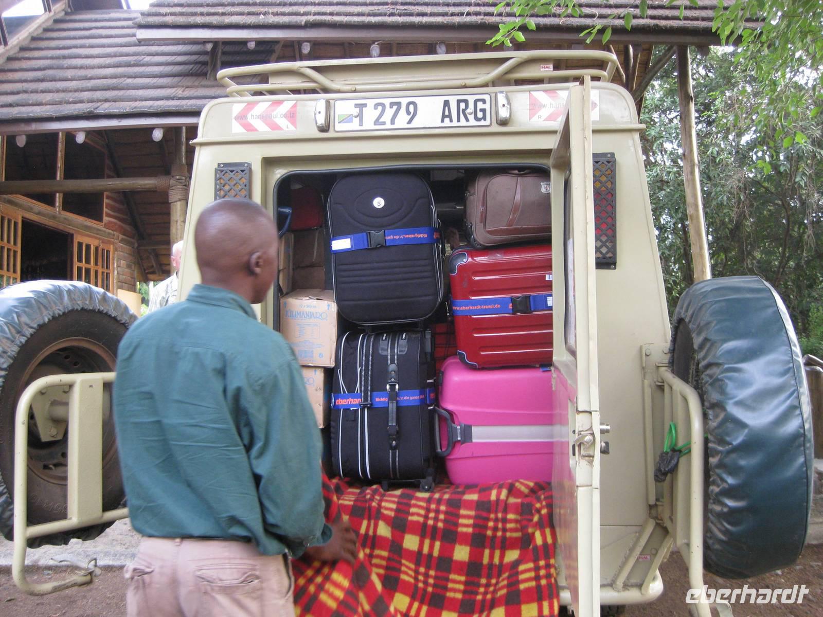 Das Gepäckstück bleibt trotz vieler Telefonate für immer verschollen. Wir sind leider ein Opfer der wachsenden Kriminalität in Tansania geworden, die auch ein fester Begleiter der positiven ökonomischen Entwicklung der letzten Jahre ist. Durch gegenseitige Hilfe von allen werden die Verluste etwas ausgeglichen. Abschließend schlägt Hans vor, am nächsten Tag gleich direkt in den Krater zu fahren, um schneller das einmalige Tierparadies zu sehen.