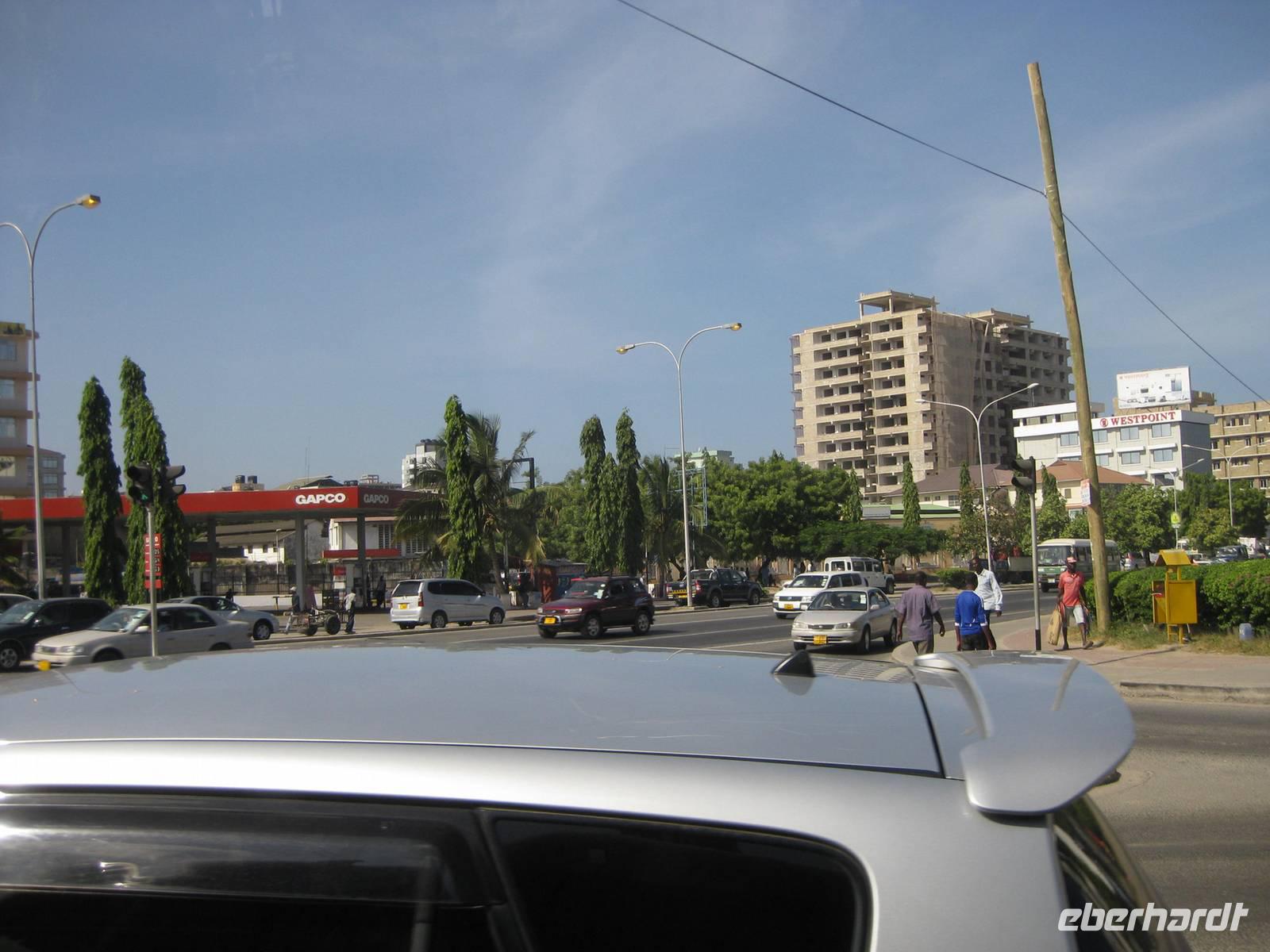 Unsere Betreuer der Agentur Takims Hollidays, Said und Ellen, sind schon da mit dem Bus. Alle haben bequem Platz, die Klimaanlage kühlt gut, eisgekühlte Wasserflaschen werden an alle verteilt, bei schwül-warmen Außentemperaturen um die 30 Grad Celsius haben wir eine angenehme Fahrt zum Hotel Southern Sun mitten in der City von Dar es Salaam. Die Luft ist staubig, überall sind die Straßen mit Autos überfüllt, Menschen über Menschen sind unterwegs. Rund 2,5-3 Millionen Einwohner hat Dar es Salaam, aber wer weiß dies schon genau, es gibt keine aktuelle offizielle Zählung in dieser aus allen Nähten platzenden Finanz- und Verwaltungs"hauptstadt." Offiziell ist Dodoma im Landesinneren die Hauptstadt.