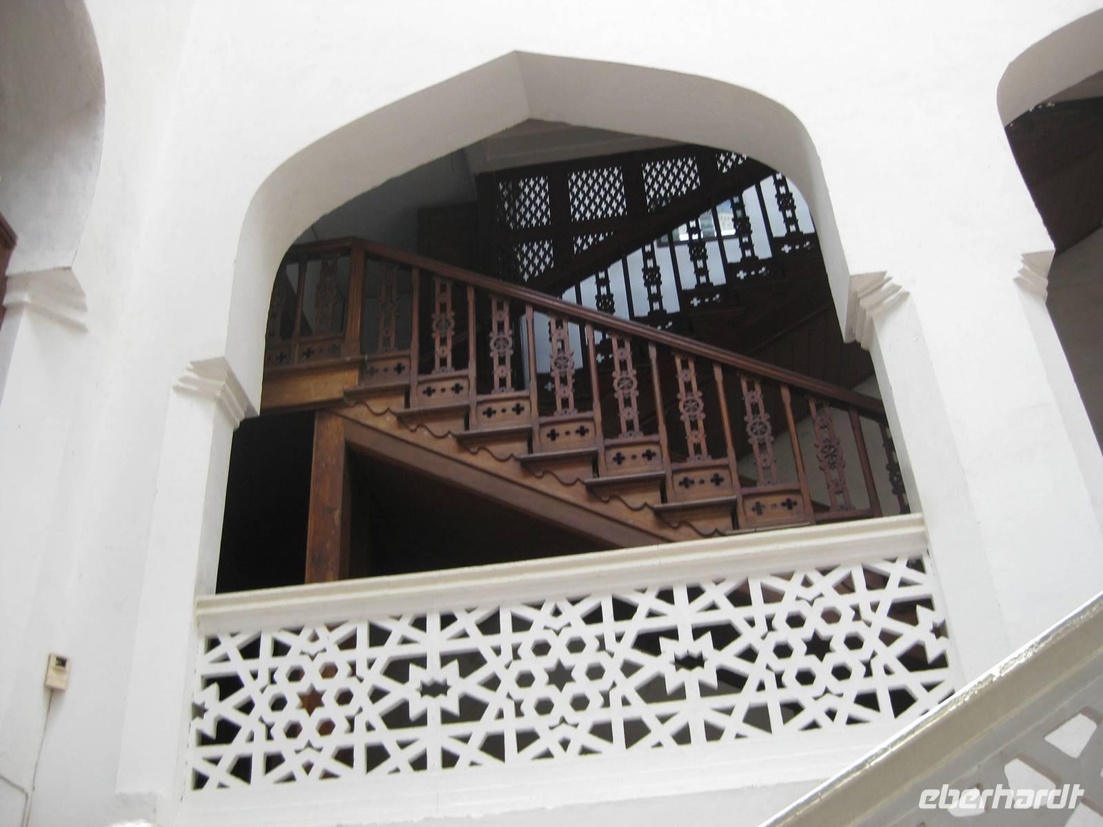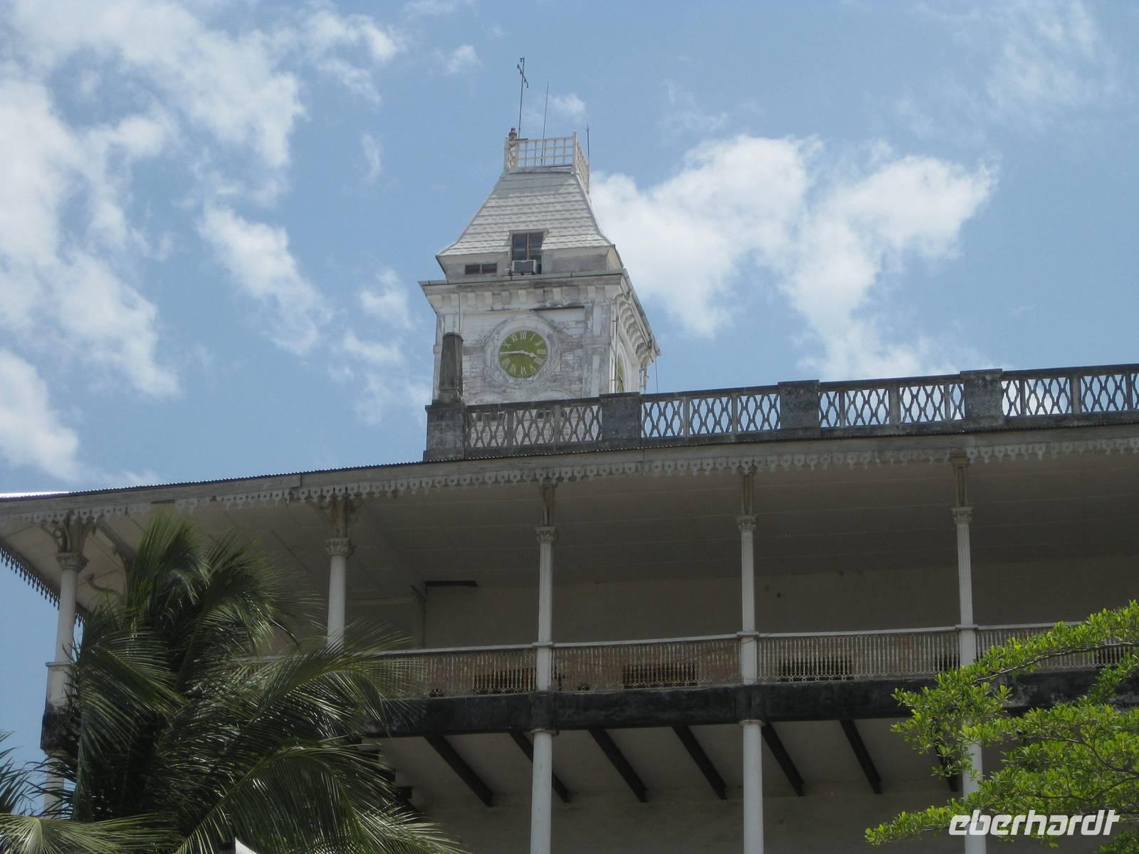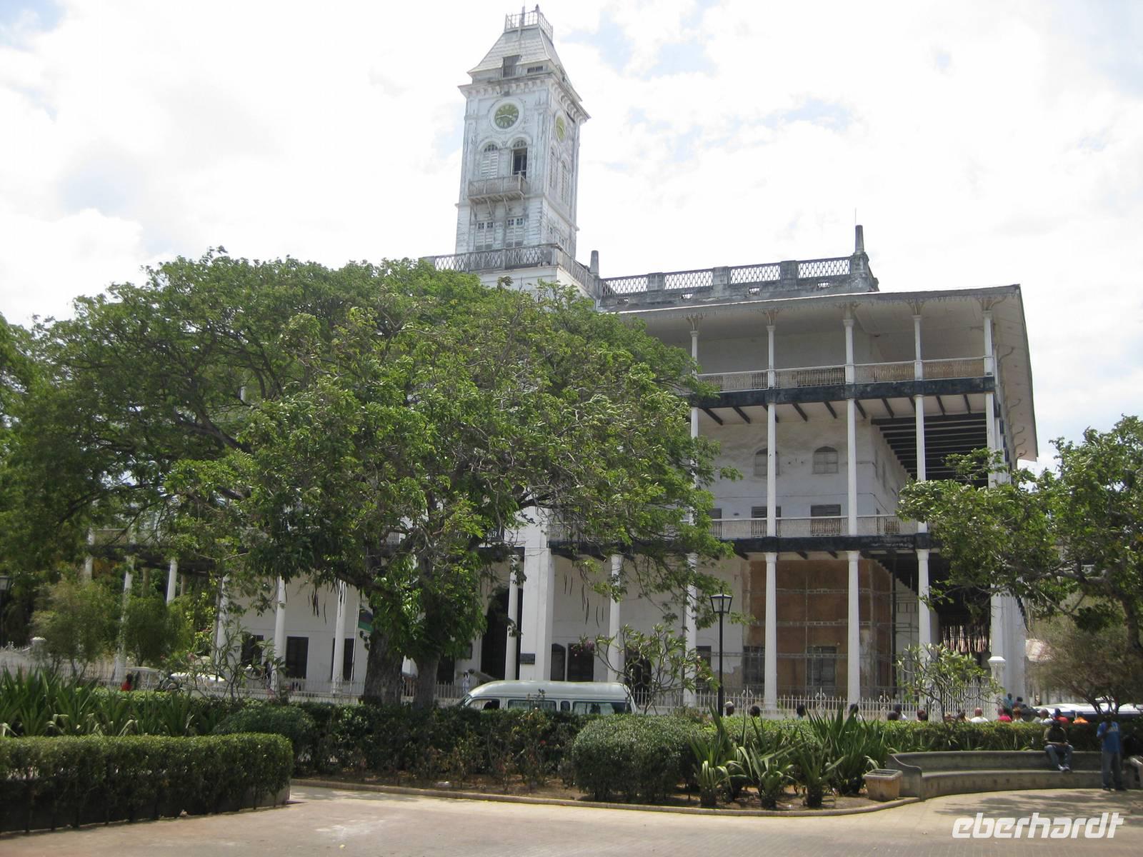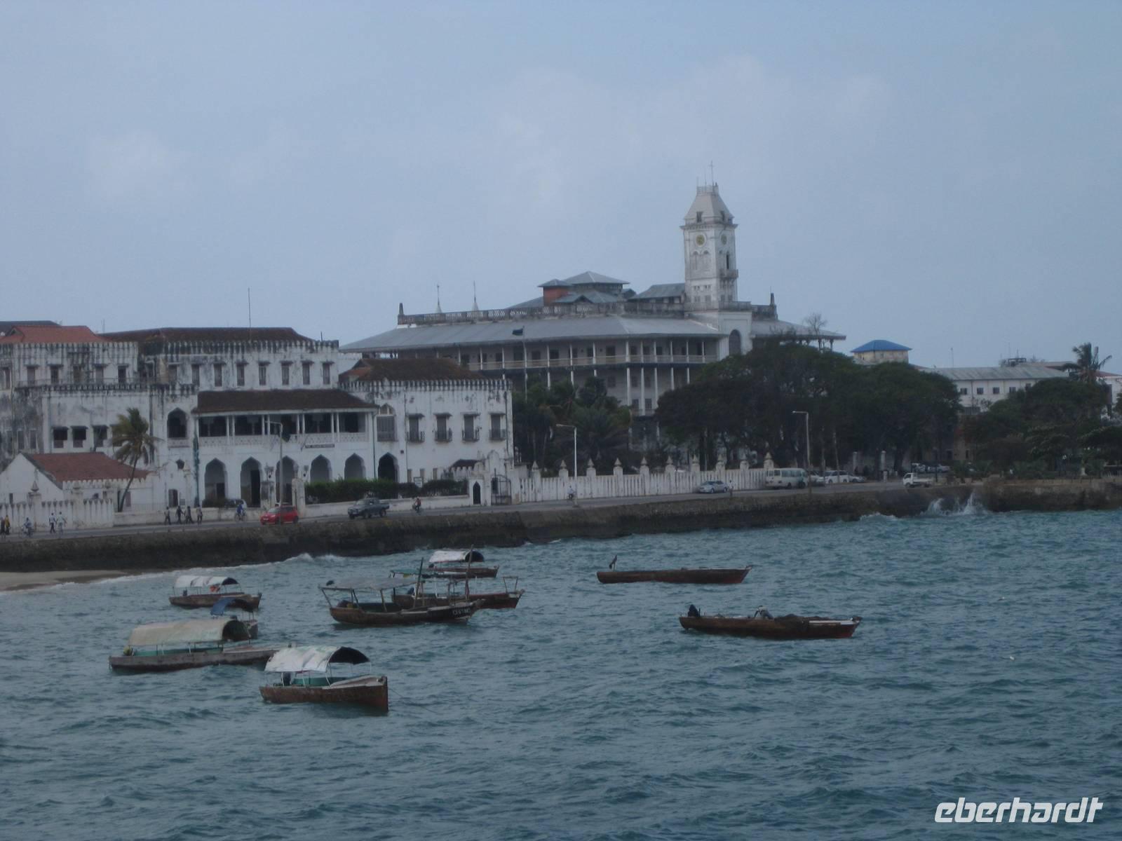 Nach nur einer knappen halben Stunde Flug sind wir auf der Nelkeninsel Sansibar. Obwohl wir die Vereinigte Republik Tansania (offizielle Bezeichnung) nicht verlassen, erfordert der besondere autonome Status Sansibars, dass wir dieEinreiseformalitäten wie bei internationalen Flügen erfüllen. Nach 8.00 Uhr ist auch dies geschafft. Unser kleiner Bus mit dem sehr gut deutsch sprechenden Führer Ameir erwartet uns schon und bringt uns ins Hotel Zanzibar Serena Inn. Leider können wir noch nicht einchecken. Mit einem schönen Stadtplan des Hotels in der Hand führt uns Ameir in die berühmte Stone Town, das städtische Zentrum von Sansibar.