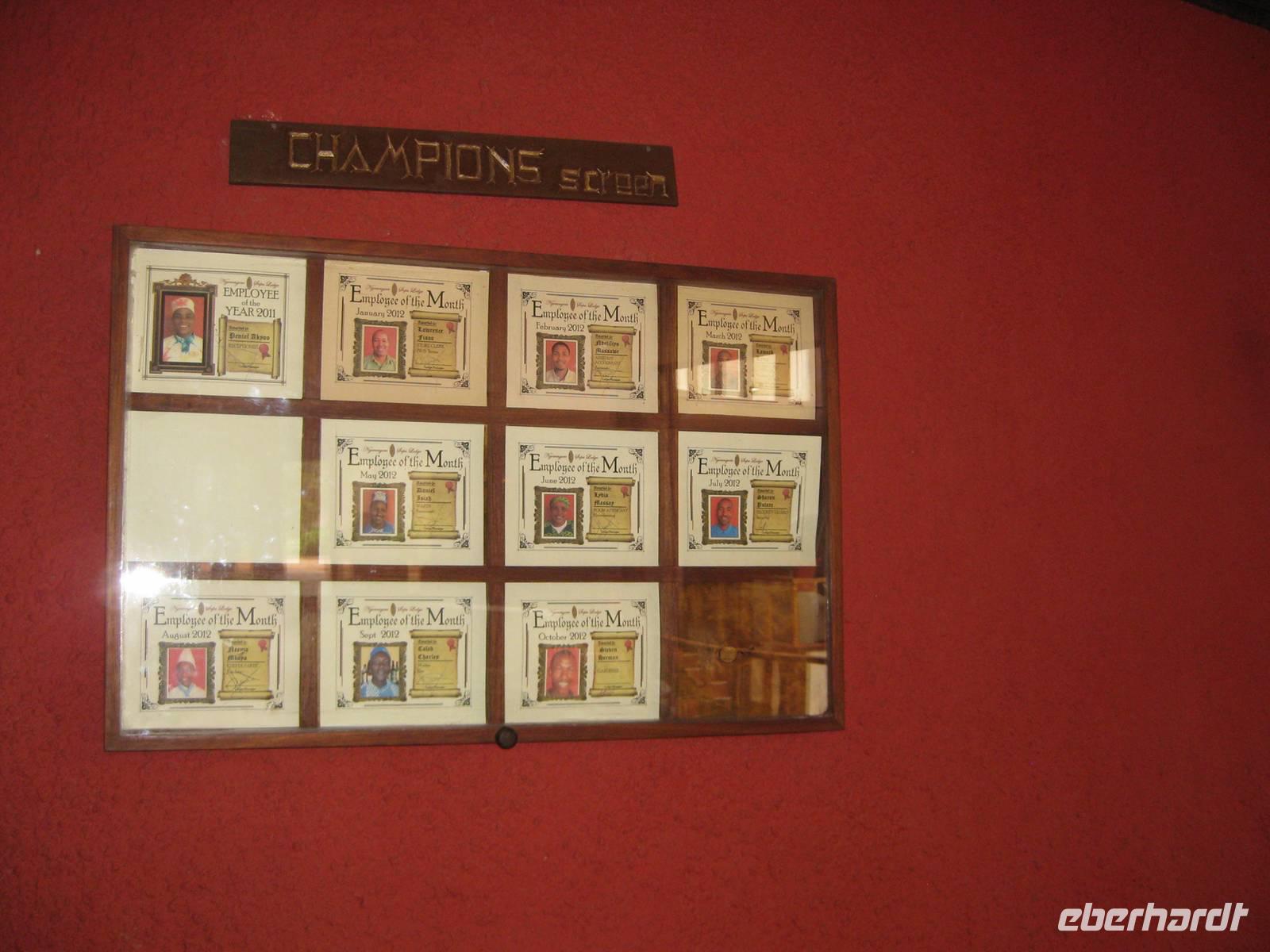 Wir bedanken uns bei unserem Führer Hans und den Fahrern Steven und Jackson für die tollen, gemeinsam verbrachten Tage, und überreichen kleine Souvenirs und die Trinkgelder. Die Fahrer bitten um eine Eintragung in ihre Fahrten-Bücher. Dies mache ich am nächsten Tag. Alle unterschreiben gern. Das Abendessen mit 3 Gängen ist wieder sehr gut.
