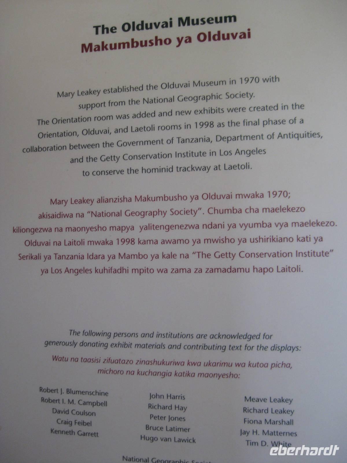 Abschließend besuchen wir das Nationalmuseum bis es geschlossen wird. Höhepunkt der Ausstellung ist das Original des Nussknacker-Schädels aus der von uns schon besuchten Oldupai-Schlucht. Das Museum ist recht gut gegliedert und mit vielen Bildern und Schautafeln ausgestattet. Unsere europäischen Maßstäbe sollte man aber nicht anlegen. Im Museum werden auch die Aids-Problematik und seine Folgen für Tansania thematisiert. Hier gibt es noch sehr viel Aufklärungsproblematik zu leisten, auch wenn auf großen Werbeflächen in der Stadt für Kondome geworben wird. Das Abendessen im Hotel Southern Sun mit seinen 3 Gängen ist wieder ausgezeichnet. Wir Weißen sind hier in diesem sehr guten Hotel in der Minderheit. Bevor es am nächsten Tag mit dem Flieger nach Sansibar geht deponieren wir nicht benötigtes Gepäck im Hotel. Wir kommen ja noch einmal wieder.