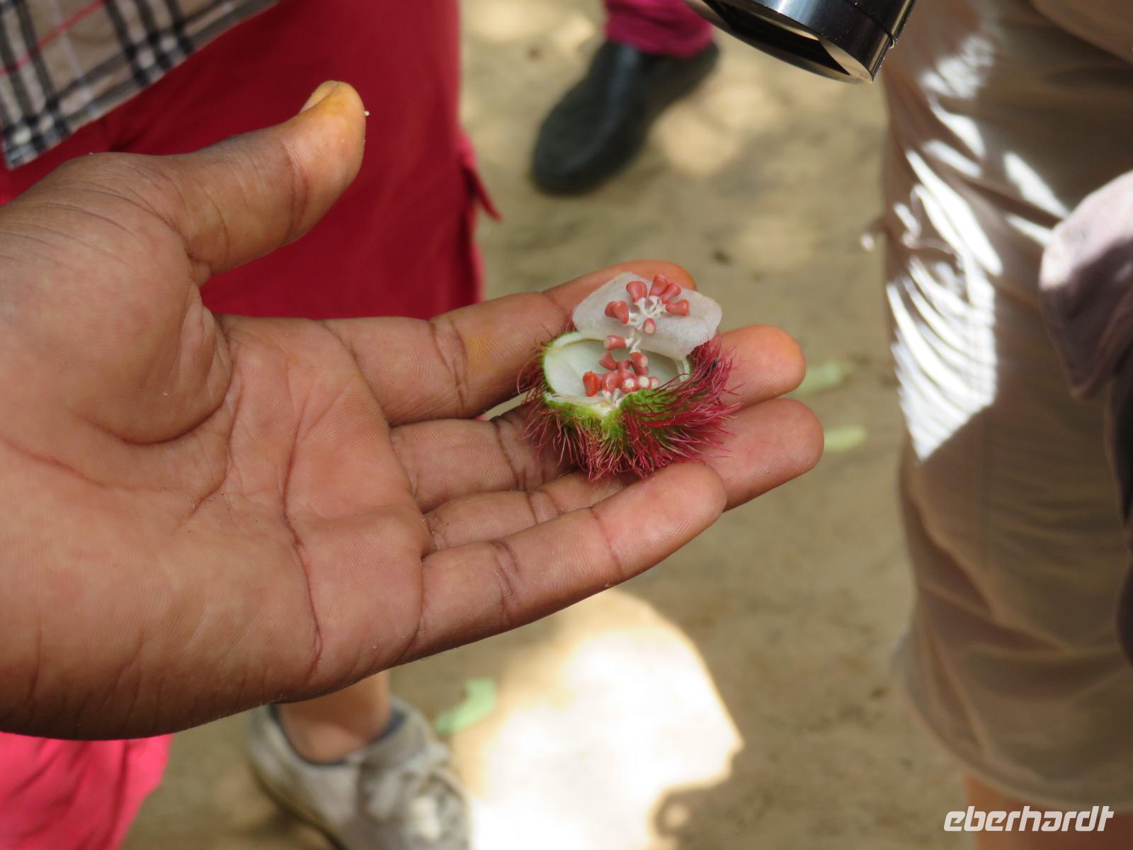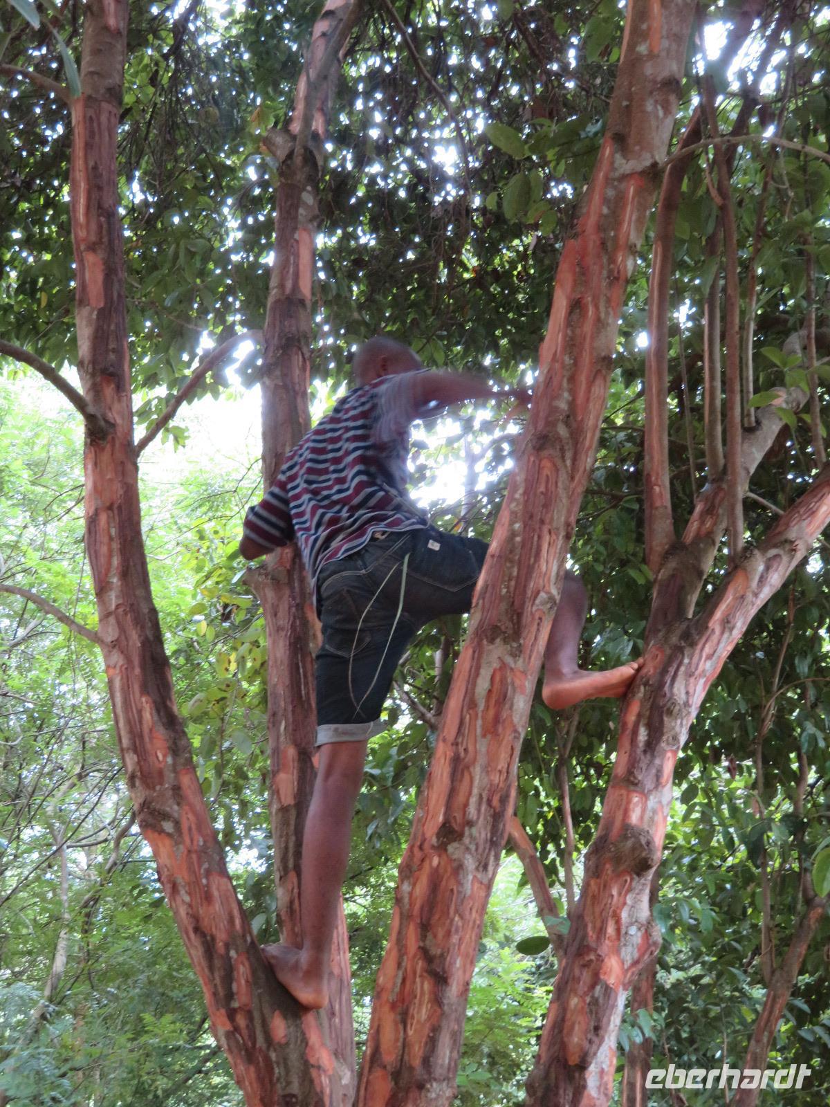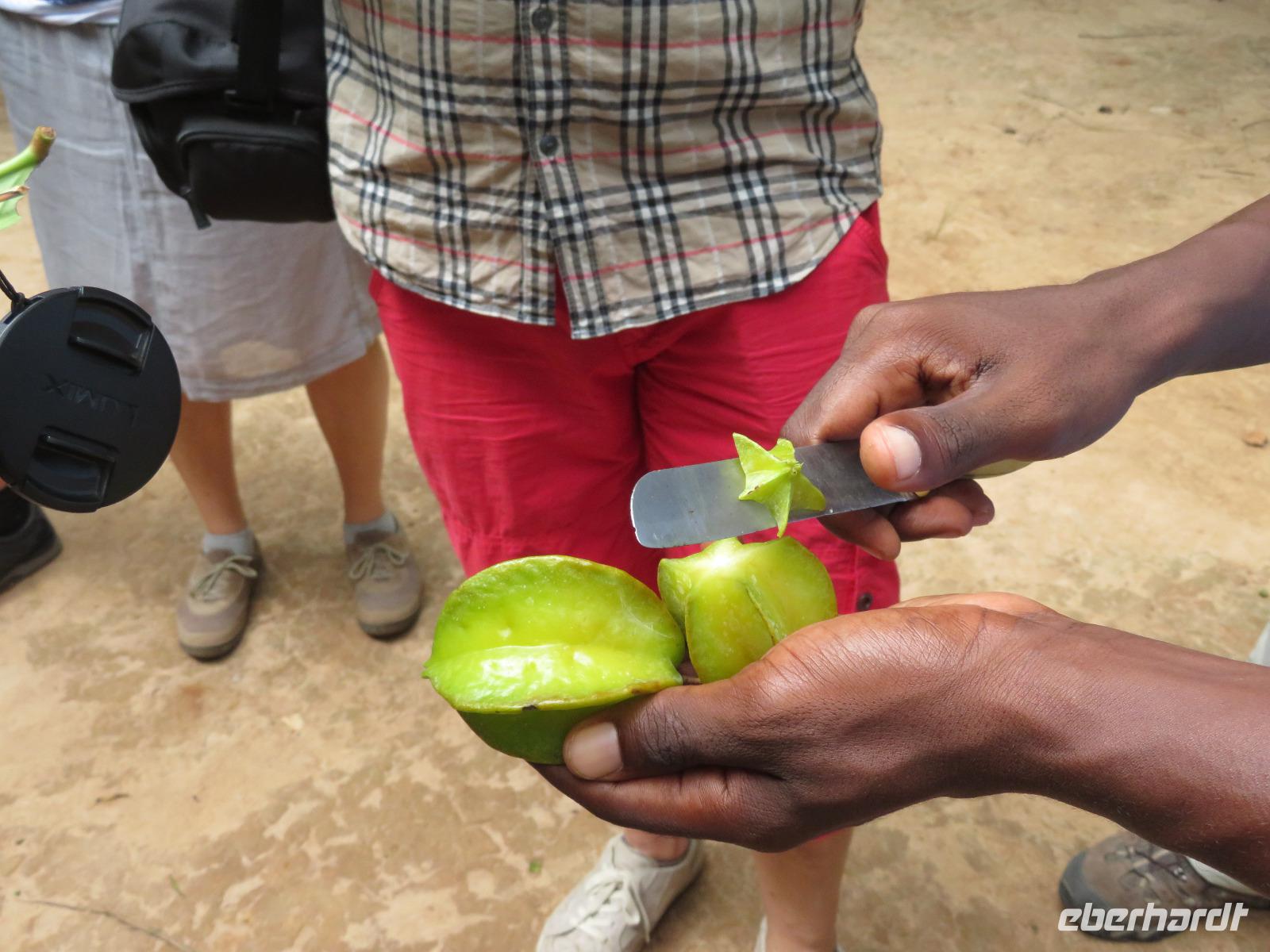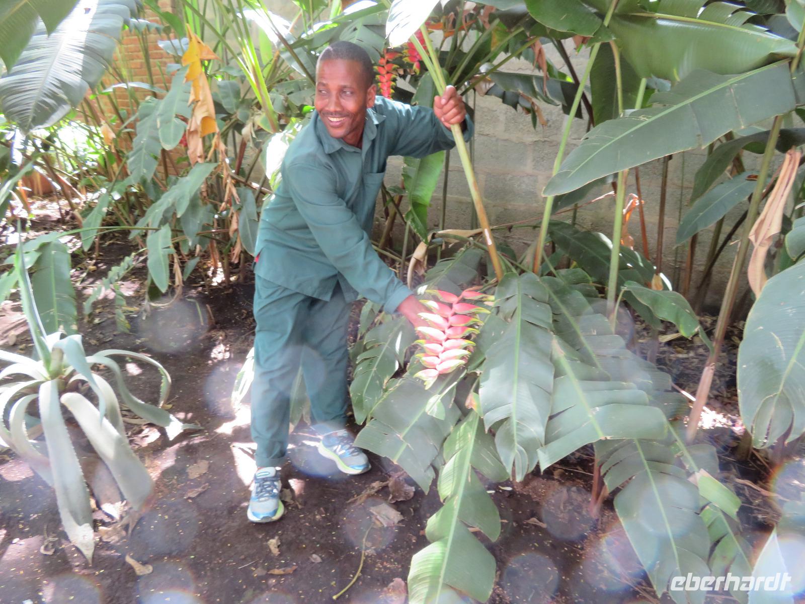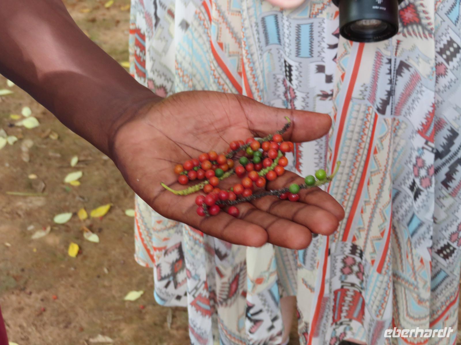 Nach dem Frühstück begeben wir uns auf Gewürztour. Wir fahren mit dem Bus zur Gewürzfarm und erfahren viel Wissenswertes über den Anbau von verschiedensten Gewürzen. Wir sehen den Zimtbaum aus dessen Rinde der uns bekannte Zimt gewonnen wird. Die Vanillepflanze ist eine Schlingpflanze. Die Pflege ist sehr aufwendig, denn die Blüten müssen täglich mit Hand geöffnet werden, damit sich die Vanillieschoten bilden. Kardamom und Zitronengras wachsen als Büschel und Nelken sind die Blütenstempel eines Baumes. Sansibar ist der weltgrößte Nelkenexporteur. Sehr anschaulich erklärt uns Achmed, unser Reiseleiter die Gewürze und die dazugehörigen Pflanzen. Natürlich nutzen wir die Gelegenheit, um frische Gewürze einzukaufen. Der junge Mitarbeiter der Farm, der uns auf unserem Rundgang begleitet, zeigt uns noch die Kunst des Flechtens aus Blättern der Kokospalme. Jeder bekommt ein kleines Kunstwerk in Form eines Anhängers, einer Krone, einer Krawatte oder einem Hut. Anschließend statten wir den Persischen Bädern, die Sultan Seyid Said Bin Mitte des 19. Jahrhunderts für seine zweite Frau erbauen ließ, einen Besuch ab. Im persischen Stil erbaut, ist das Gebäude noch erhalten wird aber nicht mehr genutzt. Wir sehen die Badewanne aus Stein gemauert und die Massage-Bänke. Am Nachmittag nutzen wir nochmals die Zeit zum Erholen am herrlichen Sandstrand im Schatten von Kokospalmen.