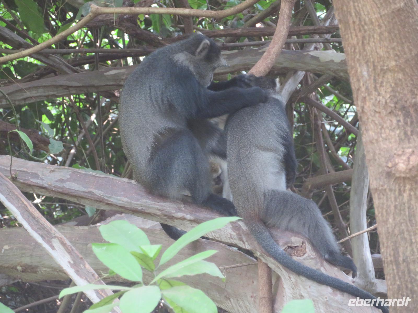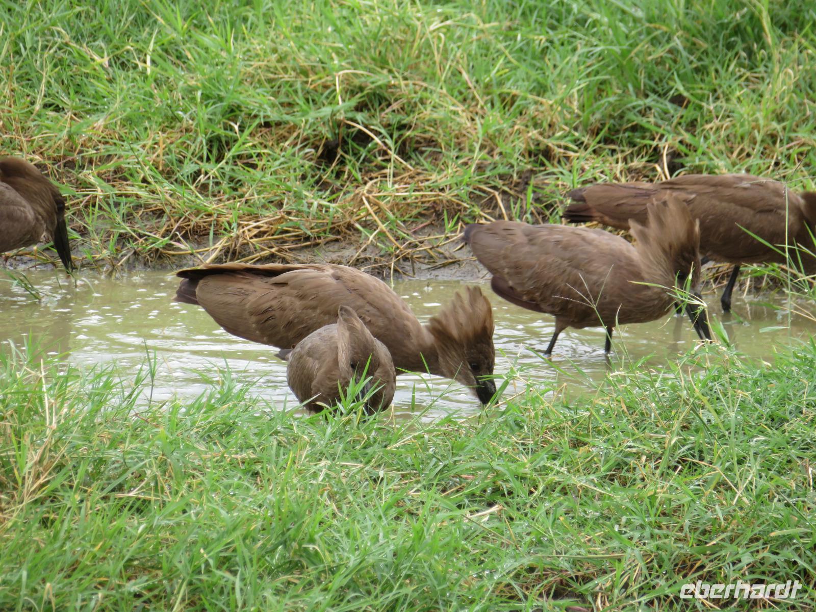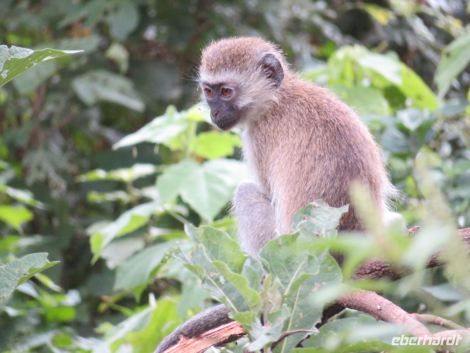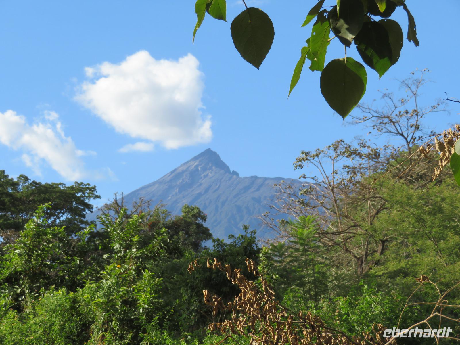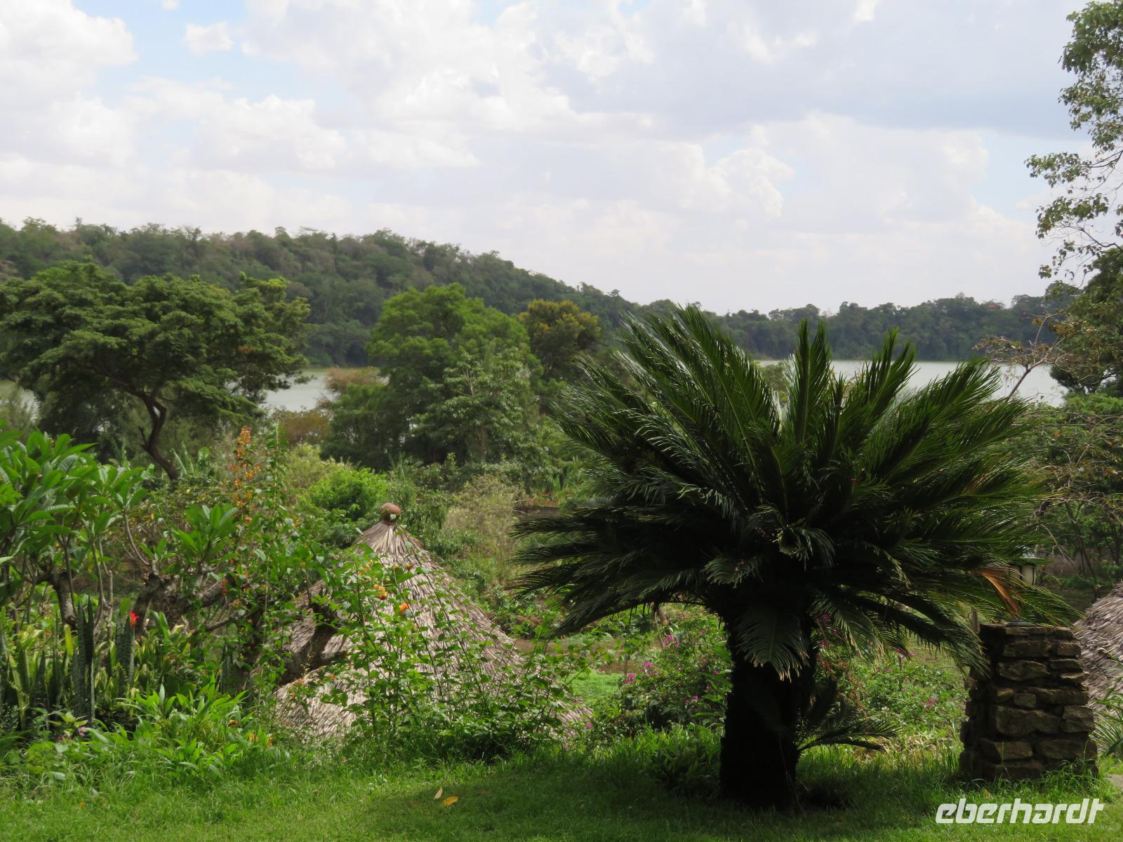 Heute heißt es erst mal ausschlafen. Wir bedienen uns vom reichhaltigen Frühstücksbuffet und genießen den Blick auf den Mount Meru. Der Mount Meru ist mit 4.500 Meter der zweithöchste Berg Tansanias. Am späten Vormittag unternehmen wir einen Spaziergang in die nähere Umgebung der Lodge. Während des Rundganges mit einem Angestellten der Lodge geht es über eine kleinbäuerliche Kaffee-Farm und durch die Gemüsegärten der Bauern und der Lodge. Dabei erfahren wir, wie der Kaffee angebaut wird und welche Schritte nötig sind, bis die schwarzen Bohnen fertig sind. Wir lernen die „afrikanische Kaffeemühle" kennen. Mit einer einfachen Glasflasche wird der vorher über offenen Feuer in einem Tontopf geröstete Kaffee gemahlen. Als wir zu unseren Hütten zurückgehen, sehen wir eine große Gruppe grüner Meerkatzen, die sich tobend an einer Hütte tummeln. Nach dem Mittagessen erwartet uns Macdonald, einer unserer örtlichen Driver-Guides. Mit dem Bus fahren wir zum Dulutisee. Der Name des Sees kommt von einem hier ansässigen Stamm und bedeutet so viel wie „tiefstes Gebiet". Die Tiefe des Sees wurde 1999 gemessen und beträgt 740 Meter. Mit einem örtlichen Ranger wandern wir um den See durch den sogenannten Regenwald. Dabei eröffnen sich uns immer wieder schöne Blicke auf den Mount Meru. Der Kilimanjaro versteckt sich leider in Wolken. Wir sehen verschiedene Vögel, wie den Hammerkopfvogel, den afrikanischen Eisvogel und Komorane. Der Hammerkopfvogel baut die größten Nester. Diese können bis zu 50 kg Gewicht haben und verfügen oft über 4 verschiedene Höhlen. Dies dient dem Schutz vor Schlangen. Am späten Nachmittag kehren wir zurück zur Lodge.