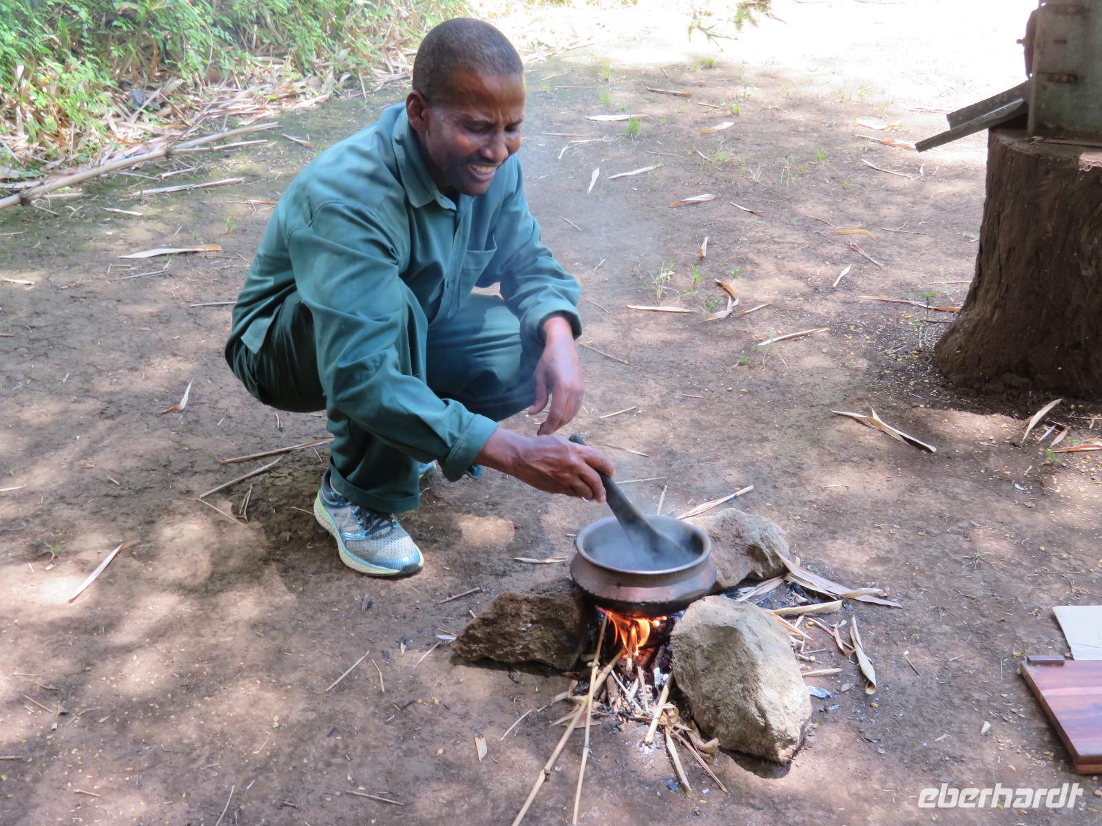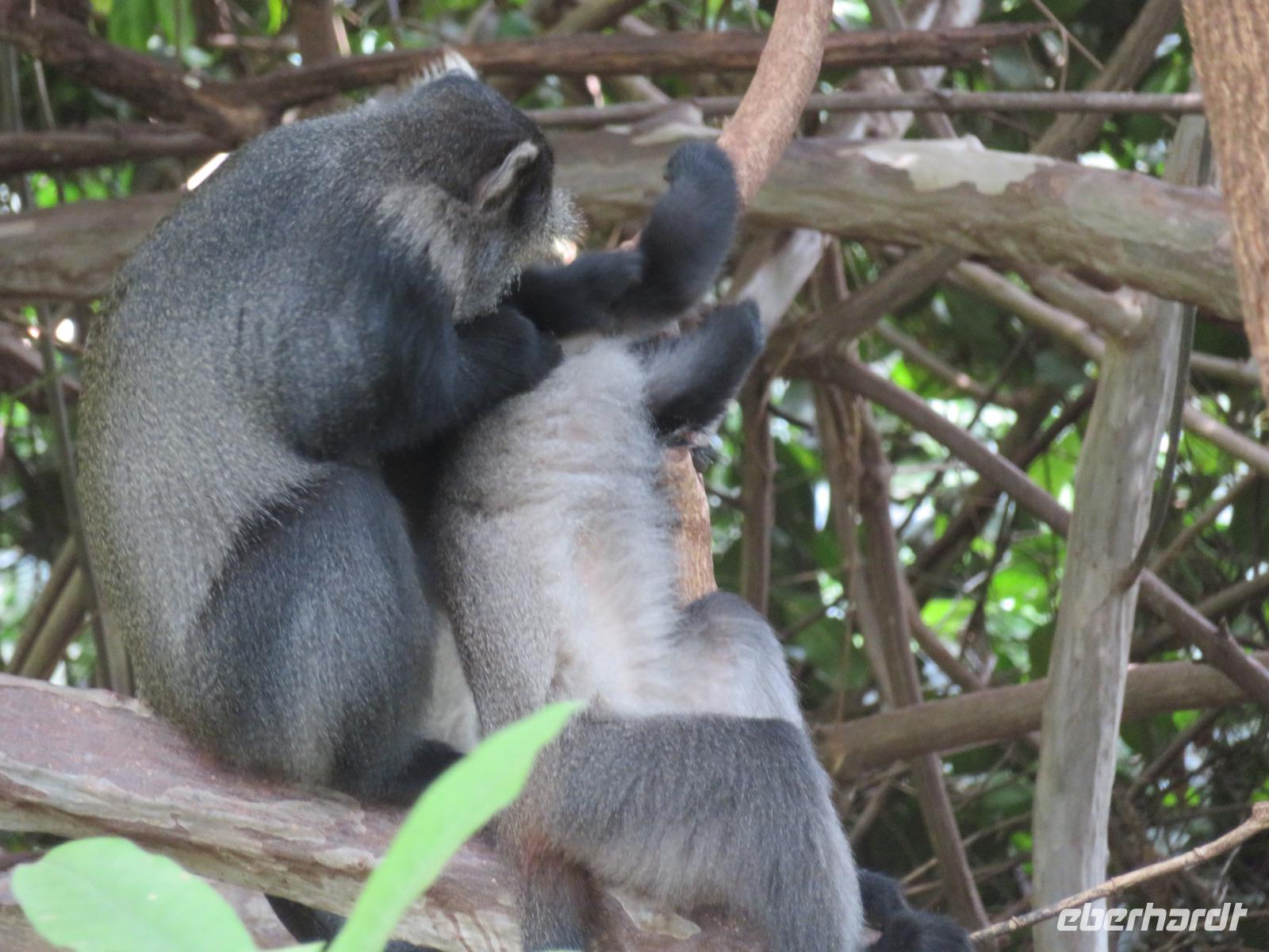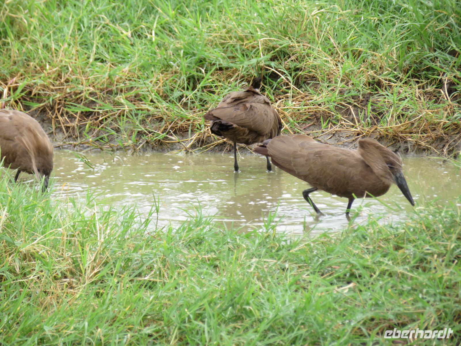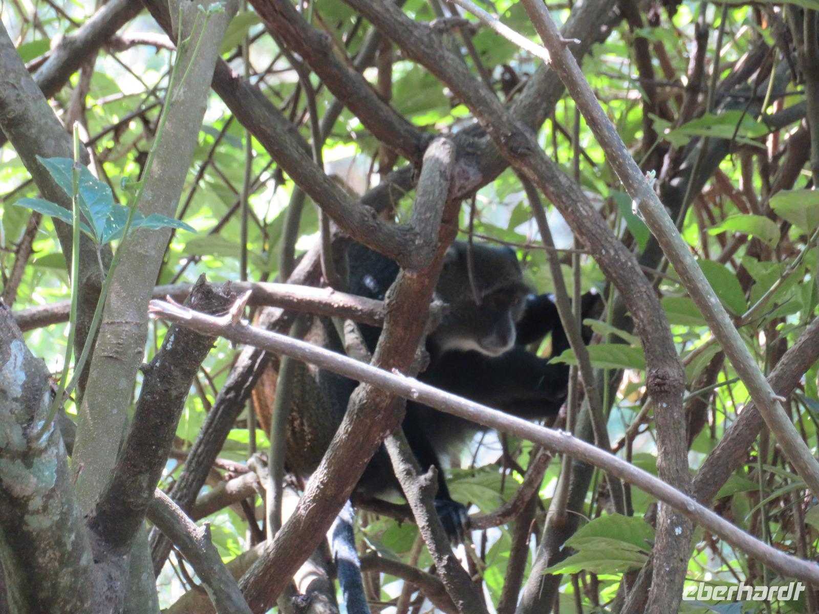 Heute heißt es erst mal ausschlafen. Wir bedienen uns vom reichhaltigen Frühstücksbuffet und genießen den Blick auf den Mount Meru. Der Mount Meru ist mit 4.500 Meter der zweithöchste Berg Tansanias. Am späten Vormittag unternehmen wir einen Spaziergang in die nähere Umgebung der Lodge. Während des Rundganges mit einem Angestellten der Lodge geht es über eine kleinbäuerliche Kaffee-Farm und durch die Gemüsegärten der Bauern und der Lodge. Dabei erfahren wir, wie der Kaffee angebaut wird und welche Schritte nötig sind, bis die schwarzen Bohnen fertig sind. Wir lernen die „afrikanische Kaffeemühle" kennen. Mit einer einfachen Glasflasche wird der vorher über offenen Feuer in einem Tontopf geröstete Kaffee gemahlen. Als wir zu unseren Hütten zurückgehen, sehen wir eine große Gruppe grüner Meerkatzen, die sich tobend an einer Hütte tummeln. Nach dem Mittagessen erwartet uns Macdonald, einer unserer örtlichen Driver-Guides. Mit dem Bus fahren wir zum Dulutisee. Der Name des Sees kommt von einem hier ansässigen Stamm und bedeutet so viel wie „tiefstes Gebiet". Die Tiefe des Sees wurde 1999 gemessen und beträgt 740 Meter. Mit einem örtlichen Ranger wandern wir um den See durch den sogenannten Regenwald. Dabei eröffnen sich uns immer wieder schöne Blicke auf den Mount Meru. Der Kilimanjaro versteckt sich leider in Wolken. Wir sehen verschiedene Vögel, wie den Hammerkopfvogel, den afrikanischen Eisvogel und Komorane. Der Hammerkopfvogel baut die größten Nester. Diese können bis zu 50 kg Gewicht haben und verfügen oft über 4 verschiedene Höhlen. Dies dient dem Schutz vor Schlangen. Am späten Nachmittag kehren wir zurück zur Lodge.