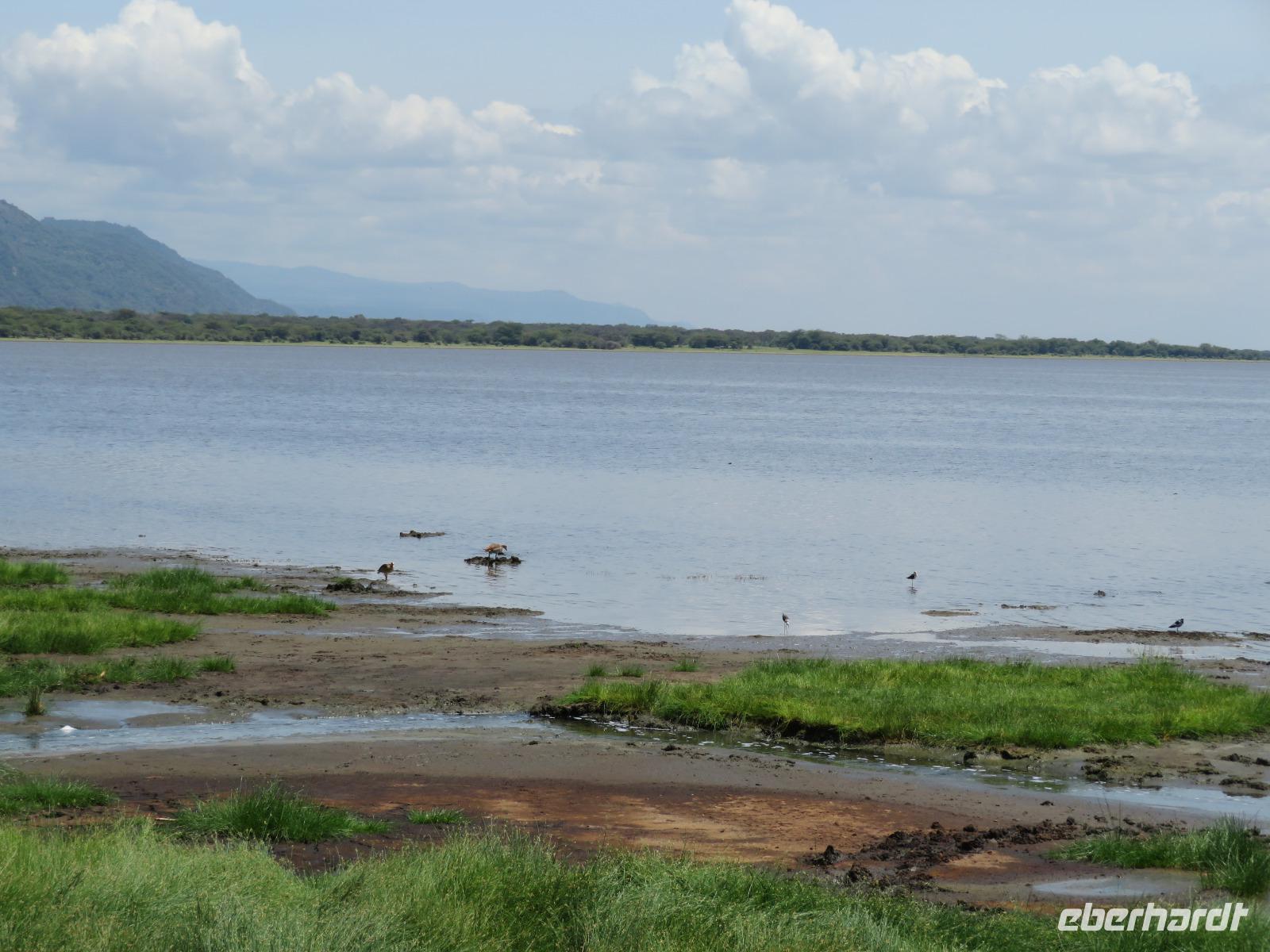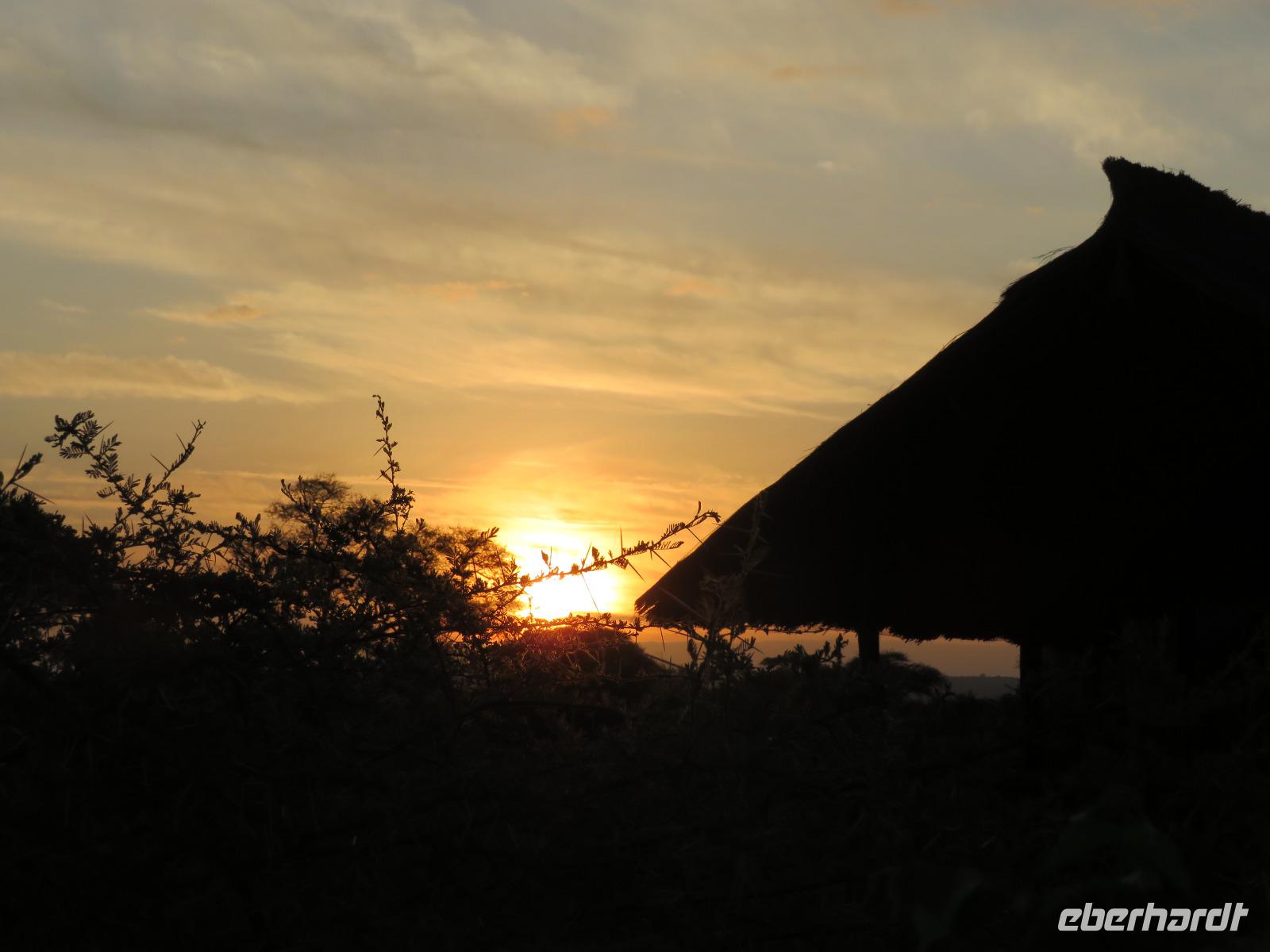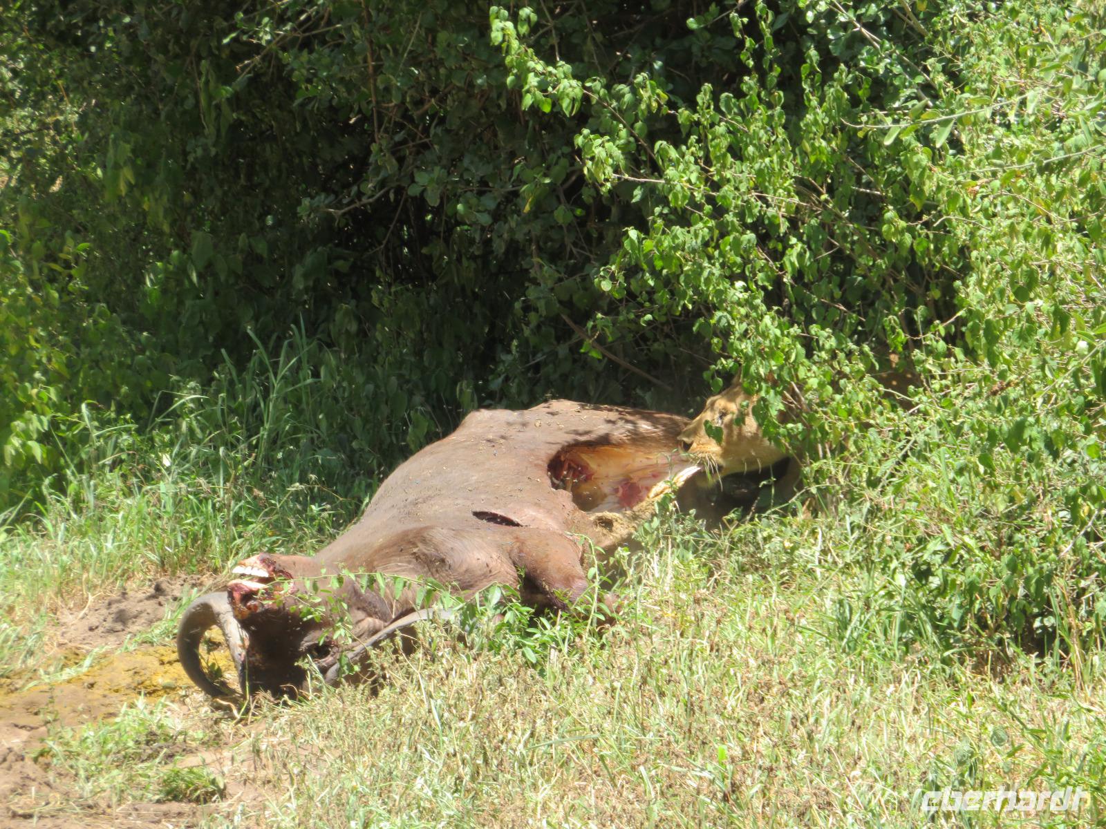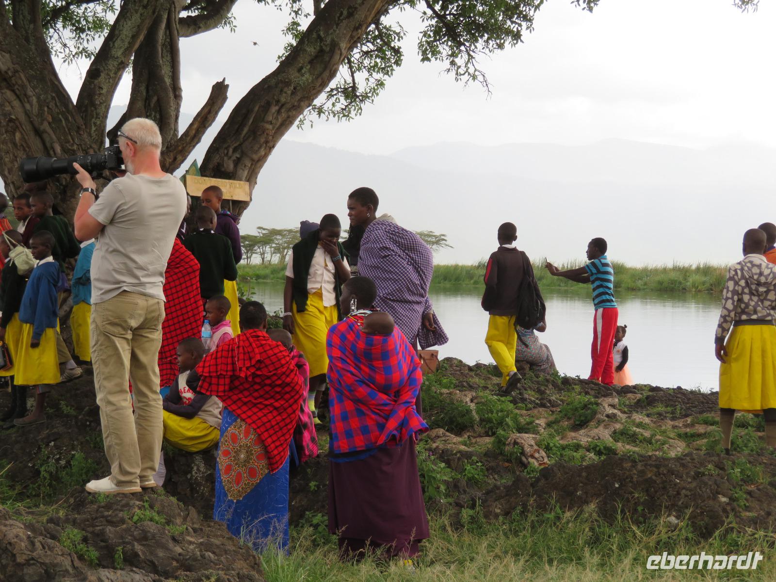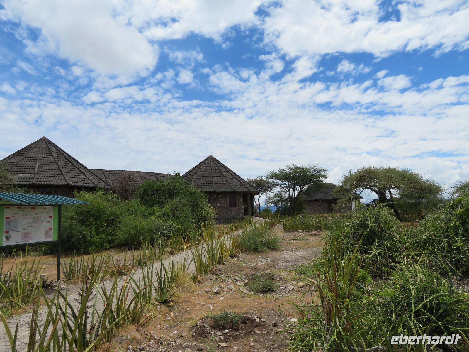 Am Morgen nehmen wir unser Frühstück recht zeitig ein und verlassen dann die wunderschöne Lodge. Unser heutiges Ziel ist zunächst der Lake Manyara-Nationalpark mit dem gleichnamigen See im Herzen des Gebietes. Unsere Fahrt geht erst auf der Hauptstraße entlang, bevor wir in Richtung Nationalpark abbiegen. Nach 35 Kilometern über eine Piste vorbei an kleinen Dörfern und Reisfeldern erreichen wir den Südeingang des Manyara-Nationalparks. Wir unternehmen eine Safarifahrt und sehen bereits am Anfang größere Gruppen von Meerkatzen und Pavianen. Uns begegnen Elefanten, Giraffen und die verschiedensten Vögel, wie zum Beispiel der Kingfisher mit seinem spitzen Schnabel, Geier und Flamingos. Am Ufer des Sees entdecken wir erstmals Gnus, die friedlich mit Zebras gemeinsam grasen. Pelikane und Flamingos bevölkern den See. Majestätisch erheben sich die riesigen Pelikane in die Lüfte und nutzen in großen Scharen die Thermik zum Fliegen - ein faszinierender Anblick. Gegen Mittag erreichen wir die heißen Quellen. Hier entspringt heißes Wasser, welches mit einer Temperatur von 40 - 60°C an die Oberfläche tritt und in den See fließt. Im Gebiet der Quelle und des Zuflusses haben sich spezielle Pflanzen und Bakterien entwickelt, die in diesem Wasser überleben können. Im Manyanasee befindet sich sowohl Süß- als auch Salzwasser. Wir sehen im See auch die ersten Nilpferde. Nachdem wir unsere Mittagspause am See mit gut gefüllten Lunchboxen von der Lodge beendet haben, fahren wir weiter durch den Park. Im dichten Wald sehen wir nur wenige Tiere. Eine Gruppe tobender und balgender junger Meerkatzen zieht uns aber noch in den Bann. Es macht riesigen Spaß, den kleinen Affen zuzuschauen. Am Ende unserer Tour dürfen wir aber noch einen absoluten Höhepunkt erleben: direkt am Rand der Piste sehen wir eine Löwin, die sich redlich müht, einen toten Büffel ins Gebüsch zu ziehen. Beim genauen Hinschauen, entdecken wir gut versteckt im Dickicht eine weitere Löwin und drei junge Löwen. Diese tollen im Gebüsch und versuchen sich auch am Büffel etwas zu holen. Ein einzigartiges Erlebnis, so nah an die Löwen zu kommen. Unser Fahrer vermutet, dass der Büffel in der Nacht von den Löwinnen getötet worden ist und sie diesen nun für ihre Jungen ins Gebüsch holen möchte, damit sich nicht noch andere daran bedienen. Wir sind fasziniert und eine tolle Pirsch mit unendlich vielen Fotos geht für uns zu Ende. Anschließend statten wir der Afrikan Art Gallery noch einen Besuch ab. In dem großzügigen Einkaufszentrum wird eine Vielzahl an Volkskunstartikeln und Souvenirs angeboten. Nun fahren wir zu unserer Lodge. Die Straße zur Endoro Lodge fordert nochmals das ganze Können unserer Fahrer. Dieses Mal sind unsere Zimmer Chalets, die an einem Berghang gebaut sind. Wir bedienen uns am reichhaltigen Buffet und lassen den Tag ausklingen.