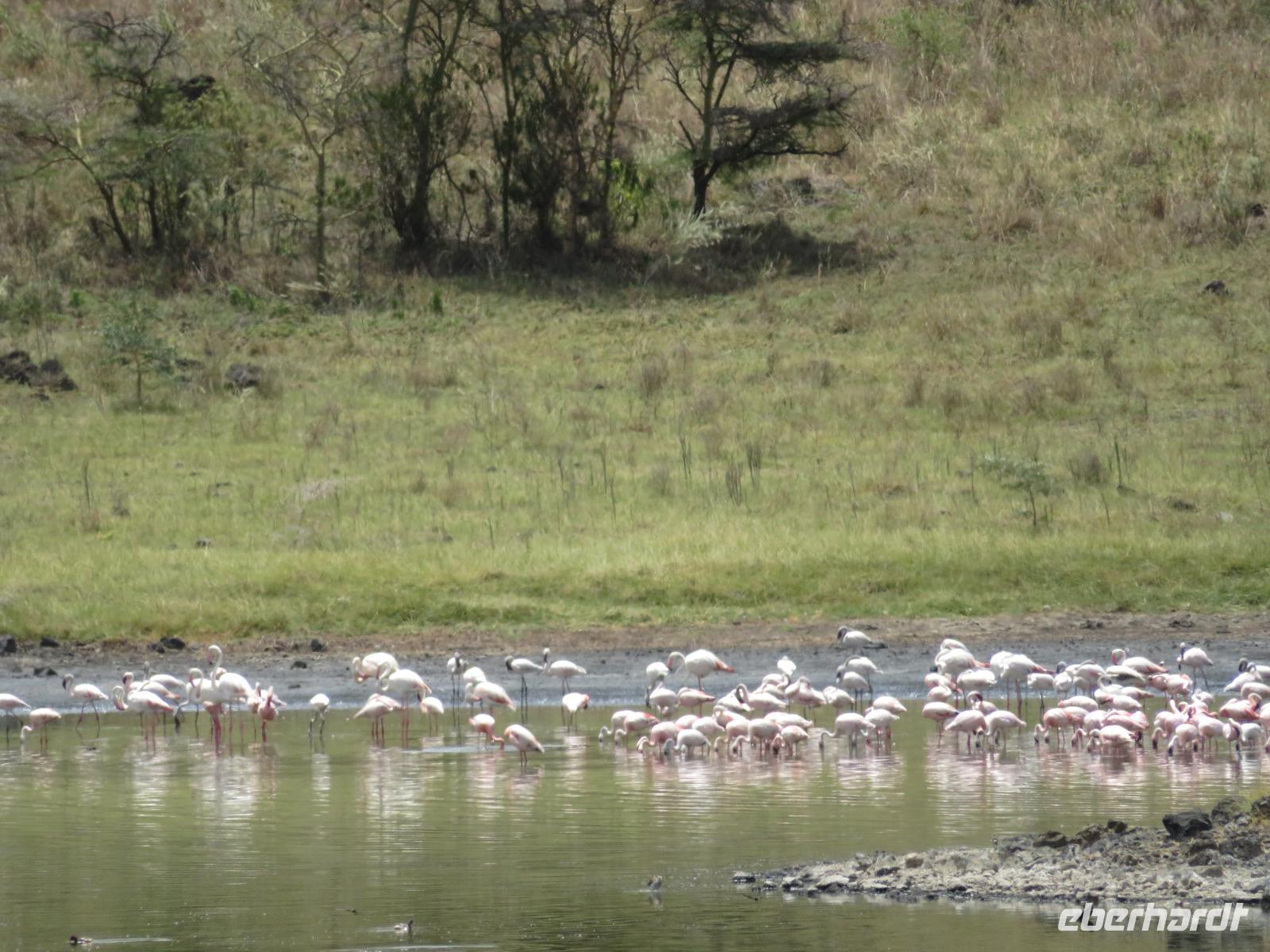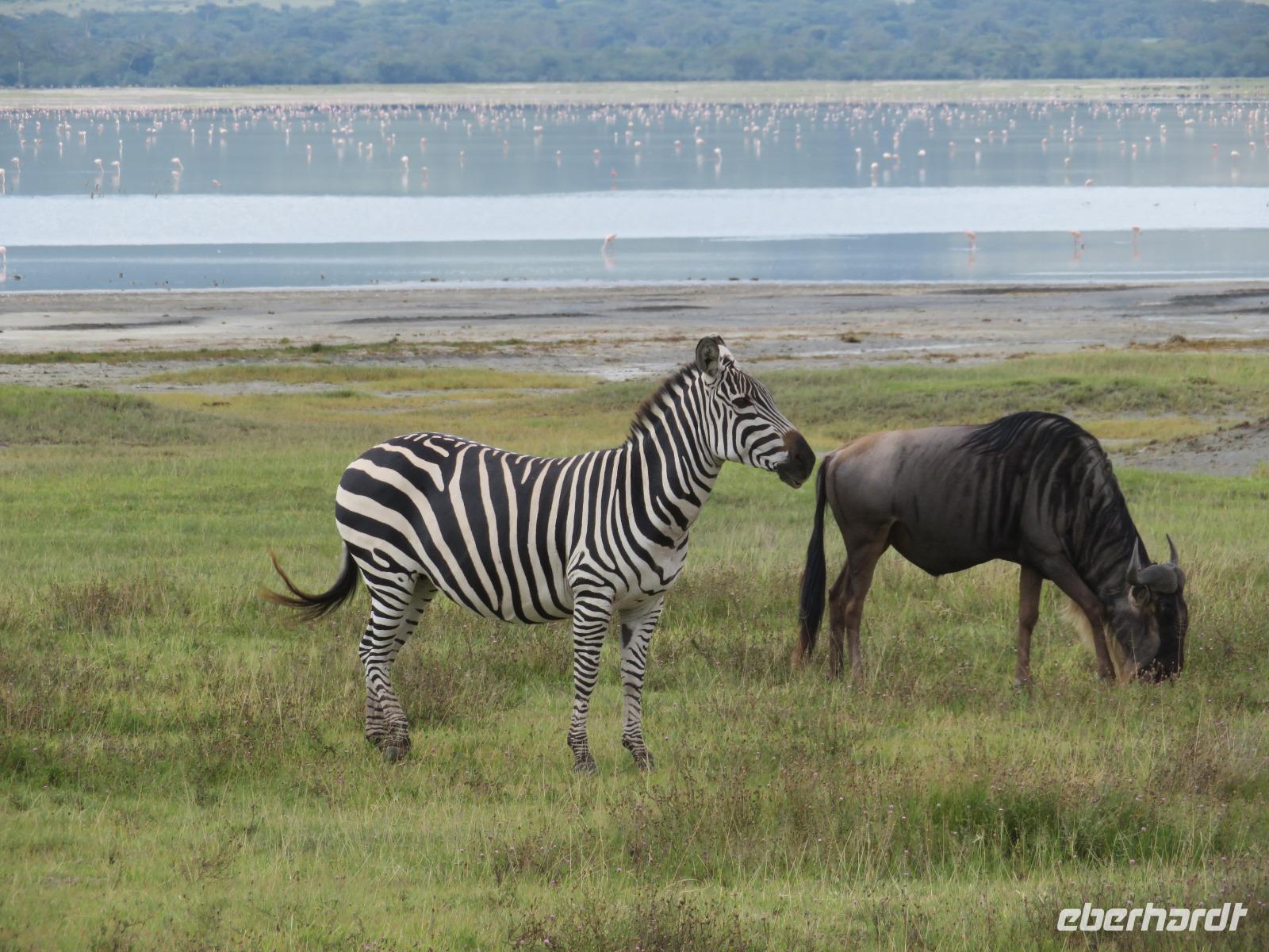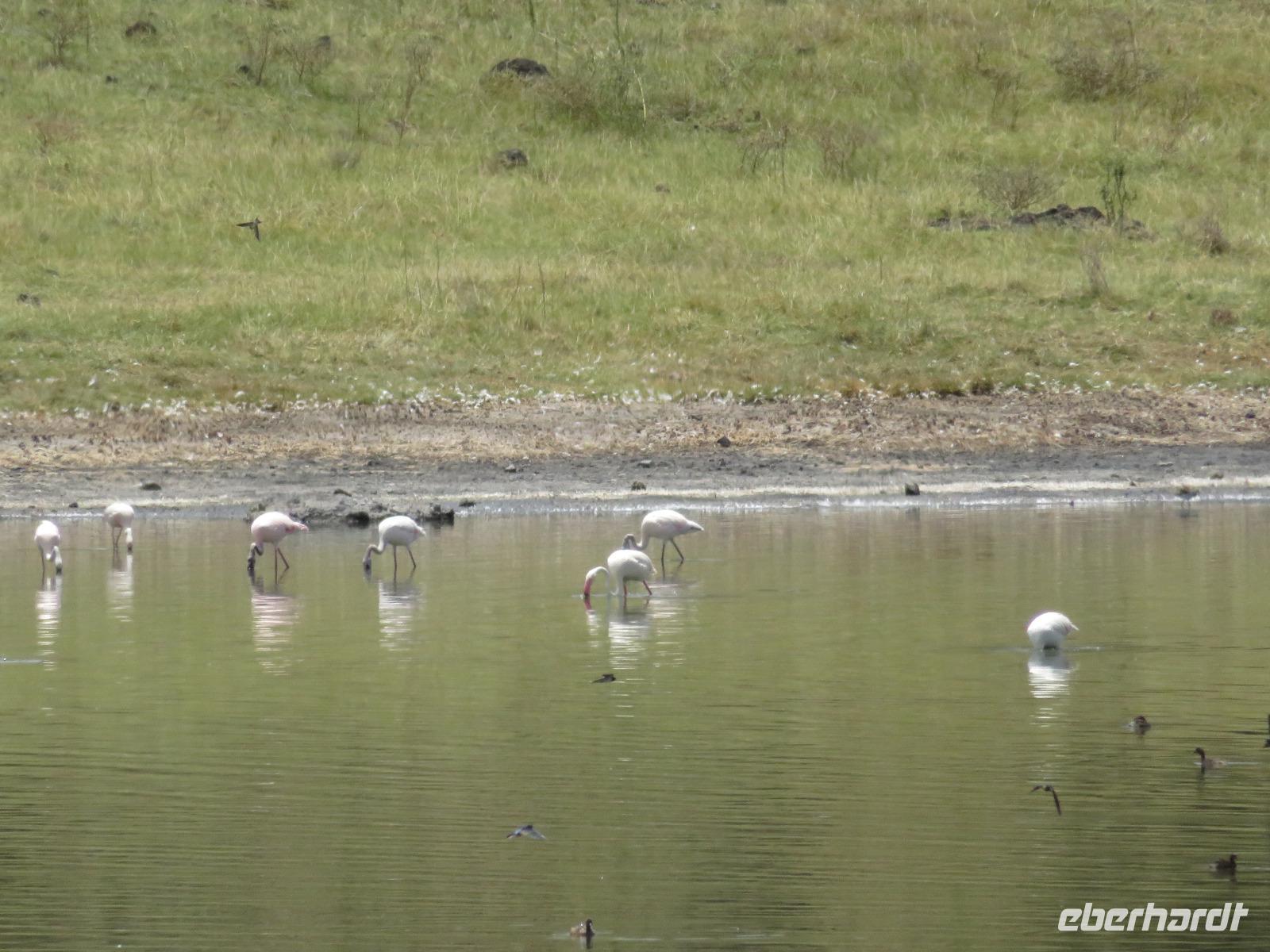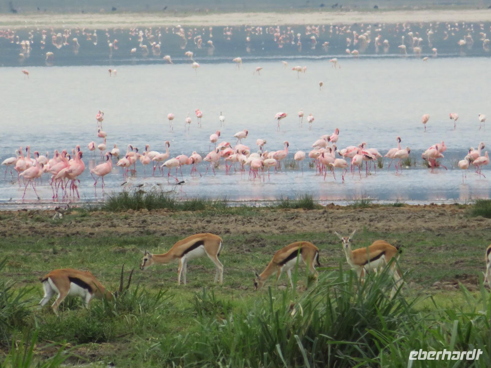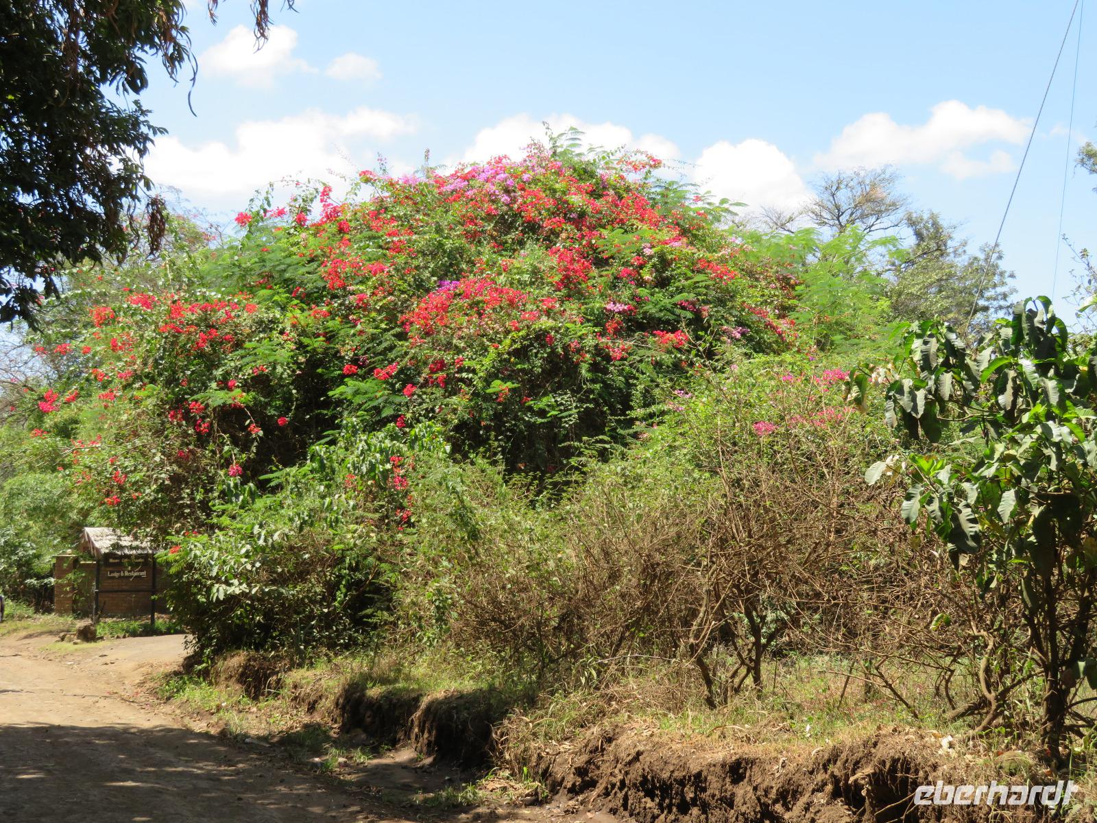 Am Morgen nehmen wir unser Frühstück recht zeitig ein und verlassen dann die wunderschöne Lodge. Unser heutiges Ziel ist zunächst der Lake Manyara-Nationalpark mit dem gleichnamigen See im Herzen des Gebietes. Unsere Fahrt geht erst auf der Hauptstraße entlang, bevor wir in Richtung Nationalpark abbiegen. Nach 35 Kilometern über eine Piste vorbei an kleinen Dörfern und Reisfeldern erreichen wir den Südeingang des Manyara-Nationalparks. Wir unternehmen eine Safarifahrt und sehen bereits am Anfang größere Gruppen von Meerkatzen und Pavianen. Uns begegnen Elefanten, Giraffen und die verschiedensten Vögel, wie zum Beispiel der Kingfisher mit seinem spitzen Schnabel, Geier und Flamingos. Am Ufer des Sees entdecken wir erstmals Gnus, die friedlich mit Zebras gemeinsam grasen. Pelikane und Flamingos bevölkern den See. Majestätisch erheben sich die riesigen Pelikane in die Lüfte und nutzen in großen Scharen die Thermik zum Fliegen - ein faszinierender Anblick. Gegen Mittag erreichen wir die heißen Quellen. Hier entspringt heißes Wasser, welches mit einer Temperatur von 40 - 60°C an die Oberfläche tritt und in den See fließt. Im Gebiet der Quelle und des Zuflusses haben sich spezielle Pflanzen und Bakterien entwickelt, die in diesem Wasser überleben können. Im Manyanasee befindet sich sowohl Süß- als auch Salzwasser. Wir sehen im See auch die ersten Nilpferde. Nachdem wir unsere Mittagspause am See mit gut gefüllten Lunchboxen von der Lodge beendet haben, fahren wir weiter durch den Park. Im dichten Wald sehen wir nur wenige Tiere. Eine Gruppe tobender und balgender junger Meerkatzen zieht uns aber noch in den Bann. Es macht riesigen Spaß, den kleinen Affen zuzuschauen. Am Ende unserer Tour dürfen wir aber noch einen absoluten Höhepunkt erleben: direkt am Rand der Piste sehen wir eine Löwin, die sich redlich müht, einen toten Büffel ins Gebüsch zu ziehen. Beim genauen Hinschauen, entdecken wir gut versteckt im Dickicht eine weitere Löwin und drei junge Löwen. Diese tollen im Gebüsch und versuchen sich auch am Büffel etwas zu holen. Ein einzigartiges Erlebnis, so nah an die Löwen zu kommen. Unser Fahrer vermutet, dass der Büffel in der Nacht von den Löwinnen getötet worden ist und sie diesen nun für ihre Jungen ins Gebüsch holen möchte, damit sich nicht noch andere daran bedienen. Wir sind fasziniert und eine tolle Pirsch mit unendlich vielen Fotos geht für uns zu Ende. Anschließend statten wir der Afrikan Art Gallery noch einen Besuch ab. In dem großzügigen Einkaufszentrum wird eine Vielzahl an Volkskunstartikeln und Souvenirs angeboten. Nun fahren wir zu unserer Lodge. Die Straße zur Endoro Lodge fordert nochmals das ganze Können unserer Fahrer. Dieses Mal sind unsere Zimmer Chalets, die an einem Berghang gebaut sind. Wir bedienen uns am reichhaltigen Buffet und lassen den Tag ausklingen.