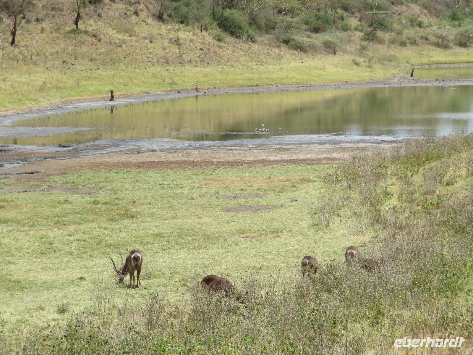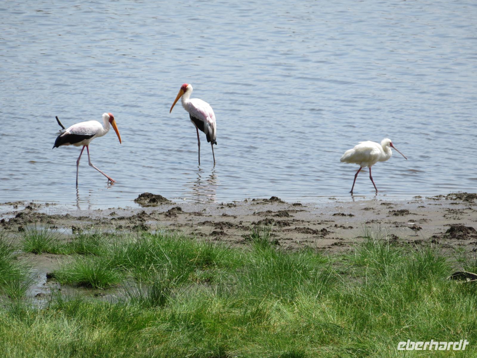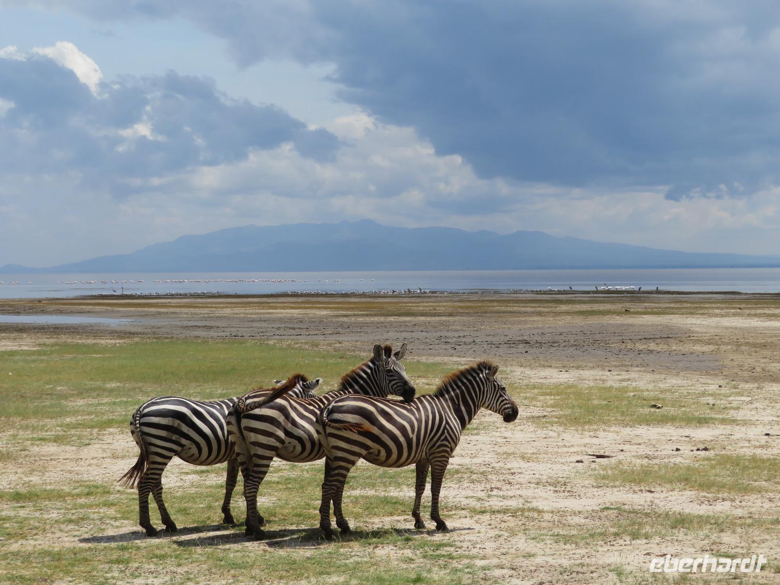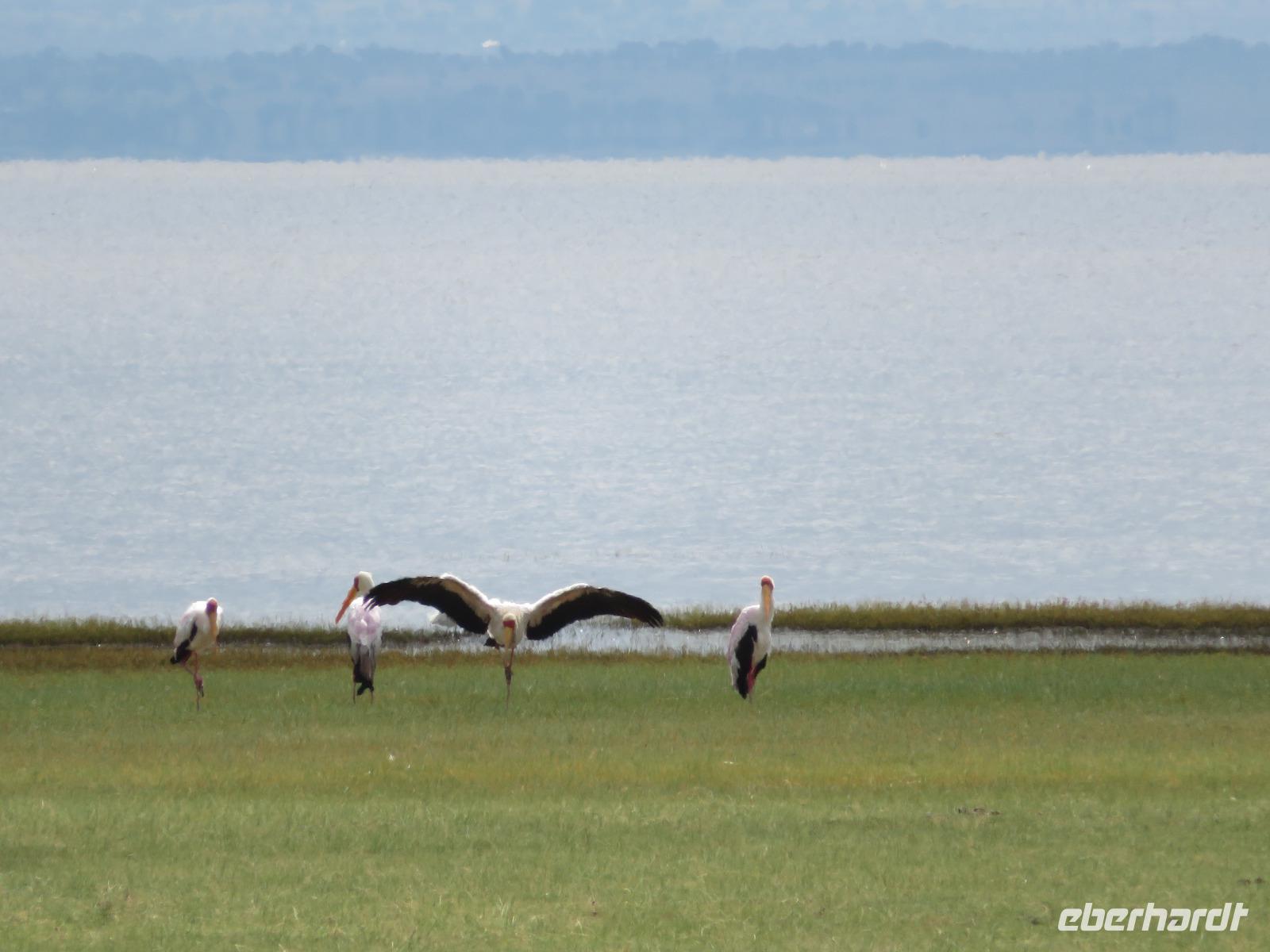 Am Morgen nehmen wir unser Frühstück recht zeitig ein und verlassen dann die wunderschöne Lodge. Unser heutiges Ziel ist zunächst der Lake Manyara-Nationalpark mit dem gleichnamigen See im Herzen des Gebietes. Unsere Fahrt geht erst auf der Hauptstraße entlang, bevor wir in Richtung Nationalpark abbiegen. Nach 35 Kilometern über eine Piste vorbei an kleinen Dörfern und Reisfeldern erreichen wir den Südeingang des Manyara-Nationalparks. Wir unternehmen eine Safarifahrt und sehen bereits am Anfang größere Gruppen von Meerkatzen und Pavianen. Uns begegnen Elefanten, Giraffen und die verschiedensten Vögel, wie zum Beispiel der Kingfisher mit seinem spitzen Schnabel, Geier und Flamingos. Am Ufer des Sees entdecken wir erstmals Gnus, die friedlich mit Zebras gemeinsam grasen. Pelikane und Flamingos bevölkern den See. Majestätisch erheben sich die riesigen Pelikane in die Lüfte und nutzen in großen Scharen die Thermik zum Fliegen - ein faszinierender Anblick. Gegen Mittag erreichen wir die heißen Quellen. Hier entspringt heißes Wasser, welches mit einer Temperatur von 40 - 60°C an die Oberfläche tritt und in den See fließt. Im Gebiet der Quelle und des Zuflusses haben sich spezielle Pflanzen und Bakterien entwickelt, die in diesem Wasser überleben können. Im Manyanasee befindet sich sowohl Süß- als auch Salzwasser. Wir sehen im See auch die ersten Nilpferde. Nachdem wir unsere Mittagspause am See mit gut gefüllten Lunchboxen von der Lodge beendet haben, fahren wir weiter durch den Park. Im dichten Wald sehen wir nur wenige Tiere. Eine Gruppe tobender und balgender junger Meerkatzen zieht uns aber noch in den Bann. Es macht riesigen Spaß, den kleinen Affen zuzuschauen. Am Ende unserer Tour dürfen wir aber noch einen absoluten Höhepunkt erleben: direkt am Rand der Piste sehen wir eine Löwin, die sich redlich müht, einen toten Büffel ins Gebüsch zu ziehen. Beim genauen Hinschauen, entdecken wir gut versteckt im Dickicht eine weitere Löwin und drei junge Löwen. Diese tollen im Gebüsch und versuchen sich auch am Büffel etwas zu holen. Ein einzigartiges Erlebnis, so nah an die Löwen zu kommen. Unser Fahrer vermutet, dass der Büffel in der Nacht von den Löwinnen getötet worden ist und sie diesen nun für ihre Jungen ins Gebüsch holen möchte, damit sich nicht noch andere daran bedienen. Wir sind fasziniert und eine tolle Pirsch mit unendlich vielen Fotos geht für uns zu Ende. Anschließend statten wir der Afrikan Art Gallery noch einen Besuch ab. In dem großzügigen Einkaufszentrum wird eine Vielzahl an Volkskunstartikeln und Souvenirs angeboten. Nun fahren wir zu unserer Lodge. Die Straße zur Endoro Lodge fordert nochmals das ganze Können unserer Fahrer. Dieses Mal sind unsere Zimmer Chalets, die an einem Berghang gebaut sind. Wir bedienen uns am reichhaltigen Buffet und lassen den Tag ausklingen.