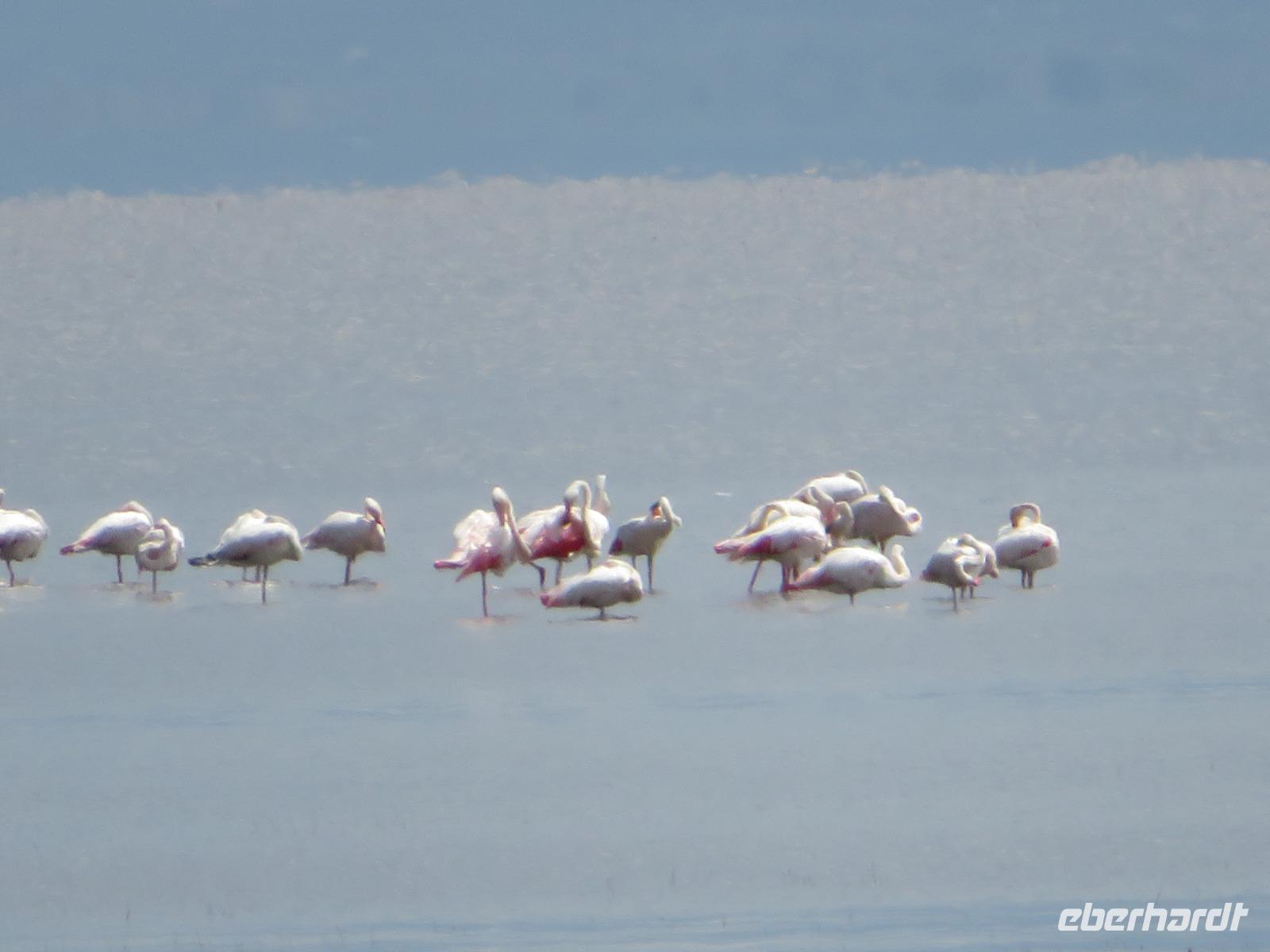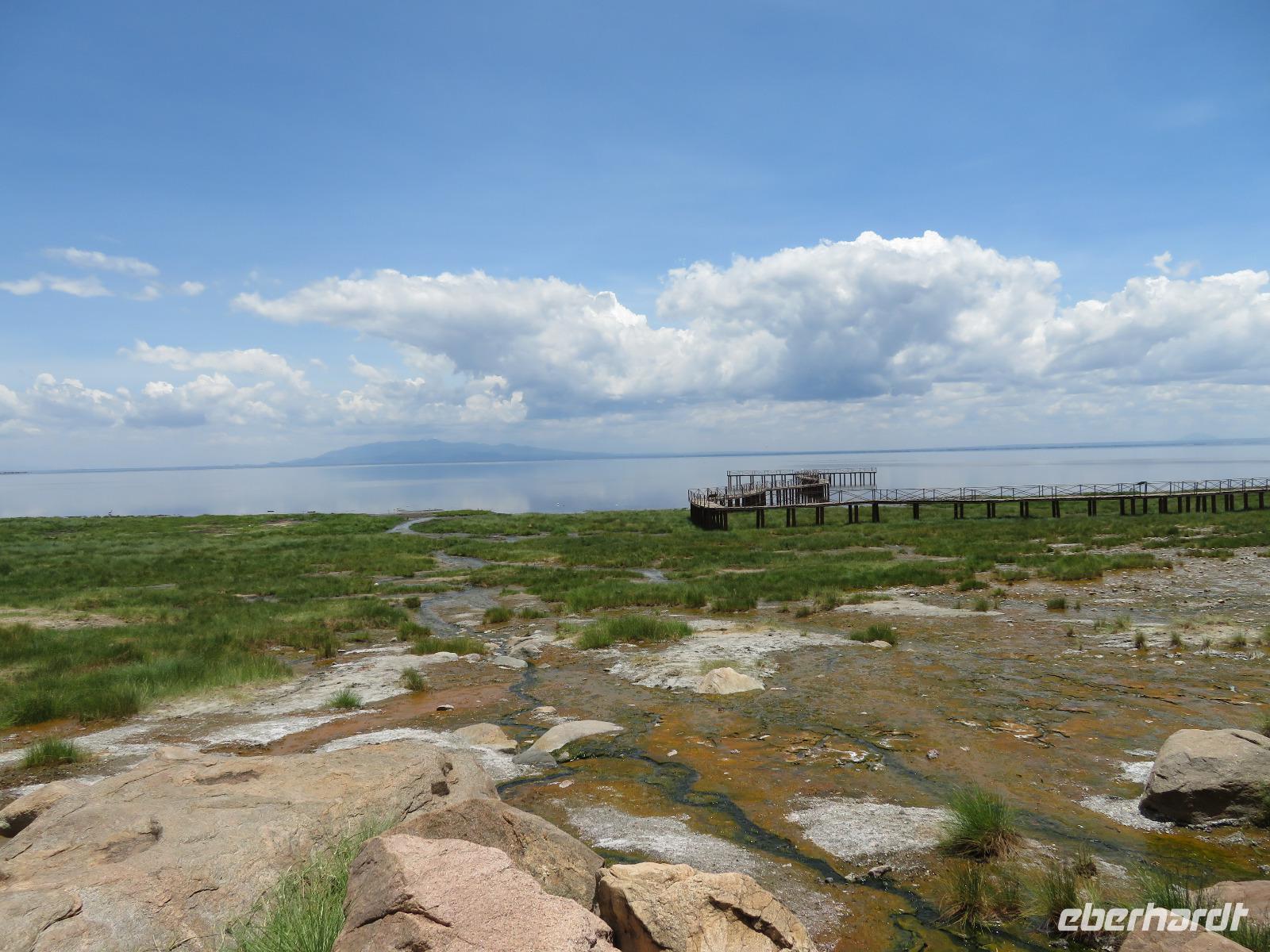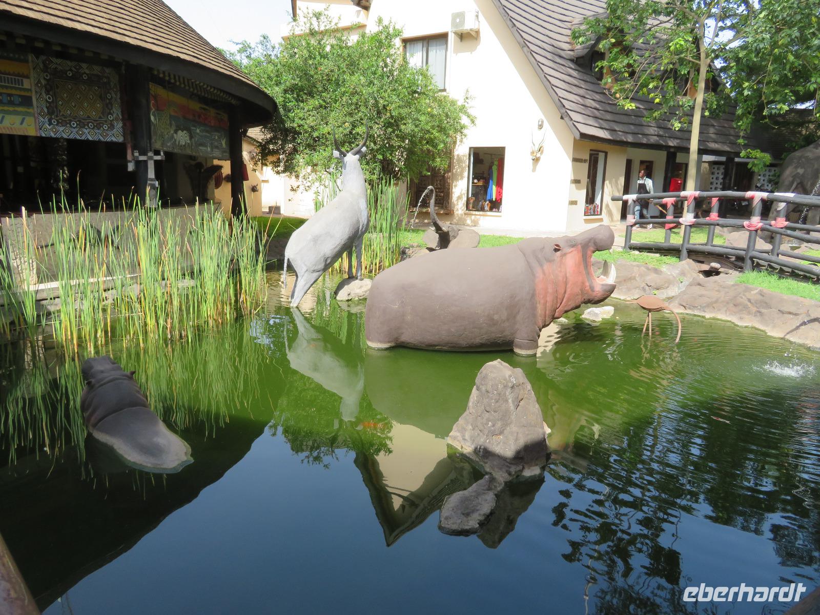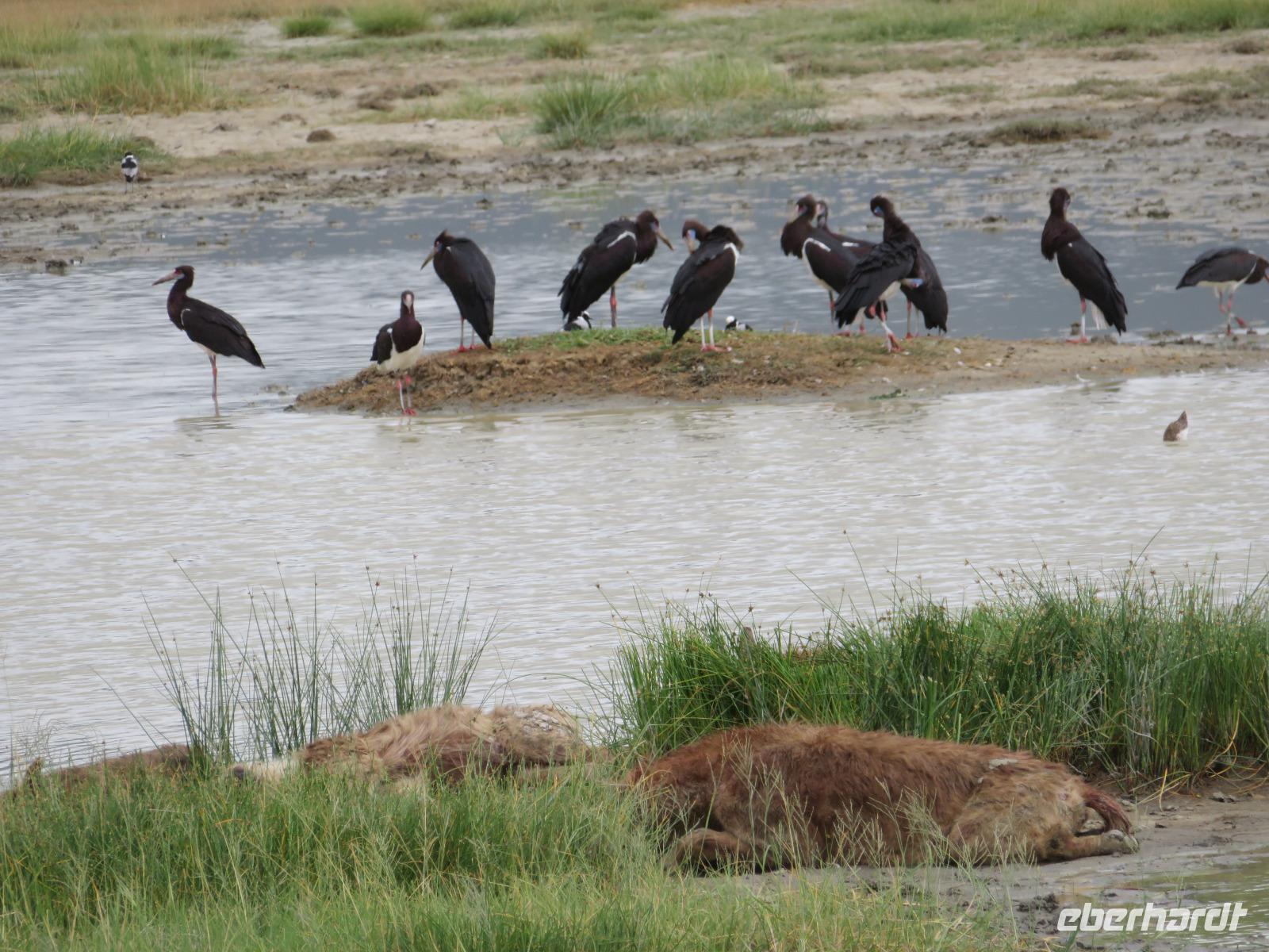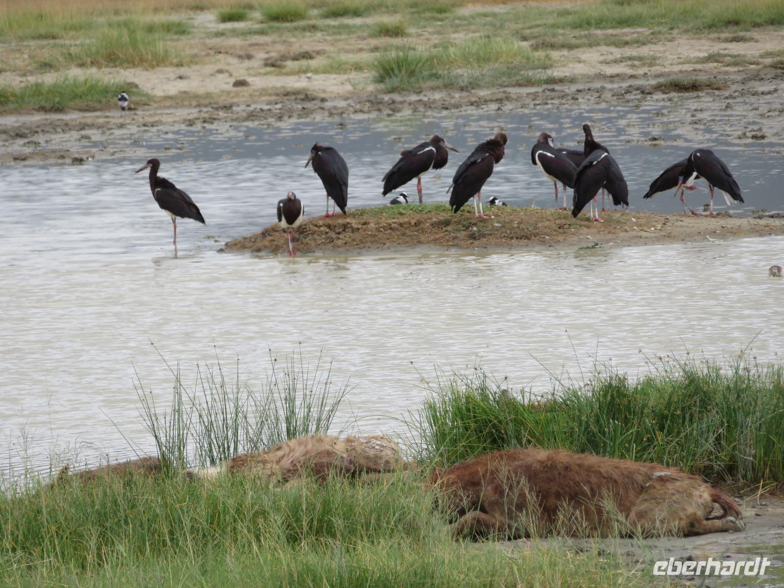 Am Morgen nehmen wir unser Frühstück recht zeitig ein und verlassen dann die wunderschöne Lodge. Unser heutiges Ziel ist zunächst der Lake Manyara-Nationalpark mit dem gleichnamigen See im Herzen des Gebietes. Unsere Fahrt geht erst auf der Hauptstraße entlang, bevor wir in Richtung Nationalpark abbiegen. Nach 35 Kilometern über eine Piste vorbei an kleinen Dörfern und Reisfeldern erreichen wir den Südeingang des Manyara-Nationalparks. Wir unternehmen eine Safarifahrt und sehen bereits am Anfang größere Gruppen von Meerkatzen und Pavianen. Uns begegnen Elefanten, Giraffen und die verschiedensten Vögel, wie zum Beispiel der Kingfisher mit seinem spitzen Schnabel, Geier und Flamingos. Am Ufer des Sees entdecken wir erstmals Gnus, die friedlich mit Zebras gemeinsam grasen. Pelikane und Flamingos bevölkern den See. Majestätisch erheben sich die riesigen Pelikane in die Lüfte und nutzen in großen Scharen die Thermik zum Fliegen - ein faszinierender Anblick. Gegen Mittag erreichen wir die heißen Quellen. Hier entspringt heißes Wasser, welches mit einer Temperatur von 40 - 60°C an die Oberfläche tritt und in den See fließt. Im Gebiet der Quelle und des Zuflusses haben sich spezielle Pflanzen und Bakterien entwickelt, die in diesem Wasser überleben können. Im Manyanasee befindet sich sowohl Süß- als auch Salzwasser. Wir sehen im See auch die ersten Nilpferde. Nachdem wir unsere Mittagspause am See mit gut gefüllten Lunchboxen von der Lodge beendet haben, fahren wir weiter durch den Park. Im dichten Wald sehen wir nur wenige Tiere. Eine Gruppe tobender und balgender junger Meerkatzen zieht uns aber noch in den Bann. Es macht riesigen Spaß, den kleinen Affen zuzuschauen. Am Ende unserer Tour dürfen wir aber noch einen absoluten Höhepunkt erleben: direkt am Rand der Piste sehen wir eine Löwin, die sich redlich müht, einen toten Büffel ins Gebüsch zu ziehen. Beim genauen Hinschauen, entdecken wir gut versteckt im Dickicht eine weitere Löwin und drei junge Löwen. Diese tollen im Gebüsch und versuchen sich auch am Büffel etwas zu holen. Ein einzigartiges Erlebnis, so nah an die Löwen zu kommen. Unser Fahrer vermutet, dass der Büffel in der Nacht von den Löwinnen getötet worden ist und sie diesen nun für ihre Jungen ins Gebüsch holen möchte, damit sich nicht noch andere daran bedienen. Wir sind fasziniert und eine tolle Pirsch mit unendlich vielen Fotos geht für uns zu Ende. Anschließend statten wir der Afrikan Art Gallery noch einen Besuch ab. In dem großzügigen Einkaufszentrum wird eine Vielzahl an Volkskunstartikeln und Souvenirs angeboten. Nun fahren wir zu unserer Lodge. Die Straße zur Endoro Lodge fordert nochmals das ganze Können unserer Fahrer. Dieses Mal sind unsere Zimmer Chalets, die an einem Berghang gebaut sind. Wir bedienen uns am reichhaltigen Buffet und lassen den Tag ausklingen.