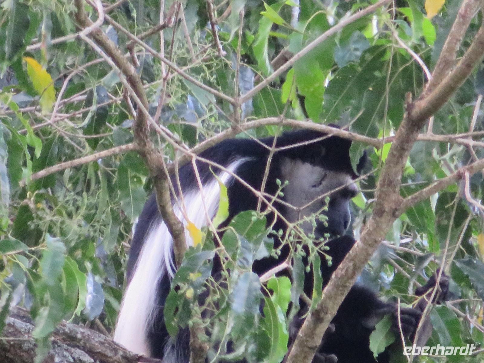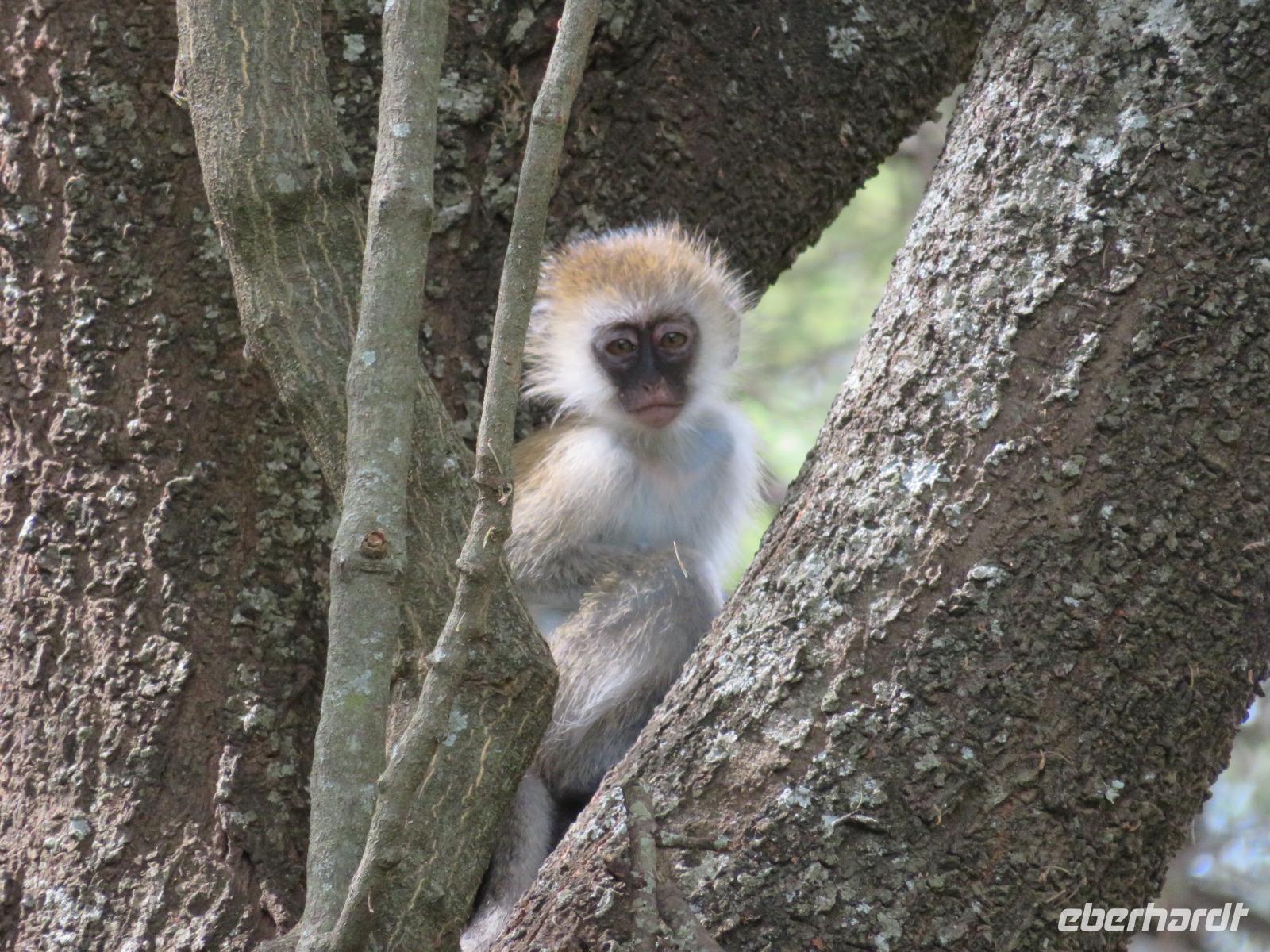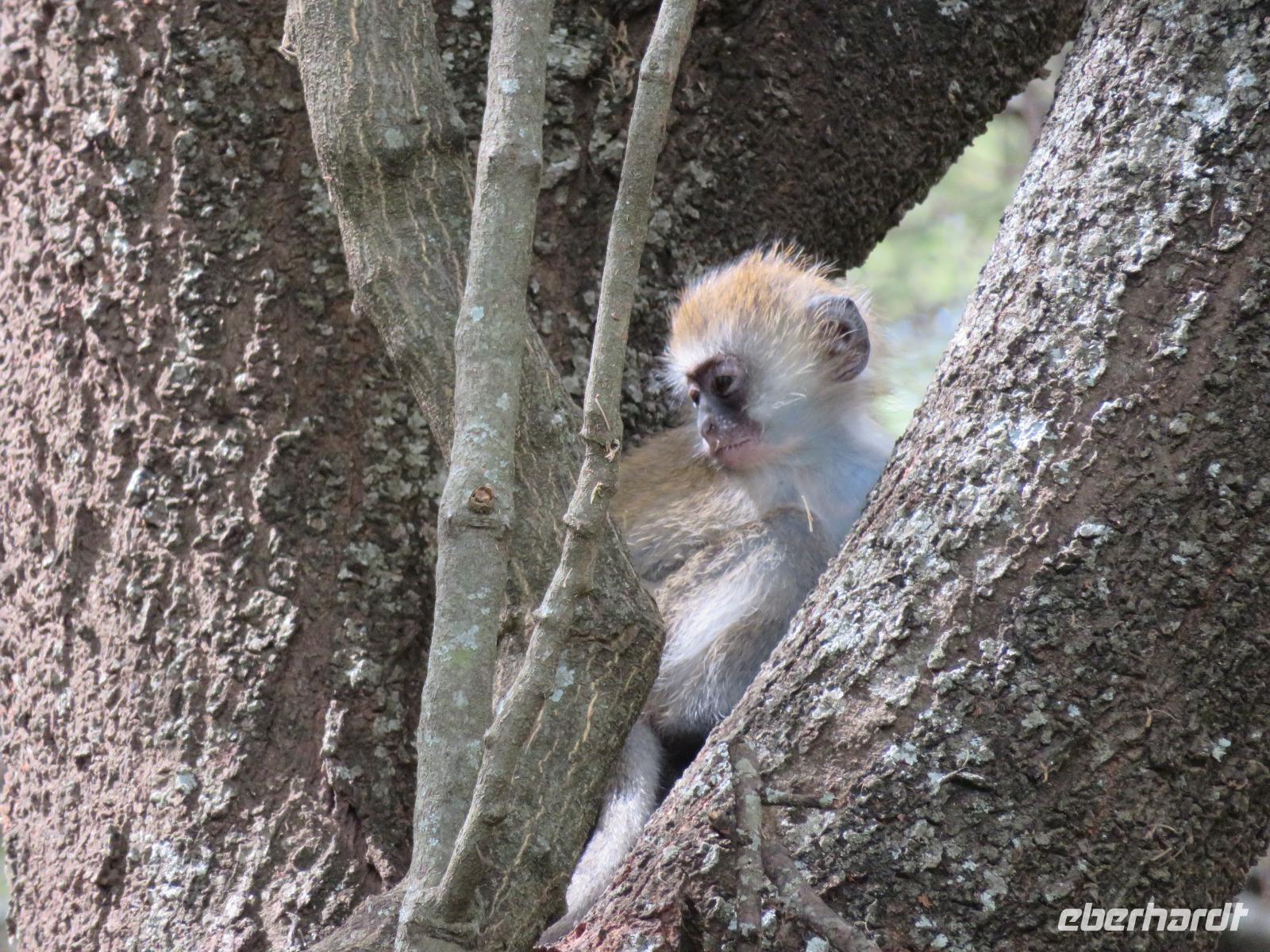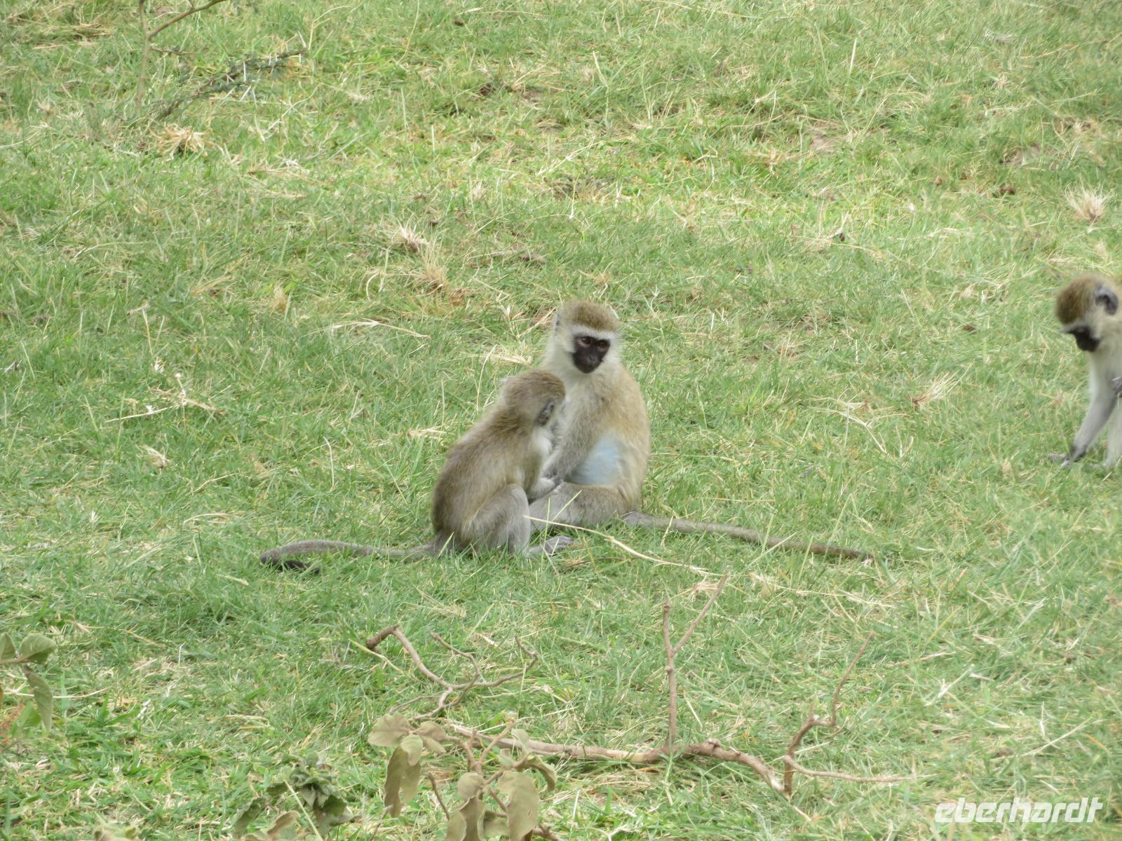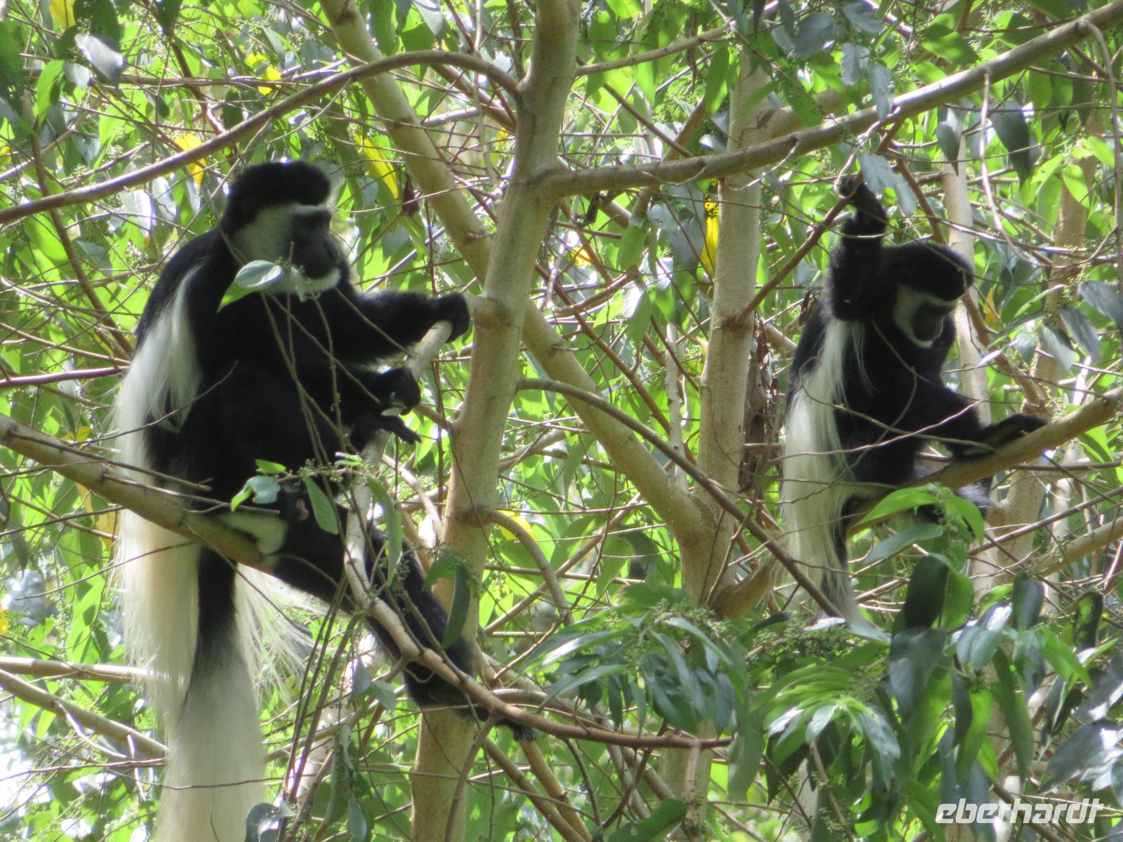 Ab heute fahren wir in zwei Jeeps. Unser erstes Ziel ist der Arusha-Nationalpark. Er ist mit 135 km² einer der kleineren Nationalparks Tansanias wurde aber bereits 1907 gegründet. Der Weg führt uns durch eine abwechslungsreiche Landschaft aus Savannen und Bergwäldern. Wir fahren zunächst zum Aussichtspunkt oberhalb des Ngurudoto Kraters. Dabei entdecken wir erstmals Paviane. Vom Aussichtspunkt sehen wir den Krater und Kafferbüffel. Weiter führt uns unsere Tour durch den Park. Wir beobachten die beeindruckenden schwarz-weißen Colobus-Affen. Ihre dicken weißen Schwänze sind weithin sichtbar im dichten Geäst der Bäume. Ganz in der Nähe turnen Meerkatzen, eine weitere Affenart durch die Wipfel der Bäume. Auf unserer weiteren Pirsch begegnen uns Giraffen, Buschböcke und Warzenschweine. Unsere Tour führt uns zu den Momella-Seen. Hier entdecken wir Scharen von Flamingos. Wir sehen die ägyptische Wasserganz und weitere Wasservögel. Am späten Mittag fahren wir zu einem Gate und nehmen das Mittag aus unseren Lunchboxen, welche uns das nette Personal unserer Lodge mitgegeben hat. Beim Aussteigen aus dem Jeep kommt gleich ein frecher Pavian und klaut eine Lunchbox. Zum Glück schreiten unsere Driver-Guides ein uns so erwischt er nur ein belegtes Brötchen. Anschließend kehren wir zur Lodge zurück. Dabei entdecken wir noch Buschböcke und wieder Meerkatzen und Colobus-Affen. Bis zum Abendessen bleibt noch etwas Zeit zum Entspannen.