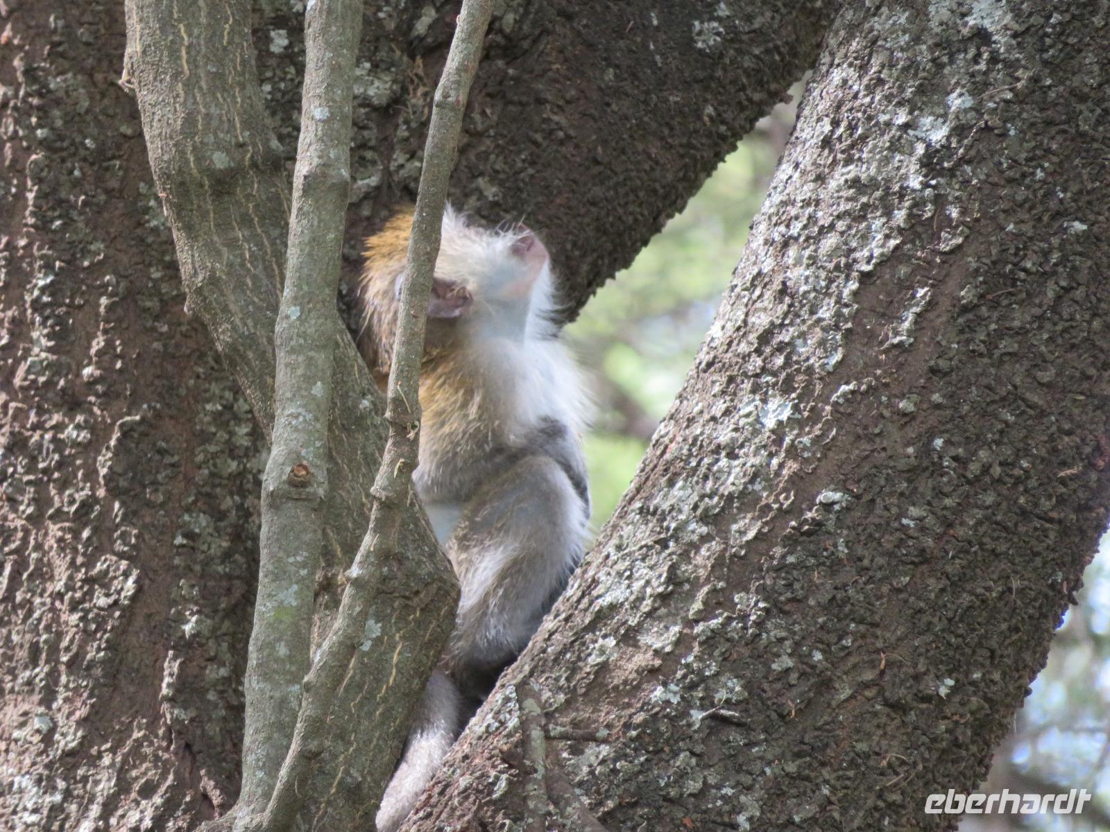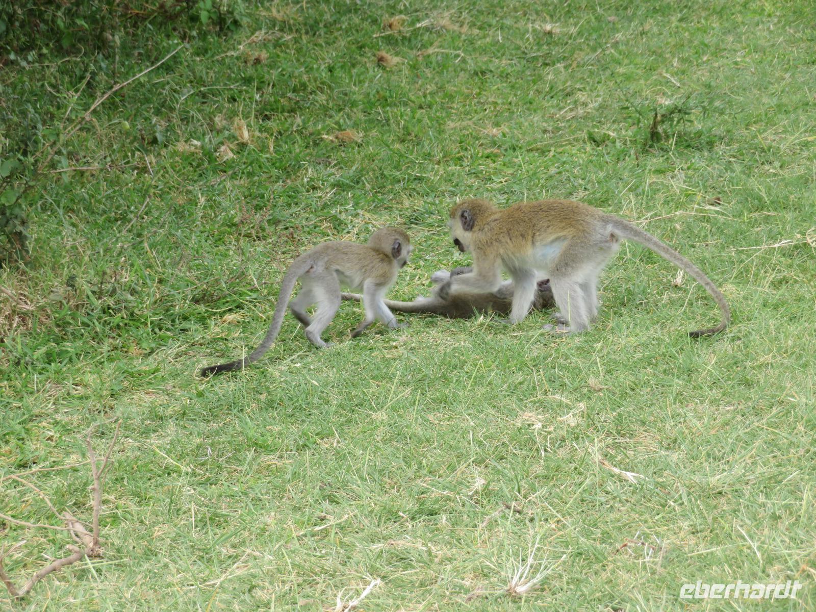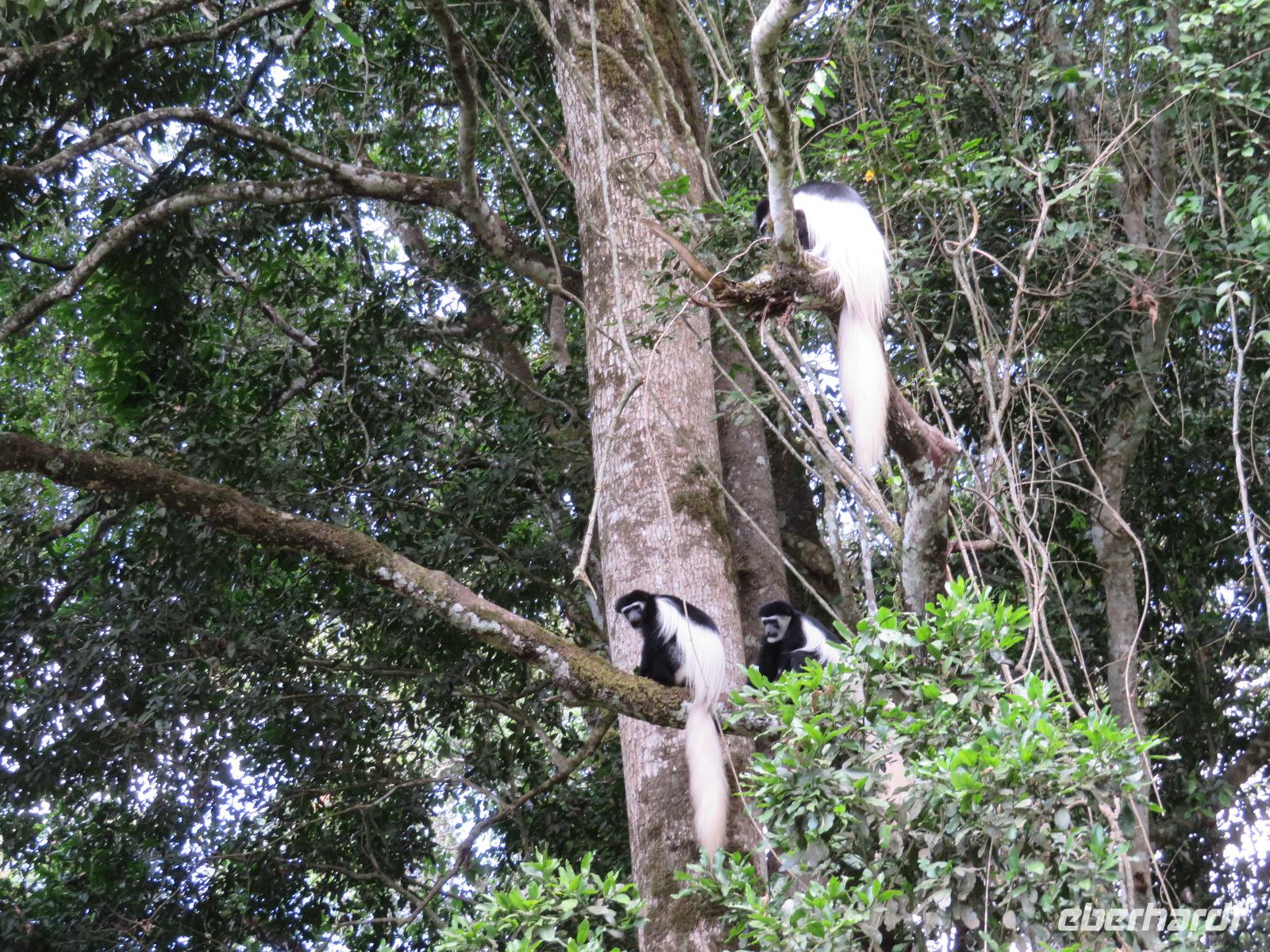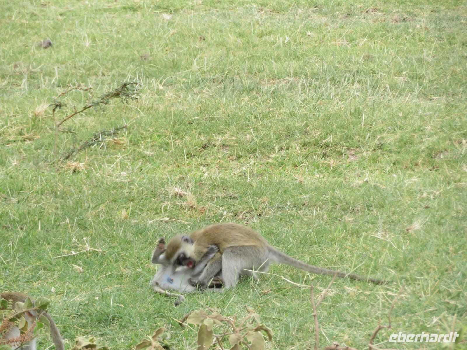 Ab heute fahren wir in zwei Jeeps. Unser erstes Ziel ist der Arusha-Nationalpark. Er ist mit 135 km² einer der kleineren Nationalparks Tansanias wurde aber bereits 1907 gegründet. Der Weg führt uns durch eine abwechslungsreiche Landschaft aus Savannen und Bergwäldern. Wir fahren zunächst zum Aussichtspunkt oberhalb des Ngurudoto Kraters. Dabei entdecken wir erstmals Paviane. Vom Aussichtspunkt sehen wir den Krater und Kafferbüffel. Weiter führt uns unsere Tour durch den Park. Wir beobachten die beeindruckenden schwarz-weißen Colobus-Affen. Ihre dicken weißen Schwänze sind weithin sichtbar im dichten Geäst der Bäume. Ganz in der Nähe turnen Meerkatzen, eine weitere Affenart durch die Wipfel der Bäume. Auf unserer weiteren Pirsch begegnen uns Giraffen, Buschböcke und Warzenschweine. Unsere Tour führt uns zu den Momella-Seen. Hier entdecken wir Scharen von Flamingos. Wir sehen die ägyptische Wasserganz und weitere Wasservögel. Am späten Mittag fahren wir zu einem Gate und nehmen das Mittag aus unseren Lunchboxen, welche uns das nette Personal unserer Lodge mitgegeben hat. Beim Aussteigen aus dem Jeep kommt gleich ein frecher Pavian und klaut eine Lunchbox. Zum Glück schreiten unsere Driver-Guides ein uns so erwischt er nur ein belegtes Brötchen. Anschließend kehren wir zur Lodge zurück. Dabei entdecken wir noch Buschböcke und wieder Meerkatzen und Colobus-Affen. Bis zum Abendessen bleibt noch etwas Zeit zum Entspannen.