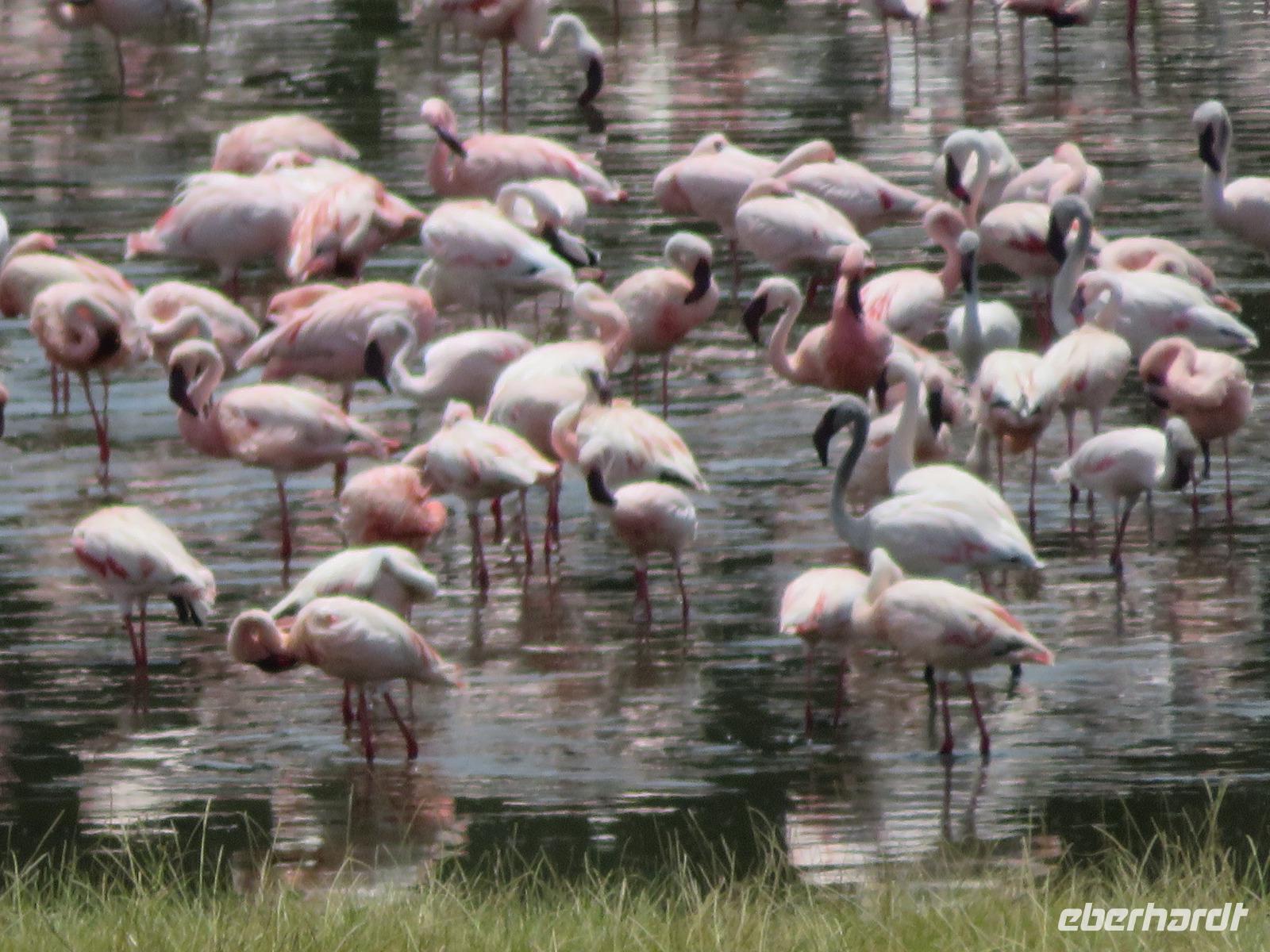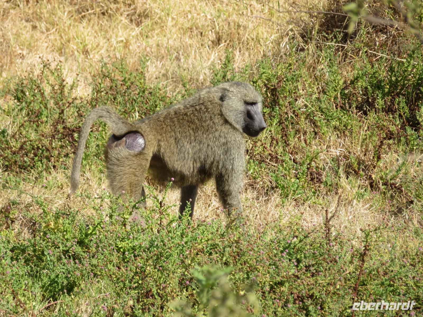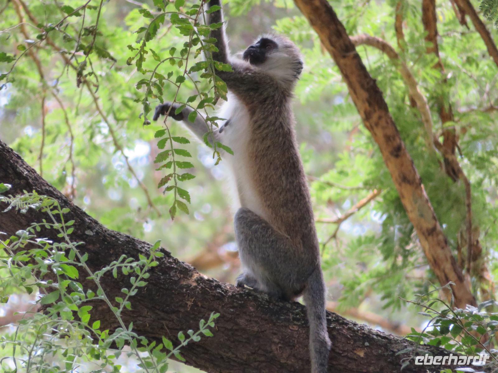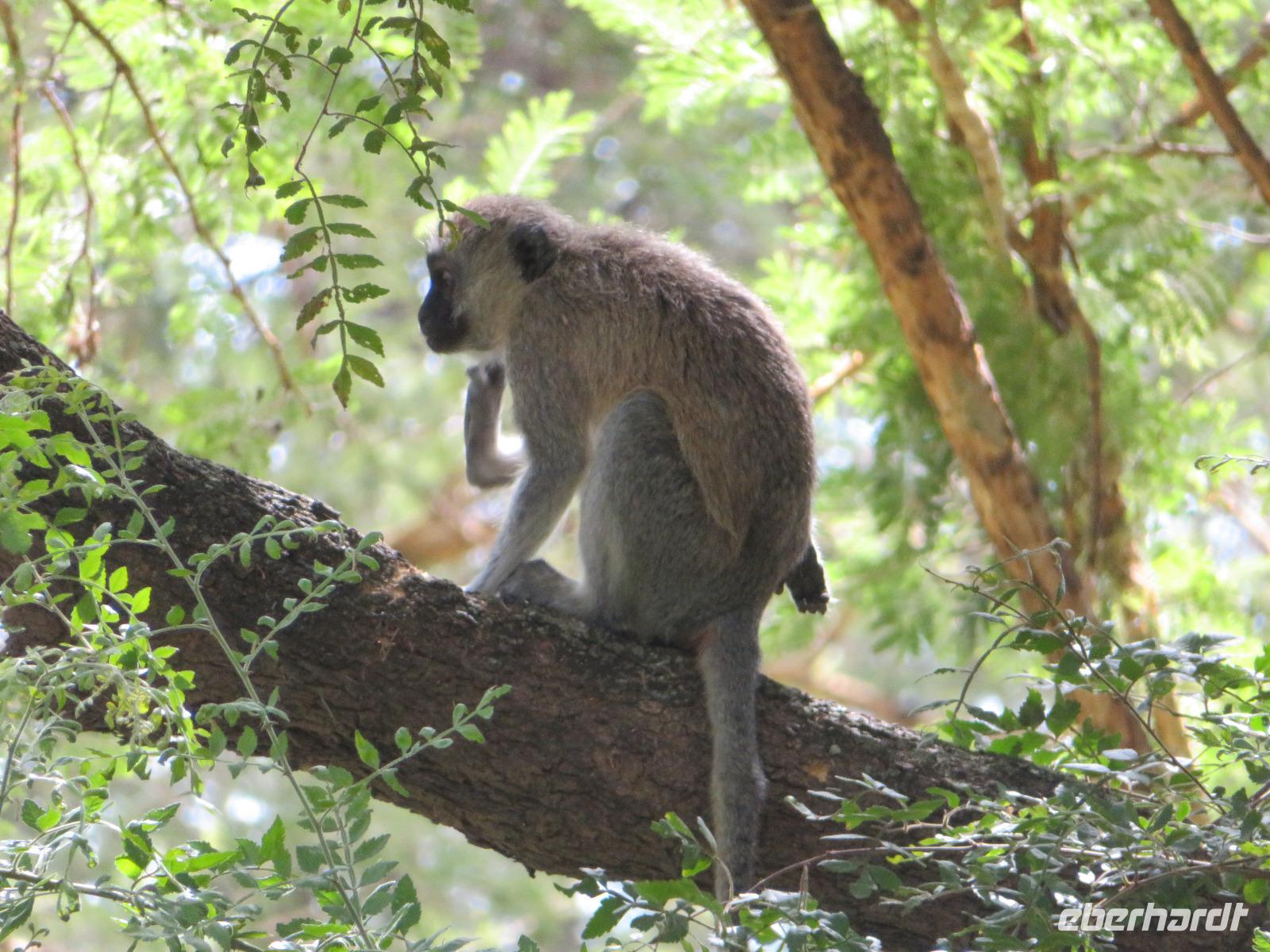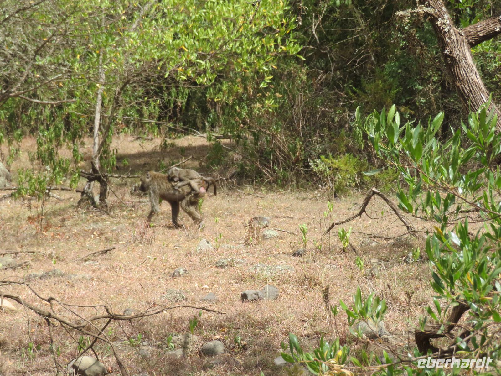 Ab heute fahren wir in zwei Jeeps. Unser erstes Ziel ist der Arusha-Nationalpark. Er ist mit 135 km² einer der kleineren Nationalparks Tansanias wurde aber bereits 1907 gegründet. Der Weg führt uns durch eine abwechslungsreiche Landschaft aus Savannen und Bergwäldern. Wir fahren zunächst zum Aussichtspunkt oberhalb des Ngurudoto Kraters. Dabei entdecken wir erstmals Paviane. Vom Aussichtspunkt sehen wir den Krater und Kafferbüffel. Weiter führt uns unsere Tour durch den Park. Wir beobachten die beeindruckenden schwarz-weißen Colobus-Affen. Ihre dicken weißen Schwänze sind weithin sichtbar im dichten Geäst der Bäume. Ganz in der Nähe turnen Meerkatzen, eine weitere Affenart durch die Wipfel der Bäume. Auf unserer weiteren Pirsch begegnen uns Giraffen, Buschböcke und Warzenschweine. Unsere Tour führt uns zu den Momella-Seen. Hier entdecken wir Scharen von Flamingos. Wir sehen die ägyptische Wasserganz und weitere Wasservögel. Am späten Mittag fahren wir zu einem Gate und nehmen das Mittag aus unseren Lunchboxen, welche uns das nette Personal unserer Lodge mitgegeben hat. Beim Aussteigen aus dem Jeep kommt gleich ein frecher Pavian und klaut eine Lunchbox. Zum Glück schreiten unsere Driver-Guides ein uns so erwischt er nur ein belegtes Brötchen. Anschließend kehren wir zur Lodge zurück. Dabei entdecken wir noch Buschböcke und wieder Meerkatzen und Colobus-Affen. Bis zum Abendessen bleibt noch etwas Zeit zum Entspannen.