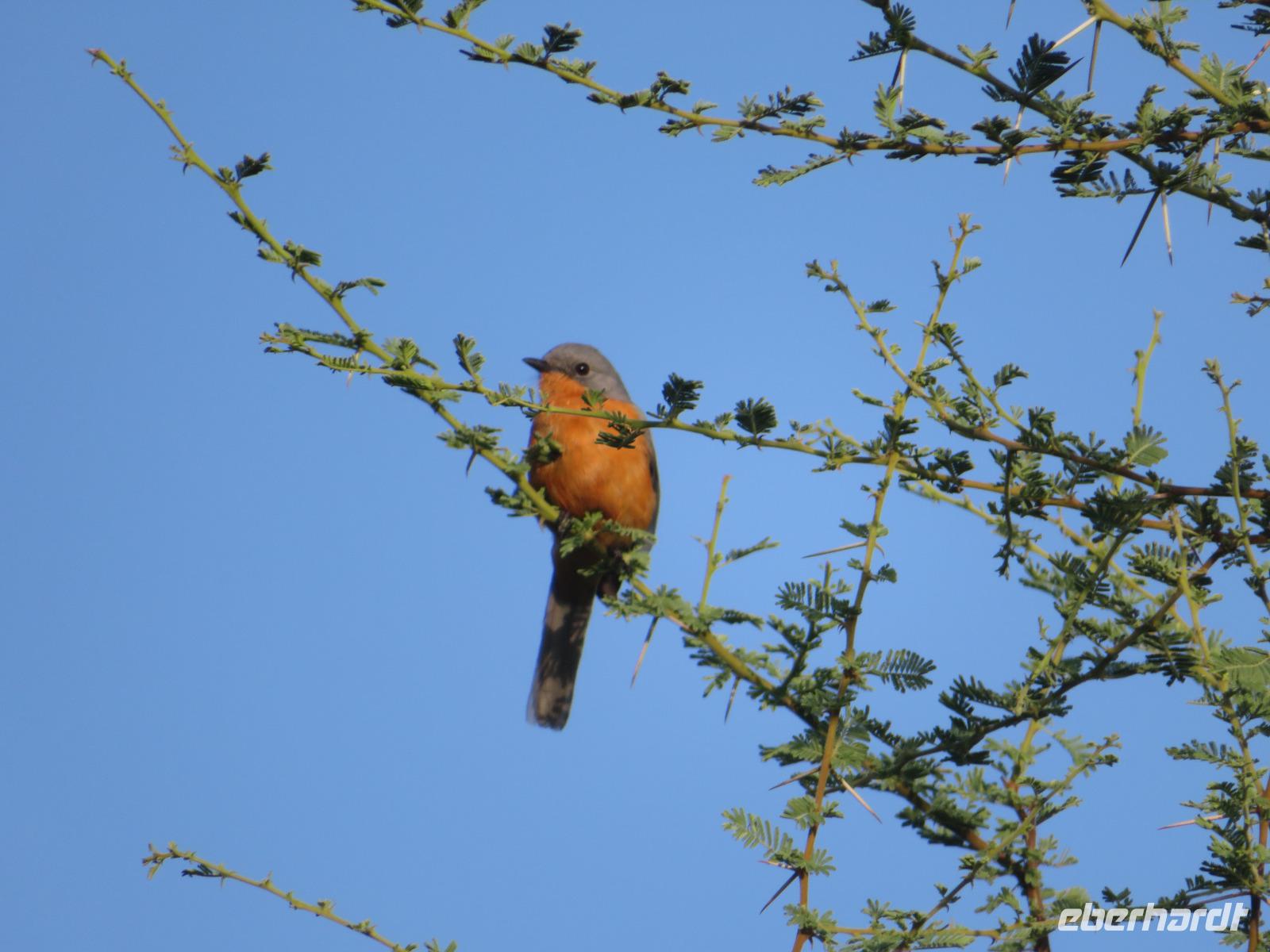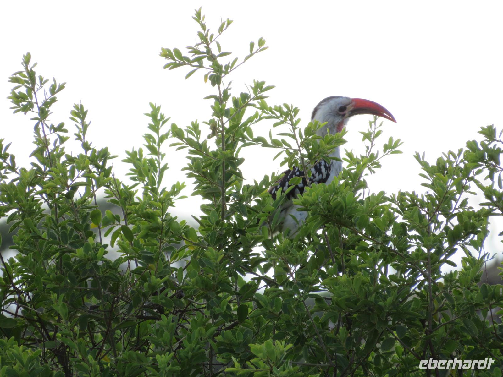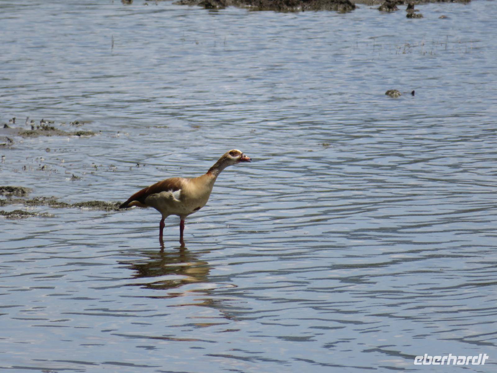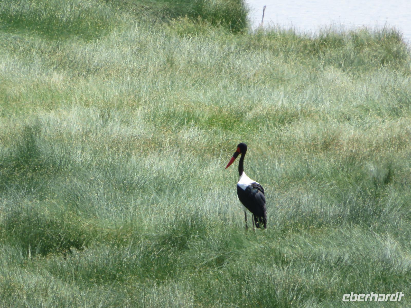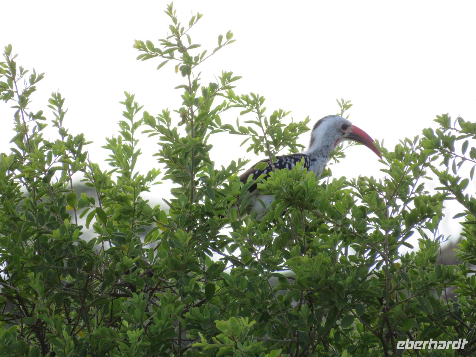 Wir haben die Nacht alle gut verbracht und starten gut gelaunt in den neuen Tag. Nach einem zeitigen Frühstück starten wir zur nächsten Pirschfahrt in den Park. Gleich zu Beginn begegnen uns wieder Impalas und Wasserböcke. Uns beeindrucken aber auch die riesigen Baobab-Bäume. Diese können bis zu 2.500 Jahre alt werden und sind sehr imposant. Leider sehen wir zunächst nur verschiedene Vögel, wie Kronenkraniche, Adler, Gaukler und Glanzstare. Die großen Tiere lassen noch auf sich warten. Doch bald sehen wir Giraffen und Strauße. Kleine, ganz reizend aussehende Dikdiks, die kleinste Antilopenart, kreuzen unseren Weg. Und auch einen Springschliefer, eine seltene kleine Antilopenart entdecken wir auf einem Stein. Plötzlich hören wir regen Funkverkehr zwischen den Rangern von verschiedenen Fahrzeugen. Nach einer kurzen Toiletten-Pause geht die Fahrt nun etwas zügiger. Irgendetwas haben die Ranger entdeckt. Wir lassen Giraffen, Sträuße und verschiedene Vögel erst mal links liegen. Am Rand des großen Sumpfgebietes des Tranagire- Nationalparks haben die Ranger Löwen entdeckt. Drei stattliche Löwenherren - vermutlich Brüder - liegen in der Sonne und dösen vor sich hin. Wir können bis auf wenige Meter an den König der Tiere ranfahren. Vermutlich haben sie am Morgen eine Antilope gerissen und sind nun satt. Ein tolles Erlebnis mit wunderschönen Bildern. Nun geht es zurück und wir beobachten dabei noch Hornvögel, Störche und Zebramangusten. Am Picknickplatz mit herrlicher Aussicht über das große Sumpfgebiet zaubern unsere beiden Fahrer ein vorzügliches Mittagessen aus dem Auto. Die Küchencrew der Lodge hatte uns ein wunderbares Menü mitgegeben. Dieses wurde uns stilecht mit Tischdecke und Geschirr serviert. Wir waren begeistert. Gut gestärkt treten wir nun die Rückfahrt Richtung Lodge an. Unterwegs sehen wir nochmals Giraffen, Zebras und immer wieder auch Impalas und Warzenschweine. Kurz vor dem Verlassen des Parks stoßen wir auf eine Elefantenmama mit ihren Kindern. Wunderschön war es anzusehen, wie diese imposanten Tiere mit ihren großen Ohren schlagen und sich damit Kühlung verschaffen. Zum Abschluss sehen wir eine ganze Familie blauer Meerkatzen durch die Bäume toben. Wir sind uns einig: es war eine herrliche Pirschfahrt, auch wenn wir in der Mittagszeit nicht allzu viele Tiere gesehen haben. Bis zum Abendessen blieb noch Zeit für eine Abkühlung im Pool oder einfach zum Genießen der herrlichen Landschaft von der Terrasse der Zelte aus.