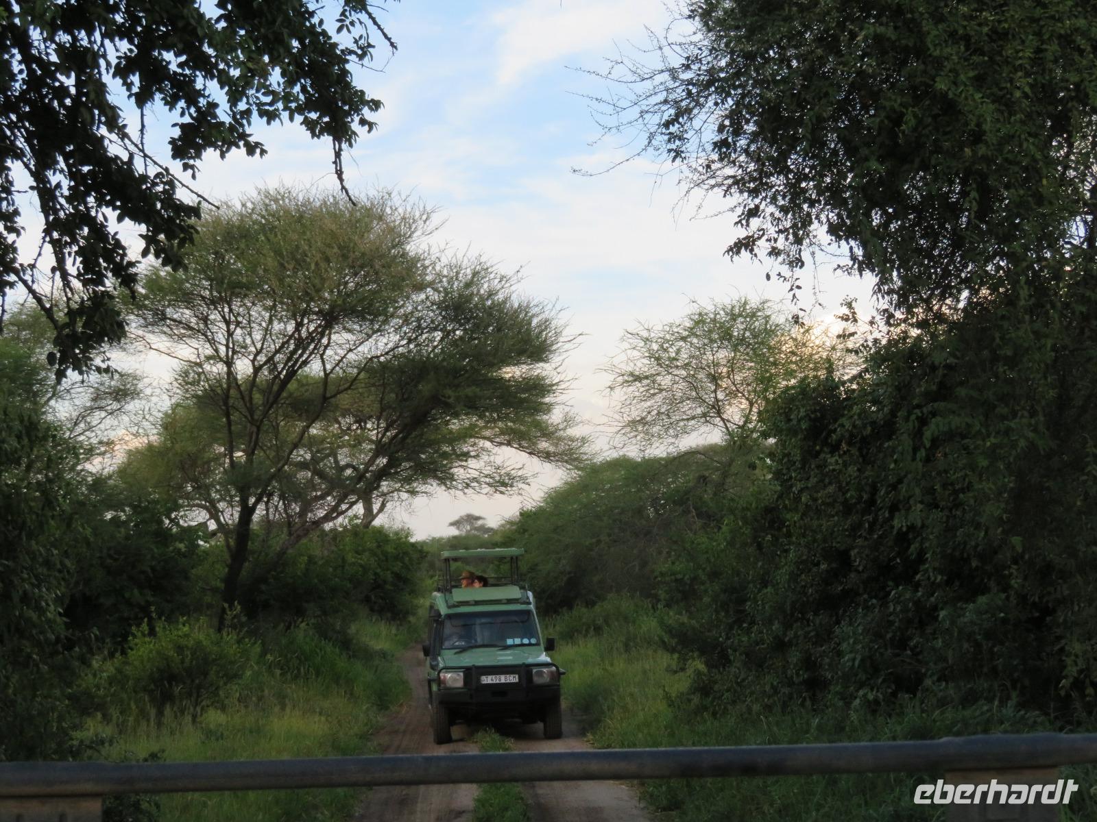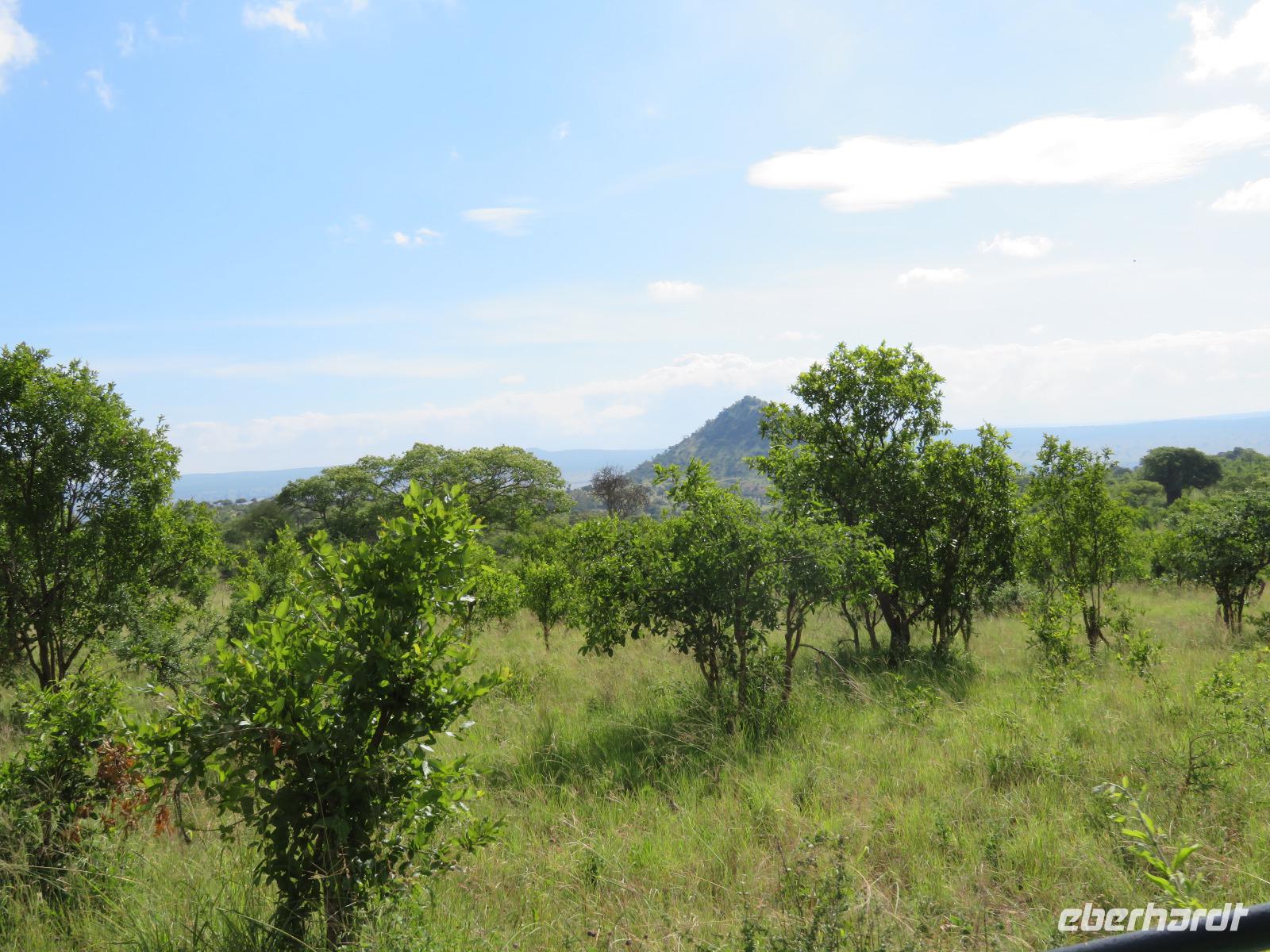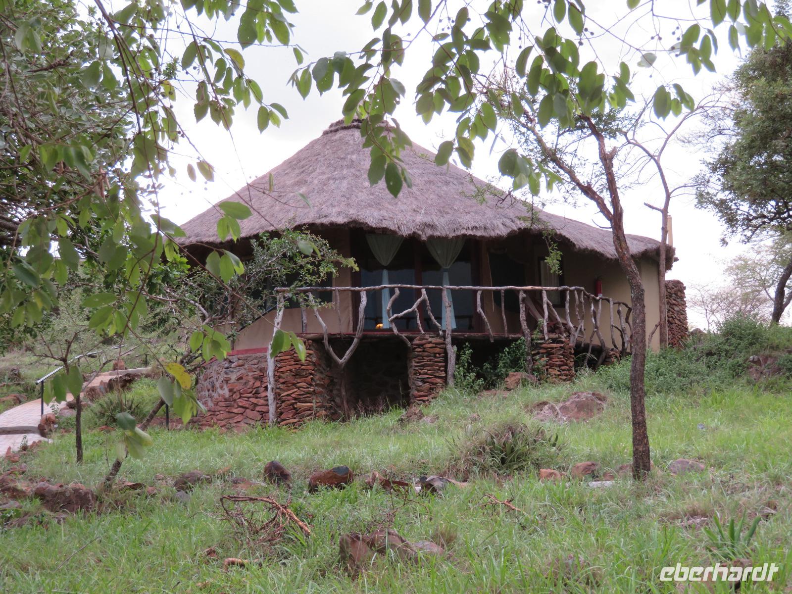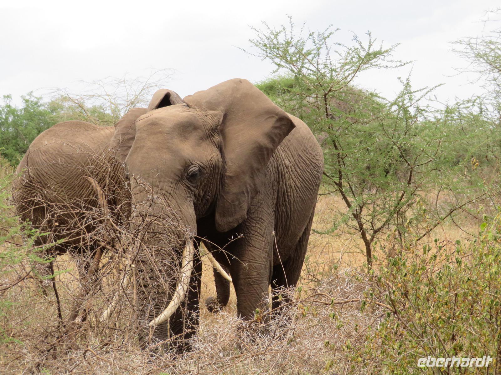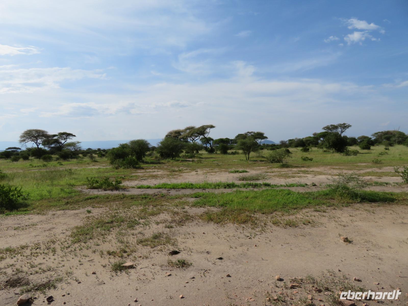 Wir beginnen unsere weitere Reise mit einem Besuch im Tansanite Experience - einem Museum, in dem die Geschichte des Tansanite erzählt wird. Der Tansanite ist ein blauer sehr seltener Edelstein, der nur in Tansania vorkommt. Sehr anschaulich wird die Geschichte des Steines von seiner Entdeckung 1966 bis zur heutigen Gewinnung in Minen und der Verarbeitung in wunderschöne Schmuckstücke erzählt. Danach besuchen wir das Culture Heritage. Hier werden eine Vielzahl von verschiedensten Souvenirs und Kunsthandwerkarbeiten angeboten. Nachdem wir die ersten Mitbringsel gekauft haben, führt uns die Tour weiter. Es geht durch die Vororte von Arusha und wir sehen das bunte Treiben auf den Straßen. Nach einer ganzen Weile verlassen wir das Gebiet Arusha und die ersten Dörfer der zum Teil inzwischen sesshaft gewordenen Massai tauchen auf. Wir sehen immer wieder Massai in traditioneller Kleidung mit ihren Viehherden. Am Mittag erreichen wir unsere Lodge am Tarangire-Nationalpark. Wir beziehen unsere Zimmer, die dieses Mal komfortable zeltartige Gebäude sind. Natürlich verfügen diese über Bäder und einen herrlichen Blick in die Savanne. Nach dem schmackhaften Mittagessen starten wir zu unserer ersten Pirschfahrt im Tarangire-Nationalpark. Wir sehen neben Zebras, Impalas und Buschböcken unseren ersten Elefanten. Giraffen, Wasserböcke und eine Vielzahl an Vögeln begegnen uns.