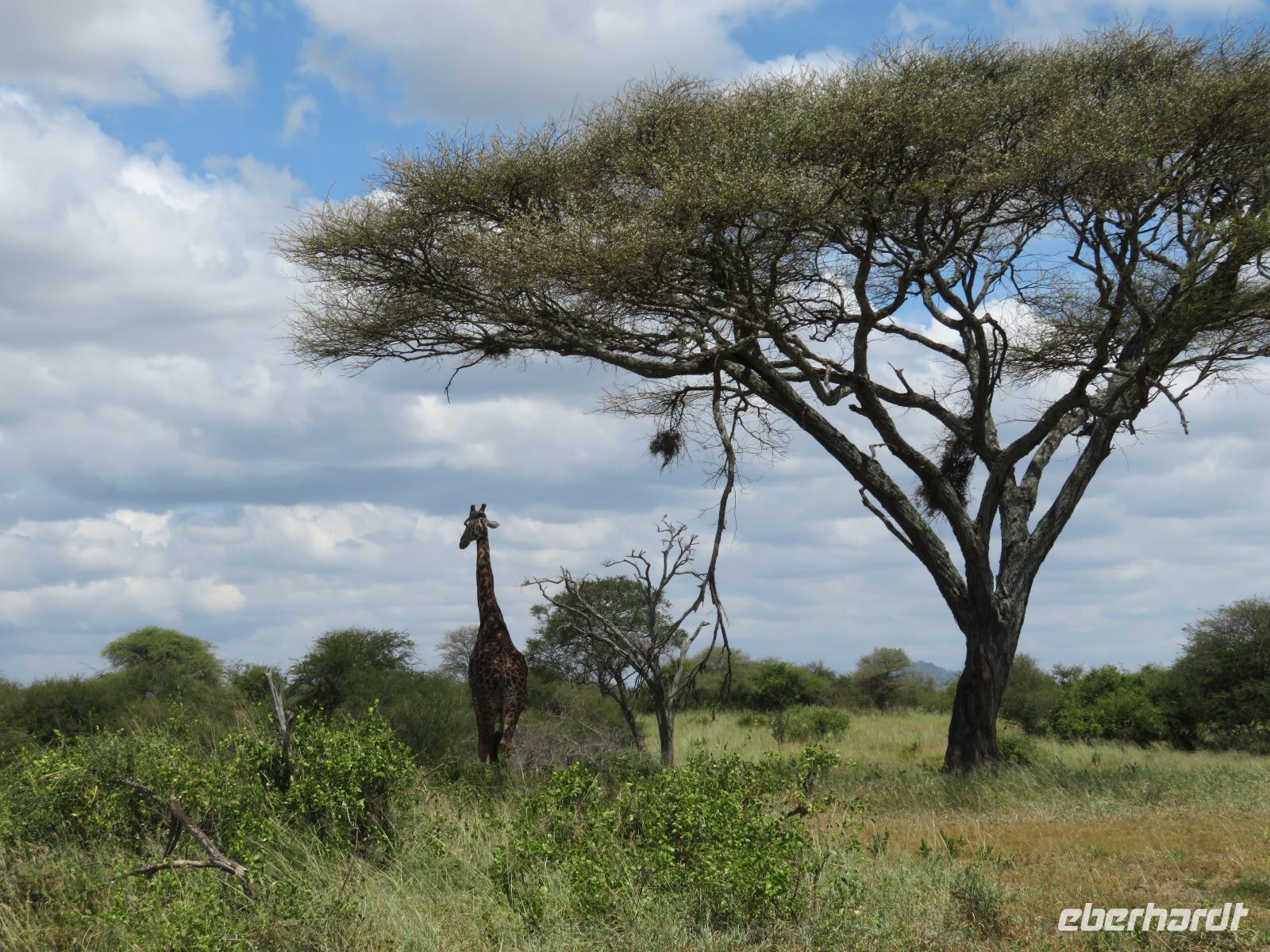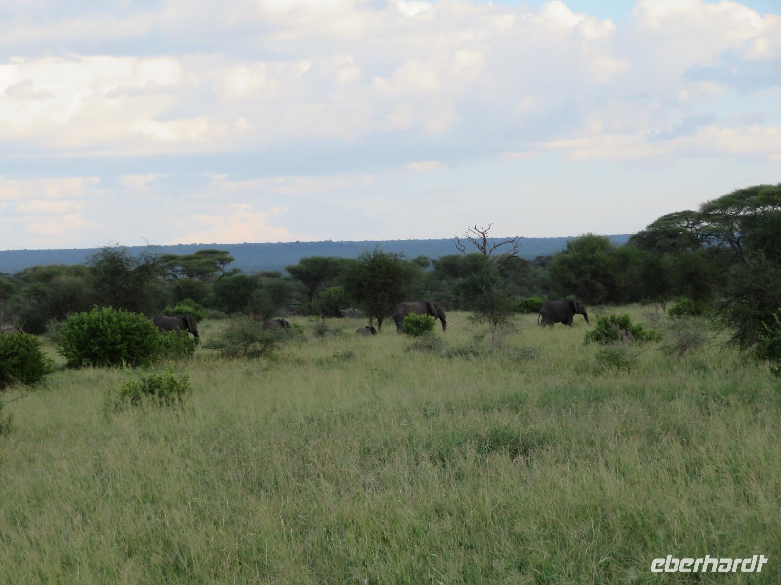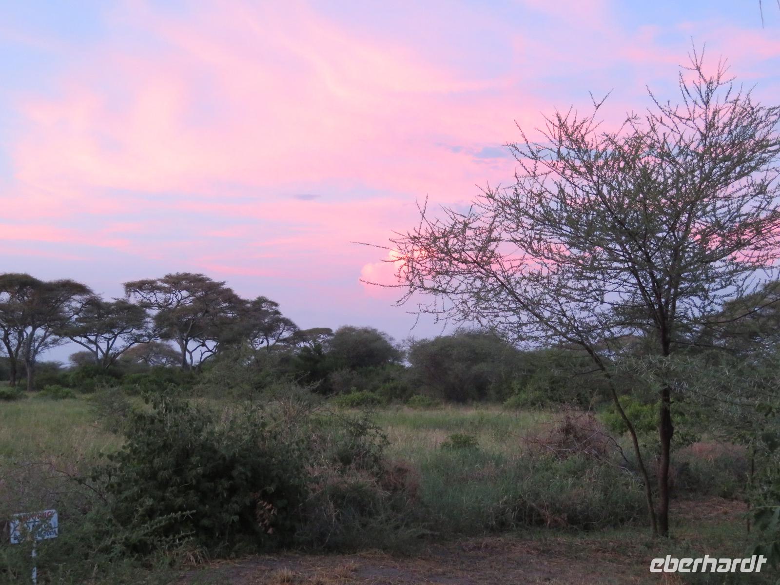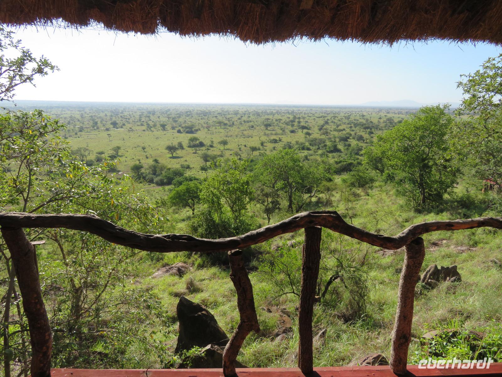 Wir beginnen unsere weitere Reise mit einem Besuch im Tansanite Experience - einem Museum, in dem die Geschichte des Tansanite erzählt wird. Der Tansanite ist ein blauer sehr seltener Edelstein, der nur in Tansania vorkommt. Sehr anschaulich wird die Geschichte des Steines von seiner Entdeckung 1966 bis zur heutigen Gewinnung in Minen und der Verarbeitung in wunderschöne Schmuckstücke erzählt. Danach besuchen wir das Culture Heritage. Hier werden eine Vielzahl von verschiedensten Souvenirs und Kunsthandwerkarbeiten angeboten. Nachdem wir die ersten Mitbringsel gekauft haben, führt uns die Tour weiter. Es geht durch die Vororte von Arusha und wir sehen das bunte Treiben auf den Straßen. Nach einer ganzen Weile verlassen wir das Gebiet Arusha und die ersten Dörfer der zum Teil inzwischen sesshaft gewordenen Massai tauchen auf. Wir sehen immer wieder Massai in traditioneller Kleidung mit ihren Viehherden. Am Mittag erreichen wir unsere Lodge am Tarangire-Nationalpark. Wir beziehen unsere Zimmer, die dieses Mal komfortable zeltartige Gebäude sind. Natürlich verfügen diese über Bäder und einen herrlichen Blick in die Savanne. Nach dem schmackhaften Mittagessen starten wir zu unserer ersten Pirschfahrt im Tarangire-Nationalpark. Wir sehen neben Zebras, Impalas und Buschböcken unseren ersten Elefanten. Giraffen, Wasserböcke und eine Vielzahl an Vögeln begegnen uns.