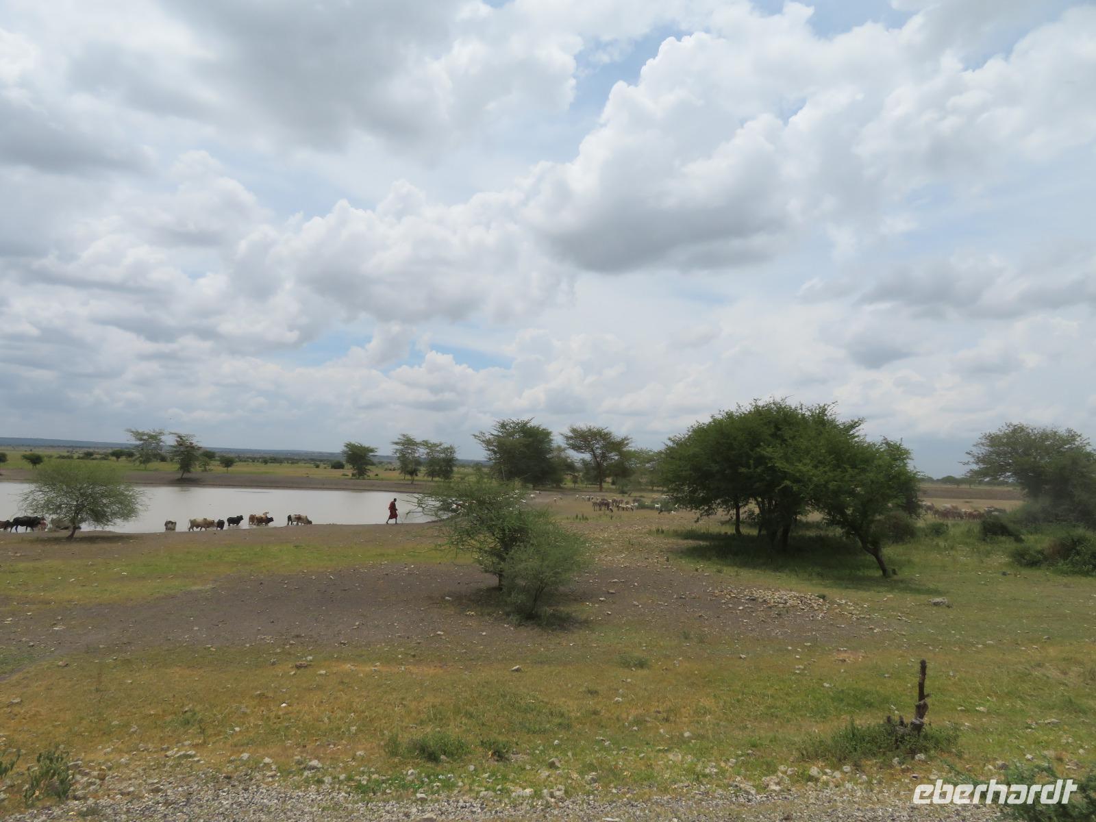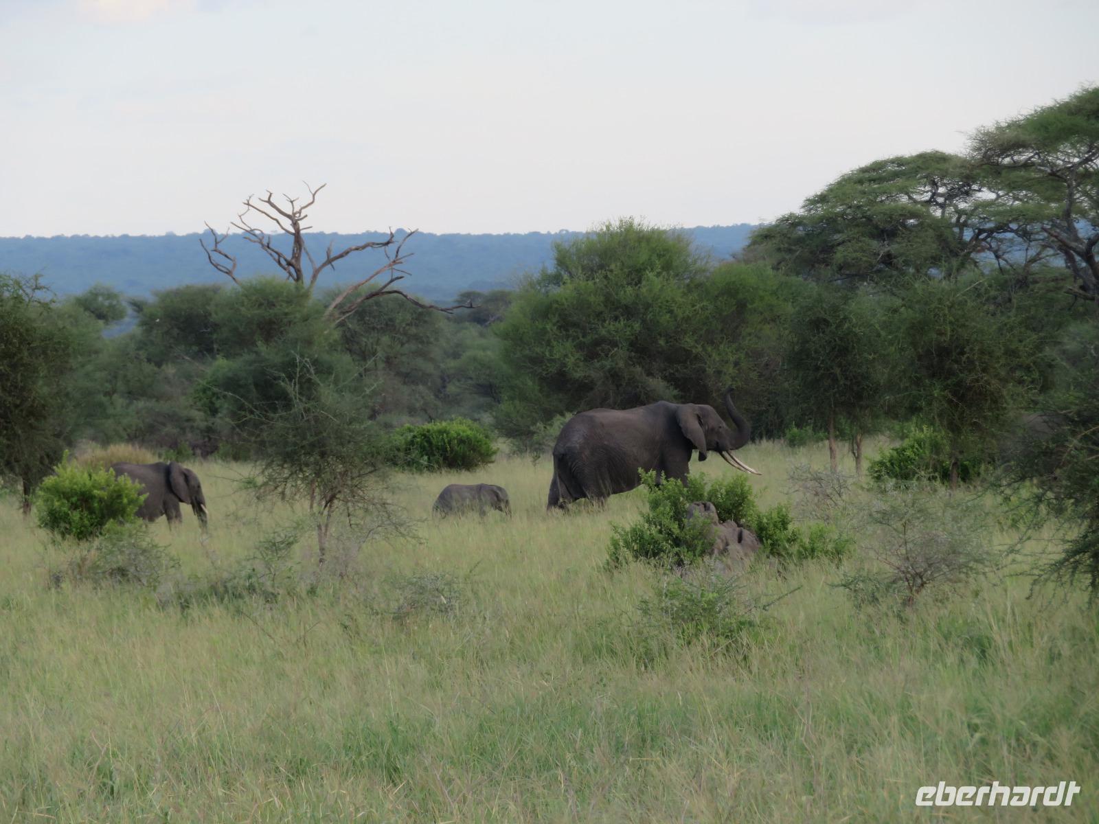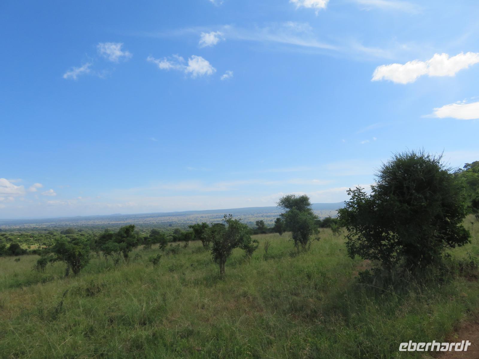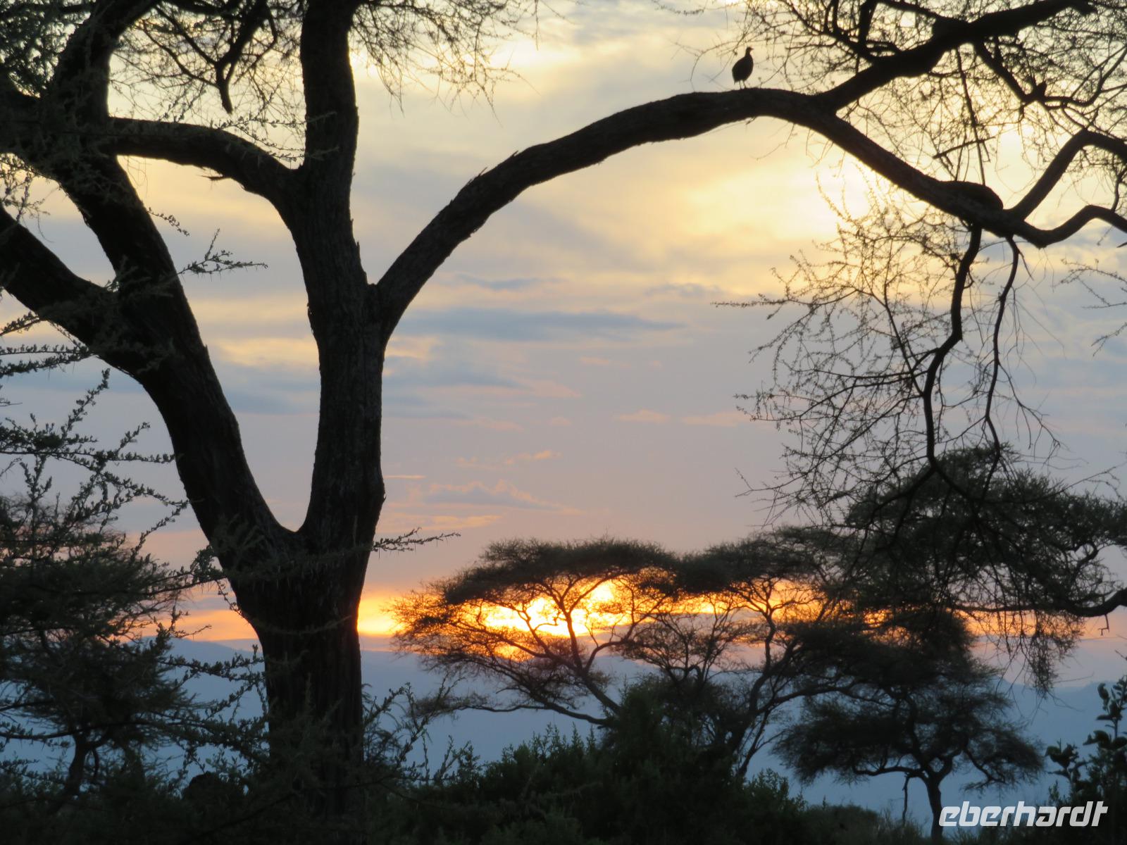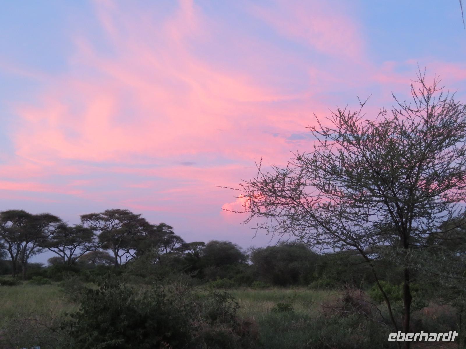 Wir beginnen unsere weitere Reise mit einem Besuch im Tansanite Experience - einem Museum, in dem die Geschichte des Tansanite erzählt wird. Der Tansanite ist ein blauer sehr seltener Edelstein, der nur in Tansania vorkommt. Sehr anschaulich wird die Geschichte des Steines von seiner Entdeckung 1966 bis zur heutigen Gewinnung in Minen und der Verarbeitung in wunderschöne Schmuckstücke erzählt. Danach besuchen wir das Culture Heritage. Hier werden eine Vielzahl von verschiedensten Souvenirs und Kunsthandwerkarbeiten angeboten. Nachdem wir die ersten Mitbringsel gekauft haben, führt uns die Tour weiter. Es geht durch die Vororte von Arusha und wir sehen das bunte Treiben auf den Straßen. Nach einer ganzen Weile verlassen wir das Gebiet Arusha und die ersten Dörfer der zum Teil inzwischen sesshaft gewordenen Massai tauchen auf. Wir sehen immer wieder Massai in traditioneller Kleidung mit ihren Viehherden. Am Mittag erreichen wir unsere Lodge am Tarangire-Nationalpark. Wir beziehen unsere Zimmer, die dieses Mal komfortable zeltartige Gebäude sind. Natürlich verfügen diese über Bäder und einen herrlichen Blick in die Savanne. Nach dem schmackhaften Mittagessen starten wir zu unserer ersten Pirschfahrt im Tarangire-Nationalpark. Wir sehen neben Zebras, Impalas und Buschböcken unseren ersten Elefanten. Giraffen, Wasserböcke und eine Vielzahl an Vögeln begegnen uns.