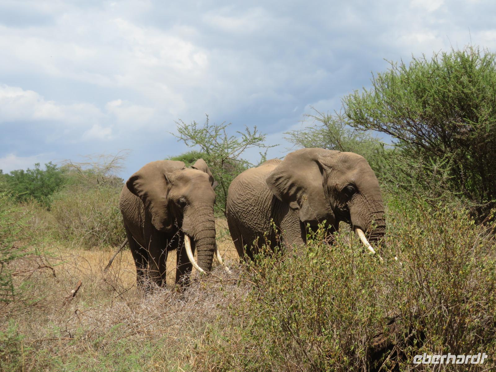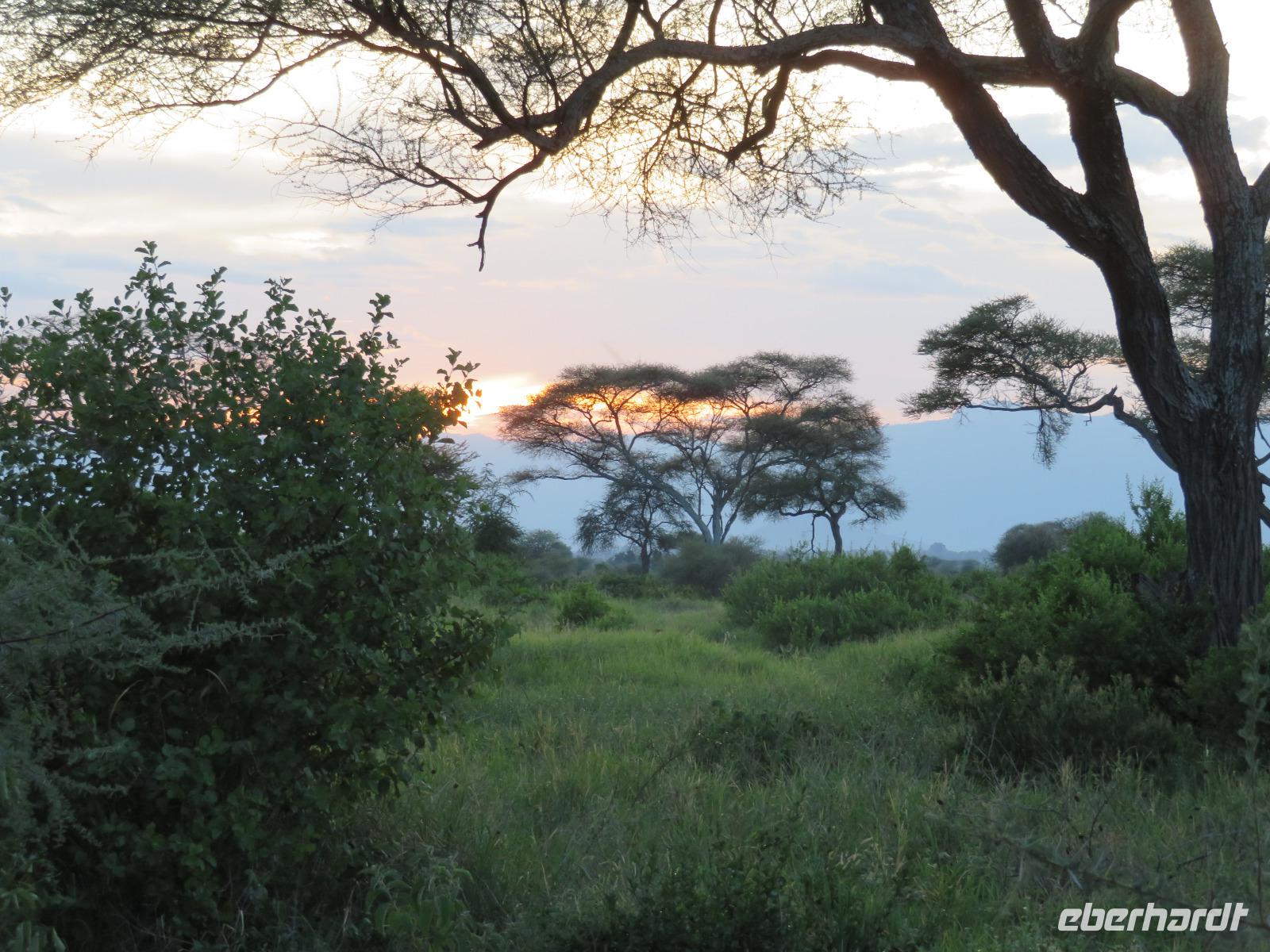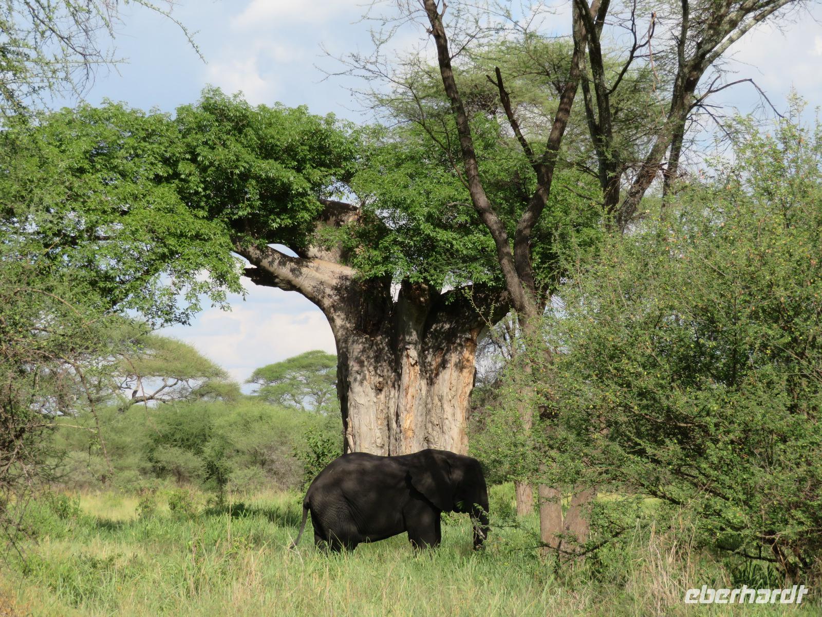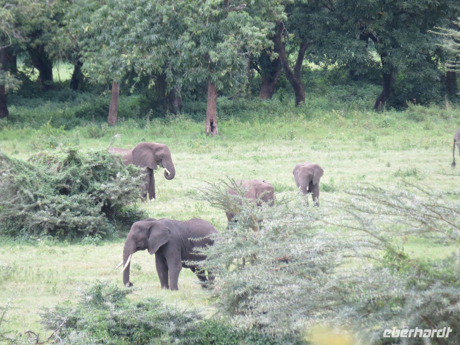 Wir beginnen unsere weitere Reise mit einem Besuch im Tansanite Experience - einem Museum, in dem die Geschichte des Tansanite erzählt wird. Der Tansanite ist ein blauer sehr seltener Edelstein, der nur in Tansania vorkommt. Sehr anschaulich wird die Geschichte des Steines von seiner Entdeckung 1966 bis zur heutigen Gewinnung in Minen und der Verarbeitung in wunderschöne Schmuckstücke erzählt. Danach besuchen wir das Culture Heritage. Hier werden eine Vielzahl von verschiedensten Souvenirs und Kunsthandwerkarbeiten angeboten. Nachdem wir die ersten Mitbringsel gekauft haben, führt uns die Tour weiter. Es geht durch die Vororte von Arusha und wir sehen das bunte Treiben auf den Straßen. Nach einer ganzen Weile verlassen wir das Gebiet Arusha und die ersten Dörfer der zum Teil inzwischen sesshaft gewordenen Massai tauchen auf. Wir sehen immer wieder Massai in traditioneller Kleidung mit ihren Viehherden. Am Mittag erreichen wir unsere Lodge am Tarangire-Nationalpark. Wir beziehen unsere Zimmer, die dieses Mal komfortable zeltartige Gebäude sind. Natürlich verfügen diese über Bäder und einen herrlichen Blick in die Savanne. Nach dem schmackhaften Mittagessen starten wir zu unserer ersten Pirschfahrt im Tarangire-Nationalpark. Wir sehen neben Zebras, Impalas und Buschböcken unseren ersten Elefanten. Giraffen, Wasserböcke und eine Vielzahl an Vögeln begegnen uns.
