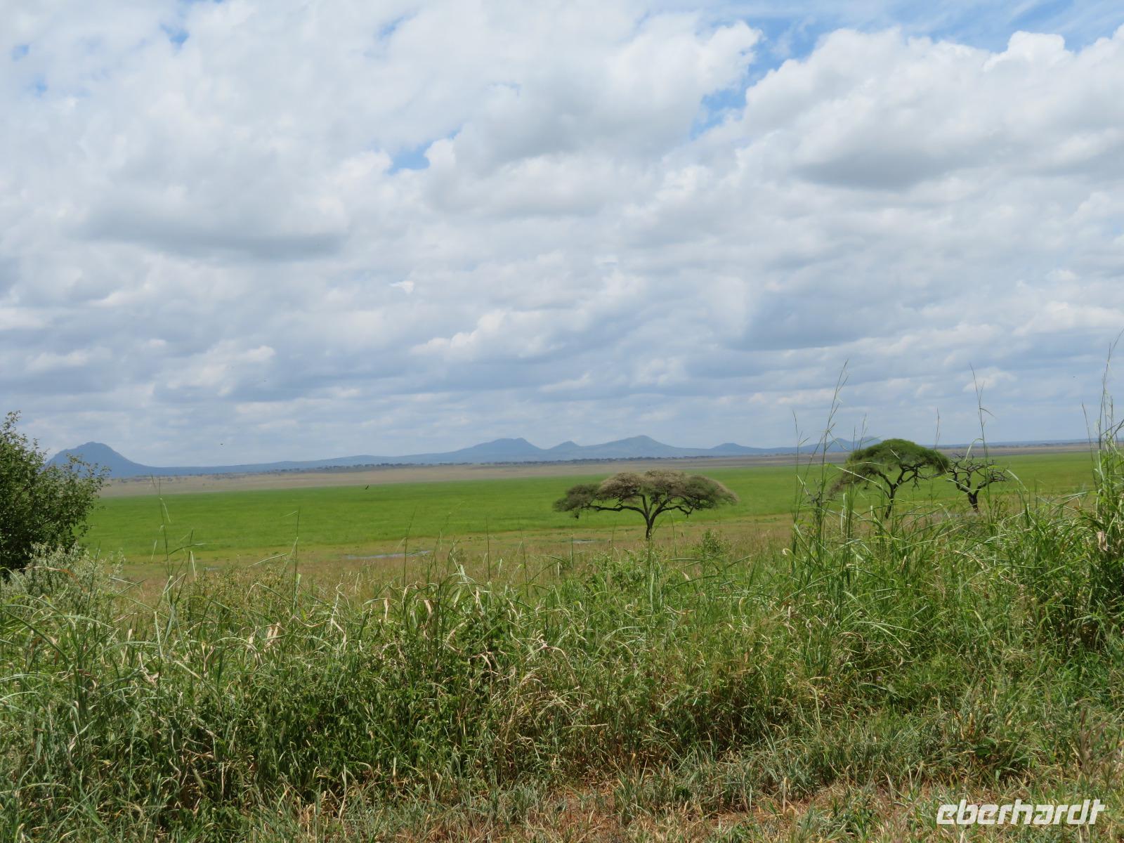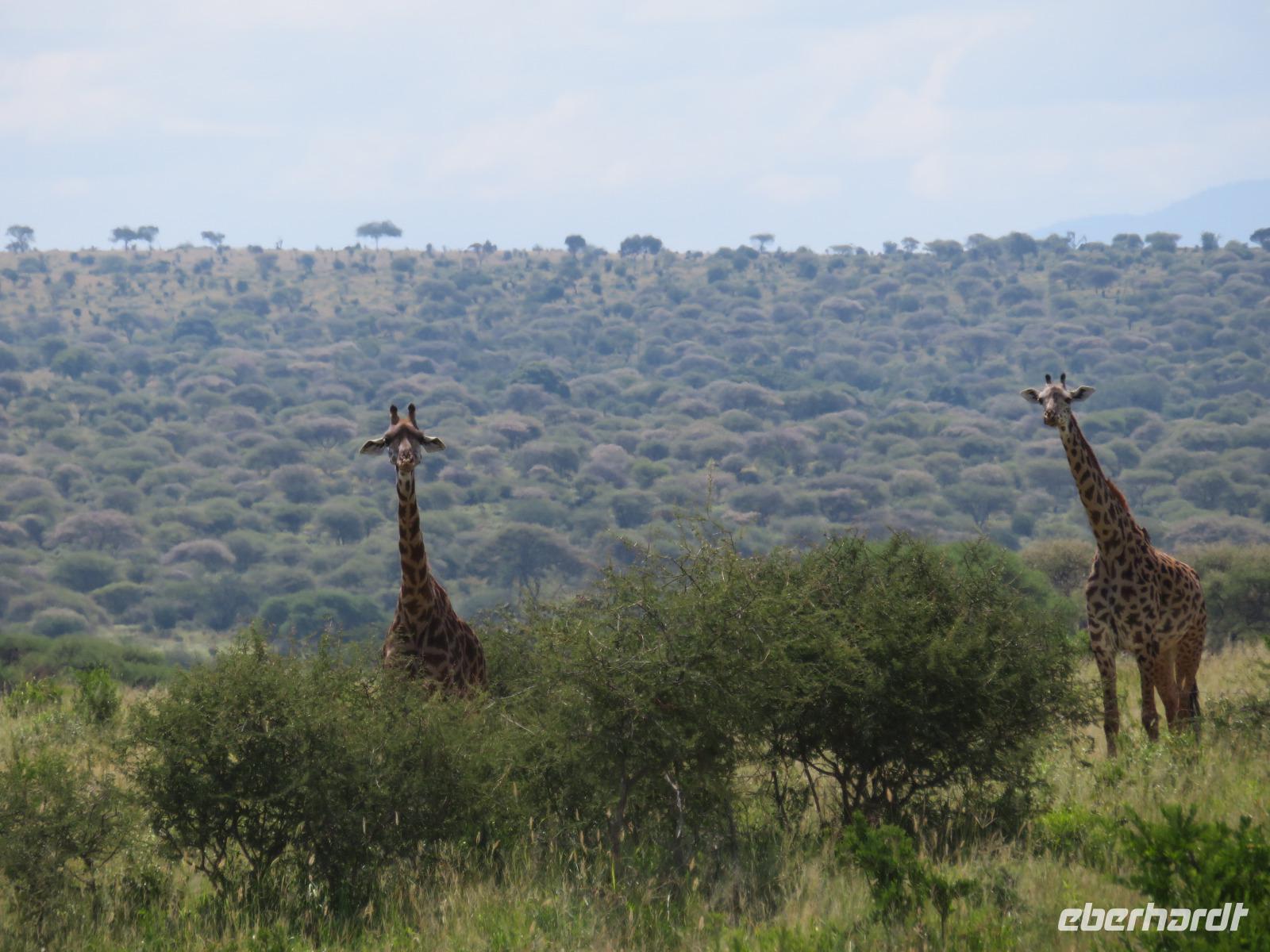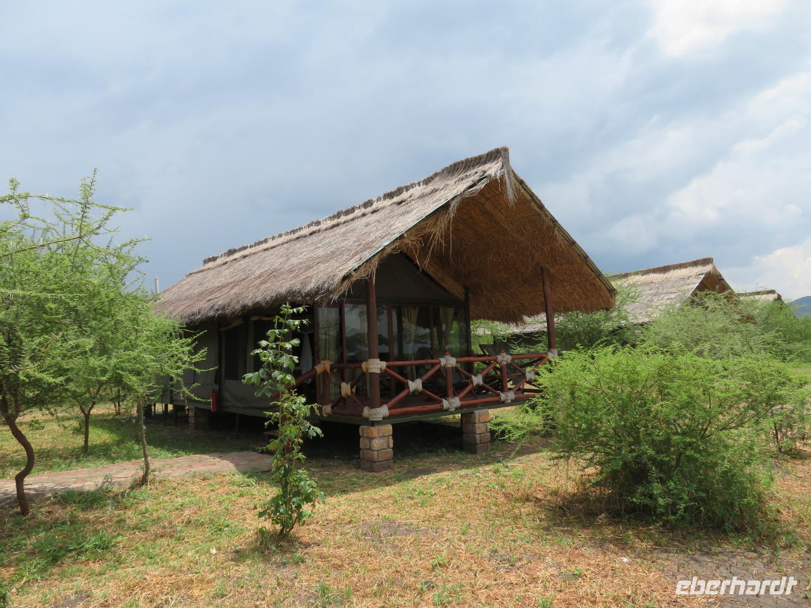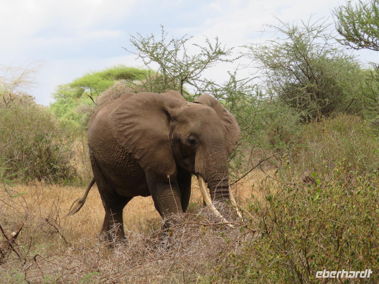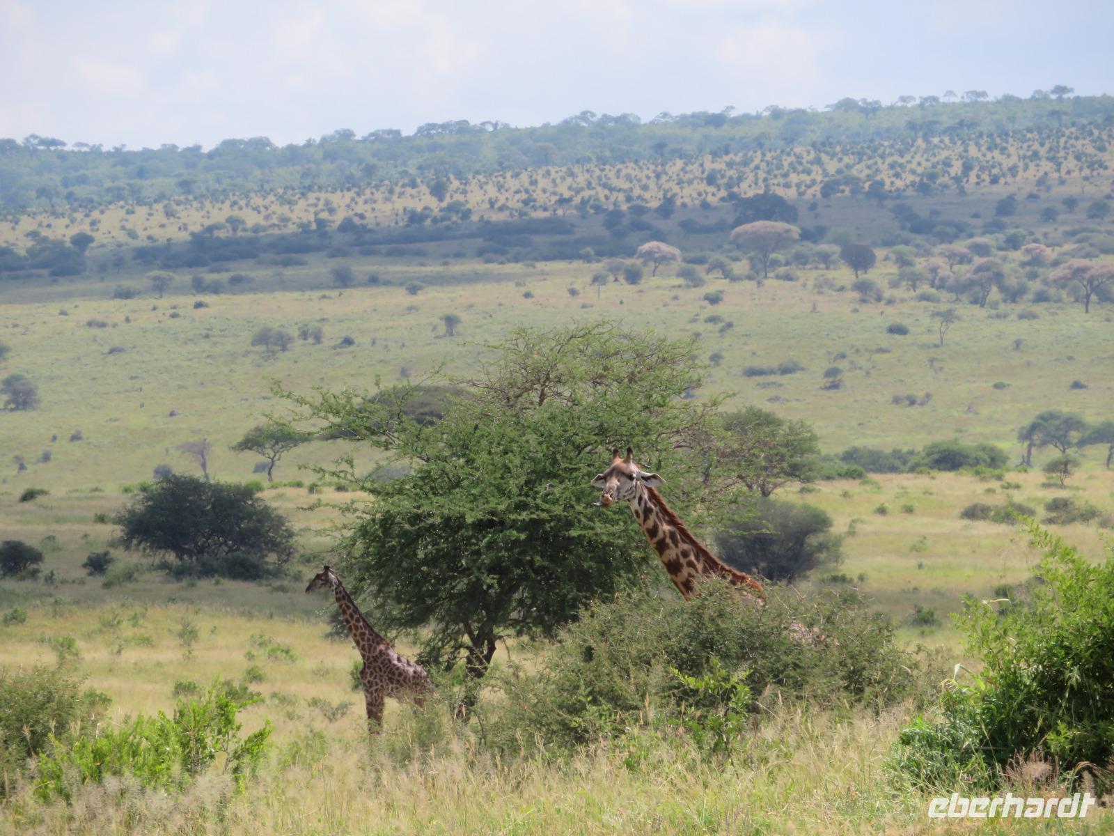 Wir beginnen unsere weitere Reise mit einem Besuch im Tansanite Experience - einem Museum, in dem die Geschichte des Tansanite erzählt wird. Der Tansanite ist ein blauer sehr seltener Edelstein, der nur in Tansania vorkommt. Sehr anschaulich wird die Geschichte des Steines von seiner Entdeckung 1966 bis zur heutigen Gewinnung in Minen und der Verarbeitung in wunderschöne Schmuckstücke erzählt. Danach besuchen wir das Culture Heritage. Hier werden eine Vielzahl von verschiedensten Souvenirs und Kunsthandwerkarbeiten angeboten. Nachdem wir die ersten Mitbringsel gekauft haben, führt uns die Tour weiter. Es geht durch die Vororte von Arusha und wir sehen das bunte Treiben auf den Straßen. Nach einer ganzen Weile verlassen wir das Gebiet Arusha und die ersten Dörfer der zum Teil inzwischen sesshaft gewordenen Massai tauchen auf. Wir sehen immer wieder Massai in traditioneller Kleidung mit ihren Viehherden. Am Mittag erreichen wir unsere Lodge am Tarangire-Nationalpark. Wir beziehen unsere Zimmer, die dieses Mal komfortable zeltartige Gebäude sind. Natürlich verfügen diese über Bäder und einen herrlichen Blick in die Savanne. Nach dem schmackhaften Mittagessen starten wir zu unserer ersten Pirschfahrt im Tarangire-Nationalpark. Wir sehen neben Zebras, Impalas und Buschböcken unseren ersten Elefanten. Giraffen, Wasserböcke und eine Vielzahl an Vögeln begegnen uns.