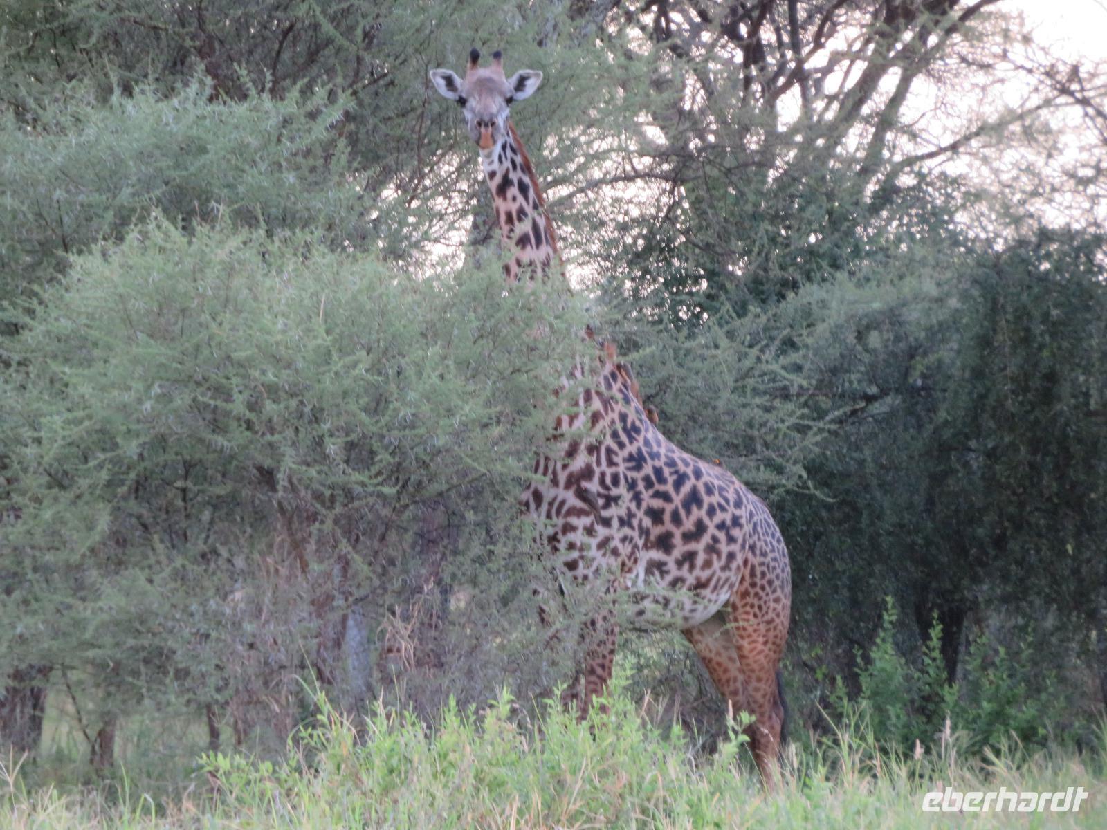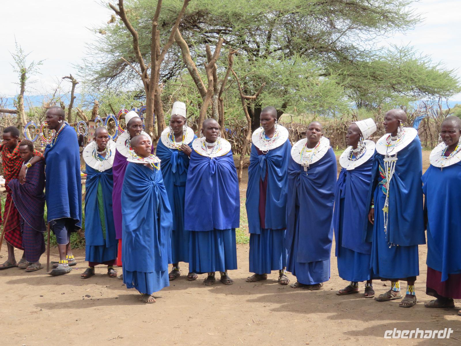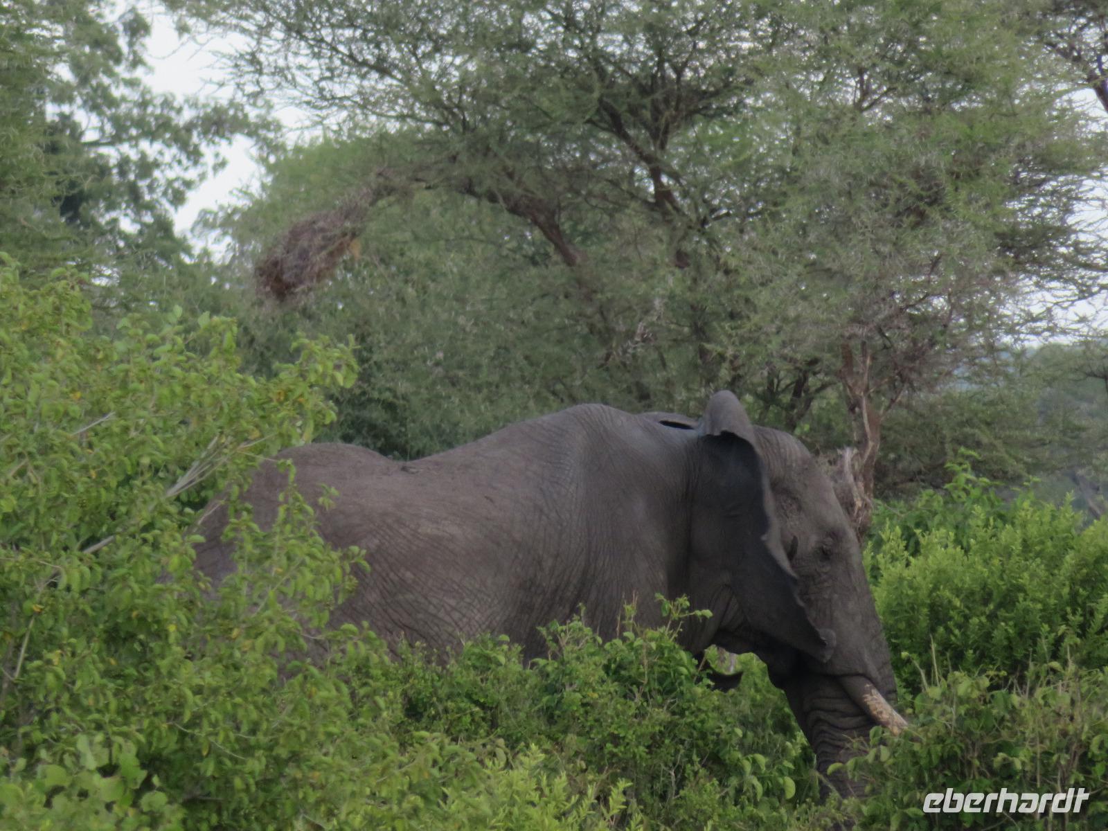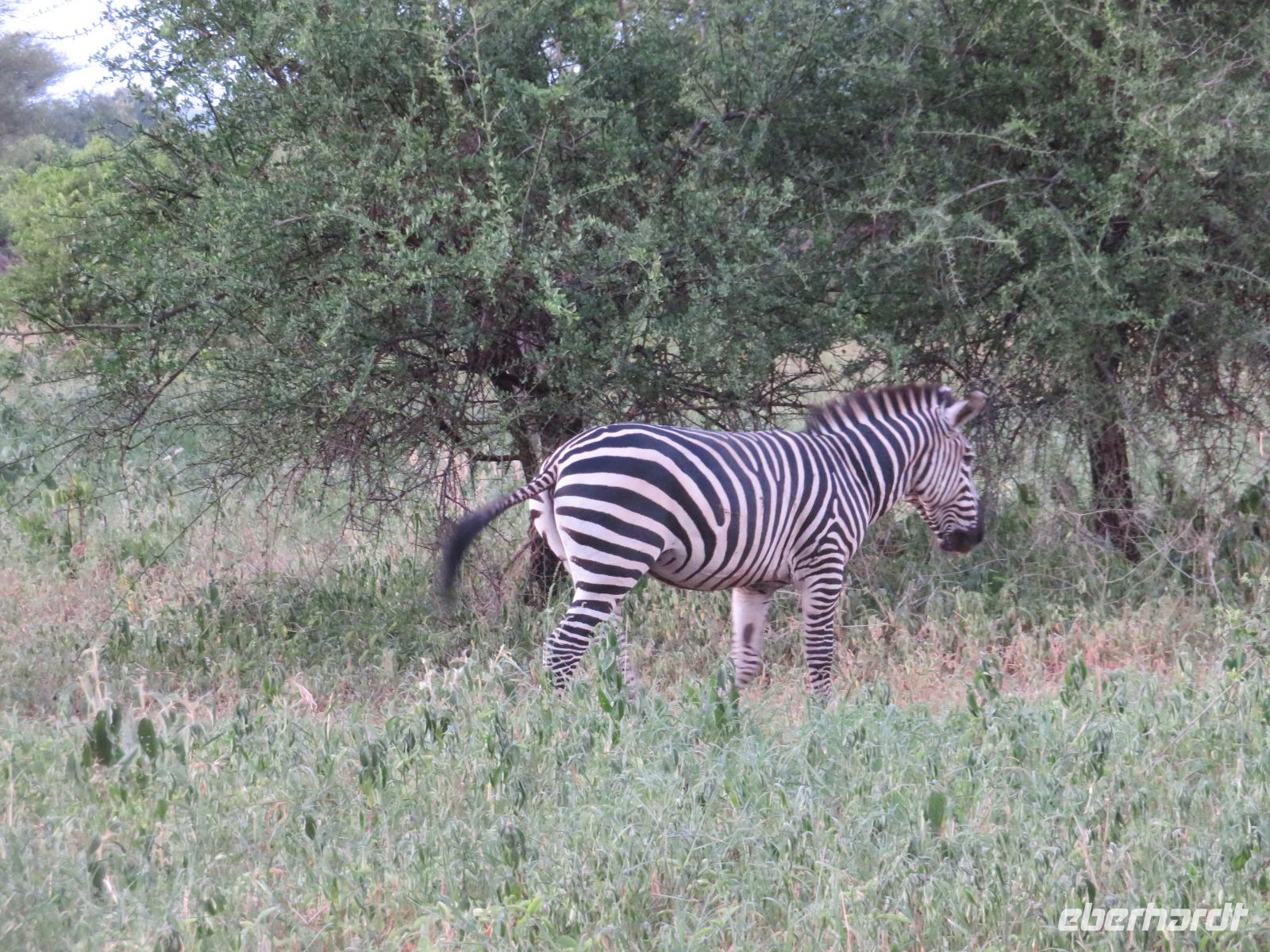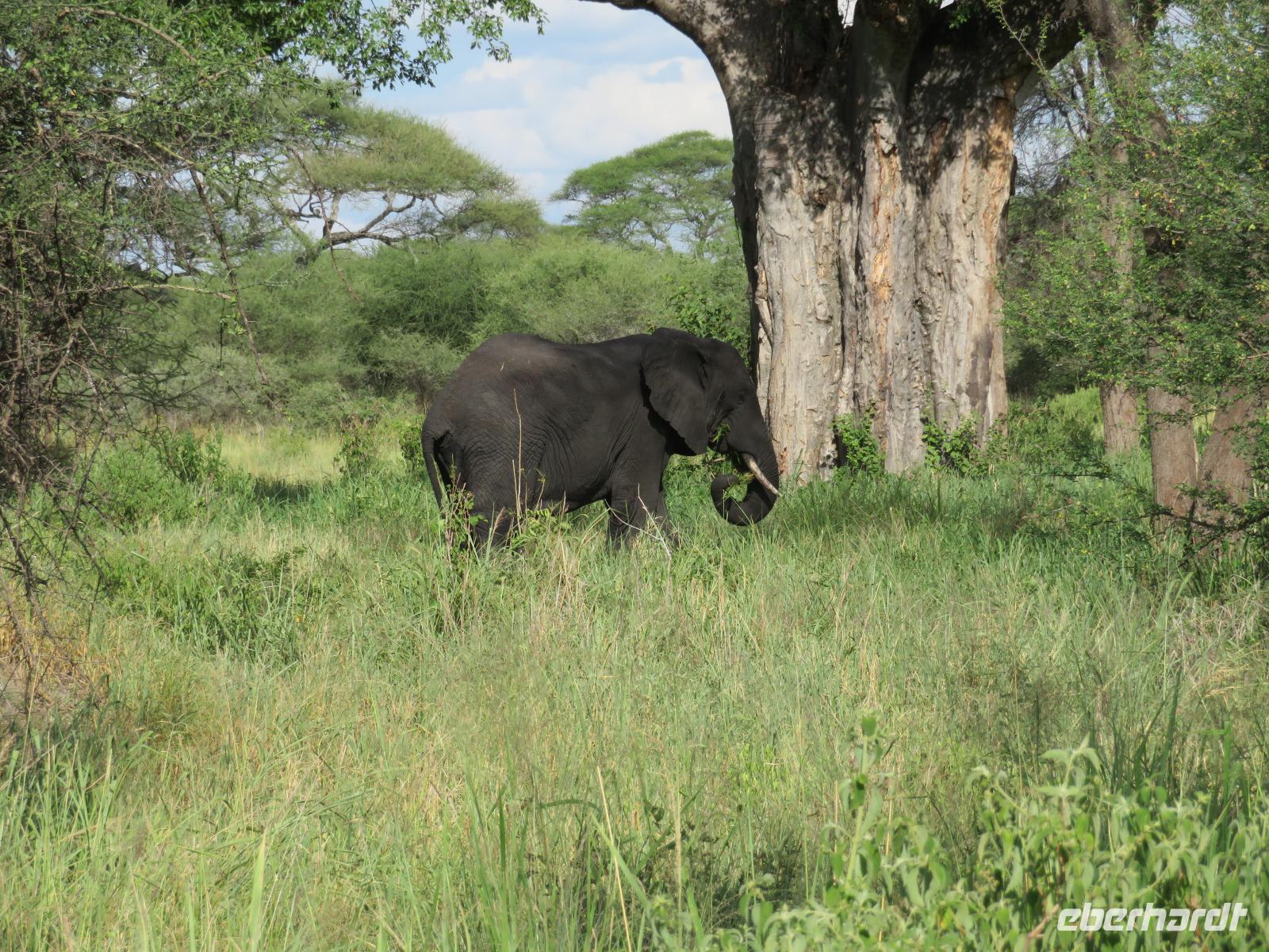 Wir beginnen unsere weitere Reise mit einem Besuch im Tansanite Experience - einem Museum, in dem die Geschichte des Tansanite erzählt wird. Der Tansanite ist ein blauer sehr seltener Edelstein, der nur in Tansania vorkommt. Sehr anschaulich wird die Geschichte des Steines von seiner Entdeckung 1966 bis zur heutigen Gewinnung in Minen und der Verarbeitung in wunderschöne Schmuckstücke erzählt. Danach besuchen wir das Culture Heritage. Hier werden eine Vielzahl von verschiedensten Souvenirs und Kunsthandwerkarbeiten angeboten. Nachdem wir die ersten Mitbringsel gekauft haben, führt uns die Tour weiter. Es geht durch die Vororte von Arusha und wir sehen das bunte Treiben auf den Straßen. Nach einer ganzen Weile verlassen wir das Gebiet Arusha und die ersten Dörfer der zum Teil inzwischen sesshaft gewordenen Massai tauchen auf. Wir sehen immer wieder Massai in traditioneller Kleidung mit ihren Viehherden. Am Mittag erreichen wir unsere Lodge am Tarangire-Nationalpark. Wir beziehen unsere Zimmer, die dieses Mal komfortable zeltartige Gebäude sind. Natürlich verfügen diese über Bäder und einen herrlichen Blick in die Savanne. Nach dem schmackhaften Mittagessen starten wir zu unserer ersten Pirschfahrt im Tarangire-Nationalpark. Wir sehen neben Zebras, Impalas und Buschböcken unseren ersten Elefanten. Giraffen, Wasserböcke und eine Vielzahl an Vögeln begegnen uns.