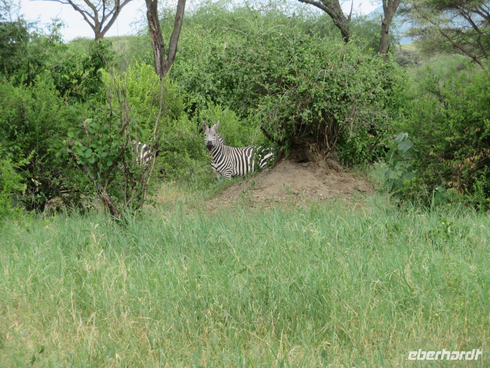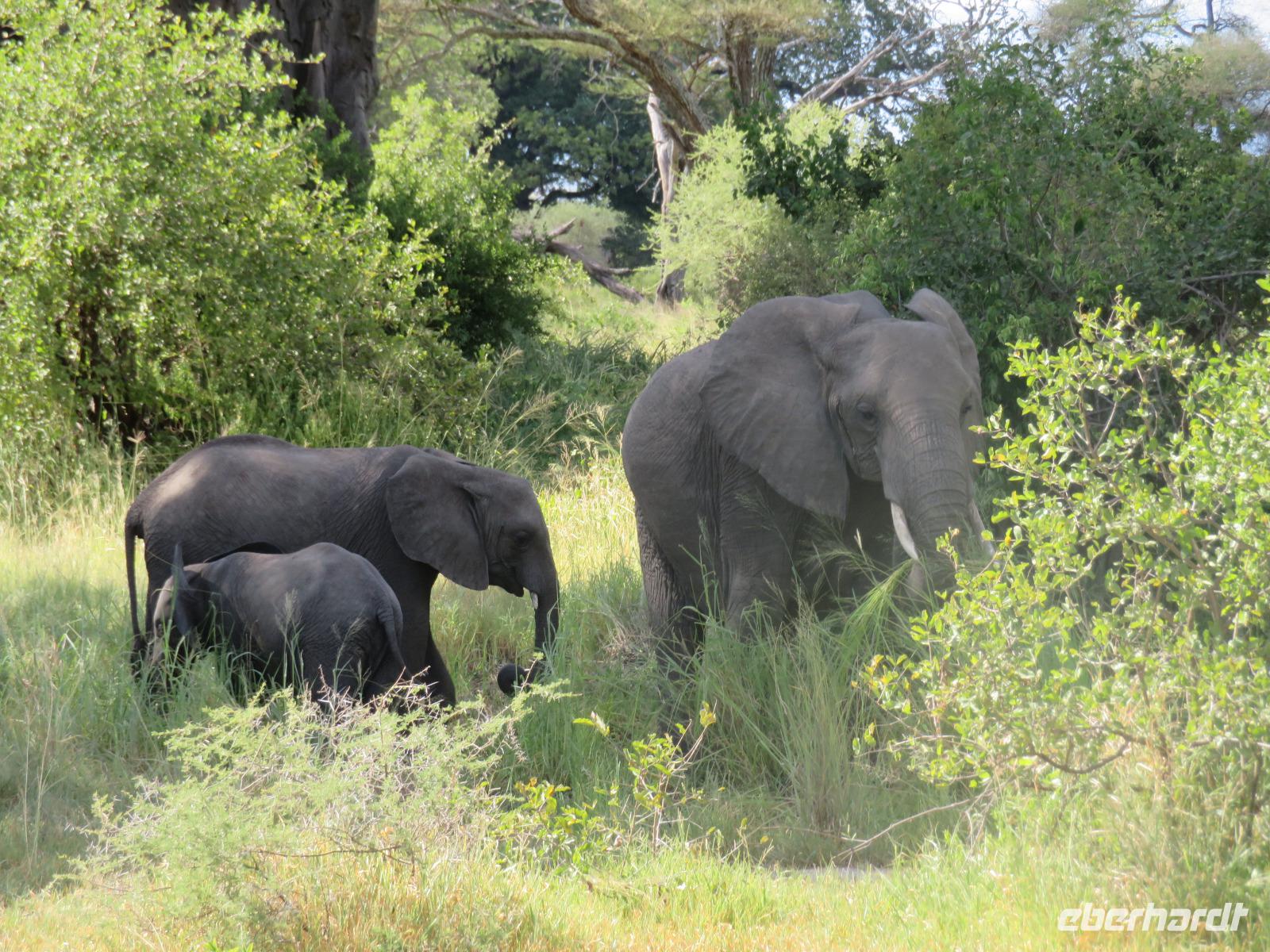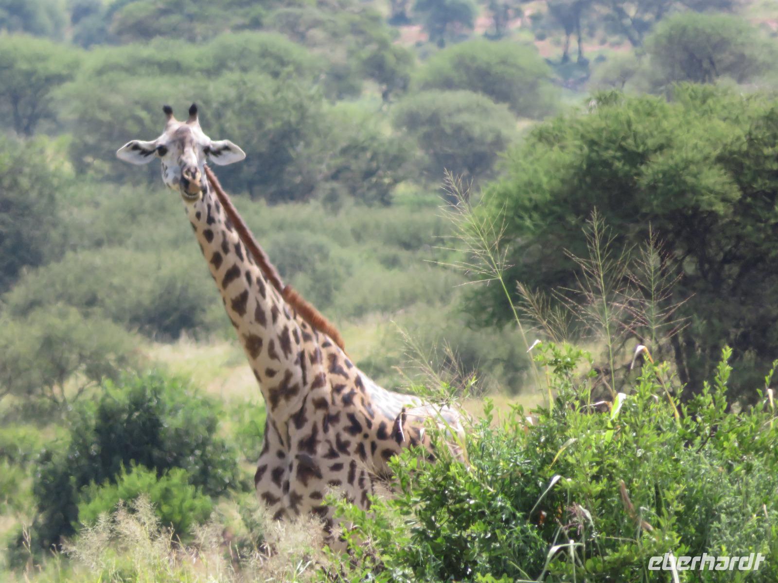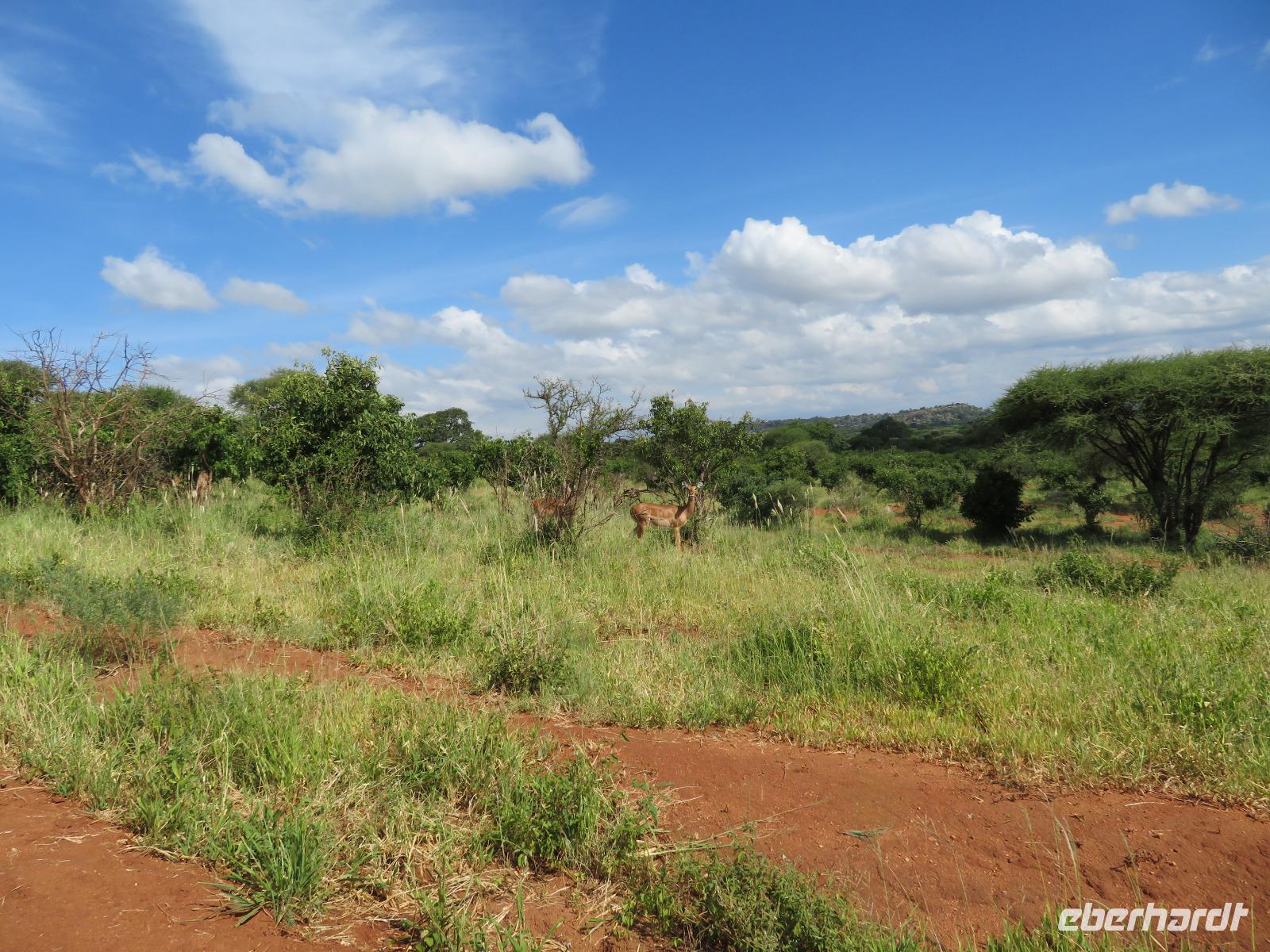 Wir beginnen unsere weitere Reise mit einem Besuch im Tansanite Experience - einem Museum, in dem die Geschichte des Tansanite erzählt wird. Der Tansanite ist ein blauer sehr seltener Edelstein, der nur in Tansania vorkommt. Sehr anschaulich wird die Geschichte des Steines von seiner Entdeckung 1966 bis zur heutigen Gewinnung in Minen und der Verarbeitung in wunderschöne Schmuckstücke erzählt. Danach besuchen wir das Culture Heritage. Hier werden eine Vielzahl von verschiedensten Souvenirs und Kunsthandwerkarbeiten angeboten. Nachdem wir die ersten Mitbringsel gekauft haben, führt uns die Tour weiter. Es geht durch die Vororte von Arusha und wir sehen das bunte Treiben auf den Straßen. Nach einer ganzen Weile verlassen wir das Gebiet Arusha und die ersten Dörfer der zum Teil inzwischen sesshaft gewordenen Massai tauchen auf. Wir sehen immer wieder Massai in traditioneller Kleidung mit ihren Viehherden. Am Mittag erreichen wir unsere Lodge am Tarangire-Nationalpark. Wir beziehen unsere Zimmer, die dieses Mal komfortable zeltartige Gebäude sind. Natürlich verfügen diese über Bäder und einen herrlichen Blick in die Savanne. Nach dem schmackhaften Mittagessen starten wir zu unserer ersten Pirschfahrt im Tarangire-Nationalpark. Wir sehen neben Zebras, Impalas und Buschböcken unseren ersten Elefanten. Giraffen, Wasserböcke und eine Vielzahl an Vögeln begegnen uns.