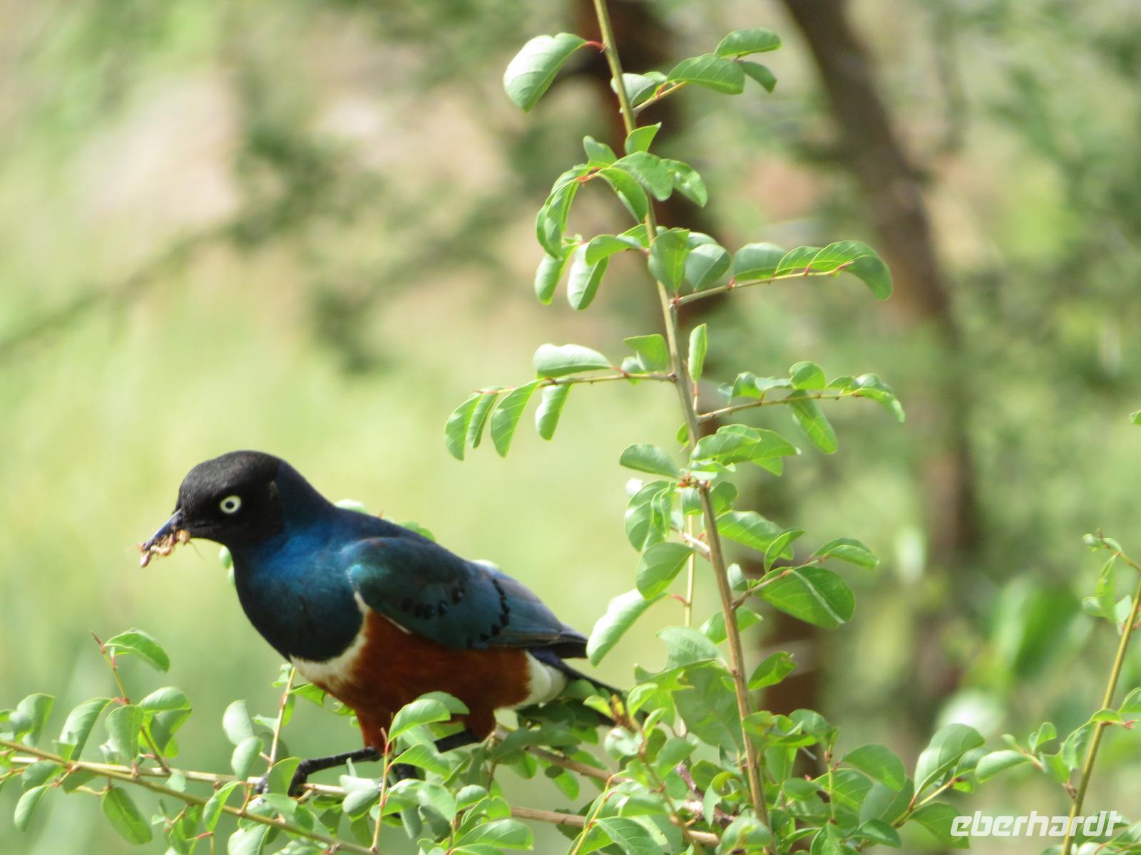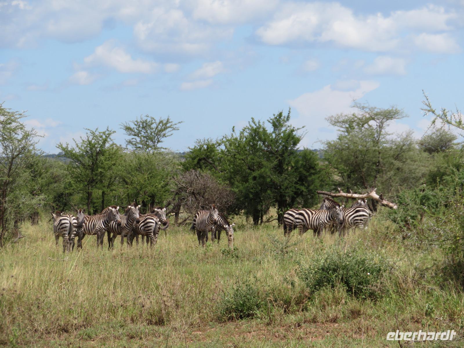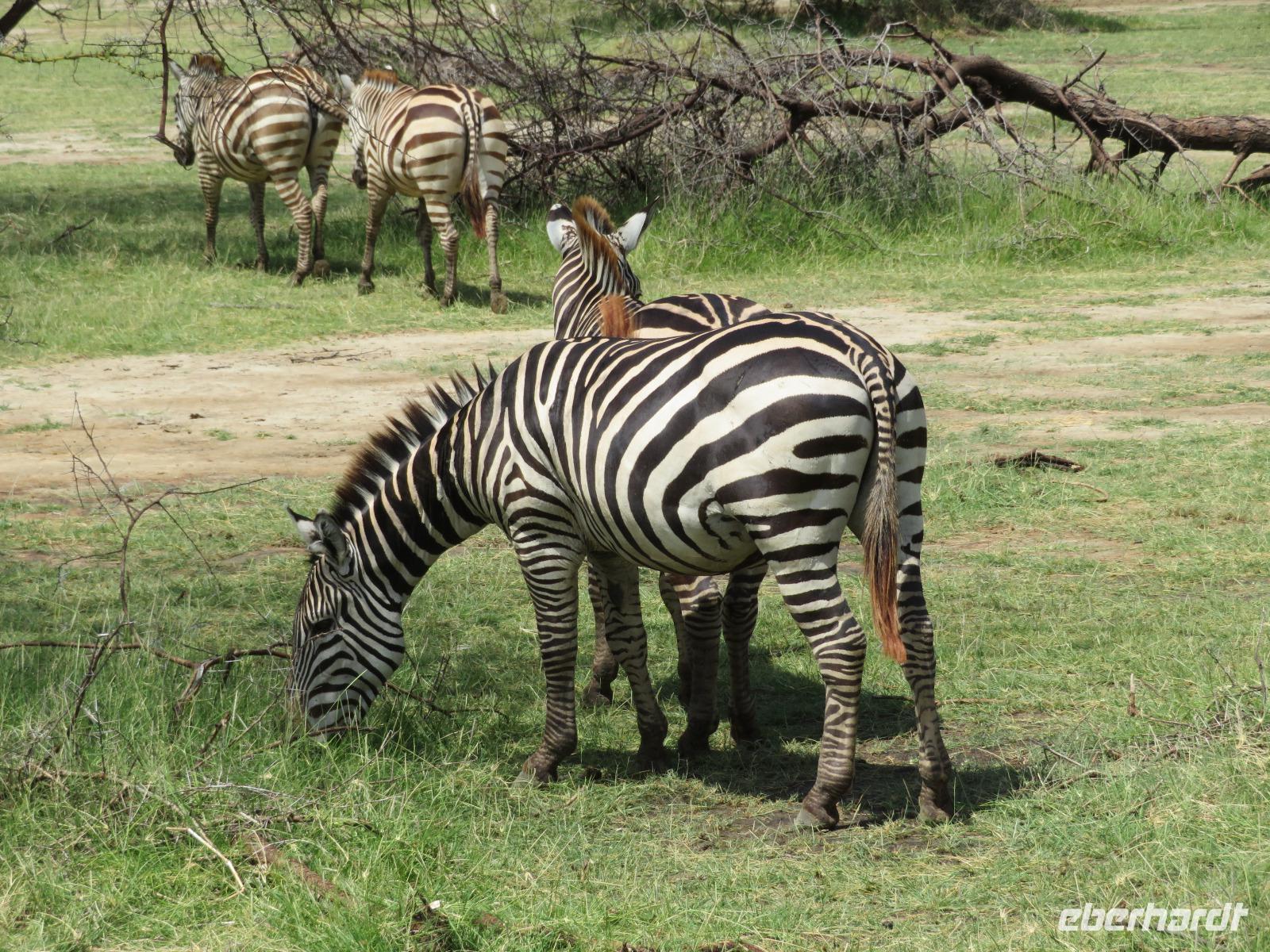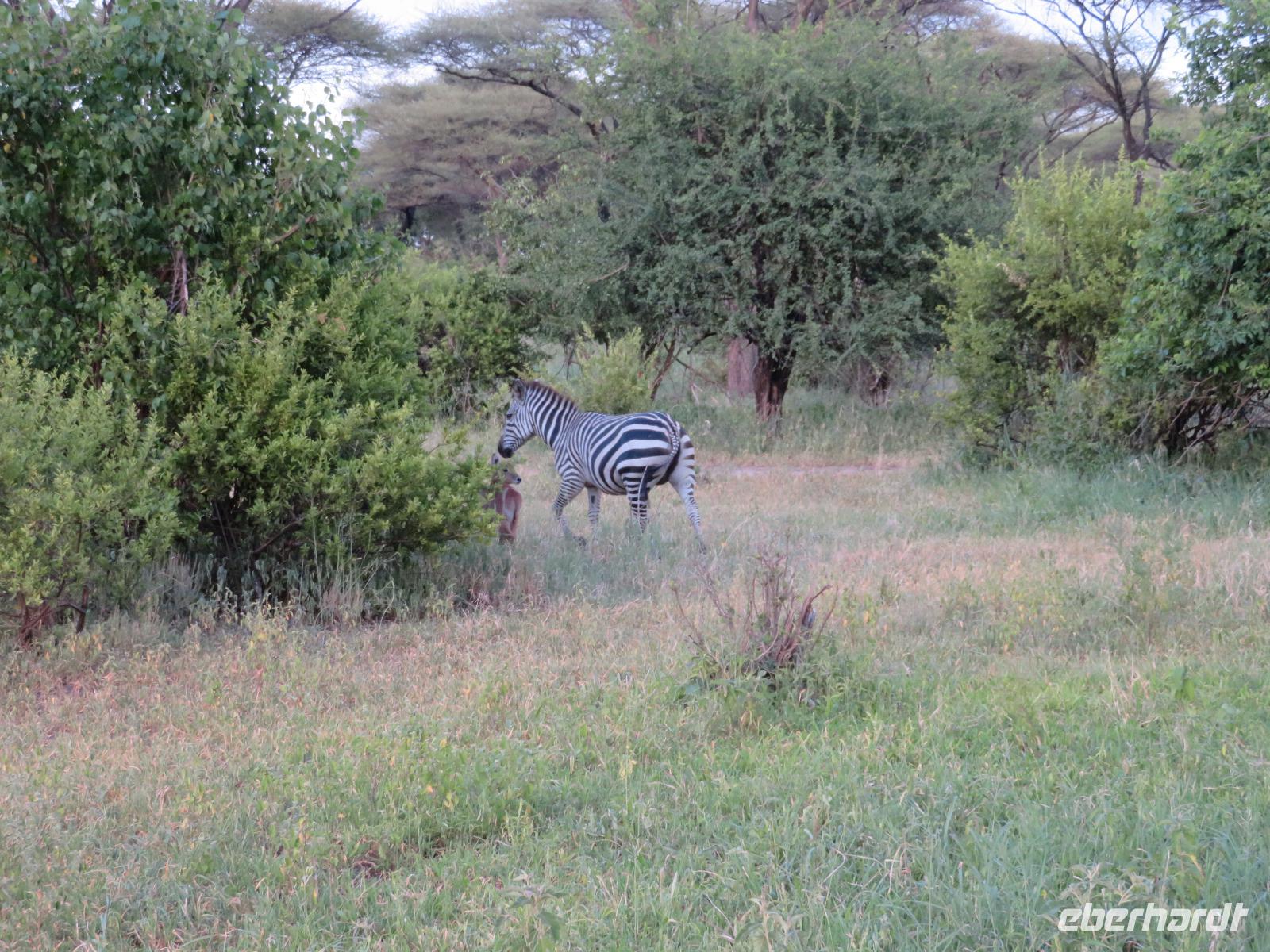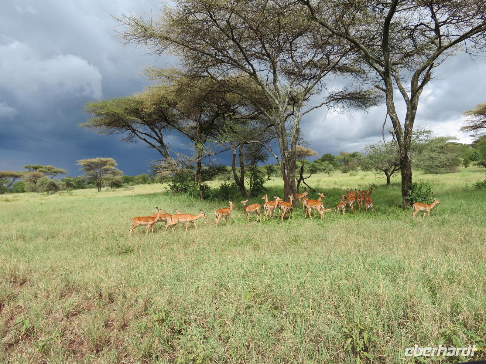 Wir beginnen unsere weitere Reise mit einem Besuch im Tansanite Experience - einem Museum, in dem die Geschichte des Tansanite erzählt wird. Der Tansanite ist ein blauer sehr seltener Edelstein, der nur in Tansania vorkommt. Sehr anschaulich wird die Geschichte des Steines von seiner Entdeckung 1966 bis zur heutigen Gewinnung in Minen und der Verarbeitung in wunderschöne Schmuckstücke erzählt. Danach besuchen wir das Culture Heritage. Hier werden eine Vielzahl von verschiedensten Souvenirs und Kunsthandwerkarbeiten angeboten. Nachdem wir die ersten Mitbringsel gekauft haben, führt uns die Tour weiter. Es geht durch die Vororte von Arusha und wir sehen das bunte Treiben auf den Straßen. Nach einer ganzen Weile verlassen wir das Gebiet Arusha und die ersten Dörfer der zum Teil inzwischen sesshaft gewordenen Massai tauchen auf. Wir sehen immer wieder Massai in traditioneller Kleidung mit ihren Viehherden. Am Mittag erreichen wir unsere Lodge am Tarangire-Nationalpark. Wir beziehen unsere Zimmer, die dieses Mal komfortable zeltartige Gebäude sind. Natürlich verfügen diese über Bäder und einen herrlichen Blick in die Savanne. Nach dem schmackhaften Mittagessen starten wir zu unserer ersten Pirschfahrt im Tarangire-Nationalpark. Wir sehen neben Zebras, Impalas und Buschböcken unseren ersten Elefanten. Giraffen, Wasserböcke und eine Vielzahl an Vögeln begegnen uns.
