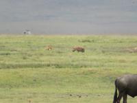 Nach einem zeitigen Frühstück starten wir zu einem besonderen Höhepunkt unserer Rundreise durch Tansania. Das Ngorongoro-Schutzgebiet beherbergt mit einer Größe von 8.300 Quadratkilometern den riesigen Ngorongoro-Krater. Dies ist die größte Caldera der Welt. Nach einem großen Vulkanausbruch vor ca. 10 - 15 Millionen Jahren ist diese einzigartige Landschaft durch den Einsturz der Bergspitze entstanden. Im Krater leben ca. 25.000 Tiere. Nicht alle, aber einige wollen wir heute sehen. Der berühmte Tierfilmer Bernhard Grzimek wirkte hier und er betrachtete den Krater als Weltwunder. Vom Aussichtspunkt am Rand des Kraters eröffnet sich uns ein grandioser Blick auf das riesige Areal aus Steppe, Seen und Buschland. Zunächst fahren wir 600 Meter hinunter in den Krater. Bei einer ausführlichen Pirschfahrt erleben wir die Artenvielfalt im Krater hautnah. Wir sehen Gnus, Zebras, Thomsen- und Grantgazellen, aber auch wieder viele Vögel wie den Sekretär, den heiligen Ibis oder den Kronenkranich. In der Ferne sehen wir ein Nashorn. Nun haben wir bereits vier der „Big Five" gesehen: Elefant, Löwe, Büffel und Nashorn. Nur der Leopard fehlt uns noch. Wir beobachten aber auch im seichten Wasser dösende Nilpferde. Während unserer Mittagspause an einem kleinen See, werden wir von einem heftigen Gewitterguss überrascht. Zum Glück sitzen wir bereits wieder in den Jeeps und werden nicht nass. Elefanten und Büffel grasen im Krater neben Warzenschweinen und Thomsen-Gazellen. Hyänen entdecken wir ebenso, wie Schakale. Ein wunderschönes Bild! Auch heute dürfen wir wieder Löwen beobachten. Ein Löwe mit stattlicher Mähne döst mit seiner Gefährtin in der Sonne, andere sind gerade beim Fressen und zu guter Letzt sehen wir am Ende unserer Tour auch noch drei Löwinnen auf einem Baum. Wir kehren nach einem herrlichen Tag zu unserer Lodge zurück. Am Abend gehen dann nochmals einige Regengüsse nieder. Aber das tut unserer guten Stimmung keinen Abbruch.