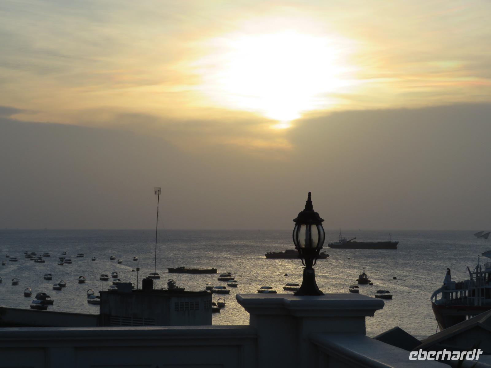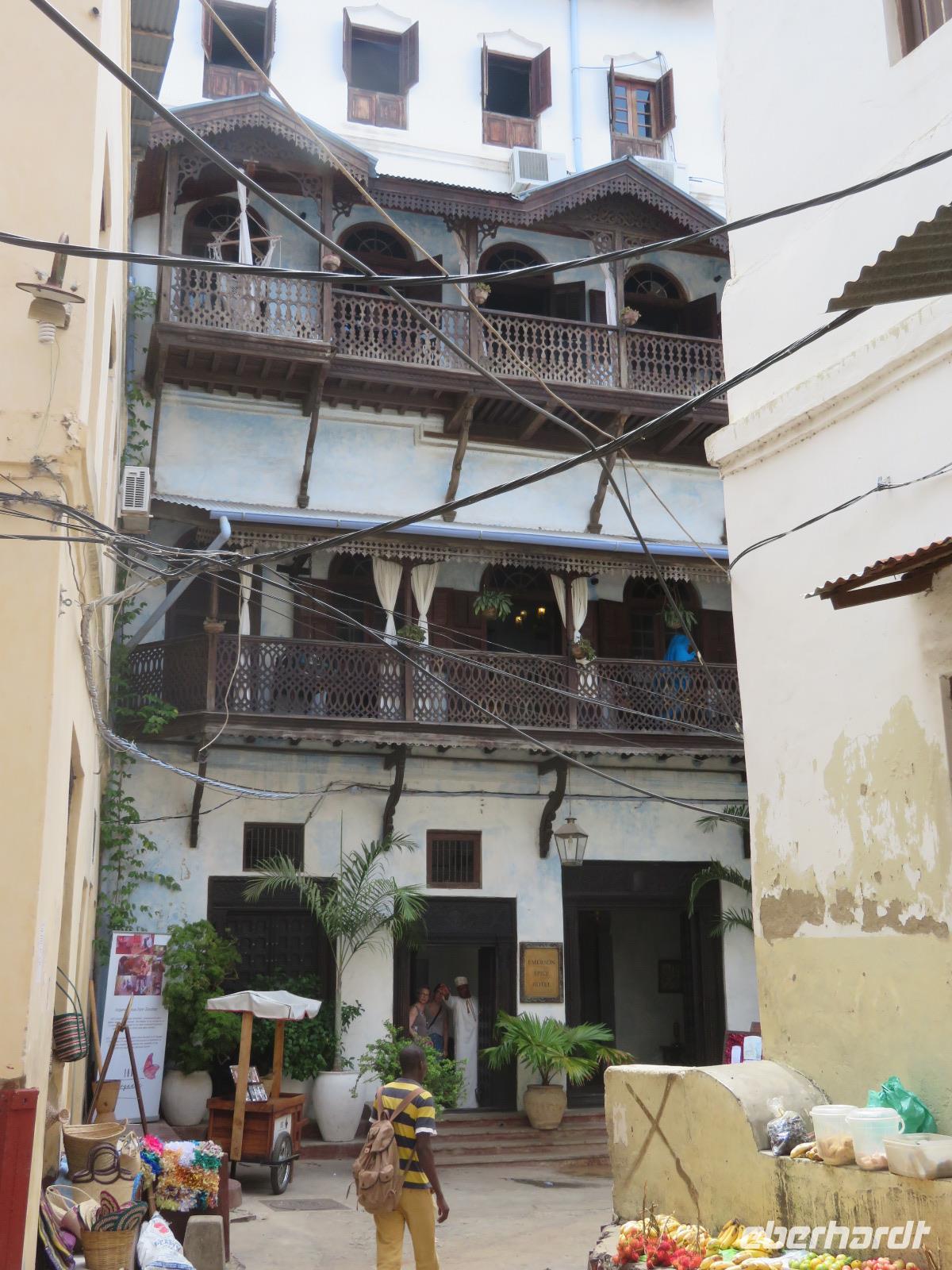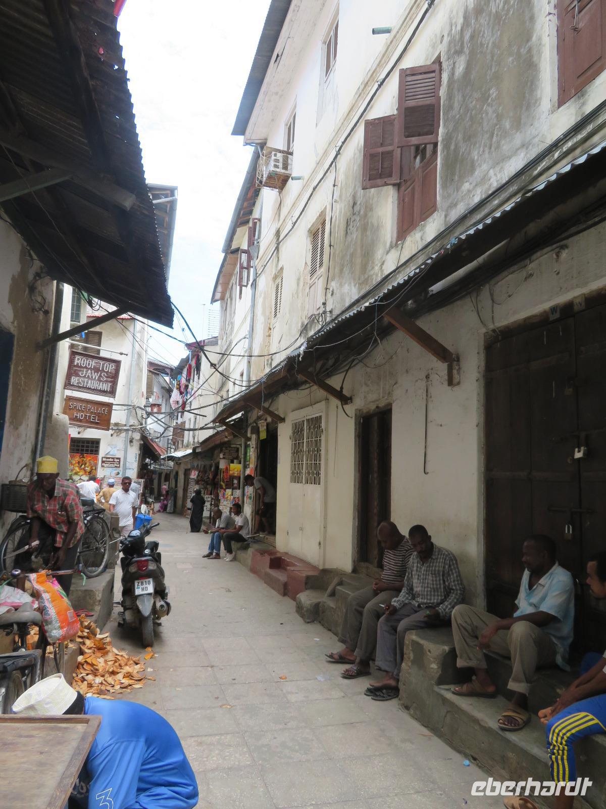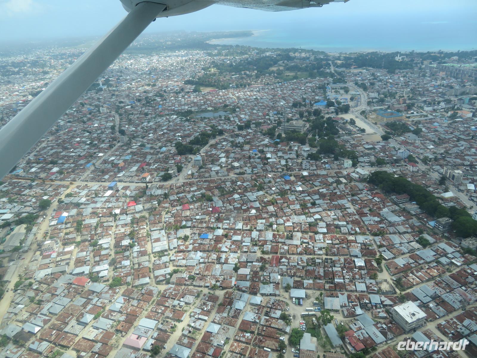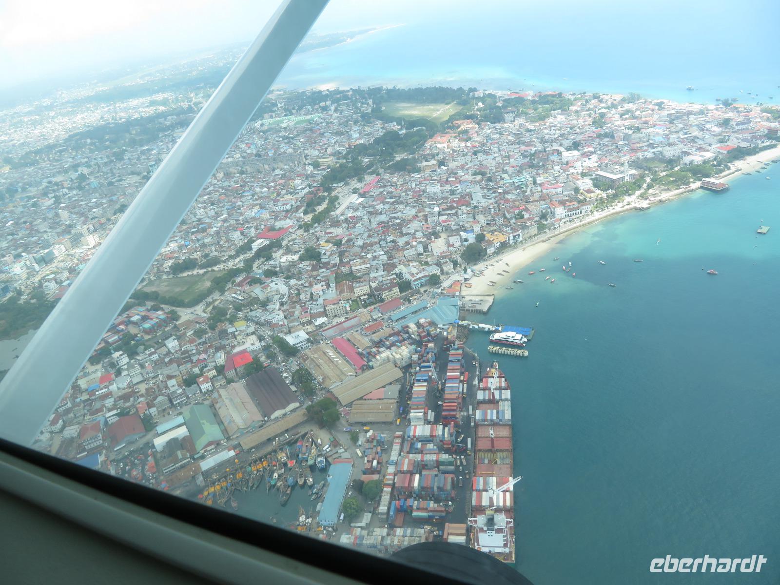Unsere Tage in der Serengeti sind nun leider vorbei. Ein letztes Mal genießen wir den Ausblick über diese riesige Ebene mit ihrer großen Weite. Unsere beiden Guides bringen uns zum Ikoma-Airstrip. Dies ist ein Bush-Flugplatz bestehend aus einem Toilettenhäuschen, einer Landebahn im Gras und einem Windsack. Wir müssen noch etwas warten und nutzen die Zeit um uns an die schöne Zeit mit Macdonald und Amos und die vielen schönen Erlebnisse zu erinnern. Natürlich wollen wir uns auch bei beiden herzlich bedanken, denn sie haben uns einmalige Momente in der Tierwelt Tansanias erleben lassen. Dann kommt eine kleine Cessna angeflogen. Sie holt nur unsere Gruppe ab. Das Gepäck wird durch die Guides verladen und wir steigen ein. Schnell erhebt sich das kleine Flugzeug in die Lüfte und wir fliegen über die Serengeti nach Arusha. Hier gibt es einen kurzen Zwischenstopp. Beim Aussteigen erfahren wir, dass wir mit der gleichen Maschine nach Sansibar weiterfliegen. Das Flugzeug wird betankt, drei andere Gäste steigen noch zu und wir heben wieder ab. Nach zwei Stunden und einem schönen Flug landen wir in Sansibar. Das Ausfüllen der Einreiskarte und die Kontrolle unserer Visa sind schnell erledigt. Uns erwartet ein Busfahrer und bringt uns ins Hotel in Stone Town. Das Klima ist in Sansibar ganz anders als auf dem Festland. Es ist sehr schwül und feucht. Wir nutzen den Nachmittag zur Erholung am Pool. Am Abend treffen wir uns zum Abendessen auf der Dachterrasse des Hotels.