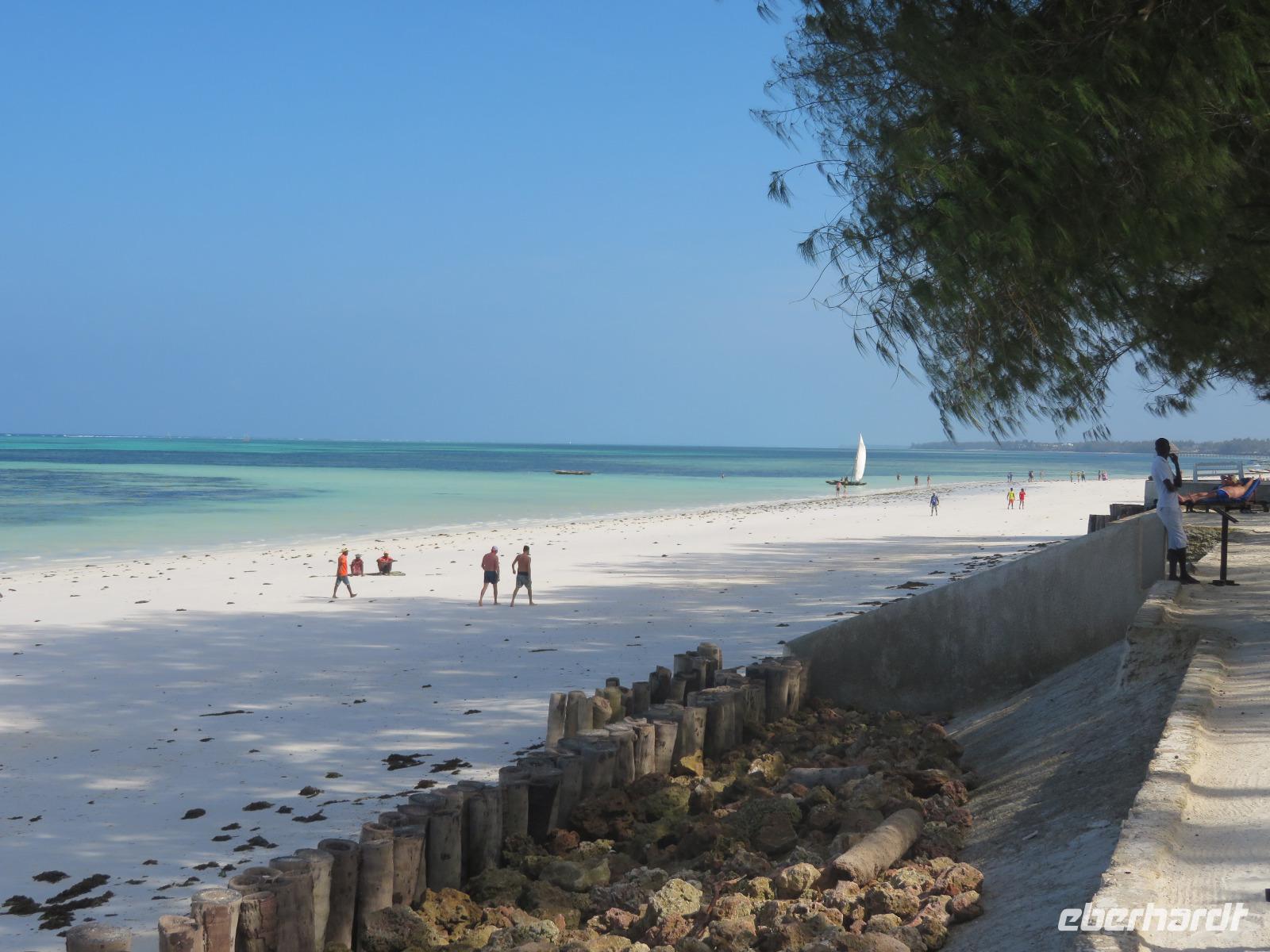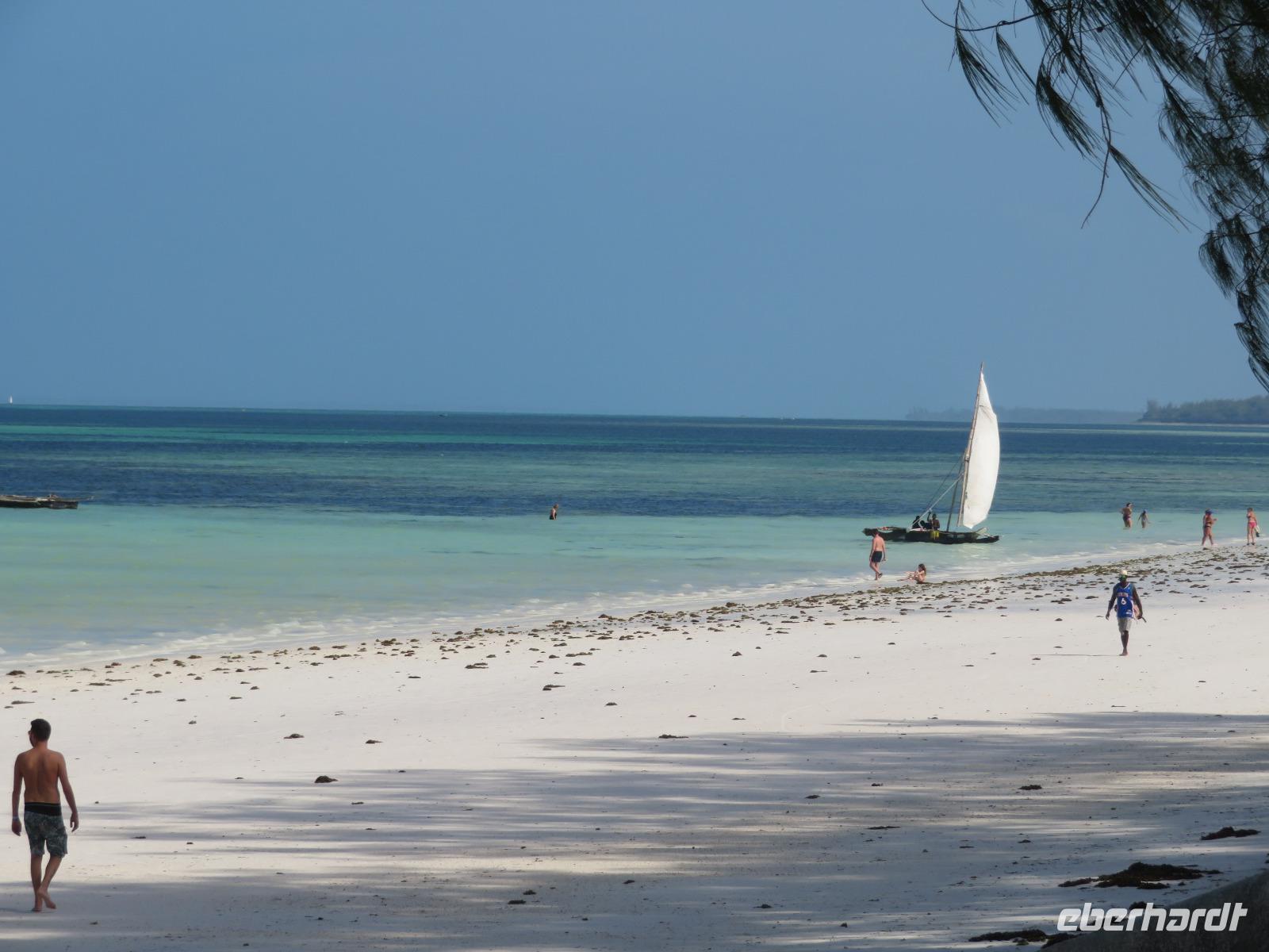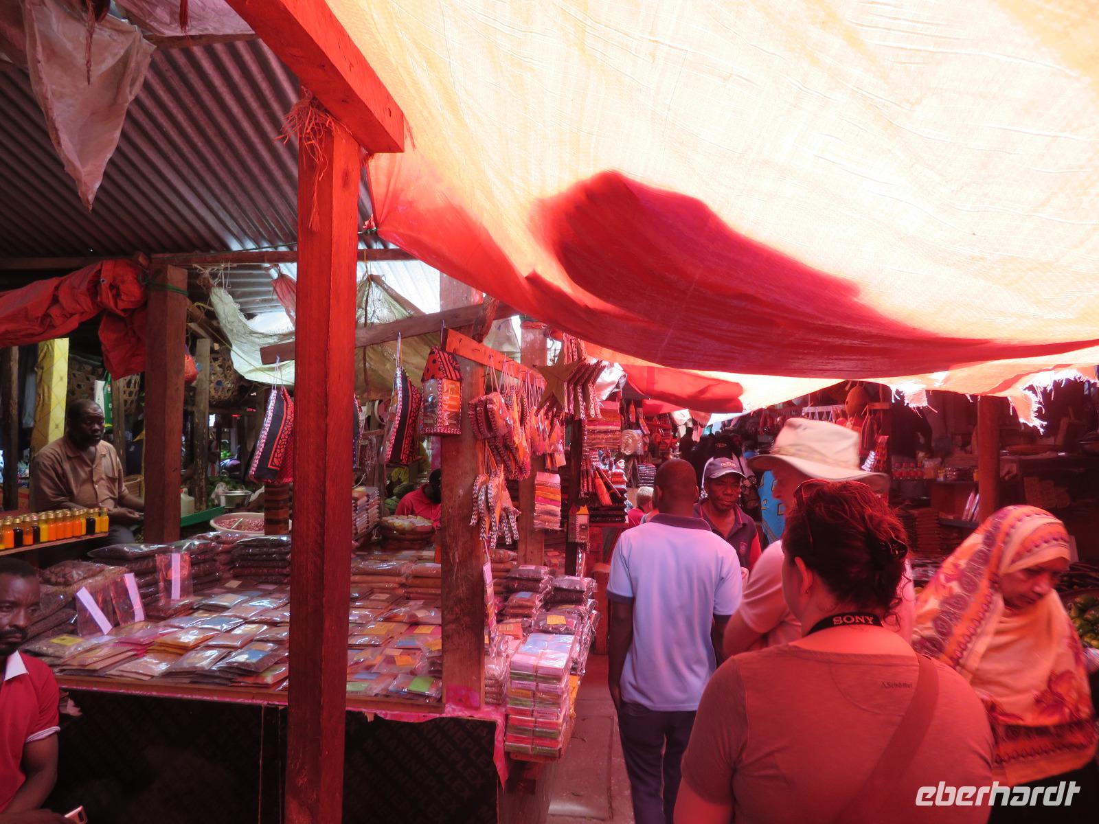 Am Vormittag gehen wir auf der stark arabisch geprägten Insel auf Entdeckungsreise. Achmed, unser deutschsprachiger Reiseleiter holt uns mit dem Bus ab und erzählt uns bereits einige Details aus der Geschichte. So hatte von 1832 bis 1896 der Sultan des Oman auf Sansibar seinen Hauptsitz. Wir unternehmen einen ausgiebigen Stadtrundgang in Stone Town. Wir besuchen zunächst das Museum am ehemaligen Sklavenmarkt. Während der Herrschaft des Sultans war Sansibar das Zentrum des Sklavenhandels in Ostafrika. Achmed erklärt uns, wie der Sklavenhandel ablief und wir sehen die Kirche, die an der Stelle erbaut wurde, wo die Sklaven versteigert worden. Wir besichtigen einen Sklavenkeller, in dem die Sklaven bis zu ihrem Verkauf unter menschenunwürdigen Verhältnissen ausharren mussten. Anschließend besuchen wir den Markt. Dieser wurde 1902 erbaut und beherbergt einen Obst- und Gemüsemarkt, einen Fisch- und einen Fleischmarkt und den Basar. Wir schauen dem geschäftigen Treiben zu. Nun spazieren wir durch die Altstadt mit den vielen koloniale Häuserfassaden, dem Sultanspalast und dem Haus der Wunder. Dieses erhielt seinen Namen, da es das erste Haus auf Sansibar war, welches über elektrisches Licht, fließendes Wasser, einen Fahrstuhl und eine Uhr in der Fassade verfügte. Unterwegs nehmen wir noch ein erfrischendes Getränk in einem Restaurant am Meer, denn es ist sehr warm und feucht. Nun bringt uns Achmed zu der luxuriösen Hotelanlage an der Ostküste der Insel. Wir beziehen unsere schönen Zimmer. Am Nachmittag entspannen wir am langen weißen Sandstrand. Natürlich gehen wir auch im türkisblauen Meer baden. Das Wasser im Meer hat allerdings Badewannentemperatur und erfrischt nicht wirklich. Aber dennoch ist es sehr entspannend. Den Tag lassen wir in gemütlicher Runde an der Bar ausklingen.