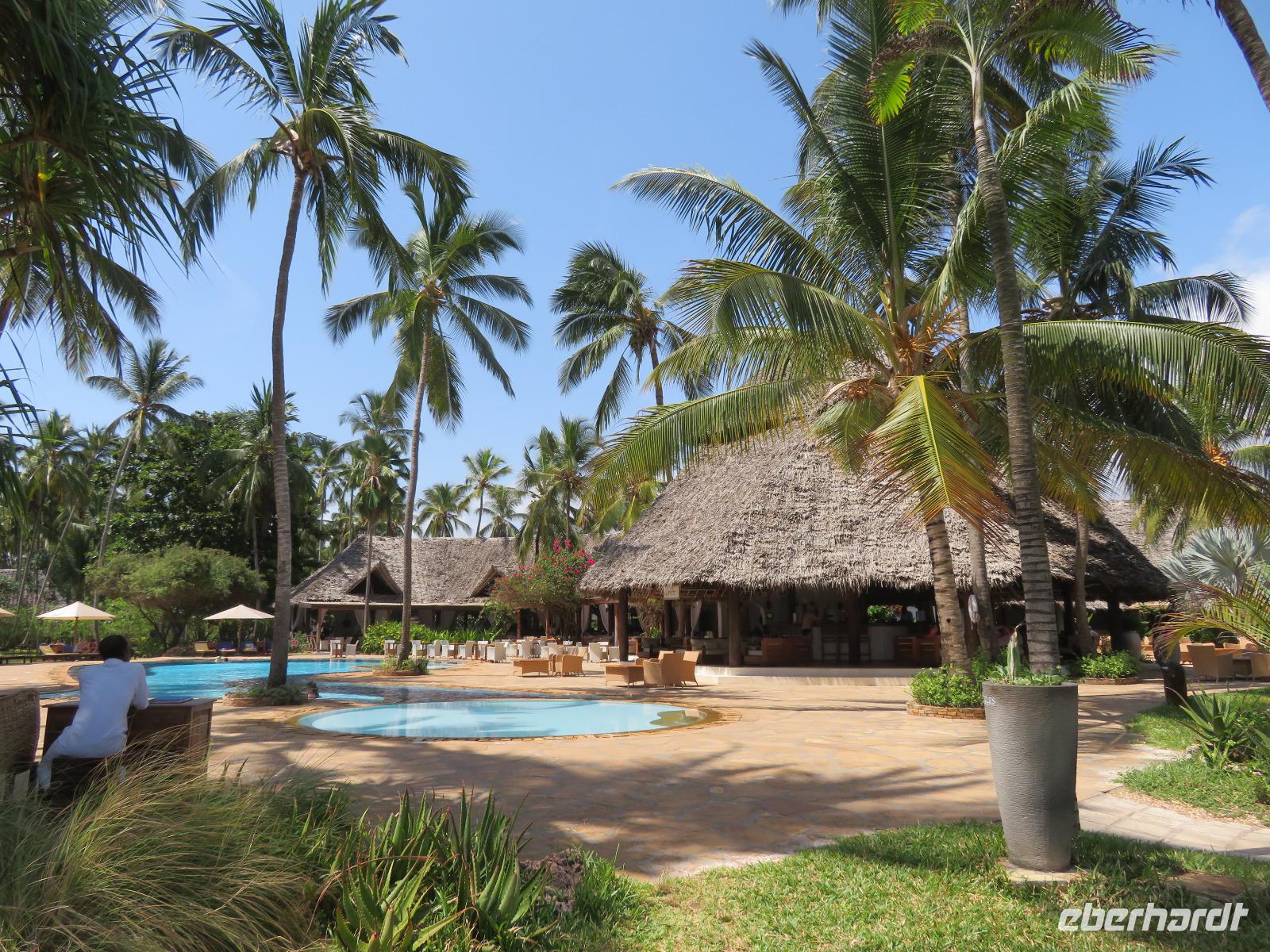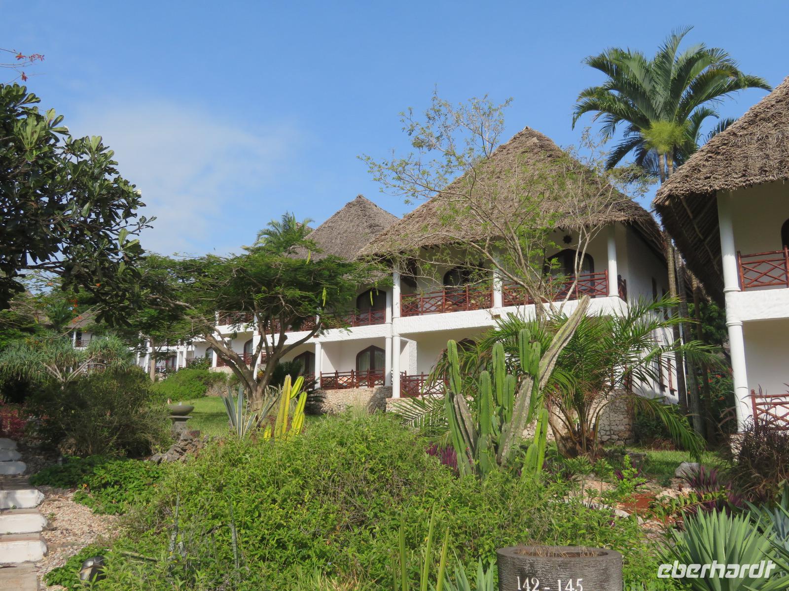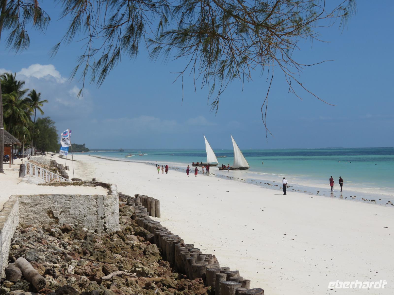 Am Vormittag gehen wir auf der stark arabisch geprägten Insel auf Entdeckungsreise. Achmed, unser deutschsprachiger Reiseleiter holt uns mit dem Bus ab und erzählt uns bereits einige Details aus der Geschichte. So hatte von 1832 bis 1896 der Sultan des Oman auf Sansibar seinen Hauptsitz. Wir unternehmen einen ausgiebigen Stadtrundgang in Stone Town. Wir besuchen zunächst das Museum am ehemaligen Sklavenmarkt. Während der Herrschaft des Sultans war Sansibar das Zentrum des Sklavenhandels in Ostafrika. Achmed erklärt uns, wie der Sklavenhandel ablief und wir sehen die Kirche, die an der Stelle erbaut wurde, wo die Sklaven versteigert worden. Wir besichtigen einen Sklavenkeller, in dem die Sklaven bis zu ihrem Verkauf unter menschenunwürdigen Verhältnissen ausharren mussten. Anschließend besuchen wir den Markt. Dieser wurde 1902 erbaut und beherbergt einen Obst- und Gemüsemarkt, einen Fisch- und einen Fleischmarkt und den Basar. Wir schauen dem geschäftigen Treiben zu. Nun spazieren wir durch die Altstadt mit den vielen koloniale Häuserfassaden, dem Sultanspalast und dem Haus der Wunder. Dieses erhielt seinen Namen, da es das erste Haus auf Sansibar war, welches über elektrisches Licht, fließendes Wasser, einen Fahrstuhl und eine Uhr in der Fassade verfügte. Unterwegs nehmen wir noch ein erfrischendes Getränk in einem Restaurant am Meer, denn es ist sehr warm und feucht. Nun bringt uns Achmed zu der luxuriösen Hotelanlage an der Ostküste der Insel. Wir beziehen unsere schönen Zimmer. Am Nachmittag entspannen wir am langen weißen Sandstrand. Natürlich gehen wir auch im türkisblauen Meer baden. Das Wasser im Meer hat allerdings Badewannentemperatur und erfrischt nicht wirklich. Aber dennoch ist es sehr entspannend. Den Tag lassen wir in gemütlicher Runde an der Bar ausklingen.