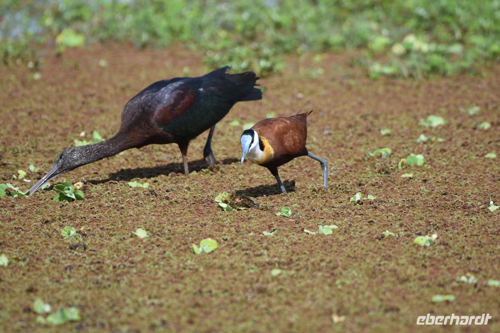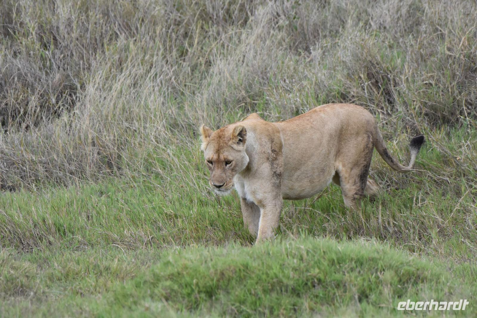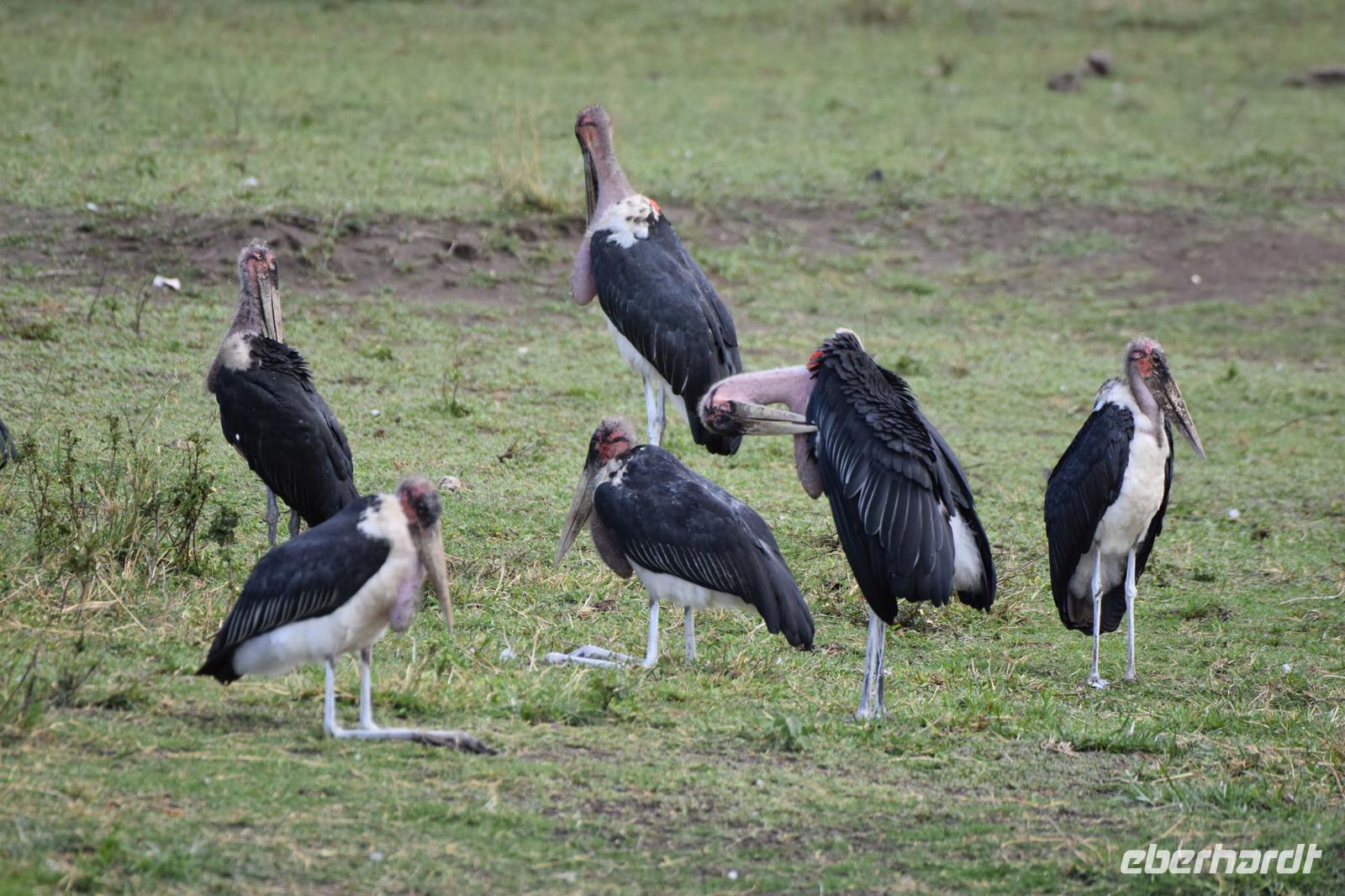 Wir starten früh zum Game Drive, fahren aber erst zum Airstrip, wo wir den Jeep gegen einen anderen tauschen, da der erste Jeep einige Probleme hatte. Neben großen Gruppen Elefanten haben wir die ersten Löwen und eine Hyäne in guter Photodistanz sowie Sattelstörche, Gnus und Gruppen von Grantgazellen. Längs des Weges am Sumpf sind sehr viele Wasservogelarten zu sehen. Zum Lunch sind wir zurück im Camp.