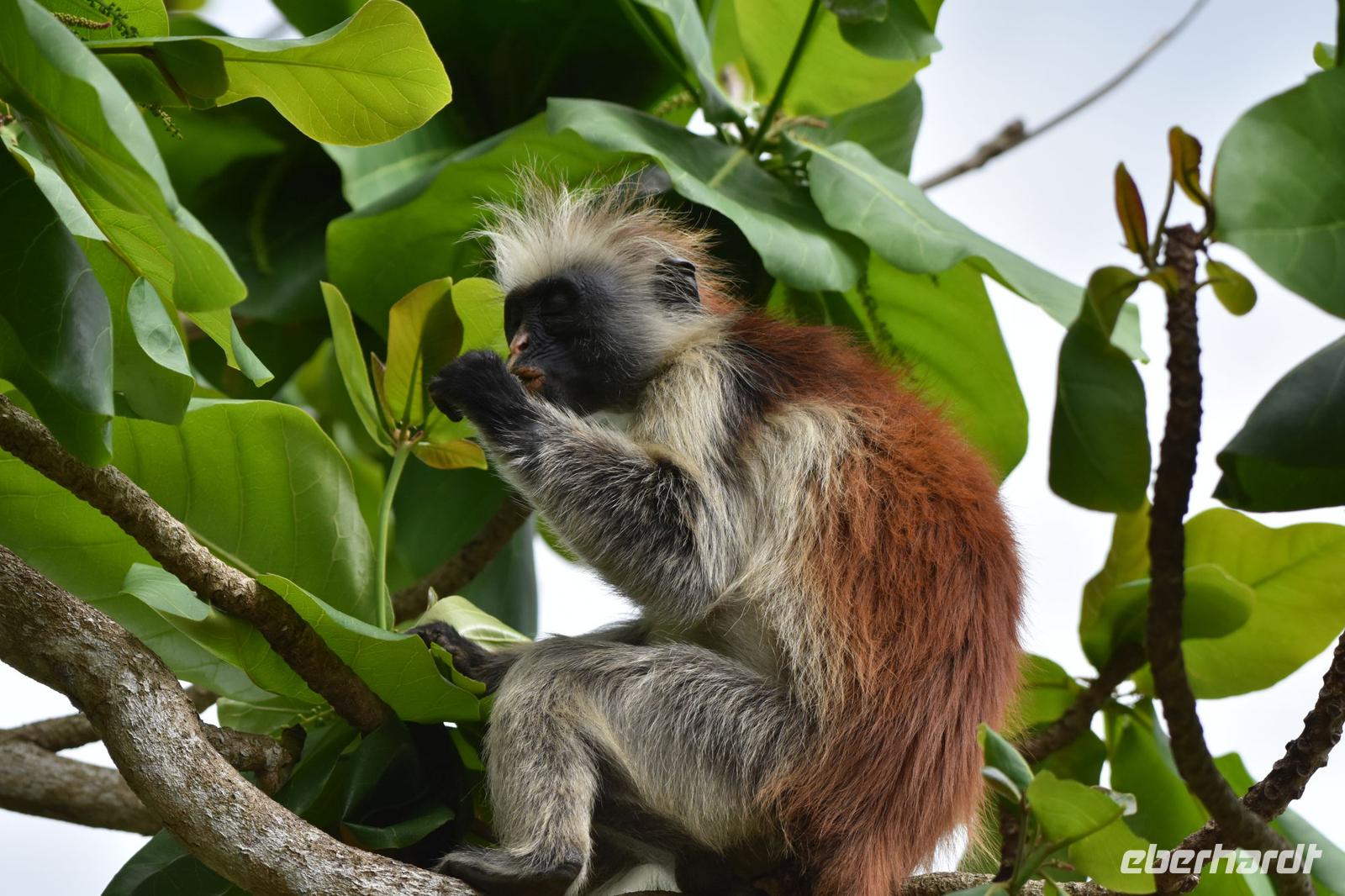 Nach dem Frühstück gingen wir mit unserem Guide durch die interessante Altstadt und besuchten auch den Sklavenmarkt, die Kathedrale und den Markt, Aber dann kam Regen, und wie! Es goss wie aus Kübeln und das blieb auch so, sodass wir den Stadtrundgang abbrechen und uns in den Bus flüchten mussten. Wir sind dann lieber zum Josani Nationalpark gefahren. Dort hatten wir großes Glück und hatten sowohl die Sansibar Weißkehlmeerkatzen als auch die roten Colobus fast in Greifnähe und konnten sie gut beobachten. Ein Rundgang durch die Mangrovenwälder bildete hier den Schlusspunkt und danach ging es retour zum Hotel Bluebay, ein sehr schönes Haus. Der Nachmittag war zum Ausspannen da.