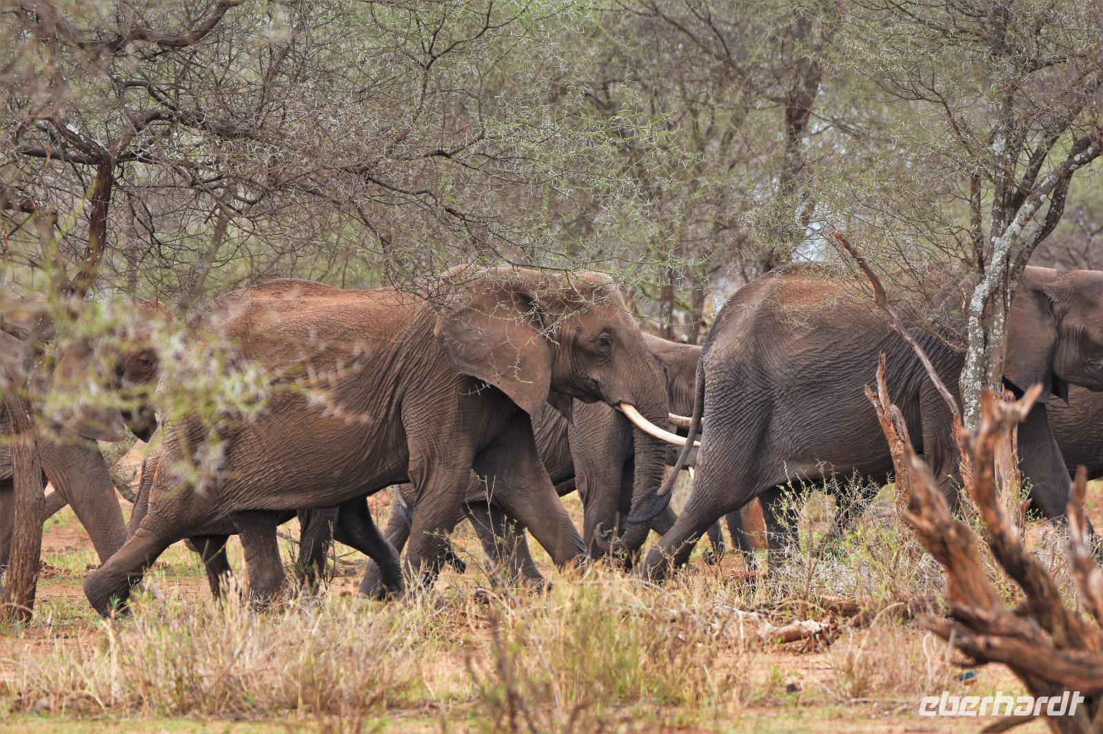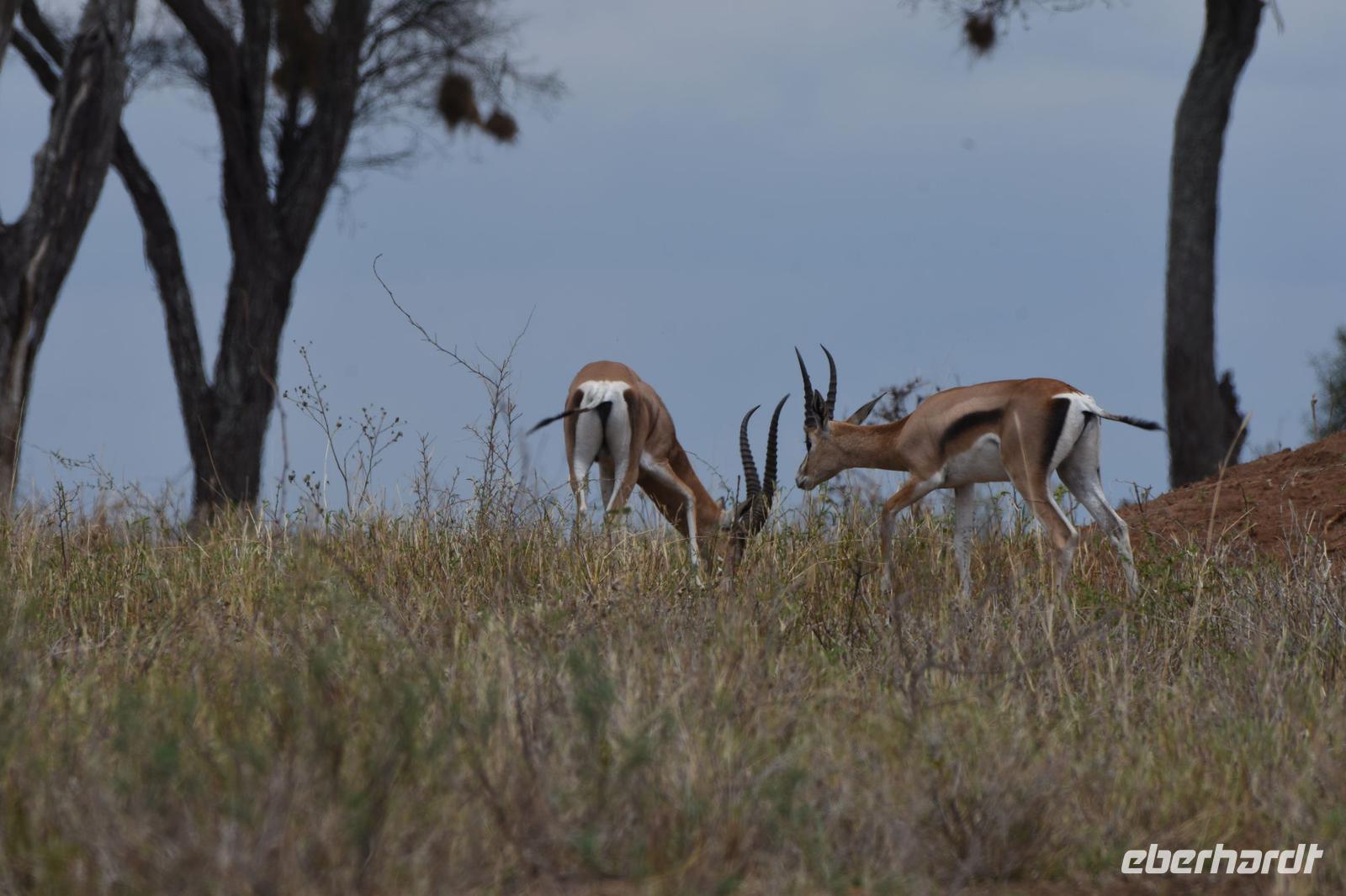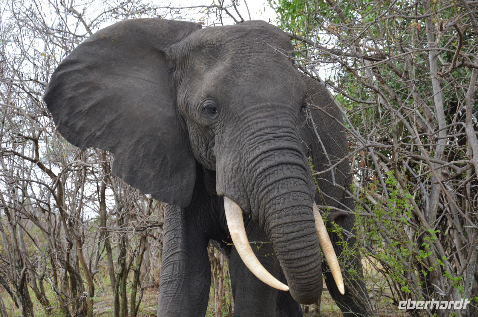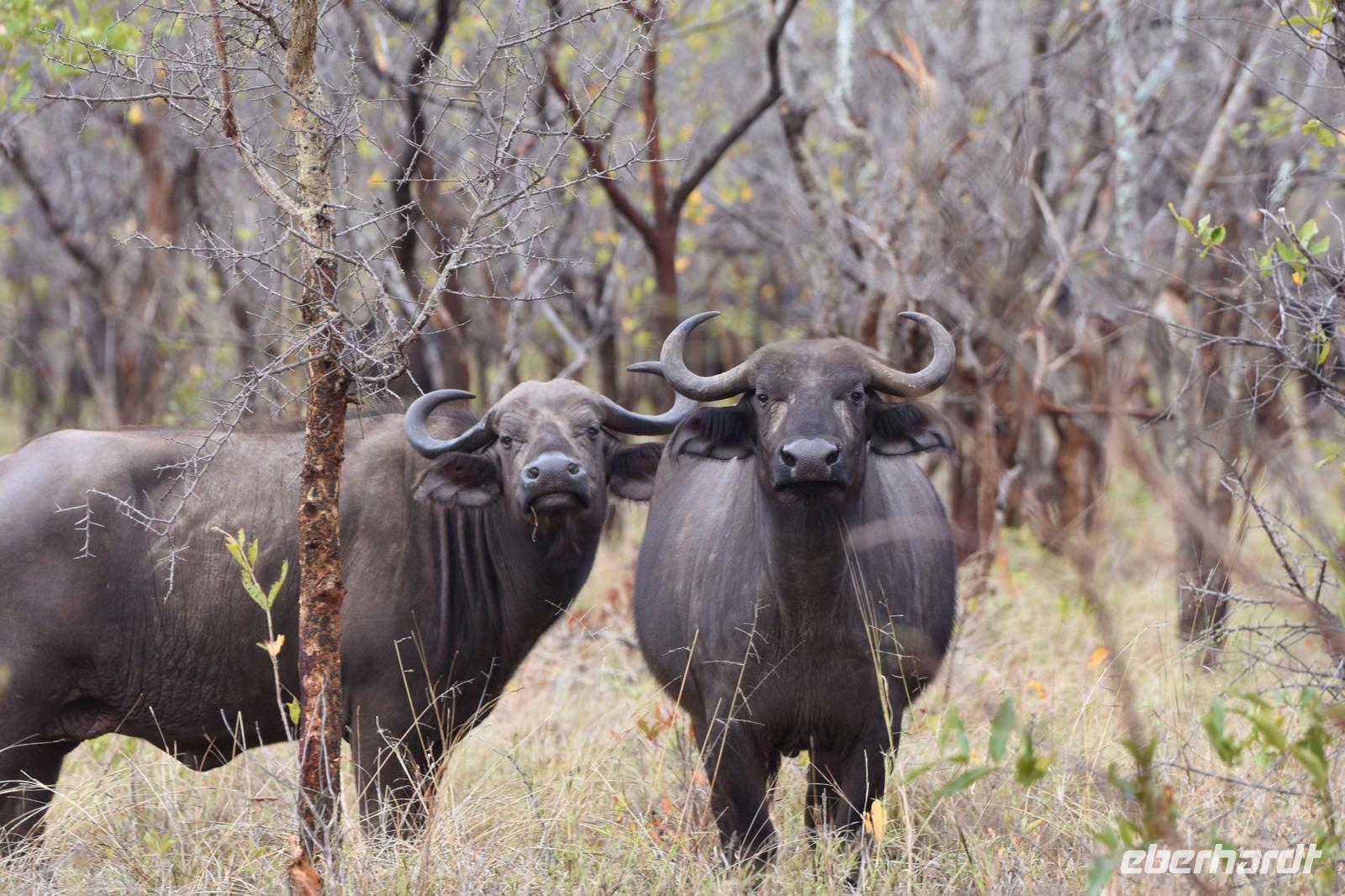 Nachmittags geht es dann zum 2. Game Drive wieder raus. Höhepunkte waren eine wirklich große Büffelherde und Elefantenbullen. Impalas sind hier im Süden sehr häufig und auch die Kleinvogelwelt ist spannend. Wir sehen auch Sandflughühner und Triele, die beide eigentlich sehr schwer zu finden sind, uns aber nicht entkommen.