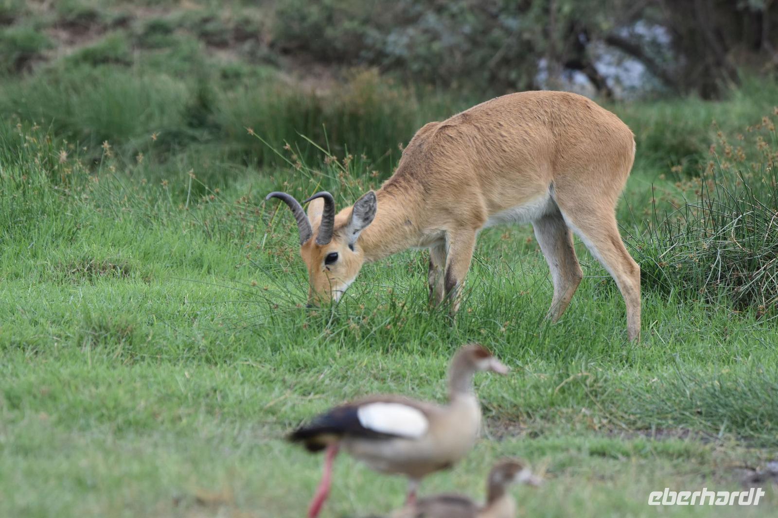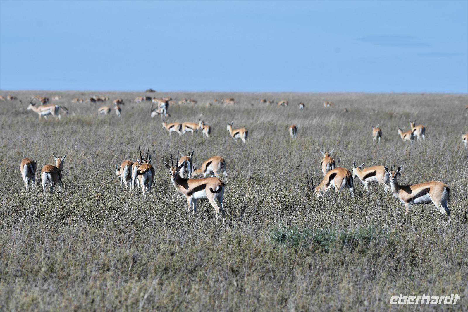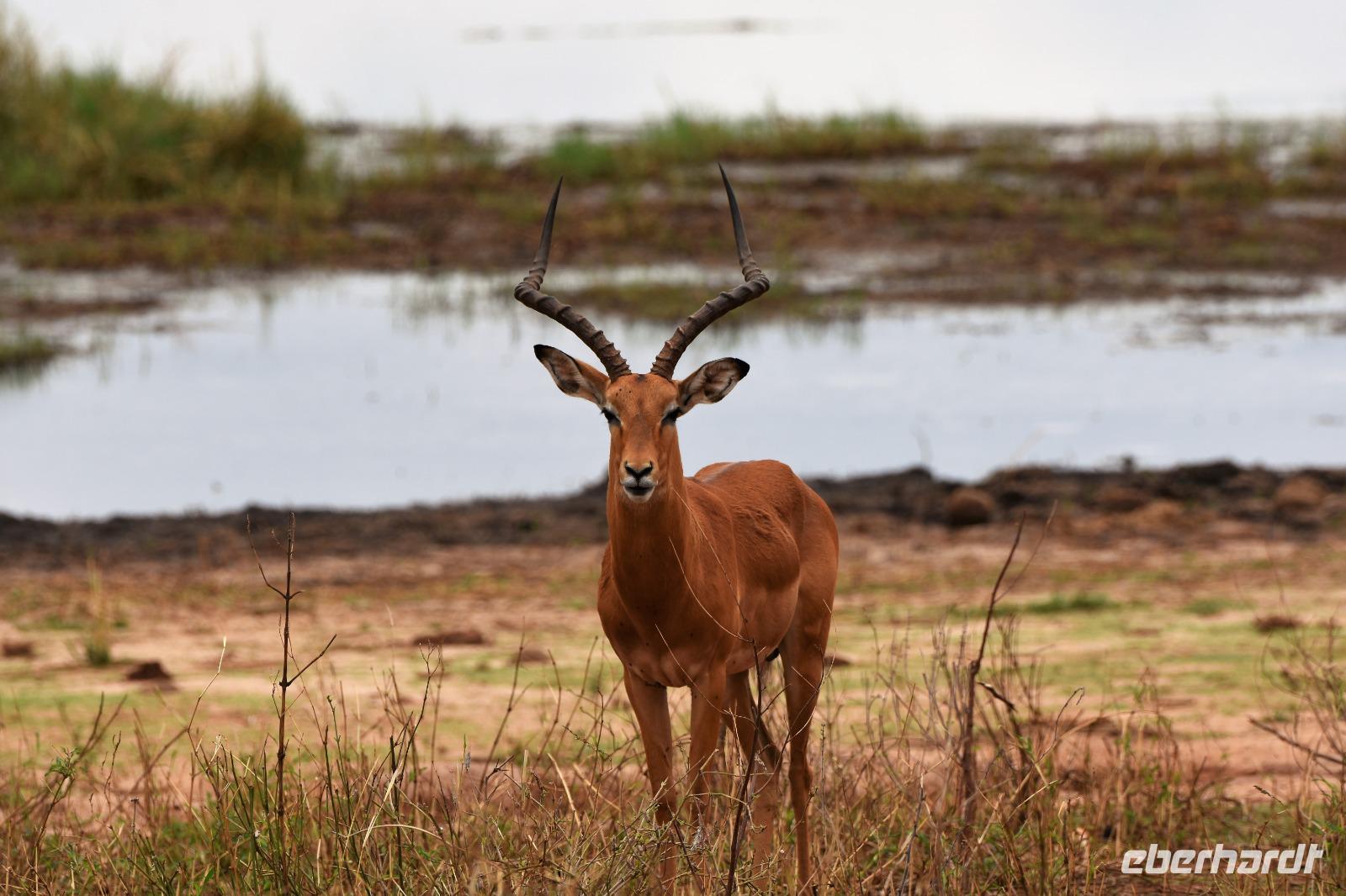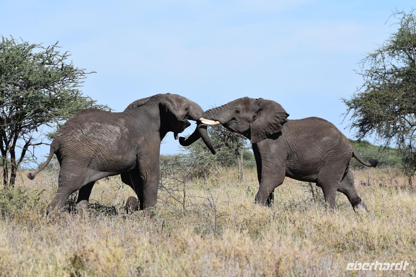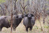 Nachmittags geht es dann zum 2. Game Drive wieder raus. Höhepunkte waren eine wirklich große Büffelherde und Elefantenbullen. Impalas sind hier im Süden sehr häufig und auch die Kleinvogelwelt ist spannend. Wir sehen auch Sandflughühner und Triele, die beide eigentlich sehr schwer zu finden sind, uns aber nicht entkommen.