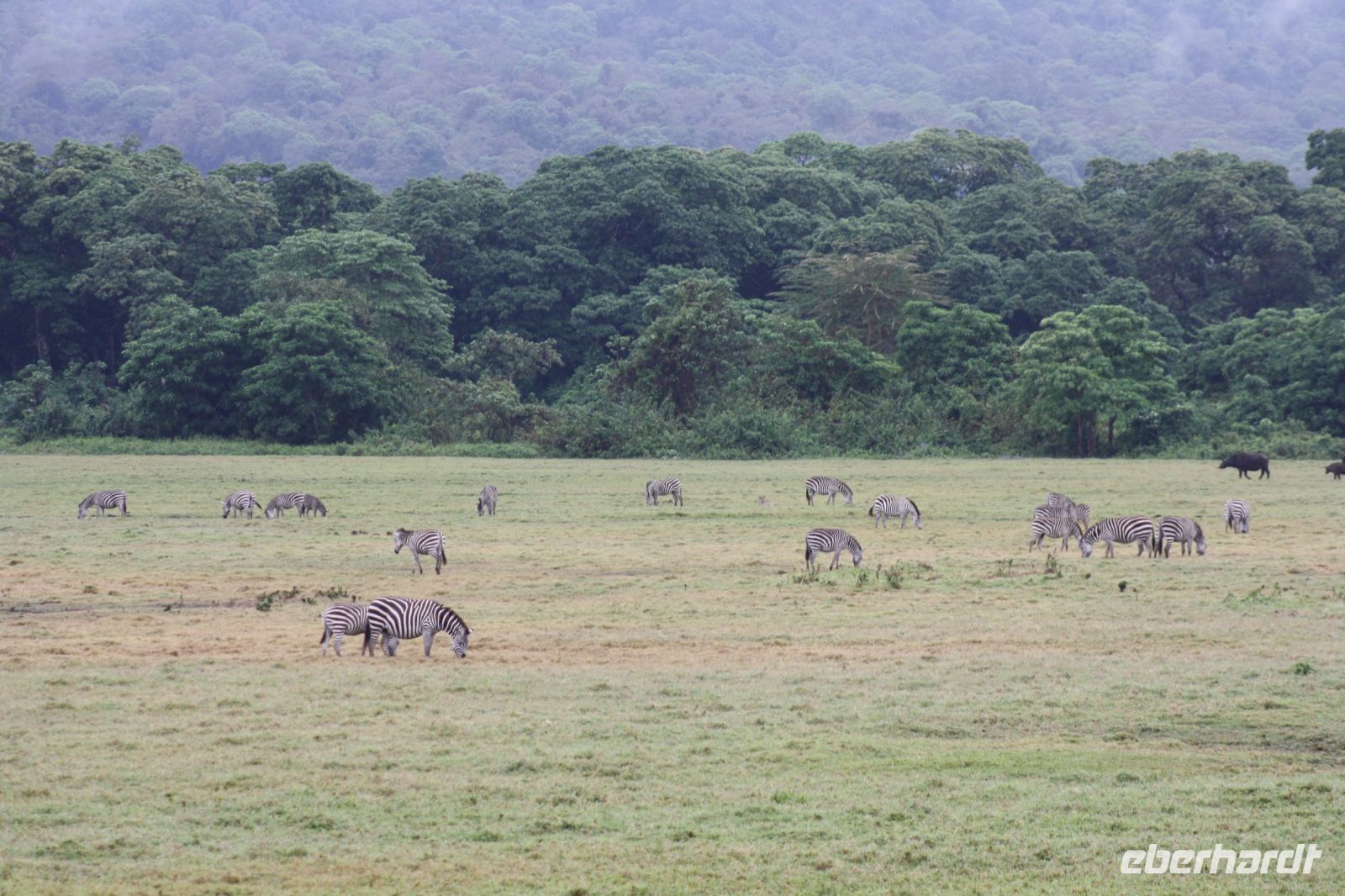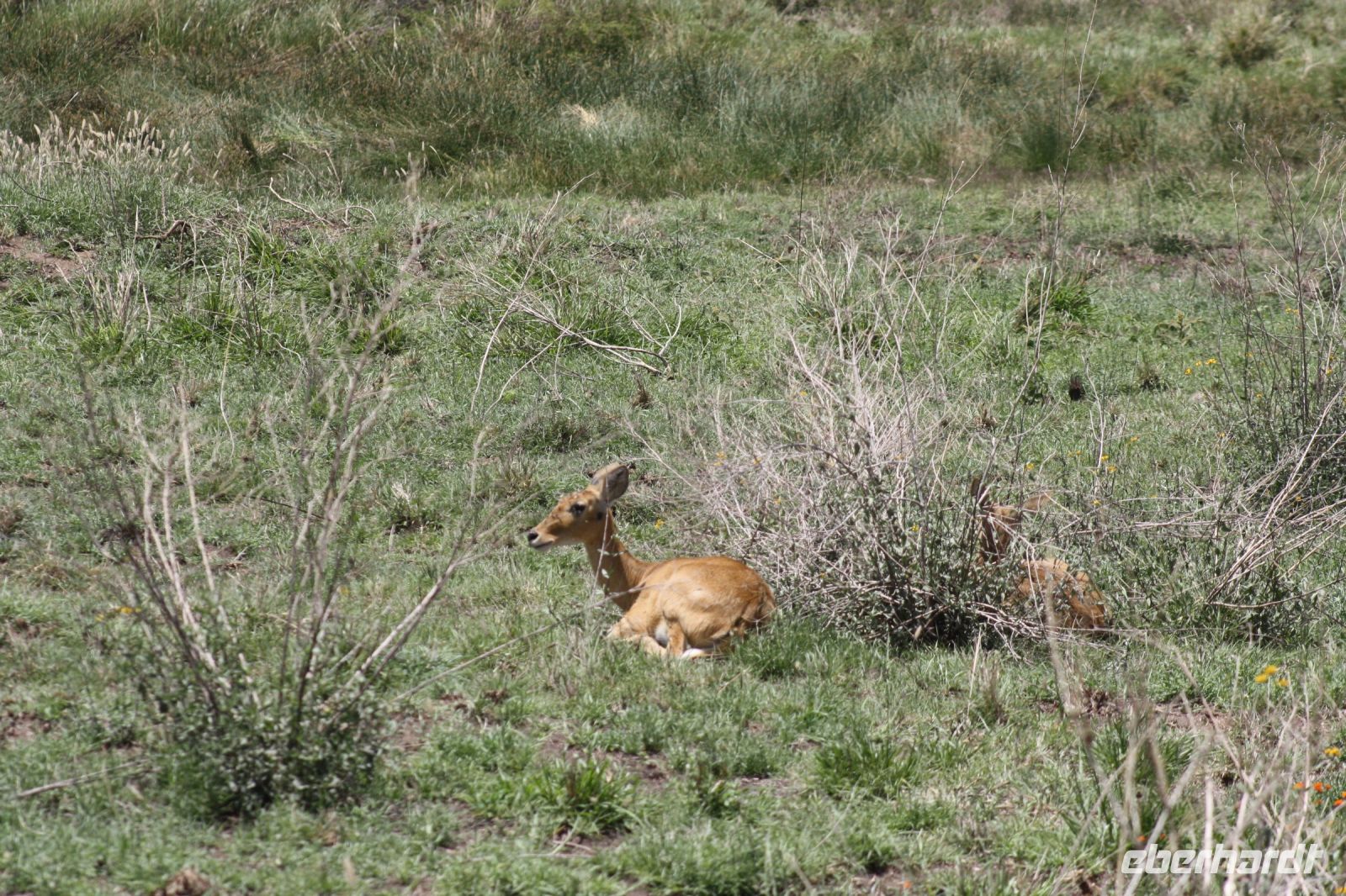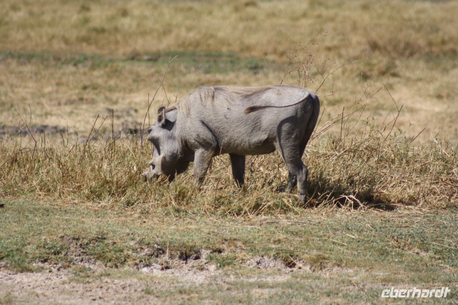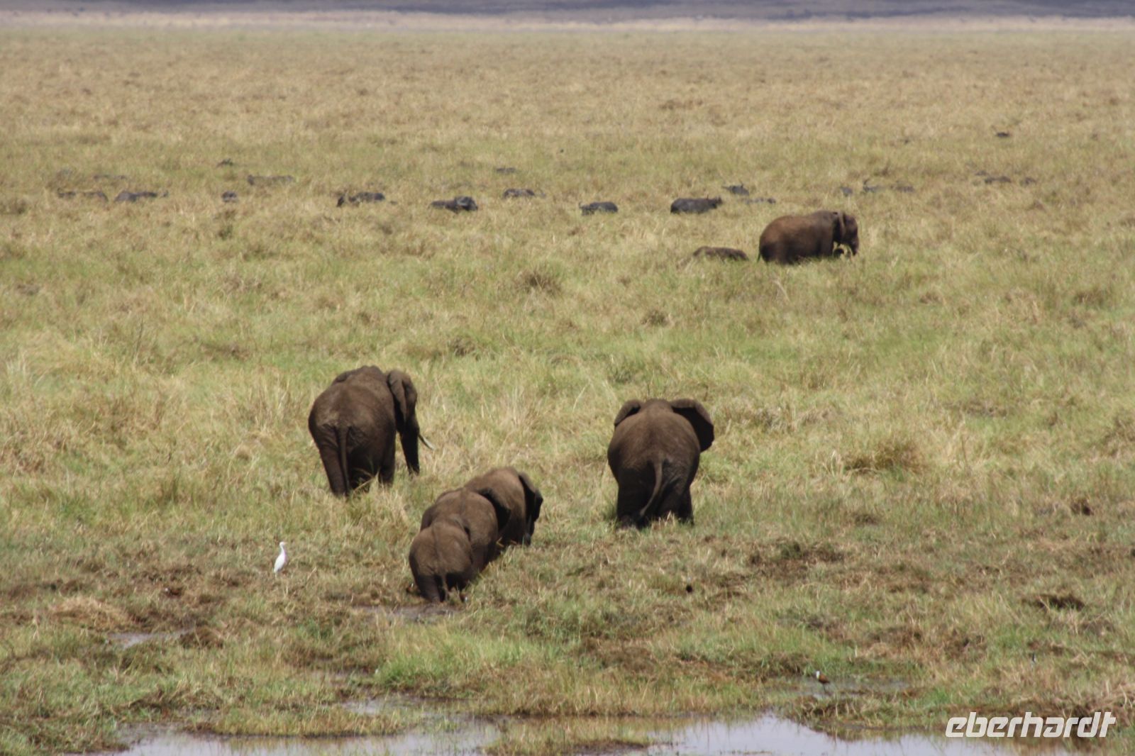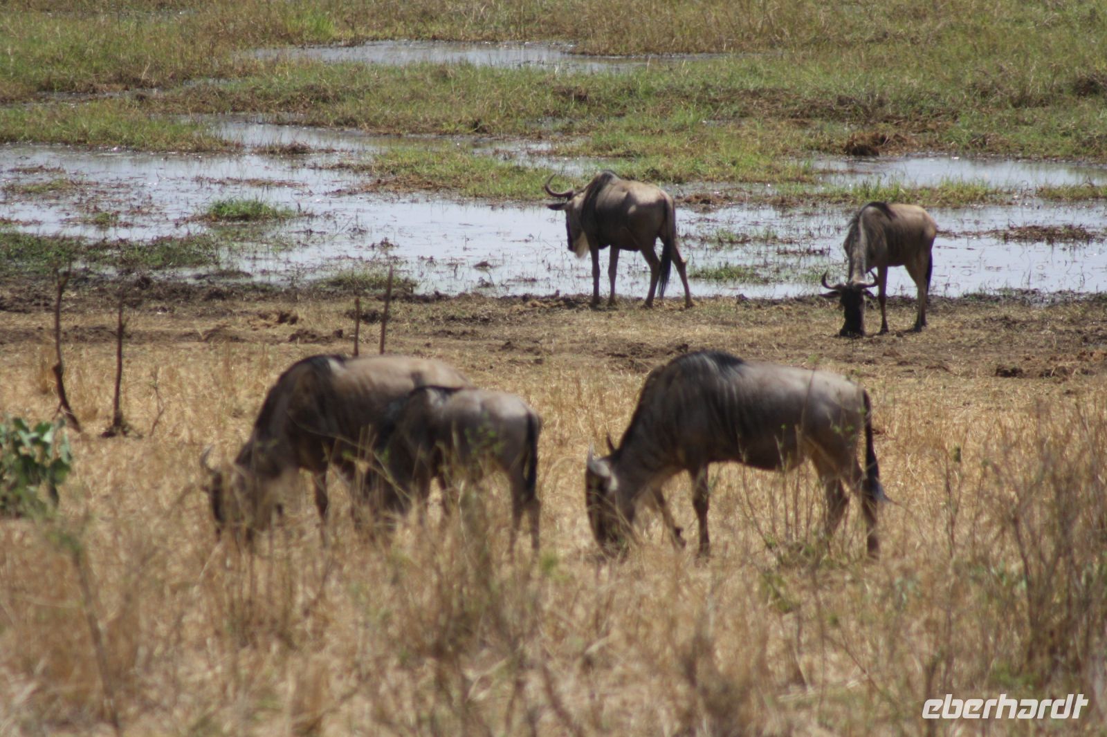 Mit dem Ngorongoro Krater stand heute ein weiteres Highlight auf unserer Agenda. Daher standen wir bereits eine Stunde früher auf und erreichten den Nationalpark bereits um 8 Uhr. Am Gate konnten wir nochmal auf Toilette und uns den Krater in einem kleinen Museum einprägen. Am Gate begrüßte uns bereits eine Paviane Familie und wir fuhren voller Vorfreude auf einer Allwetterpiste den Krater herab. Zwischendurch erhielten wir immer wieder spektakuläre Ausblicke in den Krater hinein. Unsere erste Tierbeobachtung im Krater war dagegen erstmal unspektakulär. Eine Gruppe Perlhühner hieß uns im Krater willkommen. Anschließend liefen allerdings unsere Kameras heiß. Neben einer riesigen Herde Gnu und einer Horde Büffel, konnten wir einen Schakal und Hyänen entdecken. Auch die Vogelwelt ließ sich zahlreich blicken und Bussarde, Kronenkraniche, Flamingos und Stelzenvögel flogen vor unsere Kameras. Am Rand des Lake Magadi konnten wir in eine Herde Hippos entdecken. Nicht weit entfernt fanden wir einen Rudel Hyänen, die sich ganz in der Nähe der Löwen aufhielten. Das Rudel Löwen bestand aus ca. 10 weiblichen Löwen, die bereits gespeist hatten und einen längeren Verdauungsschlaf hielten. Ein weitere Goldschakal huschte an uns vorbei, ehe wir den Hippo-Pool erreichten. In dem dreckigen Nass badeten über 30 Hippos und hielten wir uns ein Konzert ab. Grade als wir einen weiteren Vogelstrauß fotografieren wollten, erhielten wir die Nachricht, dass sich in der Nähe drei weitere Löwinnen aufhielten. Die drei Löwinnen posierten zunächst auf einen kleinen Felsvorsprung, ehe sie sich später auf einen Baum versteckten. Mit dem Fernglas konnten wir in der Ferne sogar 2 Nashörner erblicken. Nach nur wenigen Minuten spazierten eine Löwin direkt an unserem Jeep vorbei. Manchmal muss man einfach Glück haben. Ein männlicher Löwe hingegen schlummerte ganz in der Nähe im Gras und ließ sich von uns nicht stören. Auf dem Weg zum Picknick-Bereich folgte ein weiterer Höhepunkt. Zunächst erspähten wir ein Schakal, der sich eine Schlange erbeutet hatte. Plötzlich folgte ein Angriff eines Adlers und wir konnten einen Kampf um eine Schlange beobachten, welchen der Adler gewann. In der Mittagszeit speisten wir unser Lunchpaket im Jeep und genossen die wunderschöne Natur. Am Nachmittag fuhren wir ins Sumpfgebiet und konnten neben Büffel, auch Elefant beim Baden beobachten. Dann erhielten wir die Nachricht, dass ein Nashorn entdeckt wurden. Leider werden die Nashörner immer schwieriger zu sehen, da sich der Bestand der Nashörner ständig reduziert und die Wilderer ihres dazu beitragen. Unterwegs lichteten wir noch Grants-Gazellen und Thomson Gazelle ab und hielten beim einem Pelikan und Nimmersatt. Allerdings war auch hier das Nashorn nur vom weiten sichtbar, aber wir konnten immerhin ein Gefühl auf seine Größe bekommen. Leider war es nun wieder an der Zeit den Ngorongoro Krater zu verlassen. Unterwegs entdeckten wir noch weitere Hyäne, Pelikane, Hippos und einen Schakal. Am Kraterrand stoppten wir am Denkmal des berühmten Tierfilmer Bernhard Grzimek und genossen nochmal den atemberaubenden Ausblick in den Krater. Auf unserem Nachhauseweg stoppten wir noch kurz bei einem Souvenirladen, ehe wir am frühen Abend unsere Lodge erreichten. Ein atemberaubender Tag neigte sich leider dem Ende entgegen und wir stießen gemeinsam mit einen Amarula auf unseren ersten Teil der Reise an.