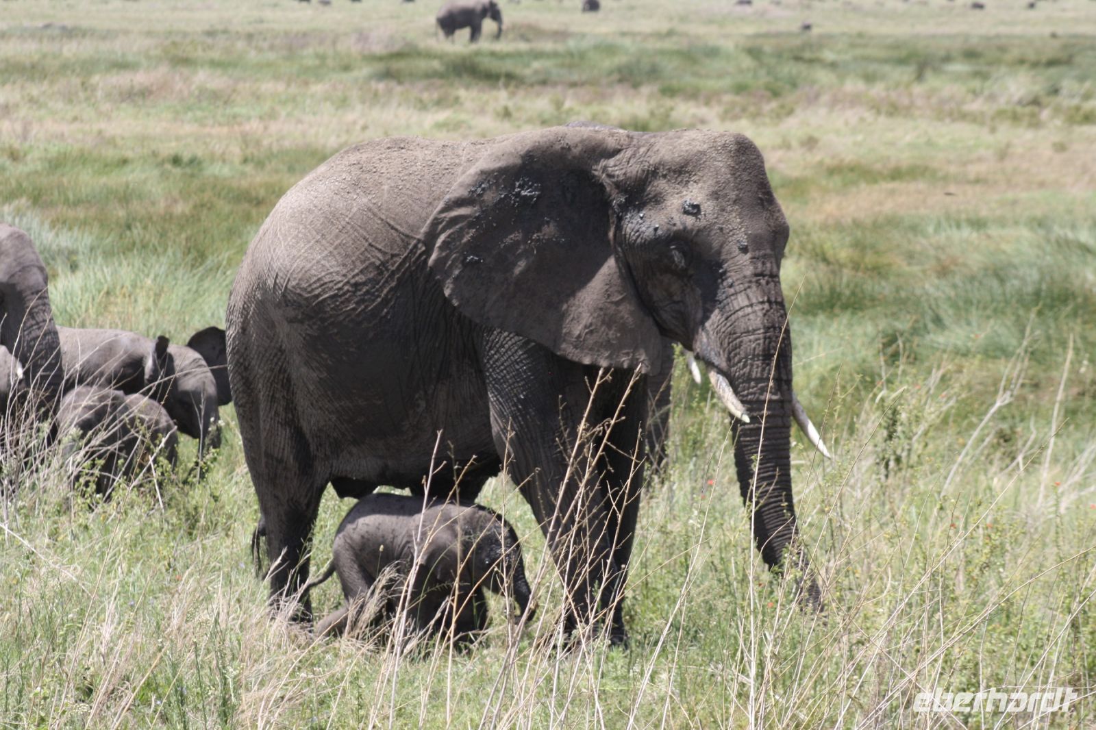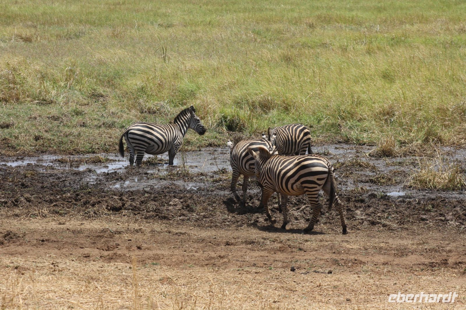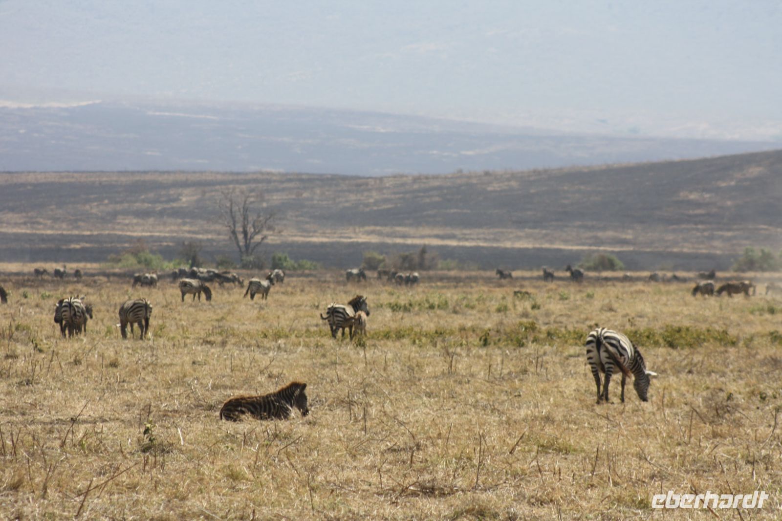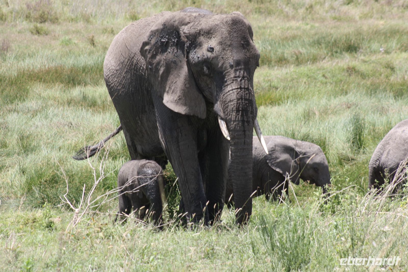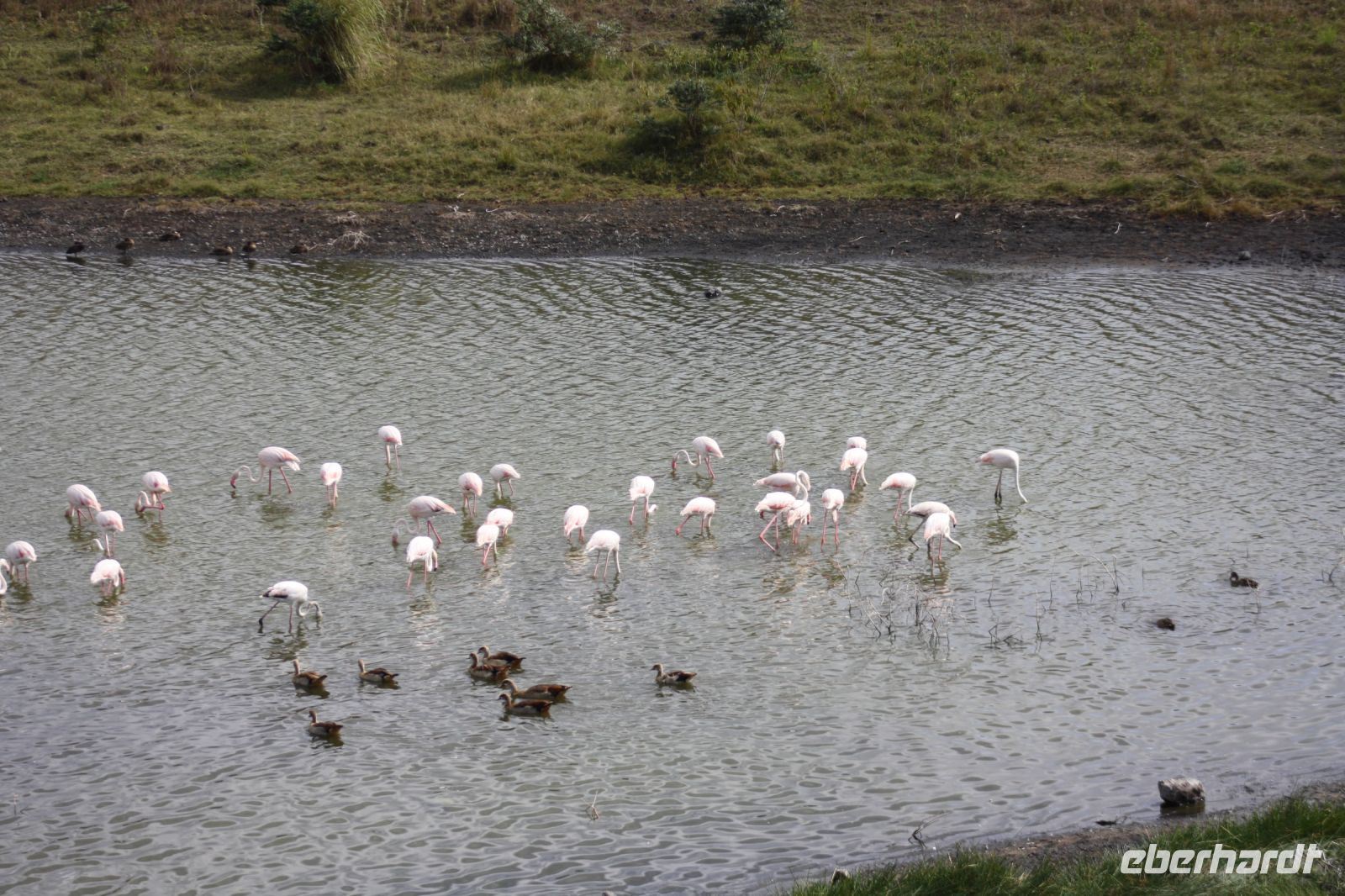 Mit dem Ngorongoro Krater stand heute ein weiteres Highlight auf unserer Agenda. Daher standen wir bereits eine Stunde früher auf und erreichten den Nationalpark bereits um 8 Uhr. Am Gate konnten wir nochmal auf Toilette und uns den Krater in einem kleinen Museum einprägen. Am Gate begrüßte uns bereits eine Paviane Familie und wir fuhren voller Vorfreude auf einer Allwetterpiste den Krater herab. Zwischendurch erhielten wir immer wieder spektakuläre Ausblicke in den Krater hinein. Unsere erste Tierbeobachtung im Krater war dagegen erstmal unspektakulär. Eine Gruppe Perlhühner hieß uns im Krater willkommen. Anschließend liefen allerdings unsere Kameras heiß. Neben einer riesigen Herde Gnu und einer Horde Büffel, konnten wir einen Schakal und Hyänen entdecken. Auch die Vogelwelt ließ sich zahlreich blicken und Bussarde, Kronenkraniche, Flamingos und Stelzenvögel flogen vor unsere Kameras. Am Rand des Lake Magadi konnten wir in eine Herde Hippos entdecken. Nicht weit entfernt fanden wir einen Rudel Hyänen, die sich ganz in der Nähe der Löwen aufhielten. Das Rudel Löwen bestand aus ca. 10 weiblichen Löwen, die bereits gespeist hatten und einen längeren Verdauungsschlaf hielten. Ein weitere Goldschakal huschte an uns vorbei, ehe wir den Hippo-Pool erreichten. In dem dreckigen Nass badeten über 30 Hippos und hielten wir uns ein Konzert ab. Grade als wir einen weiteren Vogelstrauß fotografieren wollten, erhielten wir die Nachricht, dass sich in der Nähe drei weitere Löwinnen aufhielten. Die drei Löwinnen posierten zunächst auf einen kleinen Felsvorsprung, ehe sie sich später auf einen Baum versteckten. Mit dem Fernglas konnten wir in der Ferne sogar 2 Nashörner erblicken. Nach nur wenigen Minuten spazierten eine Löwin direkt an unserem Jeep vorbei. Manchmal muss man einfach Glück haben. Ein männlicher Löwe hingegen schlummerte ganz in der Nähe im Gras und ließ sich von uns nicht stören. Auf dem Weg zum Picknick-Bereich folgte ein weiterer Höhepunkt. Zunächst erspähten wir ein Schakal, der sich eine Schlange erbeutet hatte. Plötzlich folgte ein Angriff eines Adlers und wir konnten einen Kampf um eine Schlange beobachten, welchen der Adler gewann. In der Mittagszeit speisten wir unser Lunchpaket im Jeep und genossen die wunderschöne Natur. Am Nachmittag fuhren wir ins Sumpfgebiet und konnten neben Büffel, auch Elefant beim Baden beobachten. Dann erhielten wir die Nachricht, dass ein Nashorn entdeckt wurden. Leider werden die Nashörner immer schwieriger zu sehen, da sich der Bestand der Nashörner ständig reduziert und die Wilderer ihres dazu beitragen. Unterwegs lichteten wir noch Grants-Gazellen und Thomson Gazelle ab und hielten beim einem Pelikan und Nimmersatt. Allerdings war auch hier das Nashorn nur vom weiten sichtbar, aber wir konnten immerhin ein Gefühl auf seine Größe bekommen. Leider war es nun wieder an der Zeit den Ngorongoro Krater zu verlassen. Unterwegs entdeckten wir noch weitere Hyäne, Pelikane, Hippos und einen Schakal. Am Kraterrand stoppten wir am Denkmal des berühmten Tierfilmer Bernhard Grzimek und genossen nochmal den atemberaubenden Ausblick in den Krater. Auf unserem Nachhauseweg stoppten wir noch kurz bei einem Souvenirladen, ehe wir am frühen Abend unsere Lodge erreichten. Ein atemberaubender Tag neigte sich leider dem Ende entgegen und wir stießen gemeinsam mit einen Amarula auf unseren ersten Teil der Reise an.