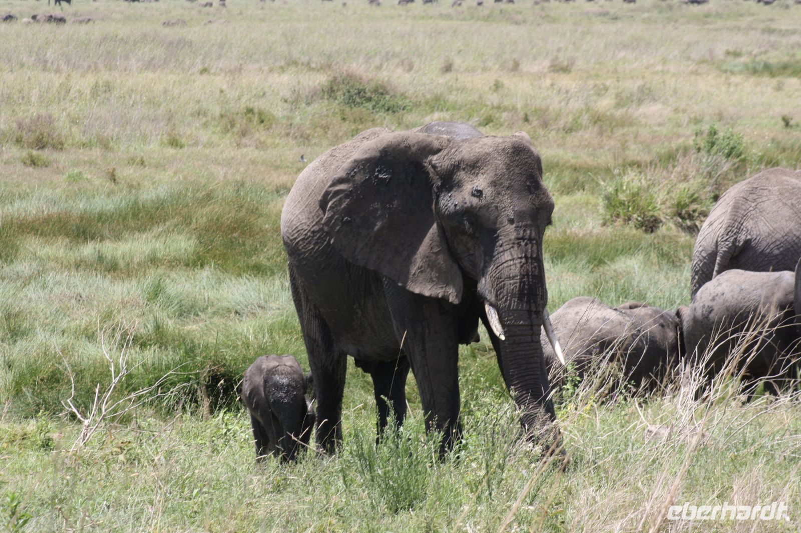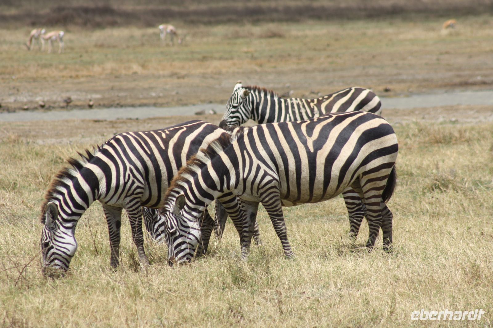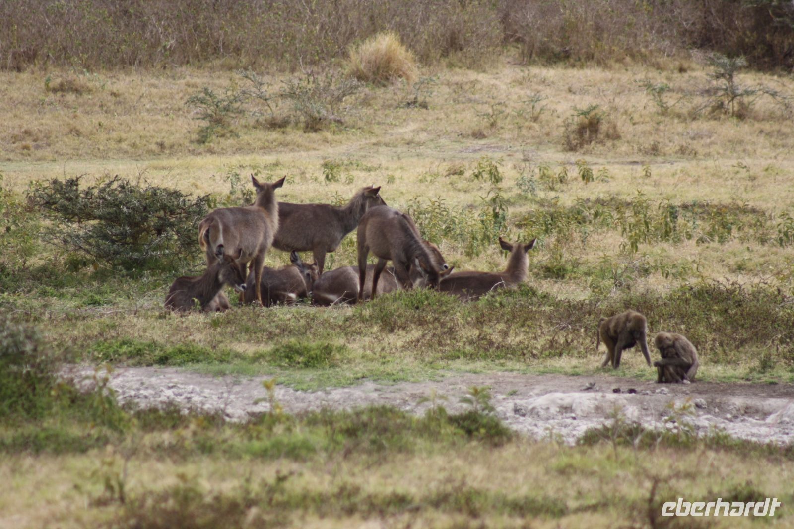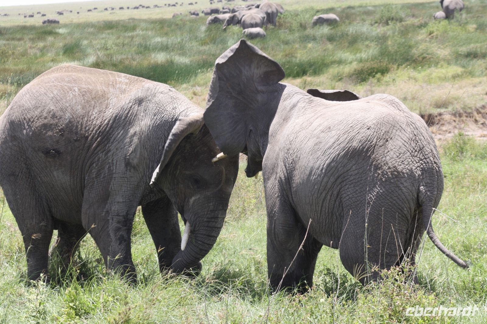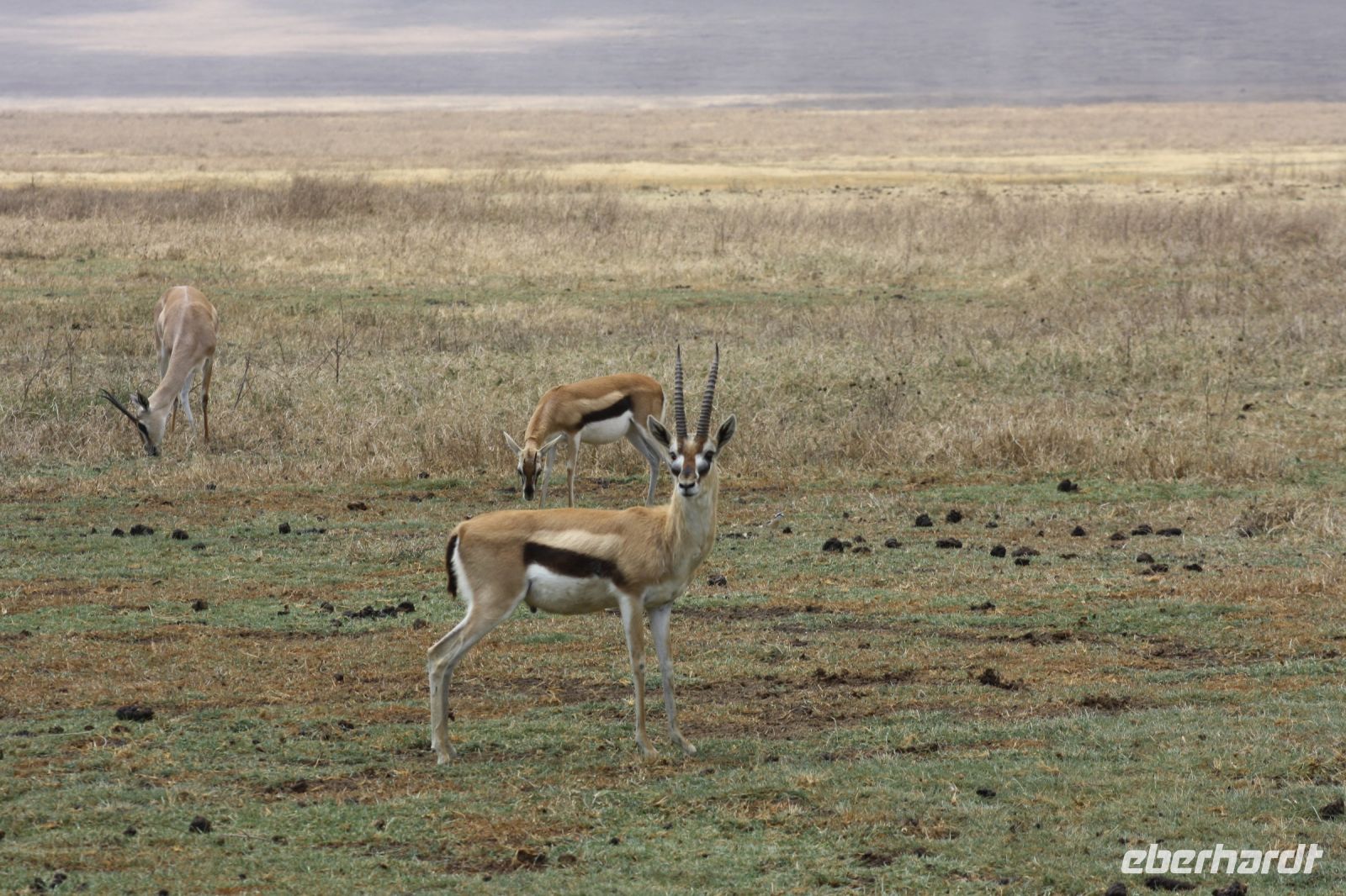 Mit dem Ngorongoro Krater stand heute ein weiteres Highlight auf unserer Agenda. Daher standen wir bereits eine Stunde früher auf und erreichten den Nationalpark bereits um 8 Uhr. Am Gate konnten wir nochmal auf Toilette und uns den Krater in einem kleinen Museum einprägen. Am Gate begrüßte uns bereits eine Paviane Familie und wir fuhren voller Vorfreude auf einer Allwetterpiste den Krater herab. Zwischendurch erhielten wir immer wieder spektakuläre Ausblicke in den Krater hinein. Unsere erste Tierbeobachtung im Krater war dagegen erstmal unspektakulär. Eine Gruppe Perlhühner hieß uns im Krater willkommen. Anschließend liefen allerdings unsere Kameras heiß. Neben einer riesigen Herde Gnu und einer Horde Büffel, konnten wir einen Schakal und Hyänen entdecken. Auch die Vogelwelt ließ sich zahlreich blicken und Bussarde, Kronenkraniche, Flamingos und Stelzenvögel flogen vor unsere Kameras. Am Rand des Lake Magadi konnten wir in eine Herde Hippos entdecken. Nicht weit entfernt fanden wir einen Rudel Hyänen, die sich ganz in der Nähe der Löwen aufhielten. Das Rudel Löwen bestand aus ca. 10 weiblichen Löwen, die bereits gespeist hatten und einen längeren Verdauungsschlaf hielten. Ein weitere Goldschakal huschte an uns vorbei, ehe wir den Hippo-Pool erreichten. In dem dreckigen Nass badeten über 30 Hippos und hielten wir uns ein Konzert ab. Grade als wir einen weiteren Vogelstrauß fotografieren wollten, erhielten wir die Nachricht, dass sich in der Nähe drei weitere Löwinnen aufhielten. Die drei Löwinnen posierten zunächst auf einen kleinen Felsvorsprung, ehe sie sich später auf einen Baum versteckten. Mit dem Fernglas konnten wir in der Ferne sogar 2 Nashörner erblicken. Nach nur wenigen Minuten spazierten eine Löwin direkt an unserem Jeep vorbei. Manchmal muss man einfach Glück haben. Ein männlicher Löwe hingegen schlummerte ganz in der Nähe im Gras und ließ sich von uns nicht stören. Auf dem Weg zum Picknick-Bereich folgte ein weiterer Höhepunkt. Zunächst erspähten wir ein Schakal, der sich eine Schlange erbeutet hatte. Plötzlich folgte ein Angriff eines Adlers und wir konnten einen Kampf um eine Schlange beobachten, welchen der Adler gewann. In der Mittagszeit speisten wir unser Lunchpaket im Jeep und genossen die wunderschöne Natur. Am Nachmittag fuhren wir ins Sumpfgebiet und konnten neben Büffel, auch Elefant beim Baden beobachten. Dann erhielten wir die Nachricht, dass ein Nashorn entdeckt wurden. Leider werden die Nashörner immer schwieriger zu sehen, da sich der Bestand der Nashörner ständig reduziert und die Wilderer ihres dazu beitragen. Unterwegs lichteten wir noch Grants-Gazellen und Thomson Gazelle ab und hielten beim einem Pelikan und Nimmersatt. Allerdings war auch hier das Nashorn nur vom weiten sichtbar, aber wir konnten immerhin ein Gefühl auf seine Größe bekommen. Leider war es nun wieder an der Zeit den Ngorongoro Krater zu verlassen. Unterwegs entdeckten wir noch weitere Hyäne, Pelikane, Hippos und einen Schakal. Am Kraterrand stoppten wir am Denkmal des berühmten Tierfilmer Bernhard Grzimek und genossen nochmal den atemberaubenden Ausblick in den Krater. Auf unserem Nachhauseweg stoppten wir noch kurz bei einem Souvenirladen, ehe wir am frühen Abend unsere Lodge erreichten. Ein atemberaubender Tag neigte sich leider dem Ende entgegen und wir stießen gemeinsam mit einen Amarula auf unseren ersten Teil der Reise an.