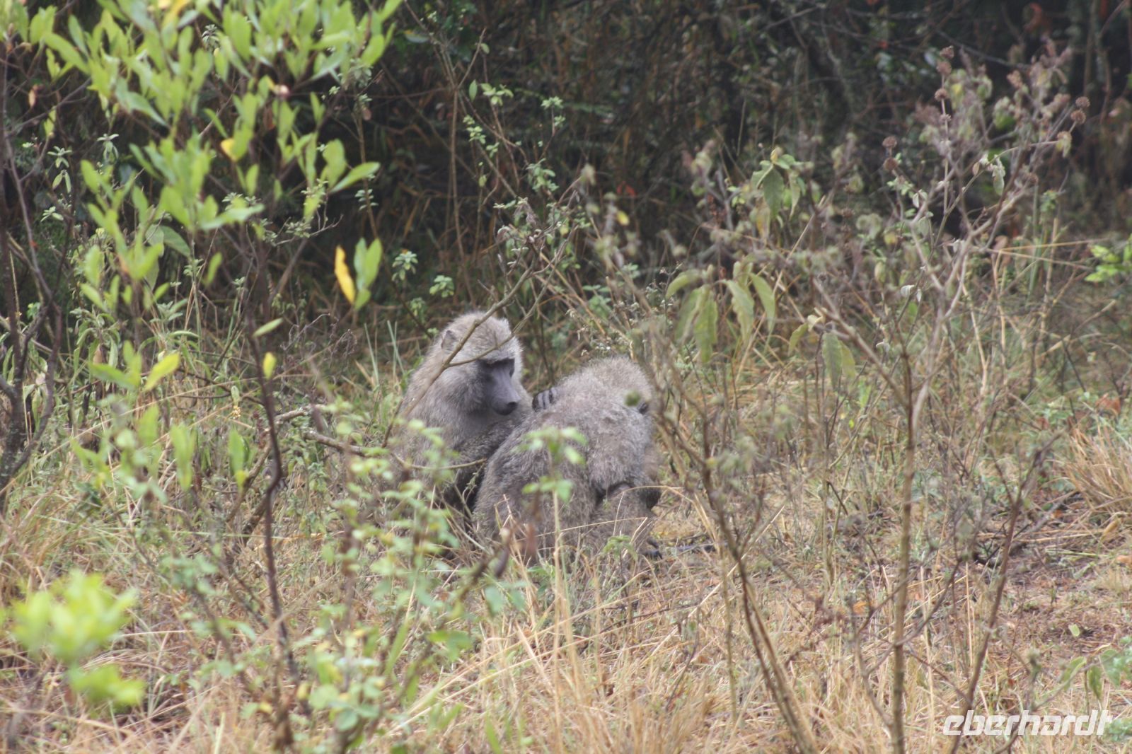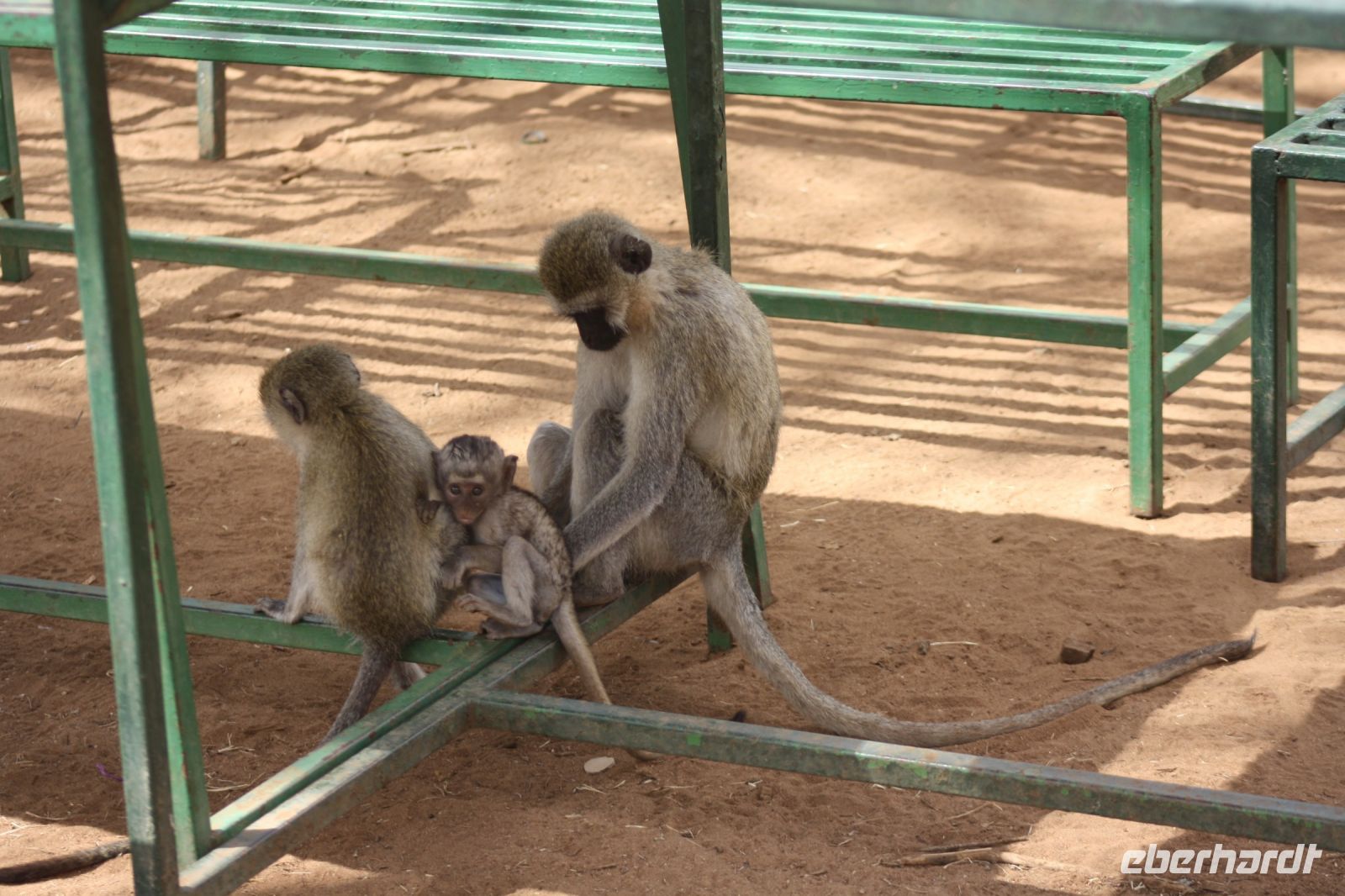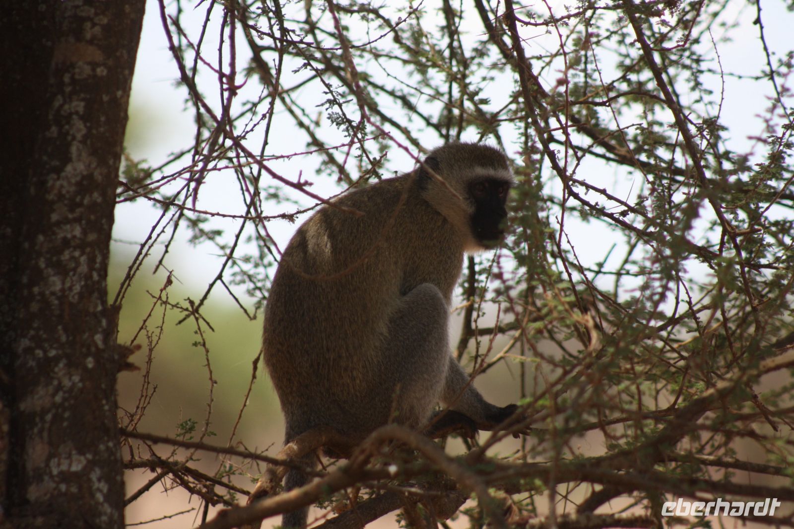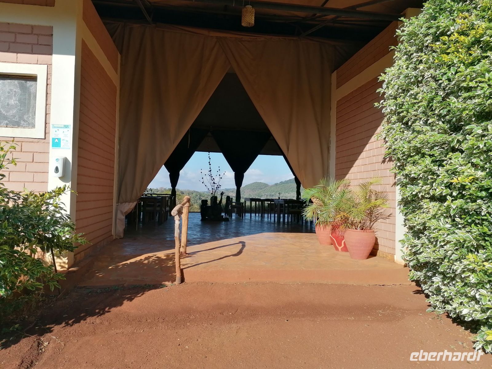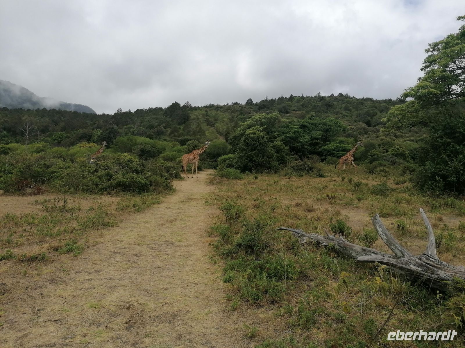 Ausgeschlafen und voller Vorfreude trafen wir uns zum ersten gemeinsamen Frühstück in Afrika. Es wurde Omelett und Eier für uns gebraten und nach einem ersten Kaffee und etwas Geduld ging es endlich los. In einen Kleinbus wurden wir in Richtung Regenwald transferiert. Mit dabei war selbstverständlich unser Safari Guide Karim, der uns die nächsten Tage begleiten sollte. Vor Ort tragen wir Samuel, der für eine Kaffeeplantage arbeitet und gemeinsam mit uns einen Spaziergang durch den Regenwald bis zur Kaffeeplantage unternehmen wollte. Wir starteten in einer kleinen Gemeinde, wo Samuel uns die Kirche zeigte. Im Anschluss spazierten wir durch den Regenwald und entdeckten immer mehr Kaffeeplantagen und kleine Gemüsegärten. Samuel erklärte uns eine Menge über den Anbau von Kaffee, die verschiedenen Schritte zur Kaffeegewinnung und Verarbeitung. In der kleinen Plantage könnten wir das schwarze Gold kosten und Samuel erläuterte uns die Unterschiede zwischen Light, French und Dark gerösteten Kaffee. Zum Abschied schenkte uns Samuel nach einer Probe des Kaffees und fuhr uns in unsere Lodge zurück. Nach einem langen Spaziergang waren wir froh, dass wir gemeinsam ein spätes Mittagessen einnehmen konnten. Anschließend trafen wir uns nochmal mit Karim, der uns auf die nächsten Tage und Safaris vorbereitete. Nach dem Briefing spazierten wir durch die Hotelanlage und konnten Meereskatzen am Usa River entdecken. Später aßen wir spät zu Abend und stießen auf einen gelungenen Start an.