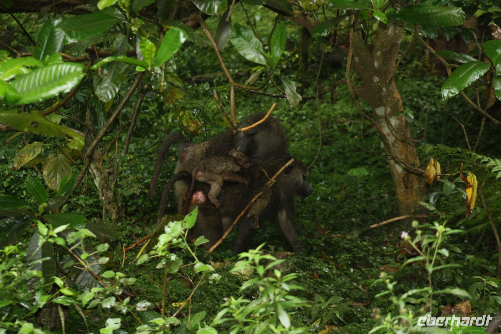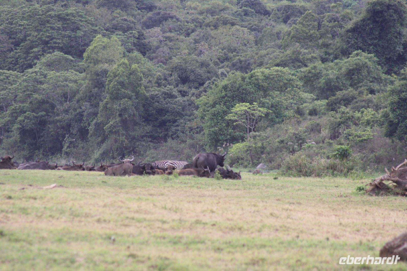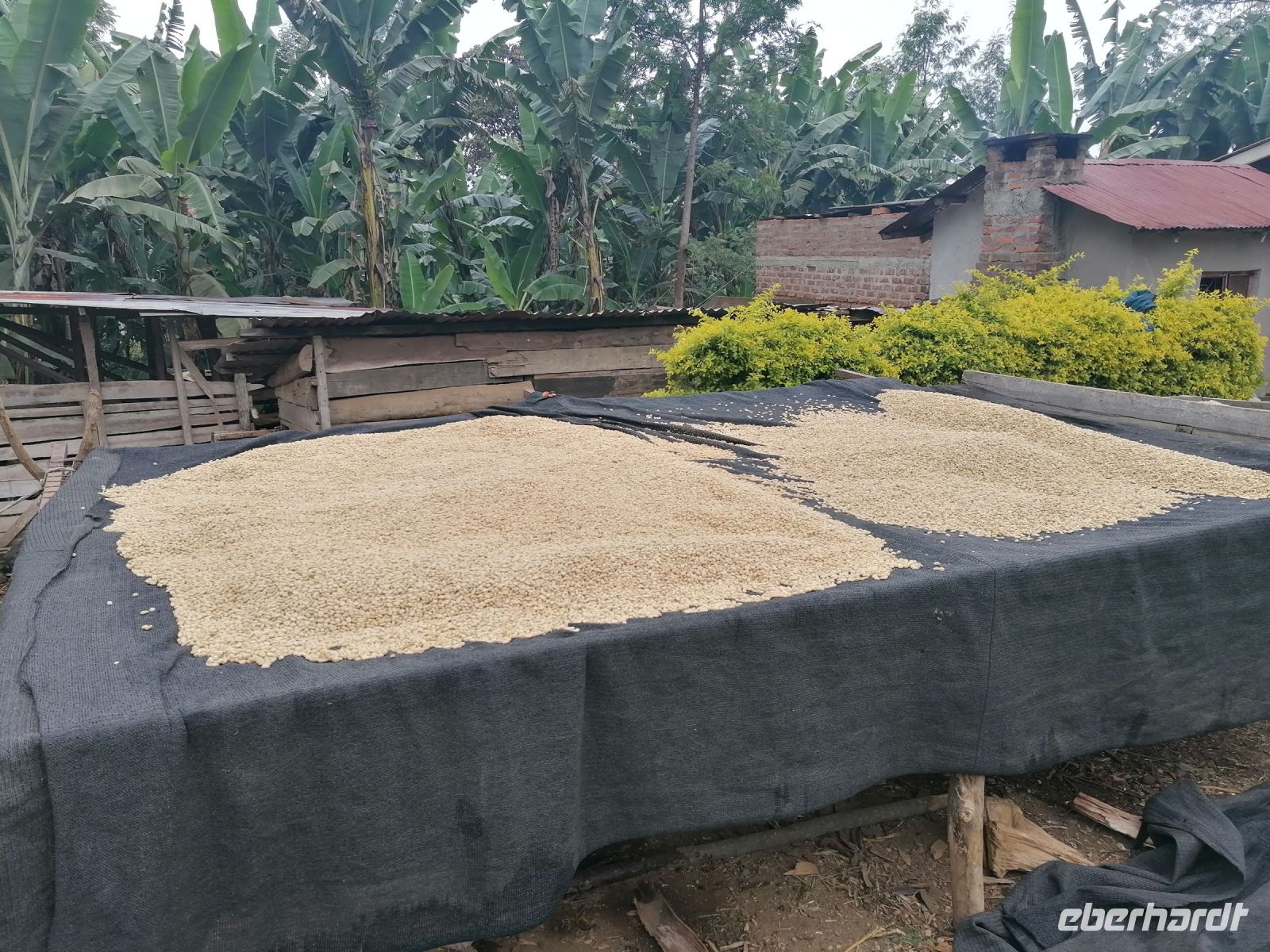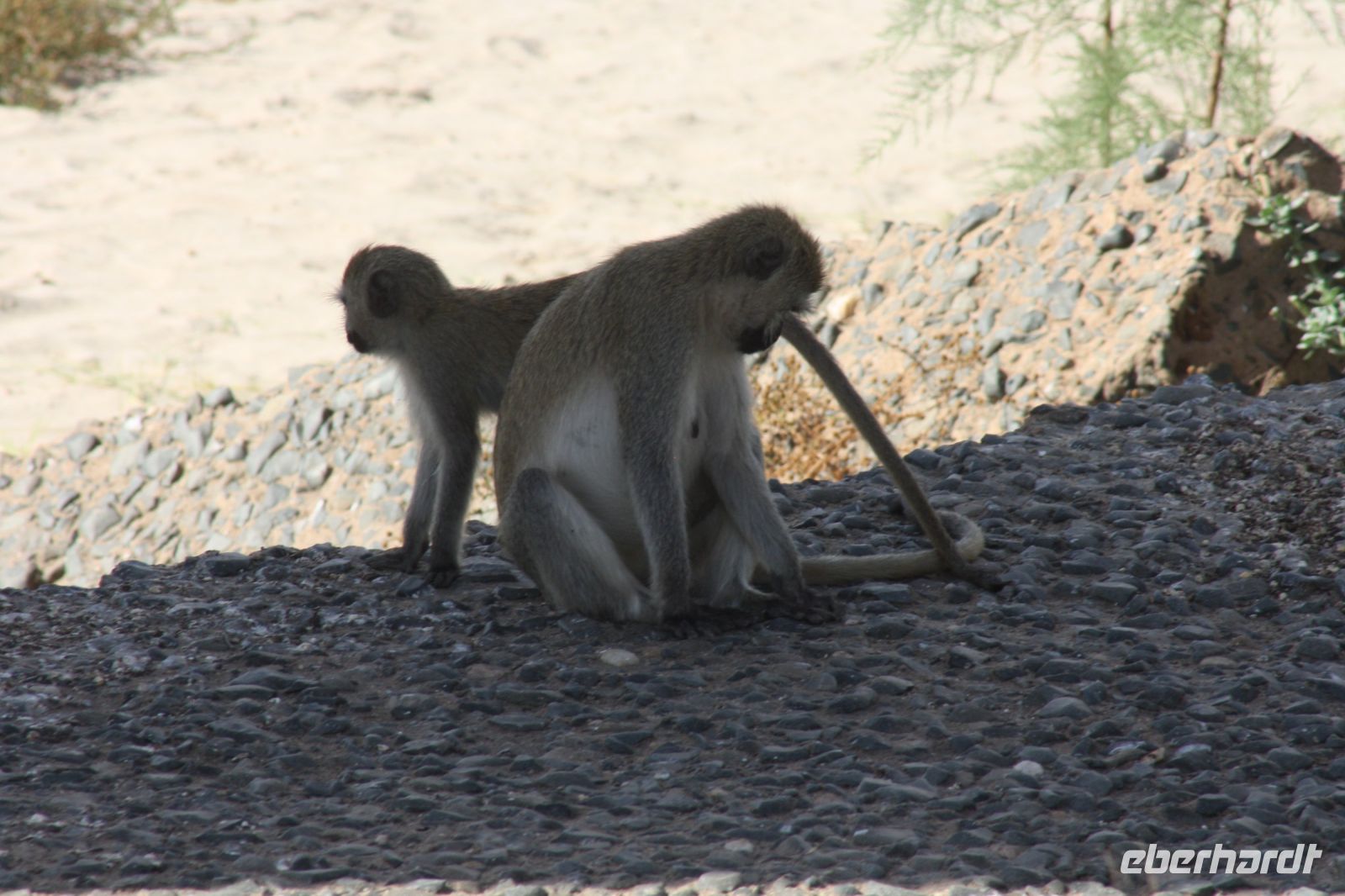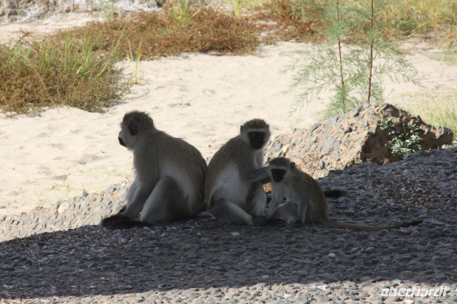 Ausgeschlafen und voller Vorfreude trafen wir uns zum ersten gemeinsamen Frühstück in Afrika. Es wurde Omelett und Eier für uns gebraten und nach einem ersten Kaffee und etwas Geduld ging es endlich los. In einen Kleinbus wurden wir in Richtung Regenwald transferiert. Mit dabei war selbstverständlich unser Safari Guide Karim, der uns die nächsten Tage begleiten sollte. Vor Ort tragen wir Samuel, der für eine Kaffeeplantage arbeitet und gemeinsam mit uns einen Spaziergang durch den Regenwald bis zur Kaffeeplantage unternehmen wollte. Wir starteten in einer kleinen Gemeinde, wo Samuel uns die Kirche zeigte. Im Anschluss spazierten wir durch den Regenwald und entdeckten immer mehr Kaffeeplantagen und kleine Gemüsegärten. Samuel erklärte uns eine Menge über den Anbau von Kaffee, die verschiedenen Schritte zur Kaffeegewinnung und Verarbeitung. In der kleinen Plantage könnten wir das schwarze Gold kosten und Samuel erläuterte uns die Unterschiede zwischen Light, French und Dark gerösteten Kaffee. Zum Abschied schenkte uns Samuel nach einer Probe des Kaffees und fuhr uns in unsere Lodge zurück. Nach einem langen Spaziergang waren wir froh, dass wir gemeinsam ein spätes Mittagessen einnehmen konnten. Anschließend trafen wir uns nochmal mit Karim, der uns auf die nächsten Tage und Safaris vorbereitete. Nach dem Briefing spazierten wir durch die Hotelanlage und konnten Meereskatzen am Usa River entdecken. Später aßen wir spät zu Abend und stießen auf einen gelungenen Start an.