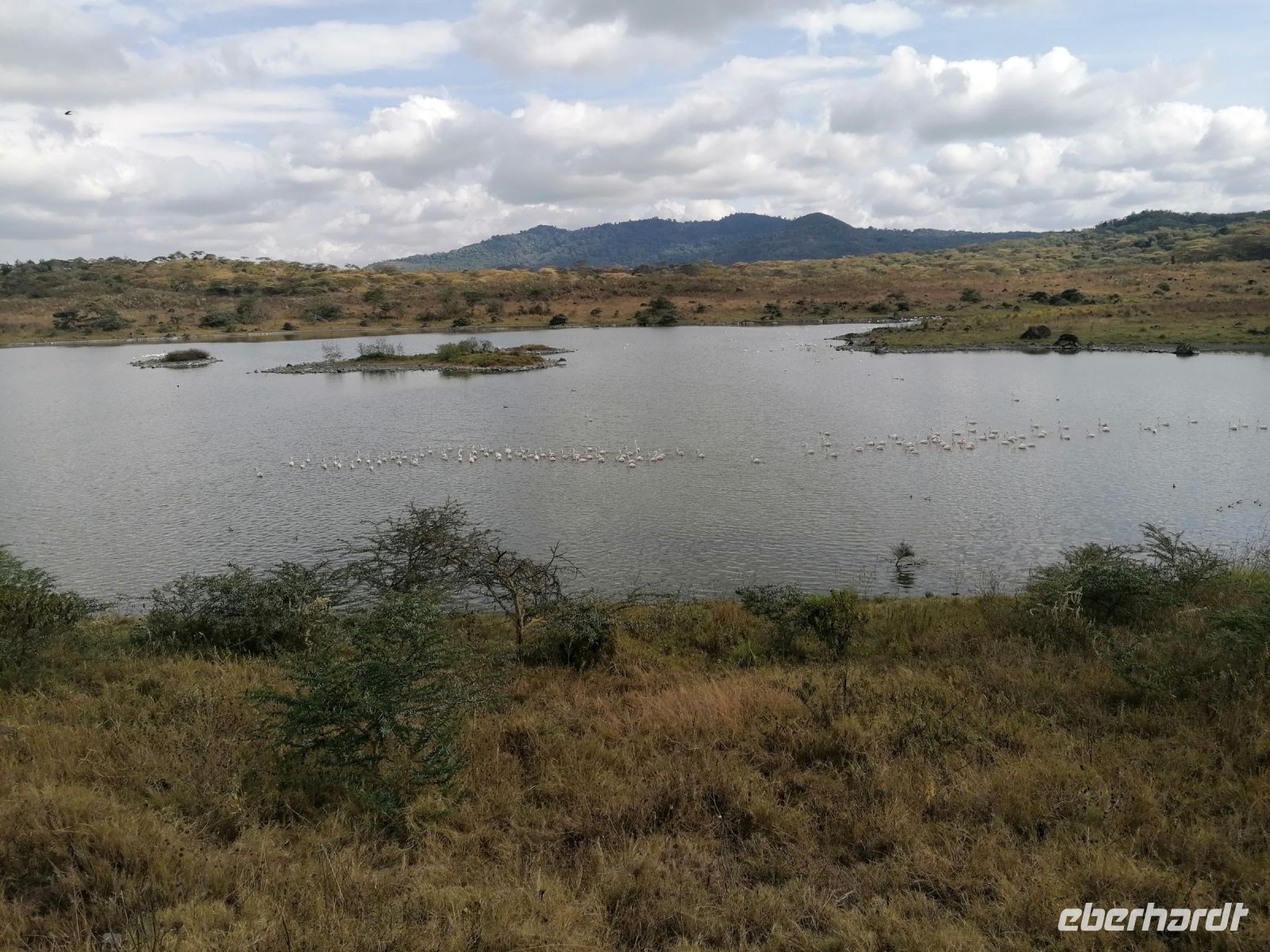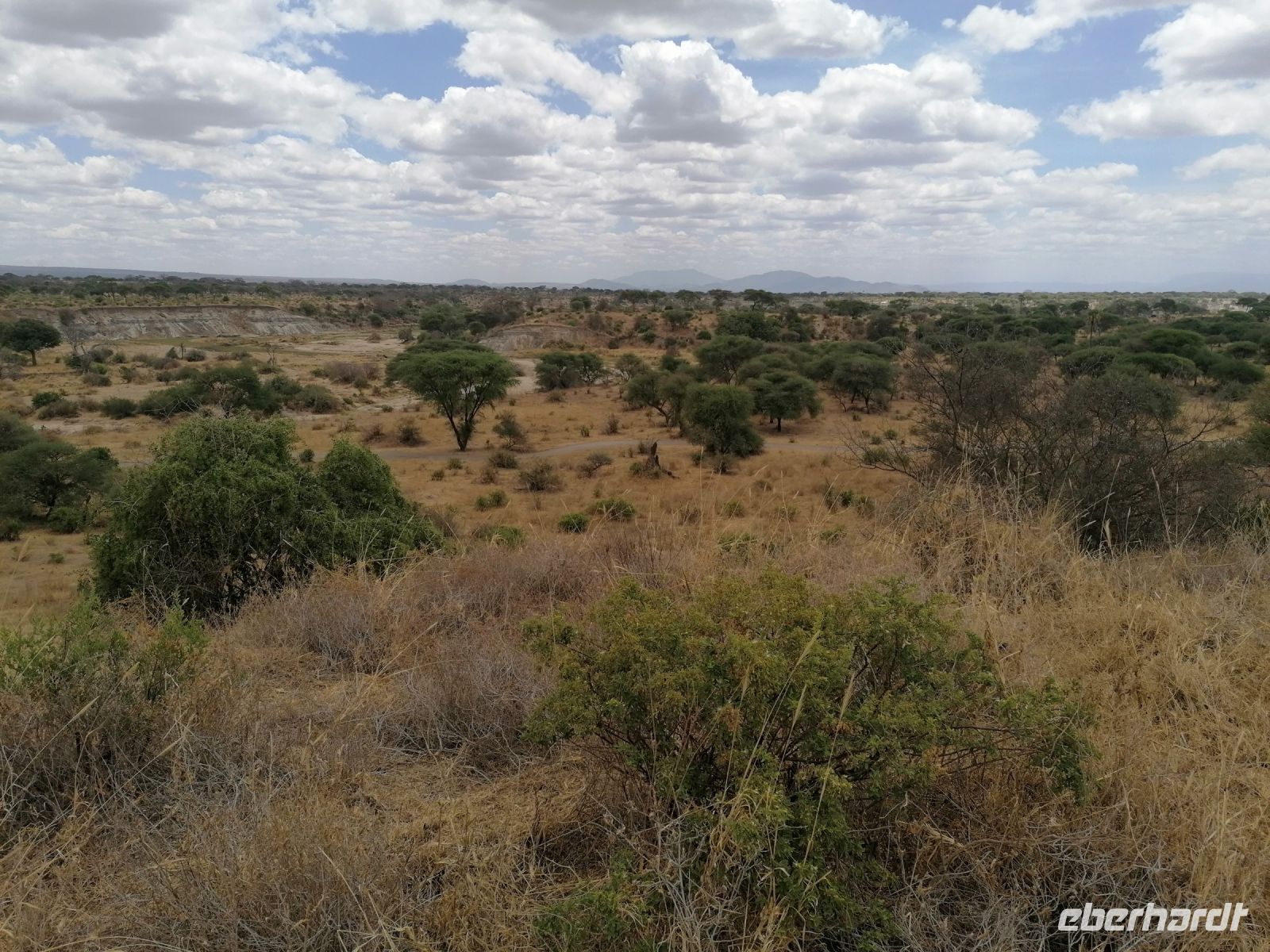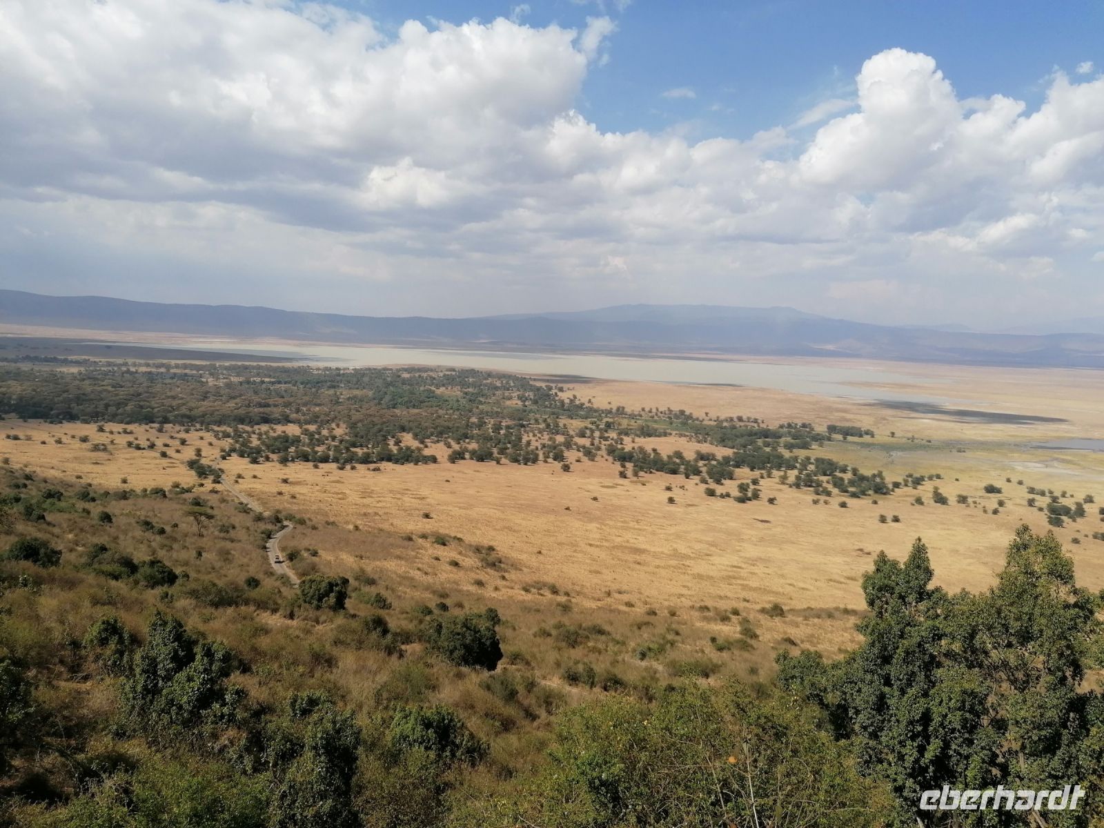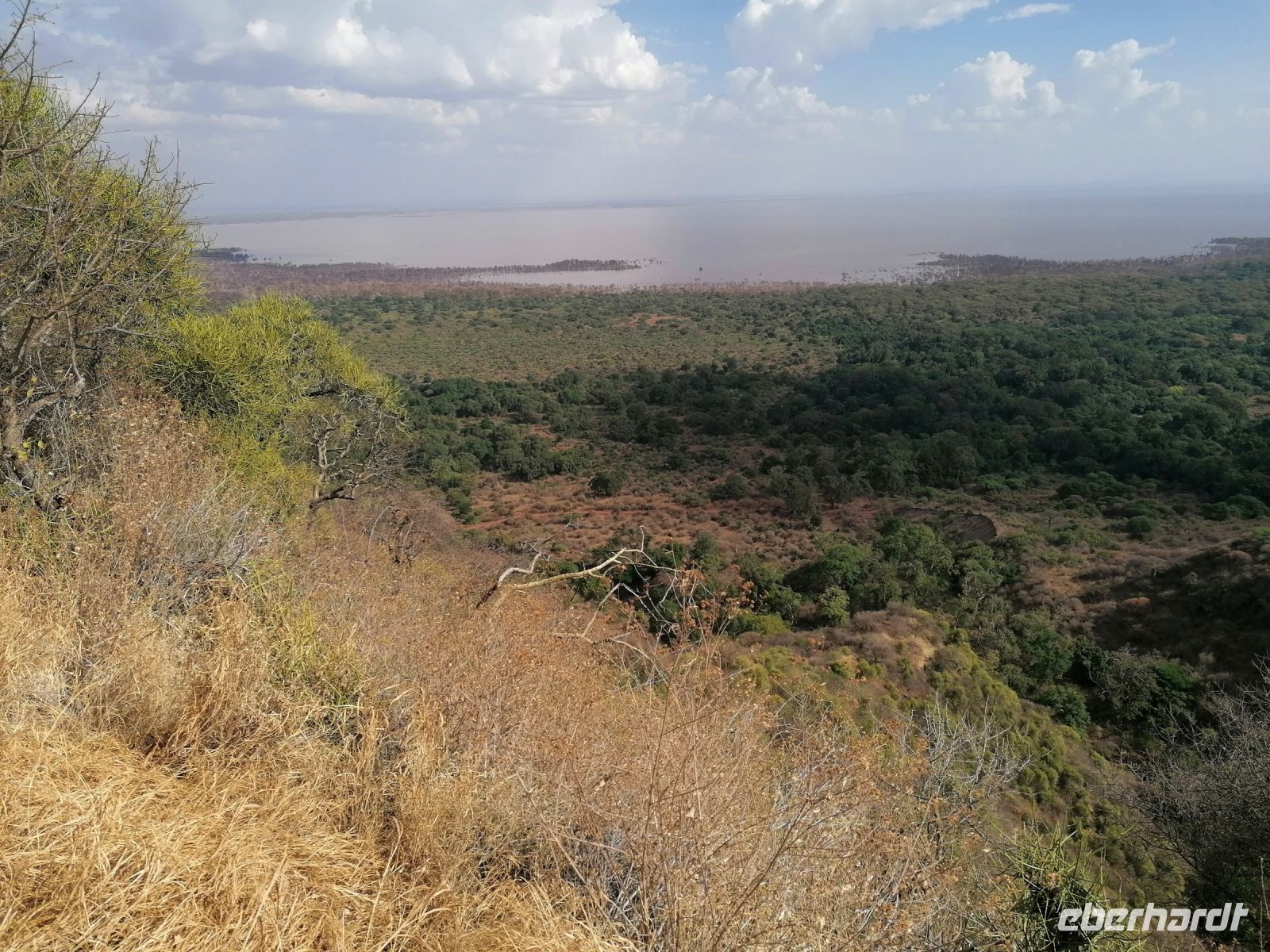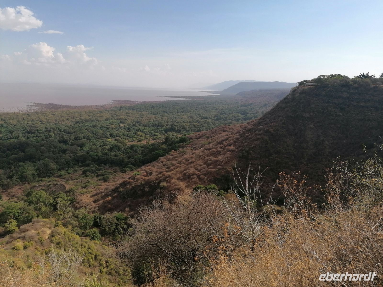 Heute verschob sich unsere Pirschfahrt ein wenig nach hinten. Bereits beim Frühstück konnten wir eine Gruppe von Elenantilopen, Zebras und Perlhuhn entdecken. Bereits in der Nacht wurden wir von Zebras und auch Elefanten besucht. Das ist der Vorteil, wenn man im Nationalpark übernachtet. Heute ließen wir den wunderschönen Tarangire Nationalpark hinter uns und machten uns auf den Weg zum Lake Manyara. Unsere Route führte uns durch viele kleine Dörfer und vorbei an bearbeiteten Reisfeldern. Immer wieder winkten uns Kinder zu und wir beobachteten die Bewohner und ihre Hütten. Am späten Vormittag erreichen wir den Manyara Nationalpark. Mit seinen 330 KM² kann der Nationalpark in Sachen Größe nicht mit seinen Nachbarn mithalten, allerdings besticht er durch seine botanische Vielfalt. Wir enterten den Park durch das südliche Gate. Ganz in der Nähe des Eingangs stießen wir auf eine Elefantenherde, die die Straße blockierten. Auf der anderen Seite konnten wir Paviane und schwarze Meerkatzen entdecken. Die Straße führte an durch die Wälder und vorbei am See. Auf unserer linken Seite konnten wir den Ostafrikanischen Grabenbruch erkennen, der sich als 500 - 800 Meter hohe Felsformation auftürmte. Immer wieder suchten wir die Bäume nach den heimischen Baumlöwen ab. Ihr atypisches Verhalten hat die Baumlöwen im Manyara Nationalpark bekannt gemacht. Der Grund des Verhaltens war vermutlich der Schutz vor lästigen Insekten in der Regenzeit und angriffslustige Büffel. Bis in den 70er Jahren gab es hier noch Herden von Büffeln, die jedoch zum Tarangire Nationalpark weitere gezogen sind. Weiter geht unsere Pirsch. Unser nach Stopp erfolgt direkt am See. Hier sehen wir einen toten Büffel mit fünf Geiern. Nur wenige Meter entfernt sonnen sich die Hippos und gucken den Hagedasch Ibisse beim Stolzieren zu. Insgesamt kann man im Nationalpark über 400 verschiedene Vogelarten entdecken. Immer wieder können wir Reiher, Pelikane, Turkane oder schwarze Hornraben erblicken. Am Wegesrand kreuzen Klippspringer unseren Weg. Zum Glück können wir die scheuen Tiere noch mit der Kamera aufnehmen. Im Anschluss können wir die verbliebenen Büffel beobachten. Am Nachmittag überqueren die grauen Dickhäuter wieder unsere Straße, sodass wir die Elefanten von nahen aufnehmen können. Auch eine größere Affengruppe schaut interessiert an diesen Spektakel zu. Unser nächstes Ziel sollte der Hippo Pool sein. Leider ist die Gegend durch die lange Regenzeit überschwemmt, sodass wir keine Chance auf weitere Hippos haben. Nach einen langen Tag verließen wir den Park und erhielten vom Aussichtspunkt mit schönem Blick über den kompletten Nationalpark.
