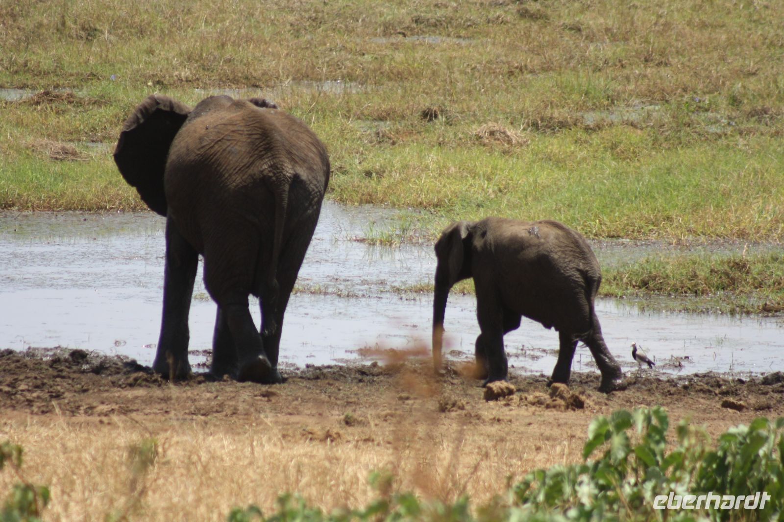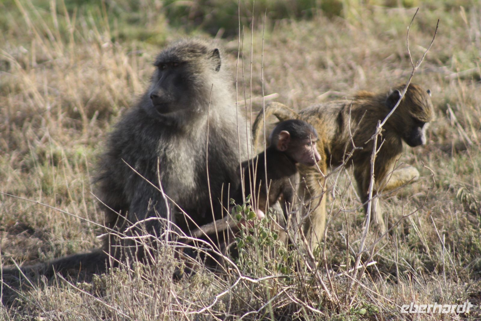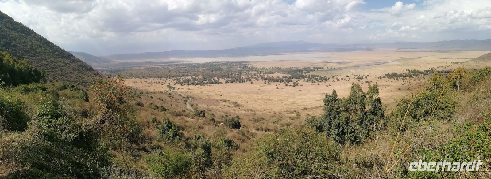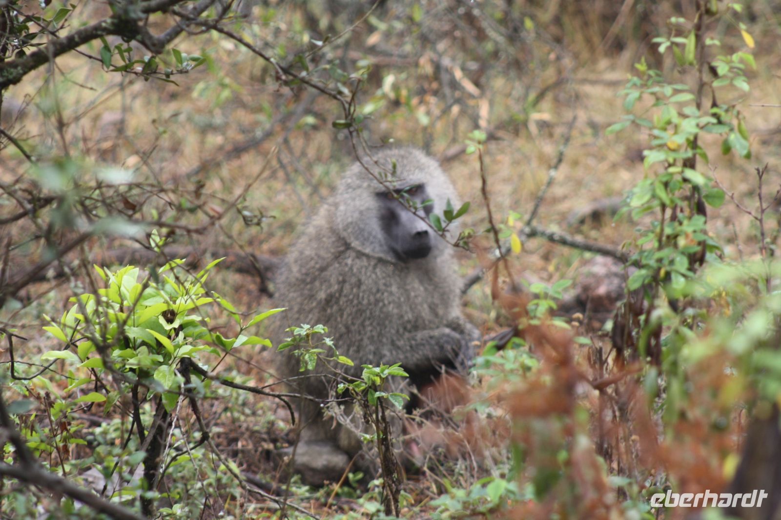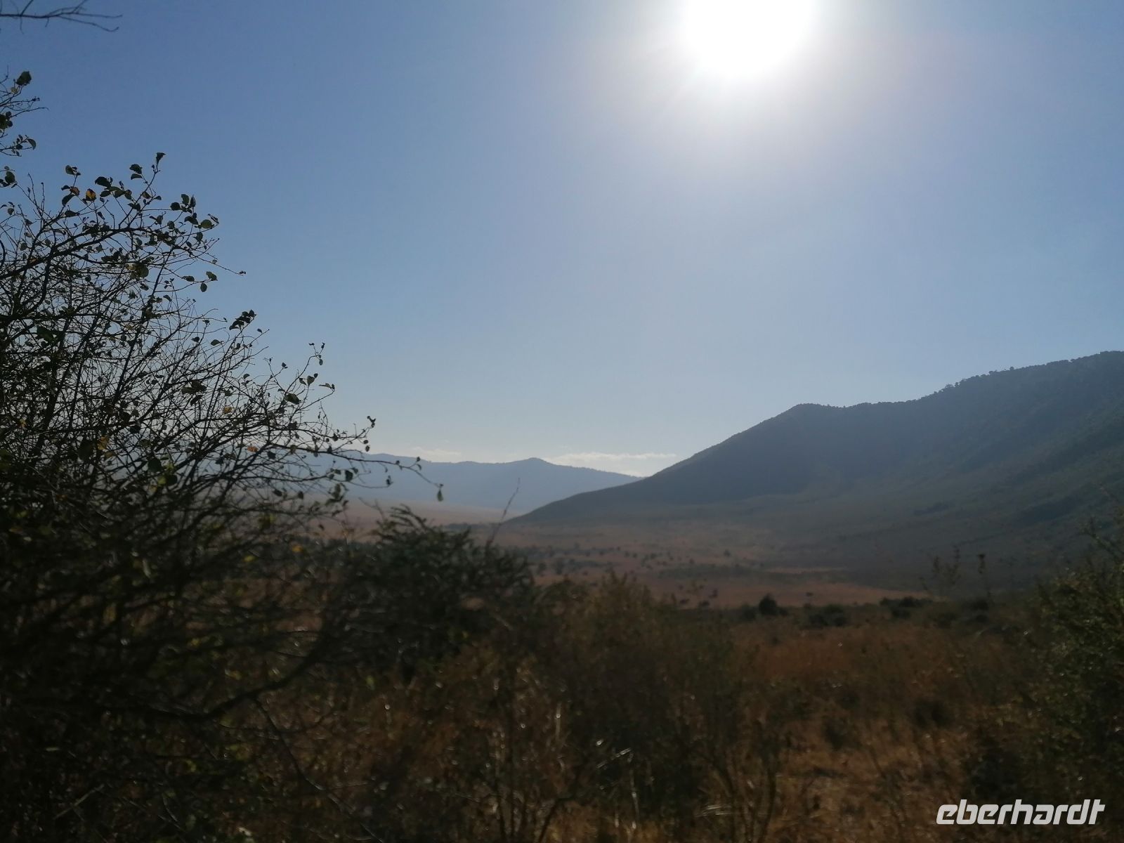 Heute verschob sich unsere Pirschfahrt ein wenig nach hinten. Bereits beim Frühstück konnten wir eine Gruppe von Elenantilopen, Zebras und Perlhuhn entdecken. Bereits in der Nacht wurden wir von Zebras und auch Elefanten besucht. Das ist der Vorteil, wenn man im Nationalpark übernachtet. Heute ließen wir den wunderschönen Tarangire Nationalpark hinter uns und machten uns auf den Weg zum Lake Manyara. Unsere Route führte uns durch viele kleine Dörfer und vorbei an bearbeiteten Reisfeldern. Immer wieder winkten uns Kinder zu und wir beobachteten die Bewohner und ihre Hütten. Am späten Vormittag erreichen wir den Manyara Nationalpark. Mit seinen 330 KM² kann der Nationalpark in Sachen Größe nicht mit seinen Nachbarn mithalten, allerdings besticht er durch seine botanische Vielfalt. Wir enterten den Park durch das südliche Gate. Ganz in der Nähe des Eingangs stießen wir auf eine Elefantenherde, die die Straße blockierten. Auf der anderen Seite konnten wir Paviane und schwarze Meerkatzen entdecken. Die Straße führte an durch die Wälder und vorbei am See. Auf unserer linken Seite konnten wir den Ostafrikanischen Grabenbruch erkennen, der sich als 500 - 800 Meter hohe Felsformation auftürmte. Immer wieder suchten wir die Bäume nach den heimischen Baumlöwen ab. Ihr atypisches Verhalten hat die Baumlöwen im Manyara Nationalpark bekannt gemacht. Der Grund des Verhaltens war vermutlich der Schutz vor lästigen Insekten in der Regenzeit und angriffslustige Büffel. Bis in den 70er Jahren gab es hier noch Herden von Büffeln, die jedoch zum Tarangire Nationalpark weitere gezogen sind. Weiter geht unsere Pirsch. Unser nach Stopp erfolgt direkt am See. Hier sehen wir einen toten Büffel mit fünf Geiern. Nur wenige Meter entfernt sonnen sich die Hippos und gucken den Hagedasch Ibisse beim Stolzieren zu. Insgesamt kann man im Nationalpark über 400 verschiedene Vogelarten entdecken. Immer wieder können wir Reiher, Pelikane, Turkane oder schwarze Hornraben erblicken. Am Wegesrand kreuzen Klippspringer unseren Weg. Zum Glück können wir die scheuen Tiere noch mit der Kamera aufnehmen. Im Anschluss können wir die verbliebenen Büffel beobachten. Am Nachmittag überqueren die grauen Dickhäuter wieder unsere Straße, sodass wir die Elefanten von nahen aufnehmen können. Auch eine größere Affengruppe schaut interessiert an diesen Spektakel zu. Unser nächstes Ziel sollte der Hippo Pool sein. Leider ist die Gegend durch die lange Regenzeit überschwemmt, sodass wir keine Chance auf weitere Hippos haben. Nach einen langen Tag verließen wir den Park und erhielten vom Aussichtspunkt mit schönem Blick über den kompletten Nationalpark.