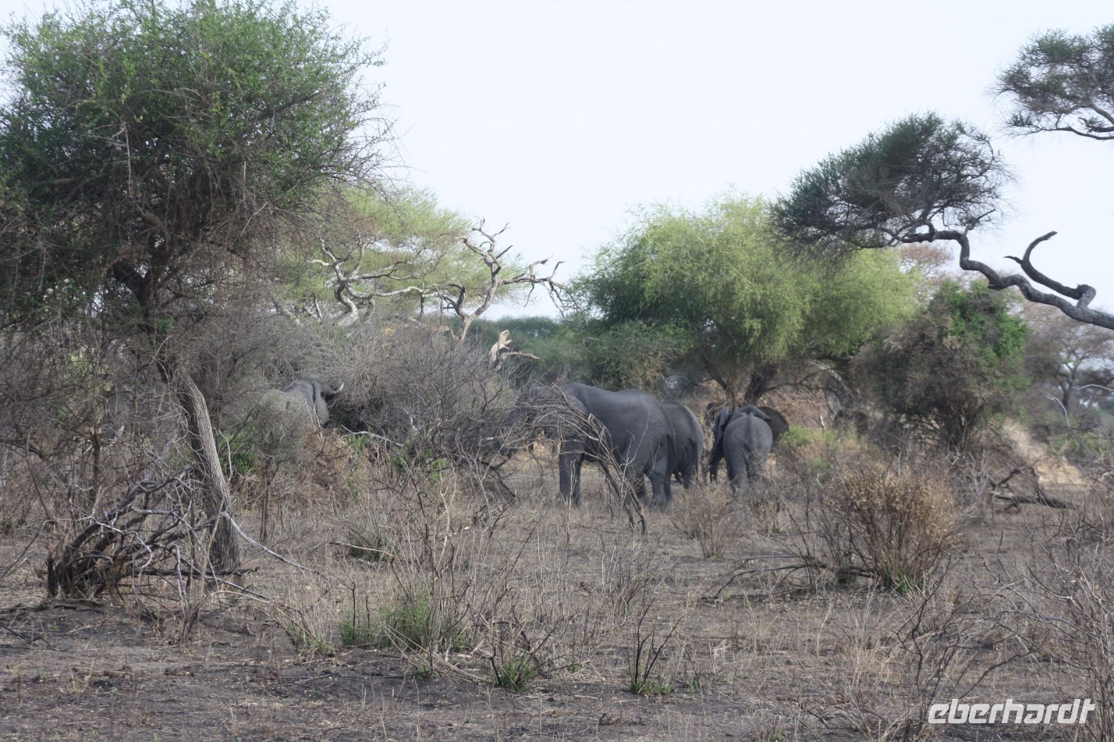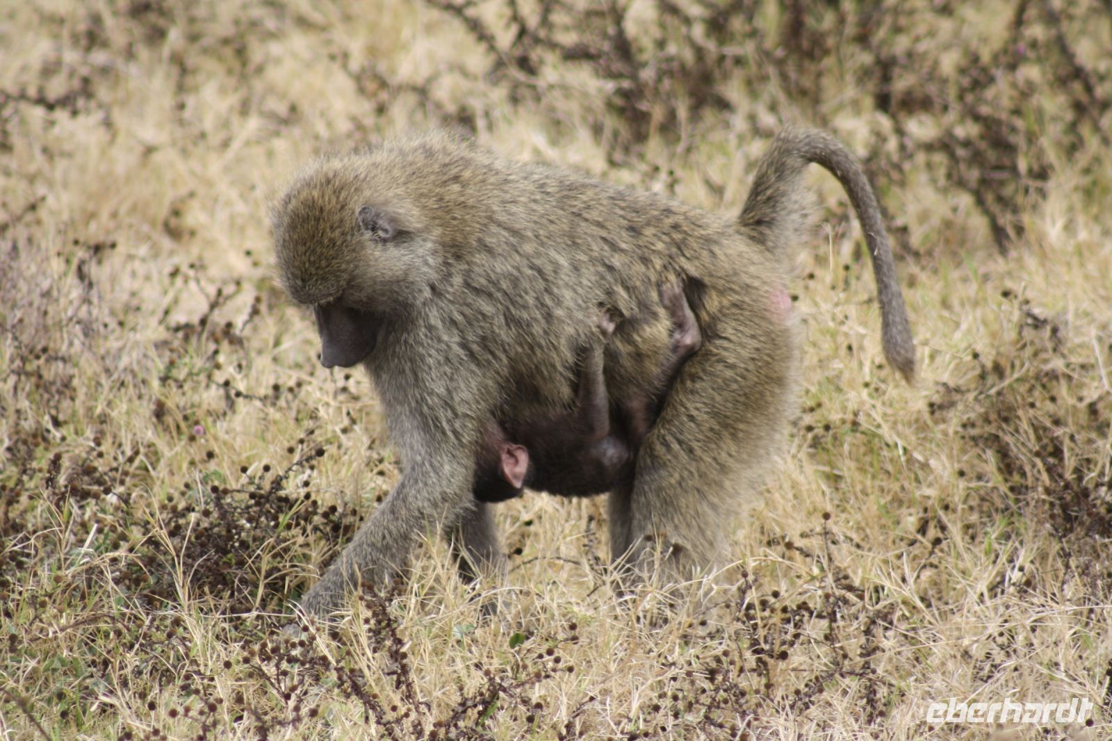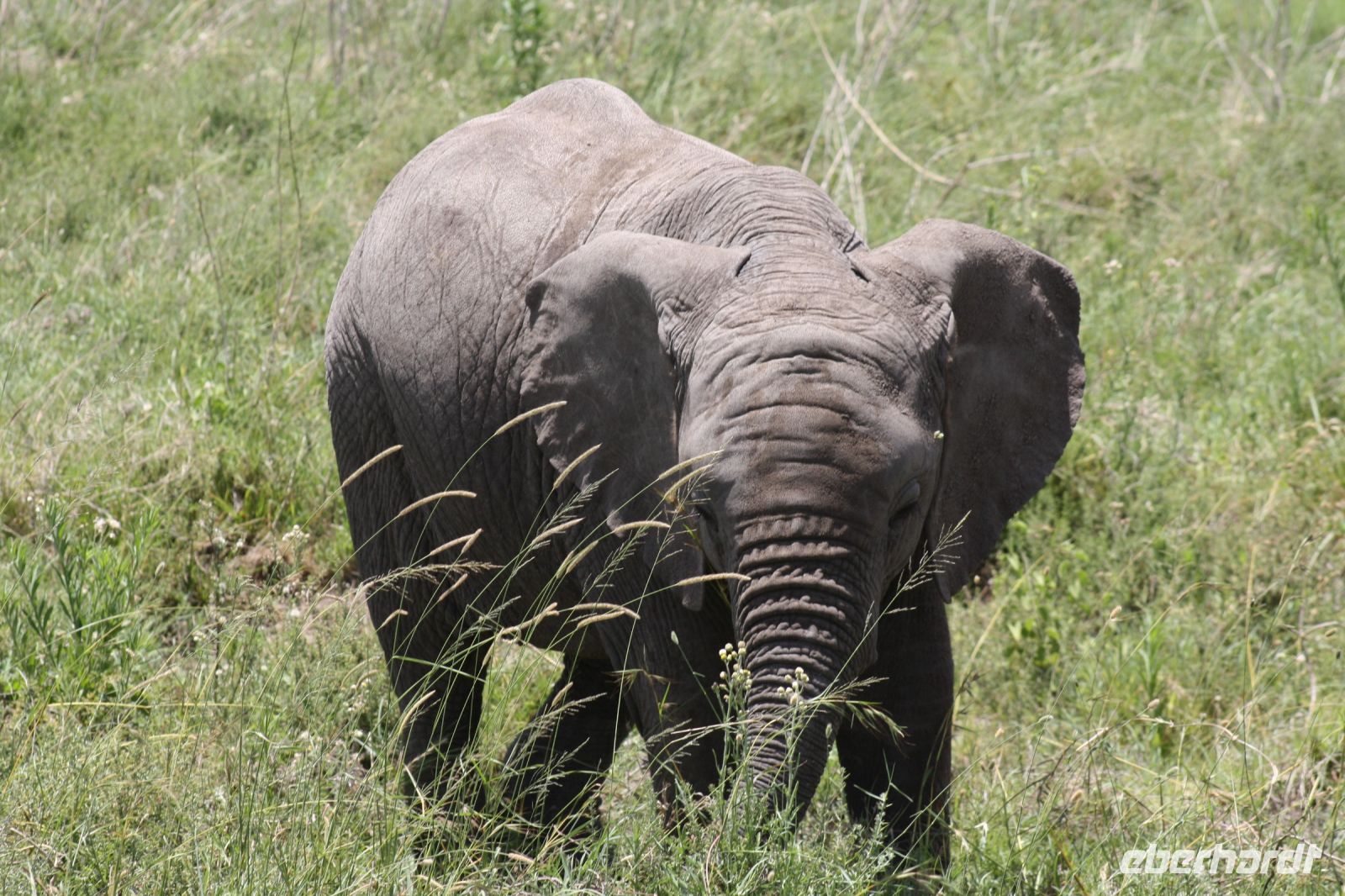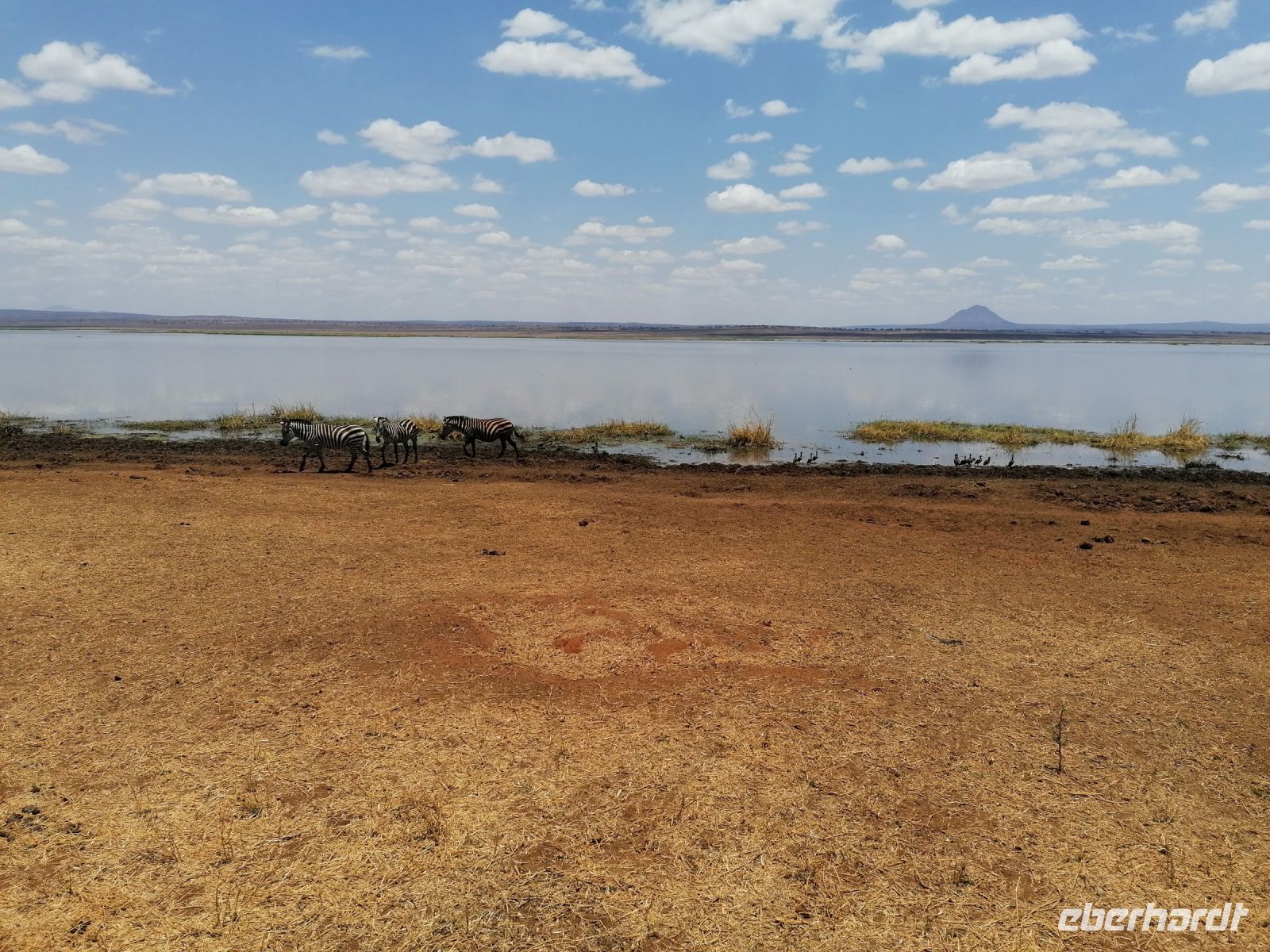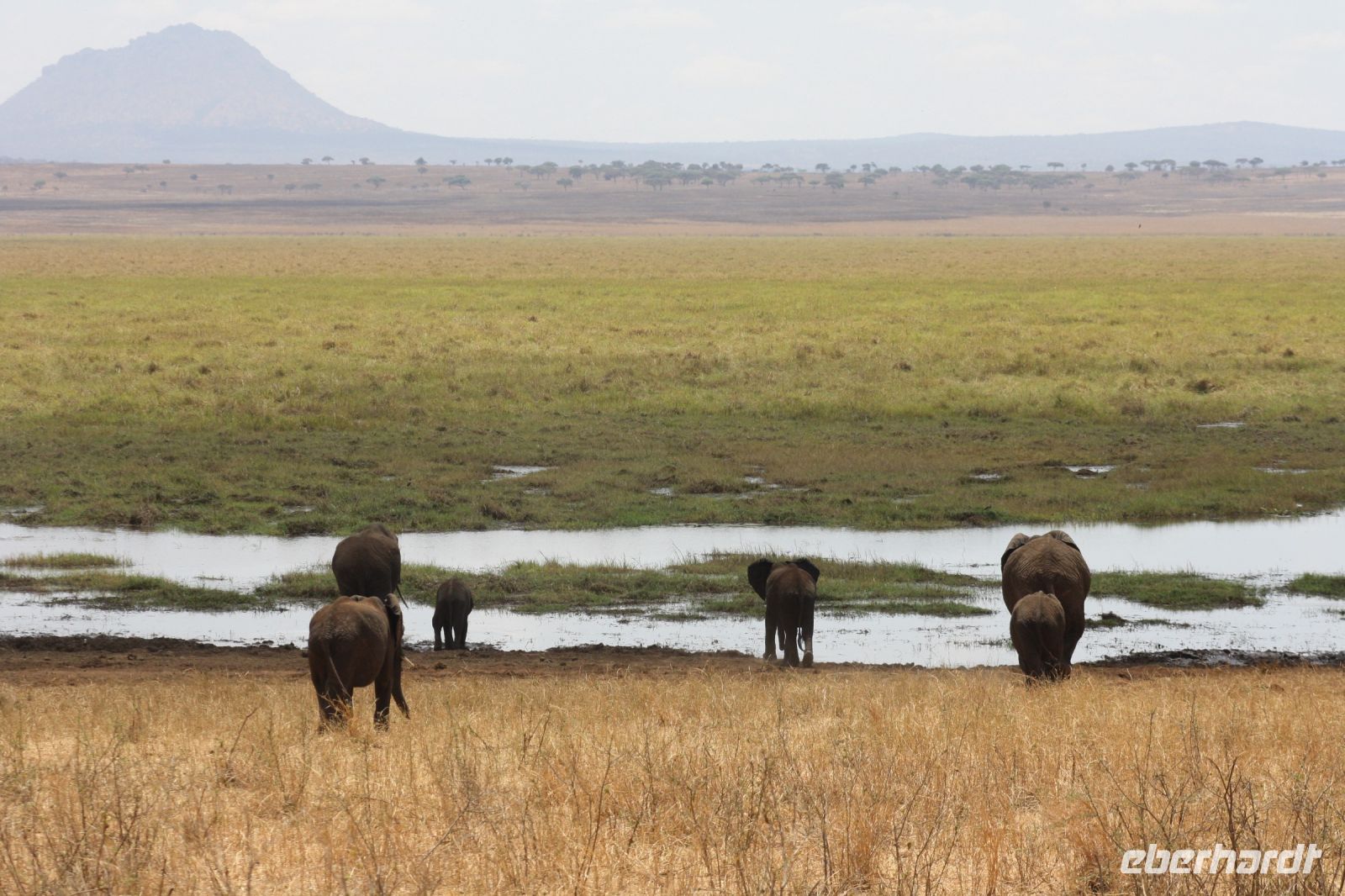 Heute verschob sich unsere Pirschfahrt ein wenig nach hinten. Bereits beim Frühstück konnten wir eine Gruppe von Elenantilopen, Zebras und Perlhuhn entdecken. Bereits in der Nacht wurden wir von Zebras und auch Elefanten besucht. Das ist der Vorteil, wenn man im Nationalpark übernachtet. Heute ließen wir den wunderschönen Tarangire Nationalpark hinter uns und machten uns auf den Weg zum Lake Manyara. Unsere Route führte uns durch viele kleine Dörfer und vorbei an bearbeiteten Reisfeldern. Immer wieder winkten uns Kinder zu und wir beobachteten die Bewohner und ihre Hütten. Am späten Vormittag erreichen wir den Manyara Nationalpark. Mit seinen 330 KM² kann der Nationalpark in Sachen Größe nicht mit seinen Nachbarn mithalten, allerdings besticht er durch seine botanische Vielfalt. Wir enterten den Park durch das südliche Gate. Ganz in der Nähe des Eingangs stießen wir auf eine Elefantenherde, die die Straße blockierten. Auf der anderen Seite konnten wir Paviane und schwarze Meerkatzen entdecken. Die Straße führte an durch die Wälder und vorbei am See. Auf unserer linken Seite konnten wir den Ostafrikanischen Grabenbruch erkennen, der sich als 500 - 800 Meter hohe Felsformation auftürmte. Immer wieder suchten wir die Bäume nach den heimischen Baumlöwen ab. Ihr atypisches Verhalten hat die Baumlöwen im Manyara Nationalpark bekannt gemacht. Der Grund des Verhaltens war vermutlich der Schutz vor lästigen Insekten in der Regenzeit und angriffslustige Büffel. Bis in den 70er Jahren gab es hier noch Herden von Büffeln, die jedoch zum Tarangire Nationalpark weitere gezogen sind. Weiter geht unsere Pirsch. Unser nach Stopp erfolgt direkt am See. Hier sehen wir einen toten Büffel mit fünf Geiern. Nur wenige Meter entfernt sonnen sich die Hippos und gucken den Hagedasch Ibisse beim Stolzieren zu. Insgesamt kann man im Nationalpark über 400 verschiedene Vogelarten entdecken. Immer wieder können wir Reiher, Pelikane, Turkane oder schwarze Hornraben erblicken. Am Wegesrand kreuzen Klippspringer unseren Weg. Zum Glück können wir die scheuen Tiere noch mit der Kamera aufnehmen. Im Anschluss können wir die verbliebenen Büffel beobachten. Am Nachmittag überqueren die grauen Dickhäuter wieder unsere Straße, sodass wir die Elefanten von nahen aufnehmen können. Auch eine größere Affengruppe schaut interessiert an diesen Spektakel zu. Unser nächstes Ziel sollte der Hippo Pool sein. Leider ist die Gegend durch die lange Regenzeit überschwemmt, sodass wir keine Chance auf weitere Hippos haben. Nach einen langen Tag verließen wir den Park und erhielten vom Aussichtspunkt mit schönem Blick über den kompletten Nationalpark.