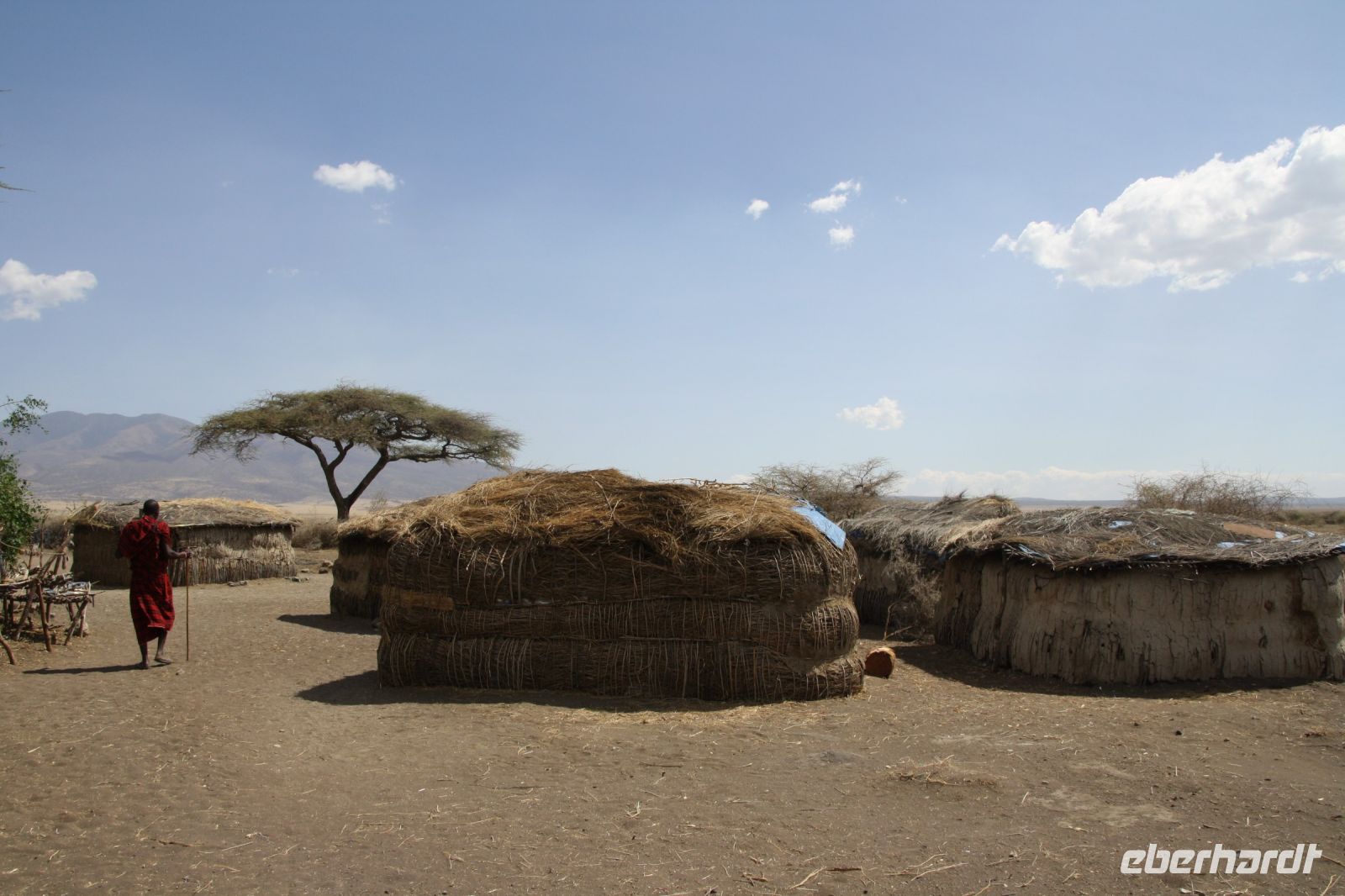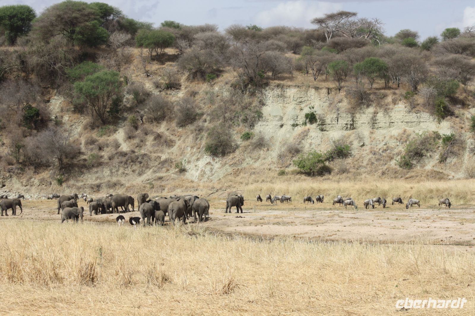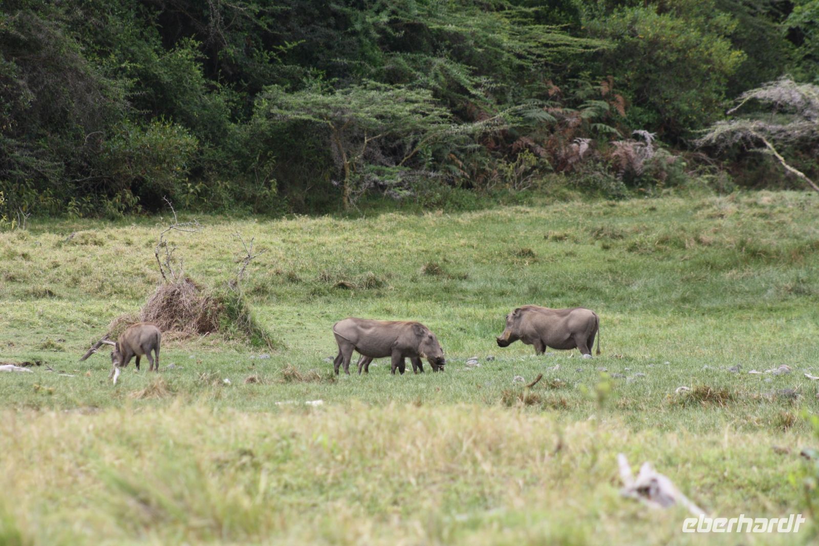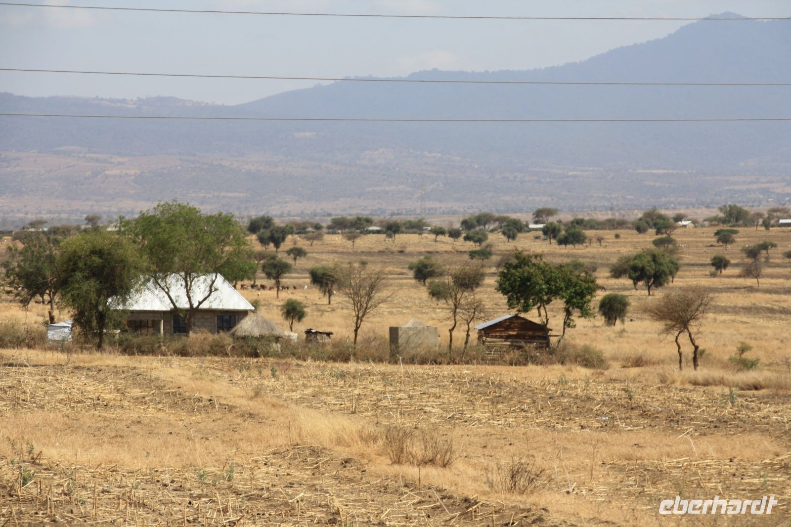 Heute verschob sich unsere Pirschfahrt ein wenig nach hinten. Bereits beim Frühstück konnten wir eine Gruppe von Elenantilopen, Zebras und Perlhuhn entdecken. Bereits in der Nacht wurden wir von Zebras und auch Elefanten besucht. Das ist der Vorteil, wenn man im Nationalpark übernachtet. Heute ließen wir den wunderschönen Tarangire Nationalpark hinter uns und machten uns auf den Weg zum Lake Manyara. Unsere Route führte uns durch viele kleine Dörfer und vorbei an bearbeiteten Reisfeldern. Immer wieder winkten uns Kinder zu und wir beobachteten die Bewohner und ihre Hütten. Am späten Vormittag erreichen wir den Manyara Nationalpark. Mit seinen 330 KM² kann der Nationalpark in Sachen Größe nicht mit seinen Nachbarn mithalten, allerdings besticht er durch seine botanische Vielfalt. Wir enterten den Park durch das südliche Gate. Ganz in der Nähe des Eingangs stießen wir auf eine Elefantenherde, die die Straße blockierten. Auf der anderen Seite konnten wir Paviane und schwarze Meerkatzen entdecken. Die Straße führte an durch die Wälder und vorbei am See. Auf unserer linken Seite konnten wir den Ostafrikanischen Grabenbruch erkennen, der sich als 500 - 800 Meter hohe Felsformation auftürmte. Immer wieder suchten wir die Bäume nach den heimischen Baumlöwen ab. Ihr atypisches Verhalten hat die Baumlöwen im Manyara Nationalpark bekannt gemacht. Der Grund des Verhaltens war vermutlich der Schutz vor lästigen Insekten in der Regenzeit und angriffslustige Büffel. Bis in den 70er Jahren gab es hier noch Herden von Büffeln, die jedoch zum Tarangire Nationalpark weitere gezogen sind. Weiter geht unsere Pirsch. Unser nach Stopp erfolgt direkt am See. Hier sehen wir einen toten Büffel mit fünf Geiern. Nur wenige Meter entfernt sonnen sich die Hippos und gucken den Hagedasch Ibisse beim Stolzieren zu. Insgesamt kann man im Nationalpark über 400 verschiedene Vogelarten entdecken. Immer wieder können wir Reiher, Pelikane, Turkane oder schwarze Hornraben erblicken. Am Wegesrand kreuzen Klippspringer unseren Weg. Zum Glück können wir die scheuen Tiere noch mit der Kamera aufnehmen. Im Anschluss können wir die verbliebenen Büffel beobachten. Am Nachmittag überqueren die grauen Dickhäuter wieder unsere Straße, sodass wir die Elefanten von nahen aufnehmen können. Auch eine größere Affengruppe schaut interessiert an diesen Spektakel zu. Unser nächstes Ziel sollte der Hippo Pool sein. Leider ist die Gegend durch die lange Regenzeit überschwemmt, sodass wir keine Chance auf weitere Hippos haben. Nach einen langen Tag verließen wir den Park und erhielten vom Aussichtspunkt mit schönem Blick über den kompletten Nationalpark.