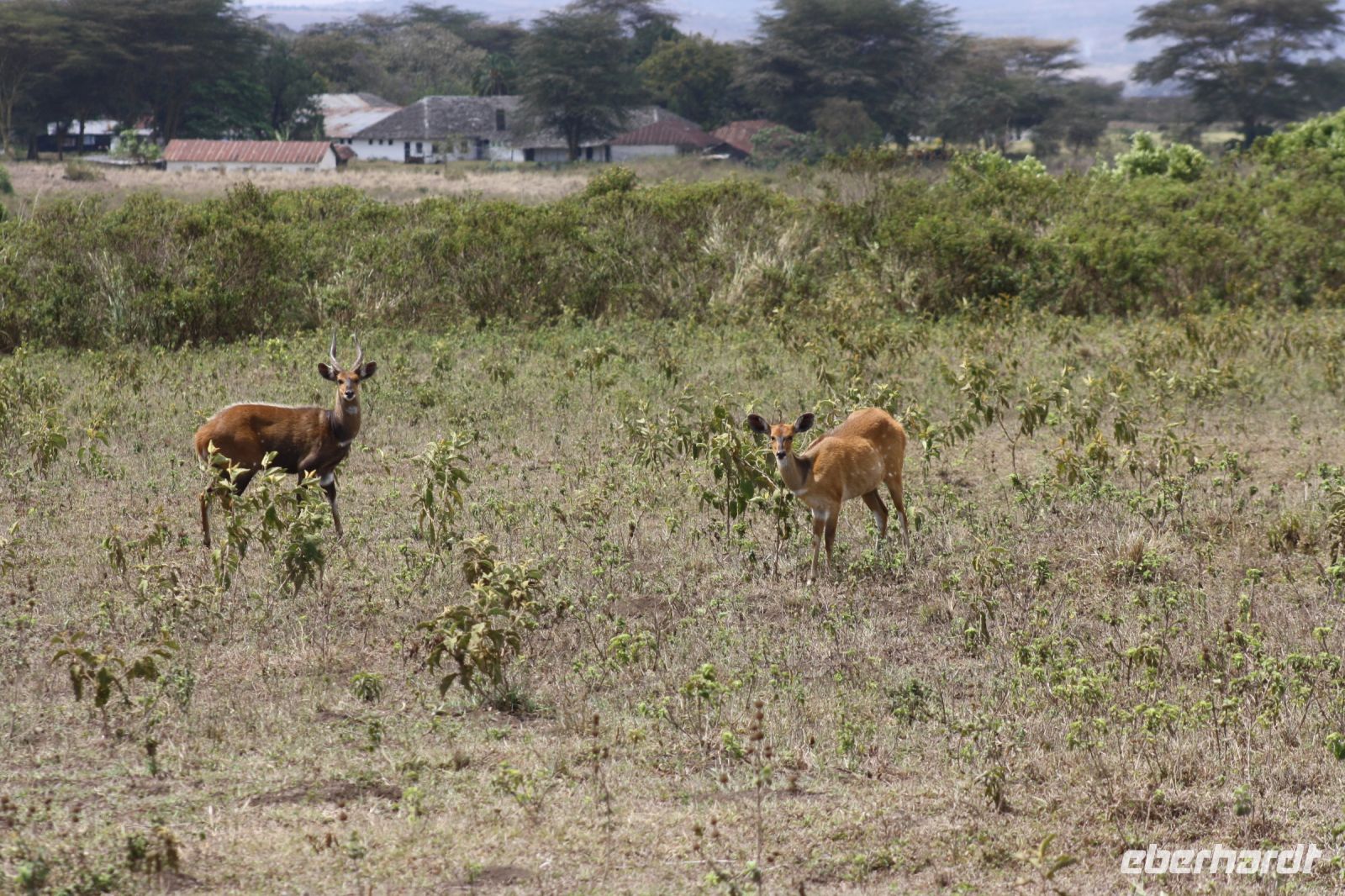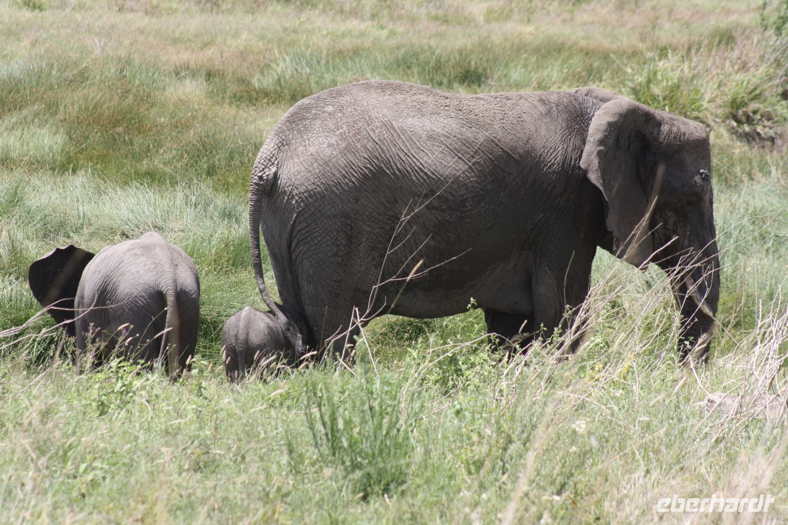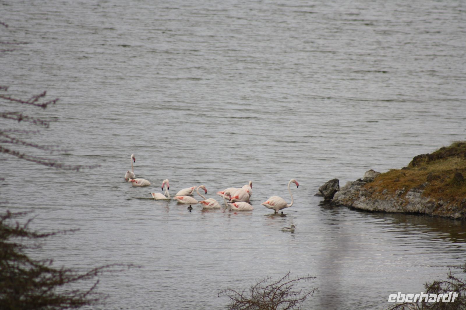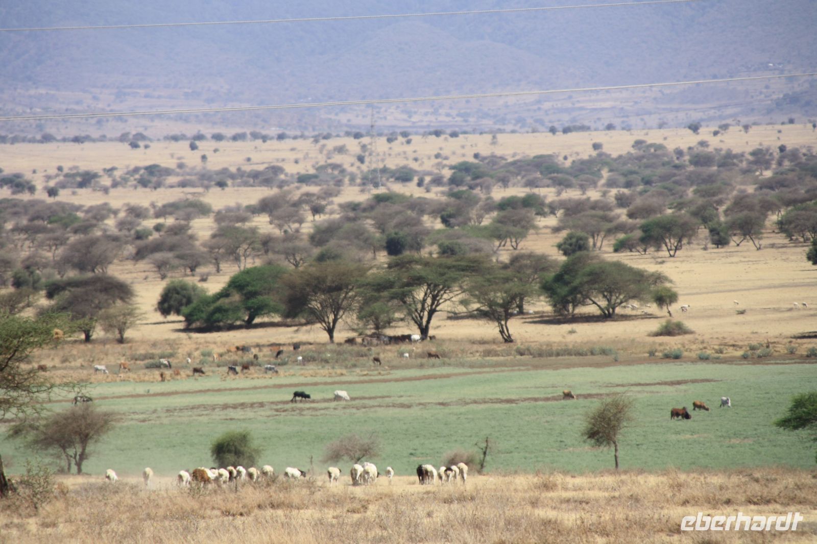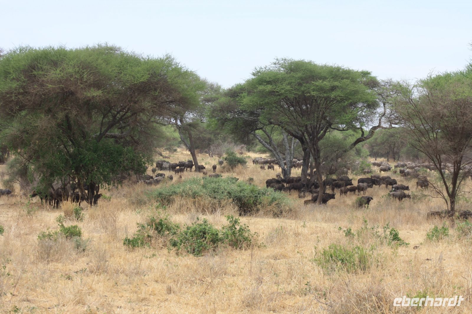Heute verschob sich unsere Pirschfahrt ein wenig nach hinten. Bereits beim Frühstück konnten wir eine Gruppe von Elenantilopen, Zebras und Perlhuhn entdecken. Bereits in der Nacht wurden wir von Zebras und auch Elefanten besucht. Das ist der Vorteil, wenn man im Nationalpark übernachtet. Heute ließen wir den wunderschönen Tarangire Nationalpark hinter uns und machten uns auf den Weg zum Lake Manyara. Unsere Route führte uns durch viele kleine Dörfer und vorbei an bearbeiteten Reisfeldern. Immer wieder winkten uns Kinder zu und wir beobachteten die Bewohner und ihre Hütten. Am späten Vormittag erreichen wir den Manyara Nationalpark. Mit seinen 330 KM² kann der Nationalpark in Sachen Größe nicht mit seinen Nachbarn mithalten, allerdings besticht er durch seine botanische Vielfalt. Wir enterten den Park durch das südliche Gate. Ganz in der Nähe des Eingangs stießen wir auf eine Elefantenherde, die die Straße blockierten. Auf der anderen Seite konnten wir Paviane und schwarze Meerkatzen entdecken. Die Straße führte an durch die Wälder und vorbei am See. Auf unserer linken Seite konnten wir den Ostafrikanischen Grabenbruch erkennen, der sich als 500 - 800 Meter hohe Felsformation auftürmte. Immer wieder suchten wir die Bäume nach den heimischen Baumlöwen ab. Ihr atypisches Verhalten hat die Baumlöwen im Manyara Nationalpark bekannt gemacht. Der Grund des Verhaltens war vermutlich der Schutz vor lästigen Insekten in der Regenzeit und angriffslustige Büffel. Bis in den 70er Jahren gab es hier noch Herden von Büffeln, die jedoch zum Tarangire Nationalpark weitere gezogen sind. Weiter geht unsere Pirsch. Unser nach Stopp erfolgt direkt am See. Hier sehen wir einen toten Büffel mit fünf Geiern. Nur wenige Meter entfernt sonnen sich die Hippos und gucken den Hagedasch Ibisse beim Stolzieren zu. Insgesamt kann man im Nationalpark über 400 verschiedene Vogelarten entdecken. Immer wieder können wir Reiher, Pelikane, Turkane oder schwarze Hornraben erblicken. Am Wegesrand kreuzen Klippspringer unseren Weg. Zum Glück können wir die scheuen Tiere noch mit der Kamera aufnehmen. Im Anschluss können wir die verbliebenen Büffel beobachten. Am Nachmittag überqueren die grauen Dickhäuter wieder unsere Straße, sodass wir die Elefanten von nahen aufnehmen können. Auch eine größere Affengruppe schaut interessiert an diesen Spektakel zu. Unser nächstes Ziel sollte der Hippo Pool sein. Leider ist die Gegend durch die lange Regenzeit überschwemmt, sodass wir keine Chance auf weitere Hippos haben. Nach einen langen Tag verließen wir den Park und erhielten vom Aussichtspunkt mit schönem Blick über den kompletten Nationalpark.