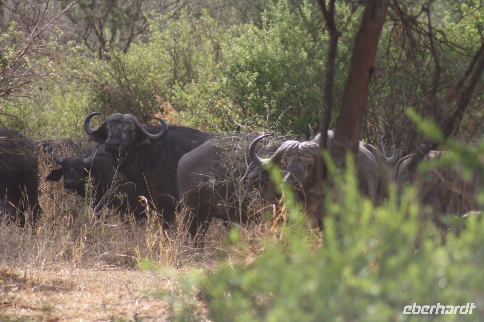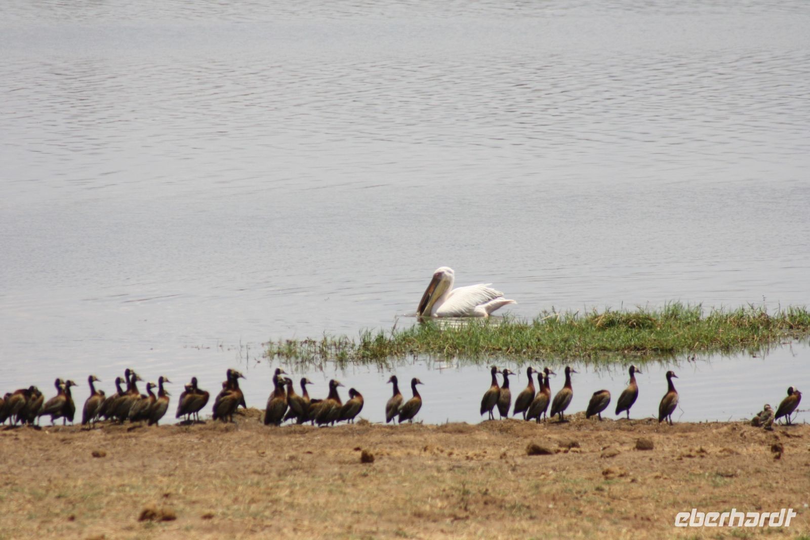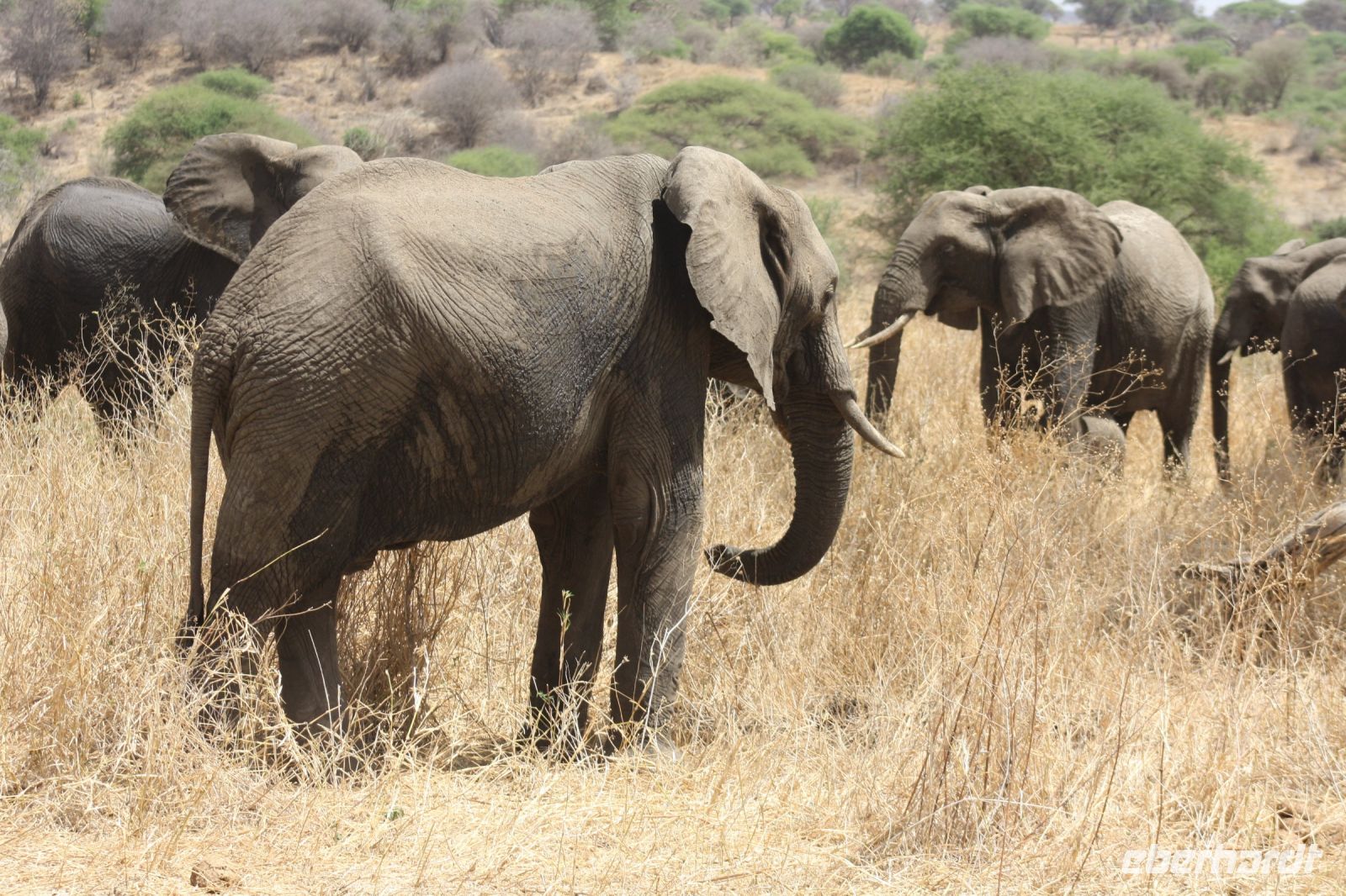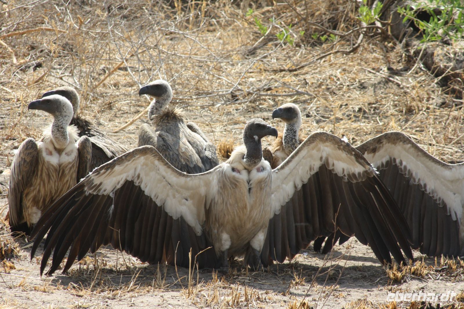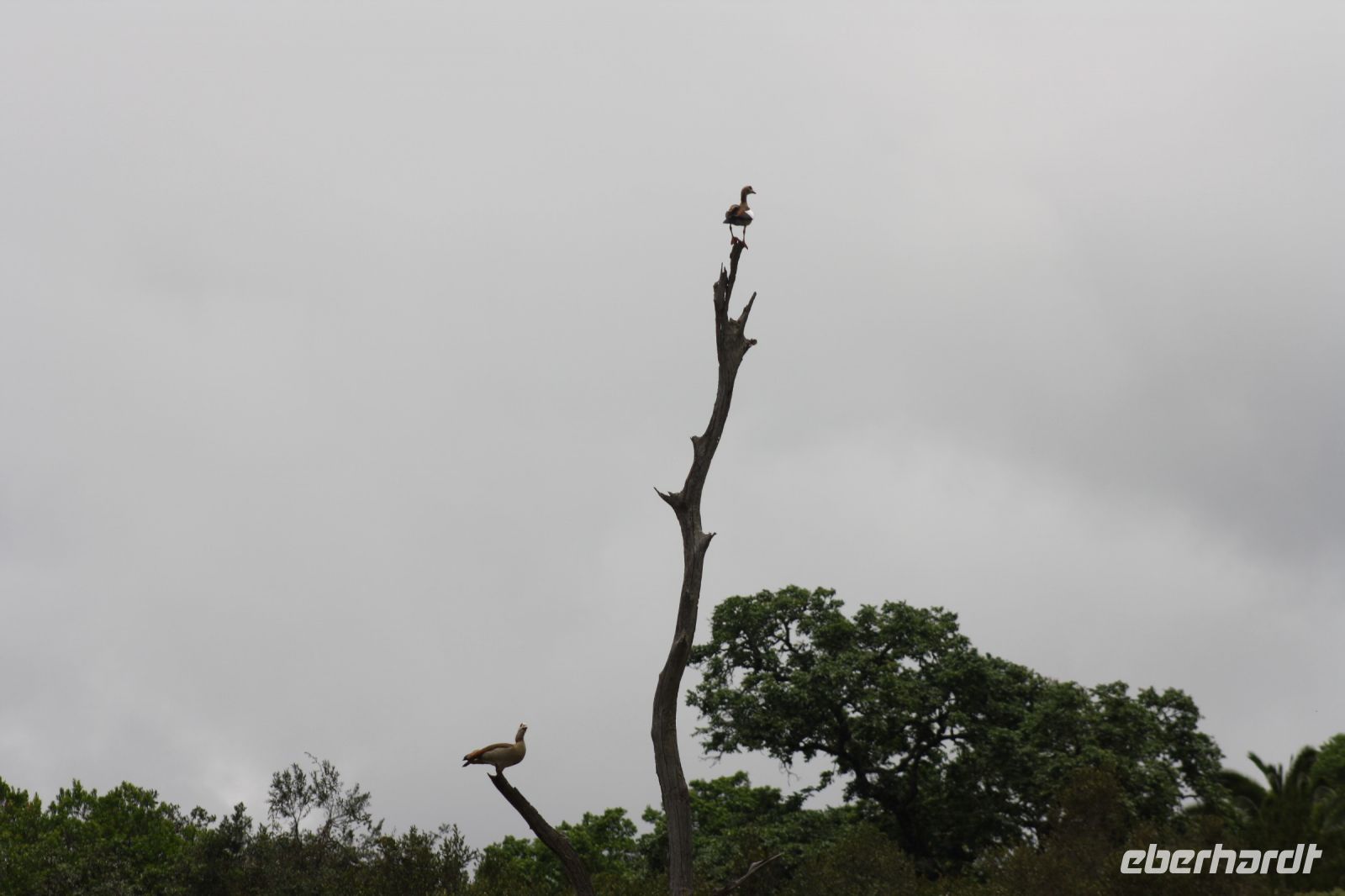 Bei unserem leckeren Frühstück auf der Beobachtungsterrasse konnten wir bereits zum Frühstück Giraffen, Impalas, Elefanten und Warzenschweine entdecken. Gegen 8 Uhr starteten wir in Richtung Sumpfgebiet. Unterwegs begegneten wir bereits Elefanten, Giraffen, Dikdiks und einen Quackvogel. Unter einem Baum erblickten wir drei alte Büffel, die sich gegenseitig vor Feinden schützten. Plötzlich spazierten Elefanten nah an unserem Jeep vorbei. Die Elefanten wollten genau wie wir in Richtung Sumpfgebiet. Das Gebiet ist ein Paradies für die heimische Tierwelt, da der Sumpf niemals austrocknet und ganzjährige das Tier und auch die Pflanzenwelt versorgt. Während wir die Elefanten fotografierten, bemerkten wir einen üblen Geruch. Direkt neben uns knapperten Geier an einem toten Gnu. Riesige Zebra Herden spazierten an uns vorbei und an einem kleinen Wasserloch badeten Impalas, Warzenschweine, Zebras und Gelbschnabelstörche gemeinsam. Kurz bevor wir das Sumpfgebiet erreichten, wartete eine große Büffelherde auf uns, die sich auf Wanderung begaben. Endlich erreichten wir das grüne Sumpfgebiet. Immer wieder zogen Elefantenherden und uns vorbei. Ihr Ziel war der Sumpf, wo sie baden und mit den kleinen Elefanten toben konnten. Neben einer Vielzahl an Gnus und Zebras, konnten wir über 100te Elefanten zählen. Ein absoluter Wahnsinn. Entlang des grünen Streifens konnten wir zudem Büffel und die hiesige Vogelwelt bestaunen. Wir erspähten einen Hagedasch-Vogel, Pelikane, Reihenreiher, pfeifende Enten, Eisvögel, Flamingos, Geier und ein Adler. Unsere Mittagspause konnten wir inmitten des Sumpfgebietes einnehmen und Karim versorgte uns mit Reis, Nudeln und Hühnchen. Nach der leckeren Mittagspause fuhren wir weiter zum Westen des Sumpfgebietes. Hier trafen wir wieder auf die drei Elefanten Bullen, die vermutlich den Weibchen hinterherliefen. Immer wieder konnten wir in der Ferne Elefanten baden sehen. Neben einen Sattelstorch konnten wir auch den Sekretär-Vogel entdecken, der durch die Gegend spazierte. Wir waren vollkommen fasziniert von der Vielfalt der verschiedenen Arten und die Vielzahl der Tiere. Leider mussten wir uns langsam von der Sumpflandschaft verabschieden. Eine weitere Herde von etwa 20 Elefanten und Kudos schlenderten an uns vorbei. Unterwegs konnten wir im Dreck wälzende Zebras sehen und ein sich juckender Elefant sorgte für Erheiterung. Ein wunderschöner Tag neigte sich nun dem Ende entgegen und wir ließen den Tag bei einem gemeinsam "Feierabendbier" in der Lodge ausklingen.