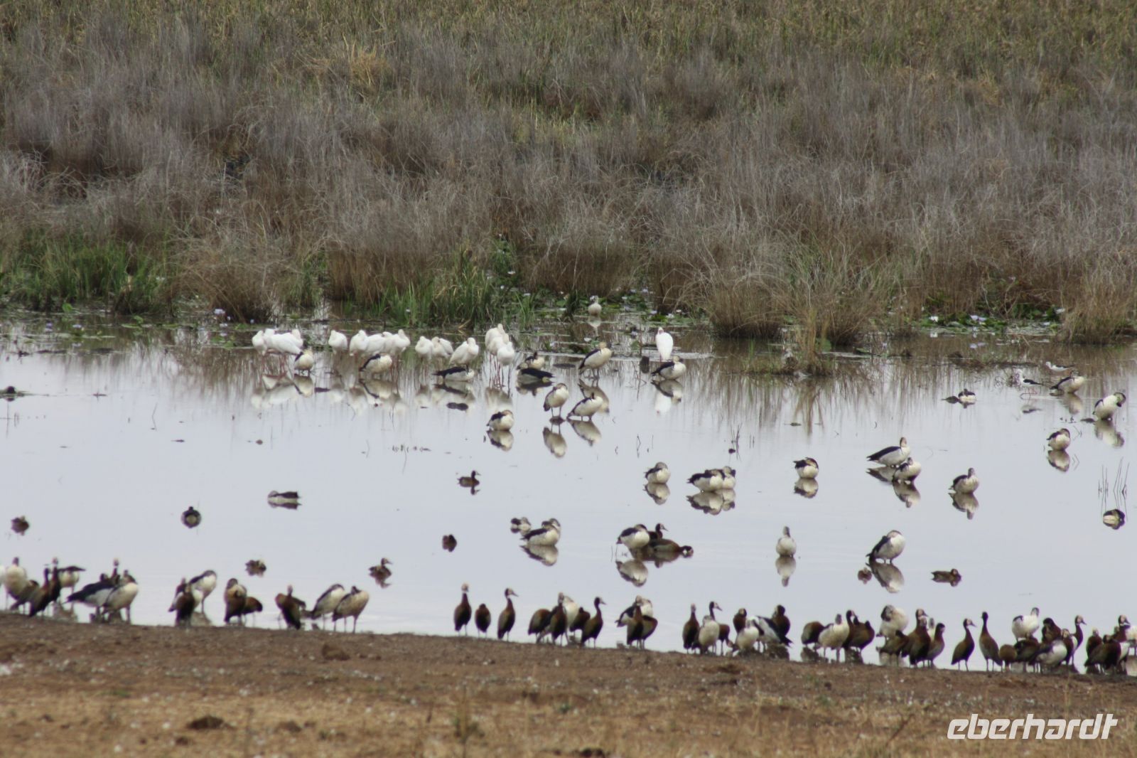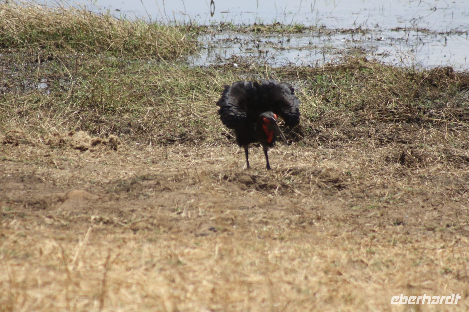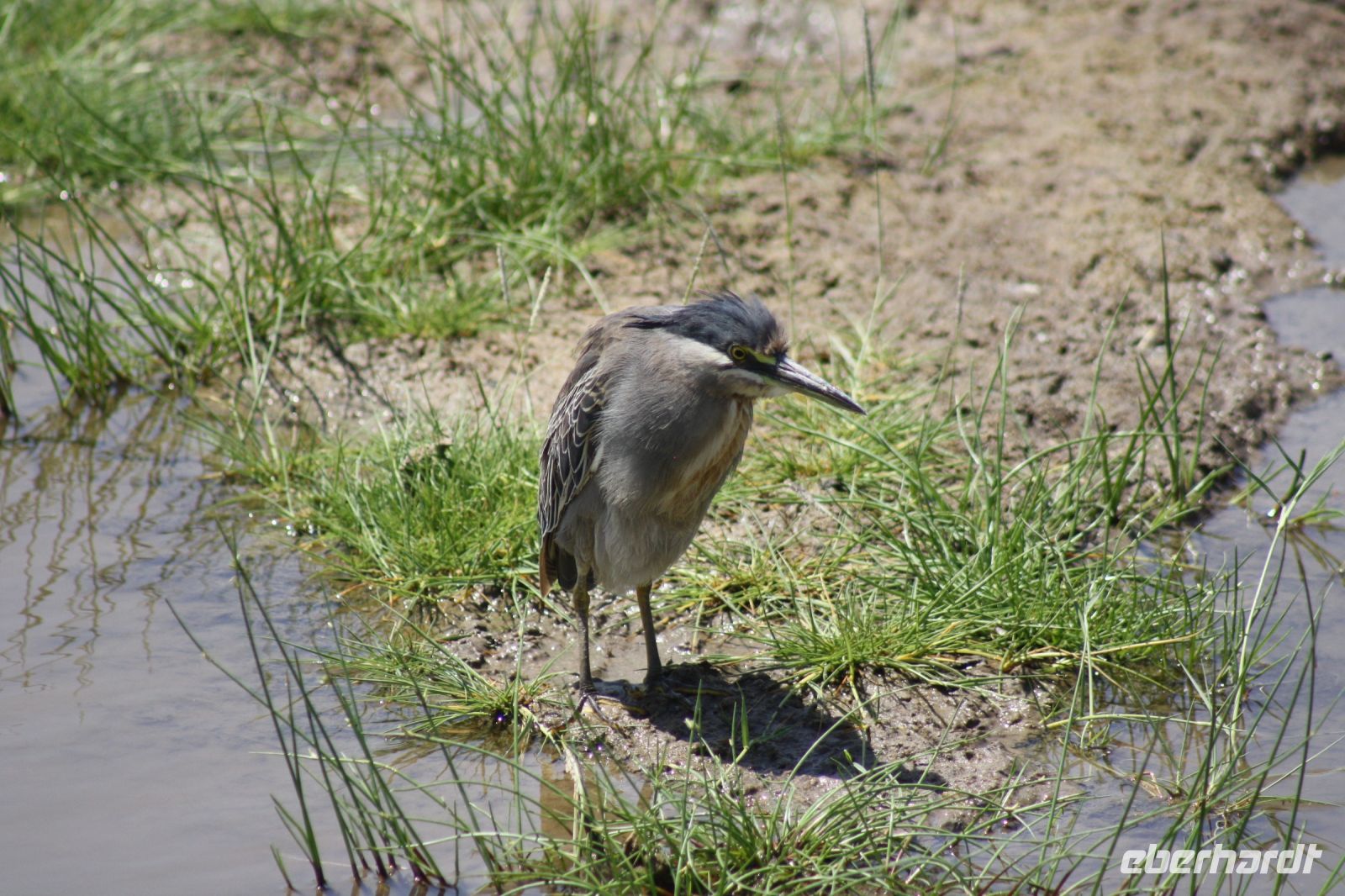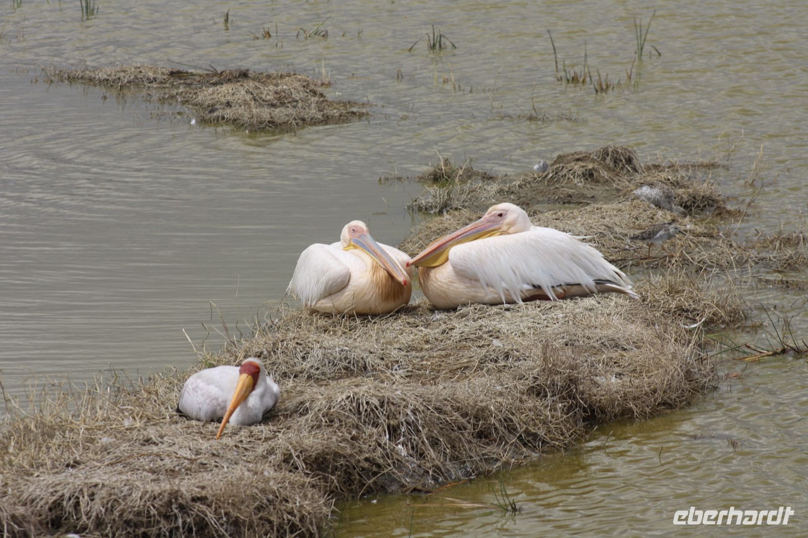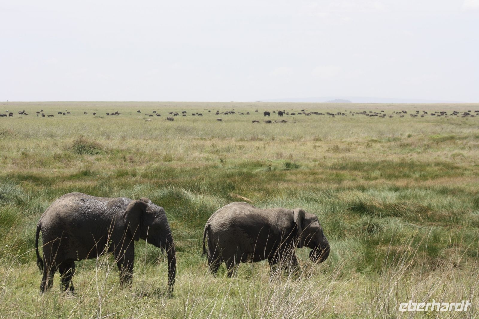 Bei unserem leckeren Frühstück auf der Beobachtungsterrasse konnten wir bereits zum Frühstück Giraffen, Impalas, Elefanten und Warzenschweine entdecken. Gegen 8 Uhr starteten wir in Richtung Sumpfgebiet. Unterwegs begegneten wir bereits Elefanten, Giraffen, Dikdiks und einen Quackvogel. Unter einem Baum erblickten wir drei alte Büffel, die sich gegenseitig vor Feinden schützten. Plötzlich spazierten Elefanten nah an unserem Jeep vorbei. Die Elefanten wollten genau wie wir in Richtung Sumpfgebiet. Das Gebiet ist ein Paradies für die heimische Tierwelt, da der Sumpf niemals austrocknet und ganzjährige das Tier und auch die Pflanzenwelt versorgt. Während wir die Elefanten fotografierten, bemerkten wir einen üblen Geruch. Direkt neben uns knapperten Geier an einem toten Gnu. Riesige Zebra Herden spazierten an uns vorbei und an einem kleinen Wasserloch badeten Impalas, Warzenschweine, Zebras und Gelbschnabelstörche gemeinsam. Kurz bevor wir das Sumpfgebiet erreichten, wartete eine große Büffelherde auf uns, die sich auf Wanderung begaben. Endlich erreichten wir das grüne Sumpfgebiet. Immer wieder zogen Elefantenherden und uns vorbei. Ihr Ziel war der Sumpf, wo sie baden und mit den kleinen Elefanten toben konnten. Neben einer Vielzahl an Gnus und Zebras, konnten wir über 100te Elefanten zählen. Ein absoluter Wahnsinn. Entlang des grünen Streifens konnten wir zudem Büffel und die hiesige Vogelwelt bestaunen. Wir erspähten einen Hagedasch-Vogel, Pelikane, Reihenreiher, pfeifende Enten, Eisvögel, Flamingos, Geier und ein Adler. Unsere Mittagspause konnten wir inmitten des Sumpfgebietes einnehmen und Karim versorgte uns mit Reis, Nudeln und Hühnchen. Nach der leckeren Mittagspause fuhren wir weiter zum Westen des Sumpfgebietes. Hier trafen wir wieder auf die drei Elefanten Bullen, die vermutlich den Weibchen hinterherliefen. Immer wieder konnten wir in der Ferne Elefanten baden sehen. Neben einen Sattelstorch konnten wir auch den Sekretär-Vogel entdecken, der durch die Gegend spazierte. Wir waren vollkommen fasziniert von der Vielfalt der verschiedenen Arten und die Vielzahl der Tiere. Leider mussten wir uns langsam von der Sumpflandschaft verabschieden. Eine weitere Herde von etwa 20 Elefanten und Kudos schlenderten an uns vorbei. Unterwegs konnten wir im Dreck wälzende Zebras sehen und ein sich juckender Elefant sorgte für Erheiterung. Ein wunderschöner Tag neigte sich nun dem Ende entgegen und wir ließen den Tag bei einem gemeinsam "Feierabendbier" in der Lodge ausklingen.