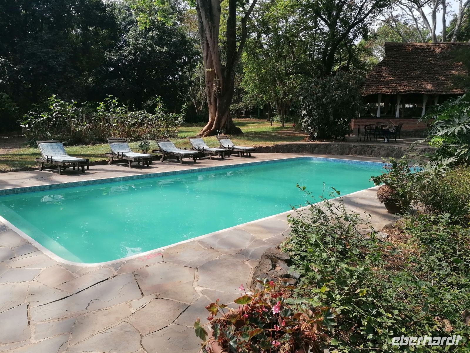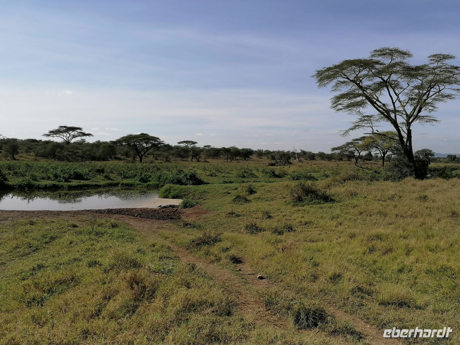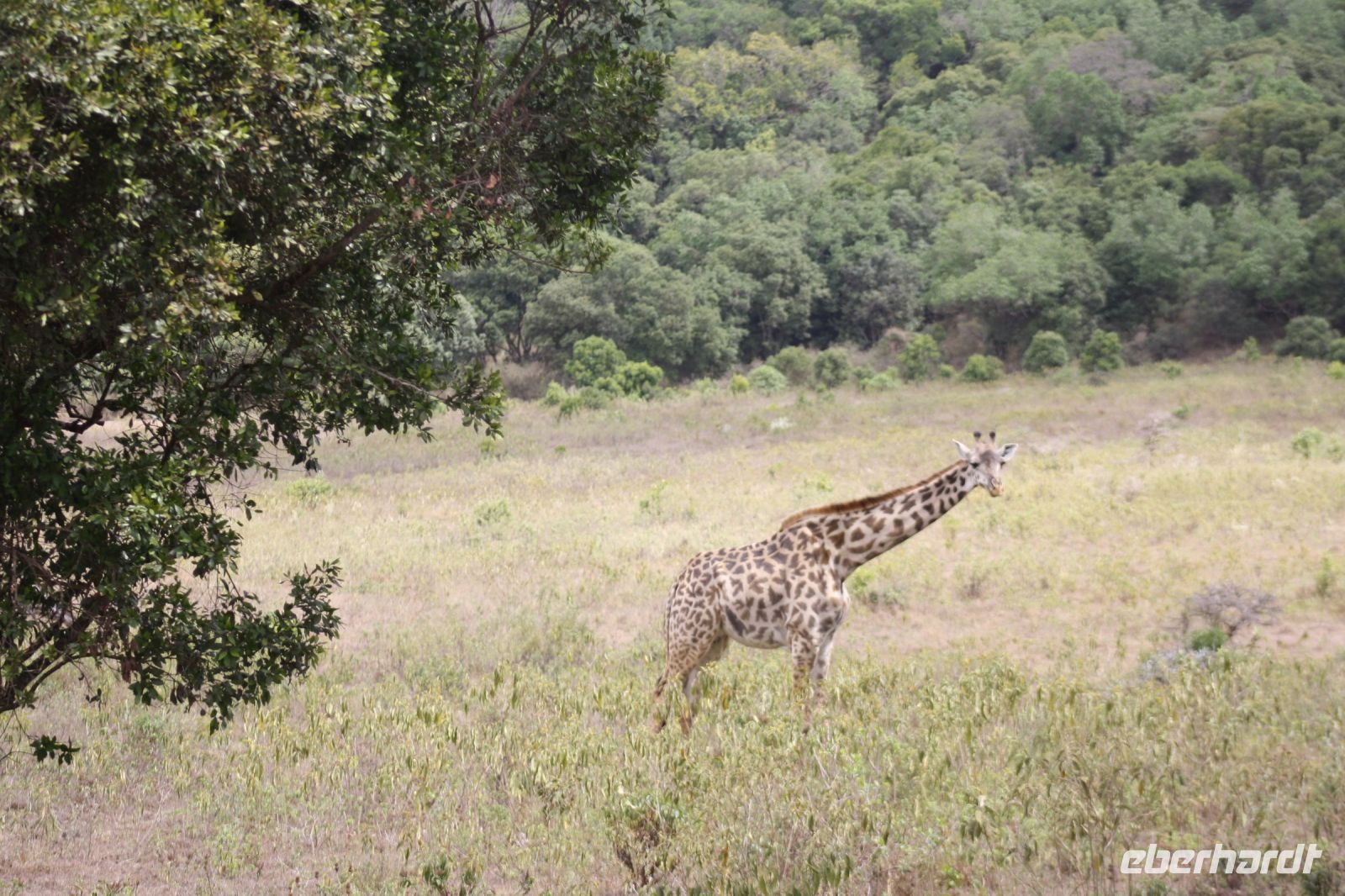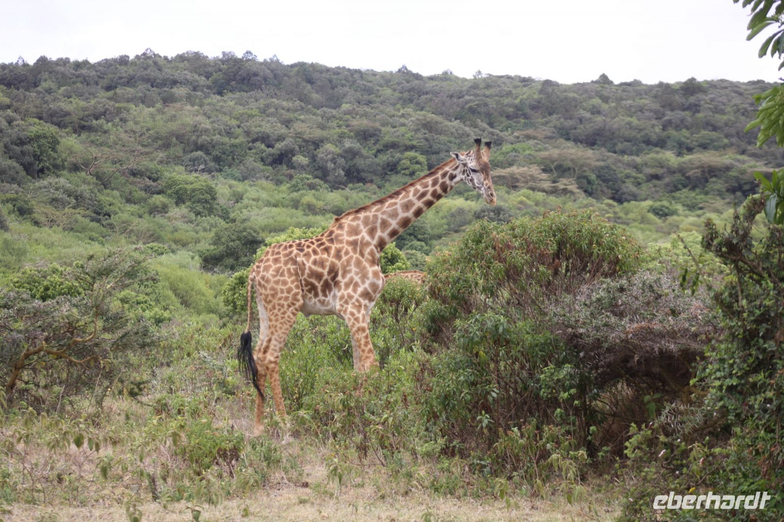 Nach dem Frühstück traf Karim pünktlich in der Lodge ein. Gemeinsam wollten wir den Arusha Nationalpark besuchen und auf unsere erste Pirschfahrt gehen. Gespannt begutachteten wir unseren Jeep, der in den nächsten 10 Tagen unseren fahrbaren Untersatz darstellen sollte. Von außen und von Innen sah alles super. Also konnte es losgehen. Der Nationalpark ist ca. 30 Km von Arusha Stadt entfernt und ist mit sein 3.000 Km² einer der kleinsten, aber von der Landschaft her einer der Vielfältigsten des Landes. Direkt nach dem Eingangstor konnten wir kämpfende Zebras, Büffel und Warzenschweine entdecken. Auch Giraffen, die in einer großen Anzahl hier beheimatet sind, konnten wir nach nur wenigen Minuten entdecken. Der Park ist vor allem auch für seinen Bestand an Pavianen und grüne Meerkatze bekannt. Eine Pavianfamilie hatte sogar ein kleines Baby mit dabei, was unsere Kameras natürlich glühen ließ. Der Arusha Nationalpark wurde bereits 1960 gegründet und 7 Jahre später wurde der Mount Meru hinzugefügt. Nach einer zweistündigen Fahrt trafen wir auf unseren Ranger, der gemeinsam mit seiner Trainee-Partnerin uns auf eine kleine Wanderung begleiteten. Während der Wanderung erklärte uns der Guide eine Menge über den Nationalpark und wir konnten weitere Tiere von der Nähe sehen. Wir spazierten durch den Park und schlenderten an Giraffen, Warzenschweine, Wasserböcke und Büffel vorbei und kamen dabei den Giraffen doch sehr nah. Gegen Ende des Spazierganges konnten wir auch ein Hippo in der Ferne entdecken und die Nilschwalbe fotografieren. Nach der Wanderung hatten wir uns eine Pause verdient und wir stärkten uns mit unser Picknick Lunch Box. Im Anschluss fuhren wir tiefer in den Nationalpark hinein und erblickten weitere Zebras, Buschböcke und eine Warzenschweinfamilie mit Kleinkind. Immer wieder sahen wir Giraffenfamilien, die gemeinsam in den Bäumen fraßen. Als wir den kleinen Krater erreichten trafen wir erneut auf Wasserböcke, Giraffen und Pavian. Auch die Vogelwelt war hier sehr präsent, denn wir erspähten Kiebitze, Ibisse Enten und Pelikane am Momella See. Der zweithöchste Berg Tansania - der Mount Meru zeigte sich am Nachmittag auch in seiner vollen Pracht. Leider ließ sich jedoch der großen Bruder Kilimanjaro nicht blicken. Auf dem Heimweg entdecken wir weitere Zebras und Giraffen und einige Zebramangusten, die neugierig in den Jeep blickten. Ein schöner erster Tag im Arusha Nationalpark neigte sich dem Ende entgegen und wir speisten ein letztes Mal gemeinsam in der Rivertrees Lodge zu Abend.
